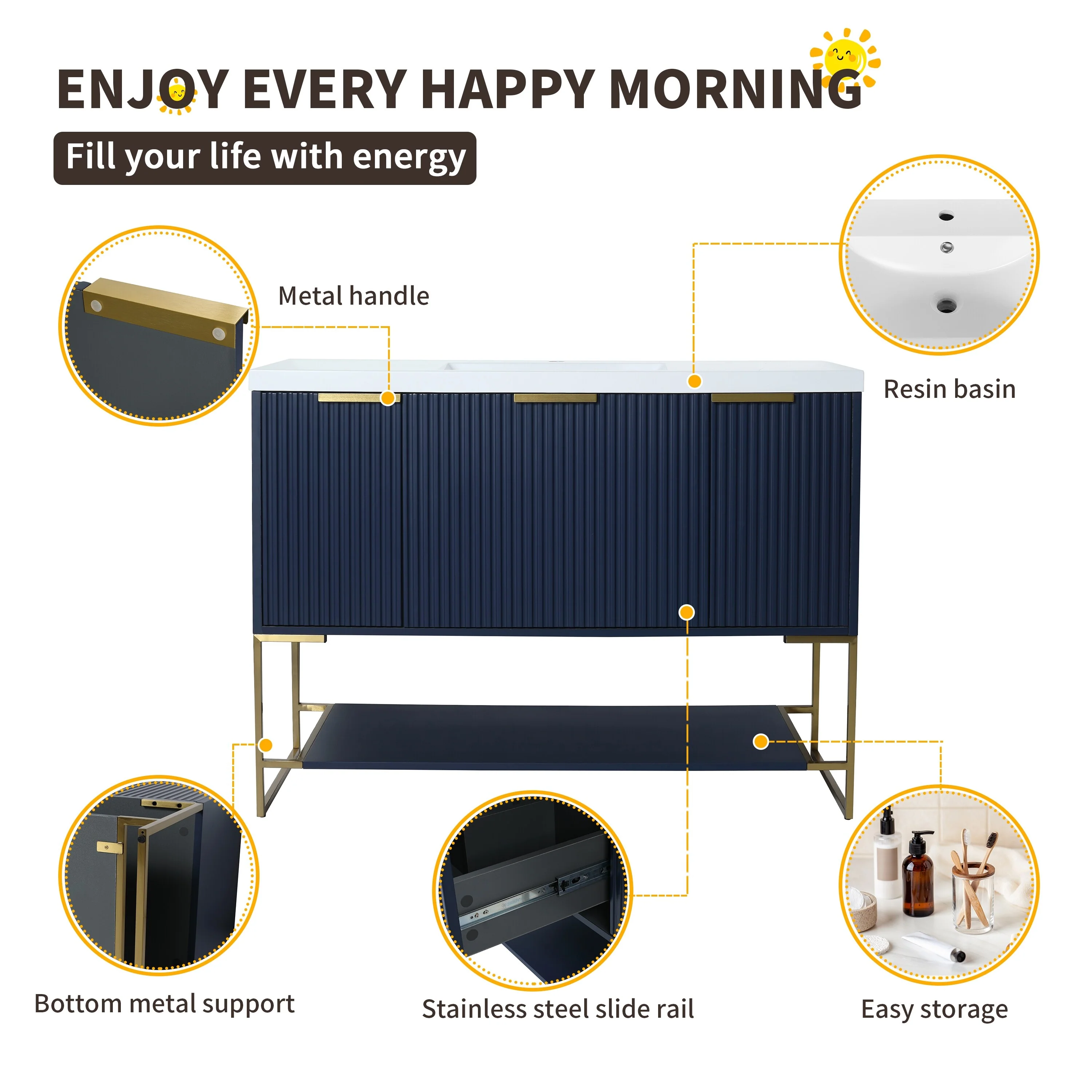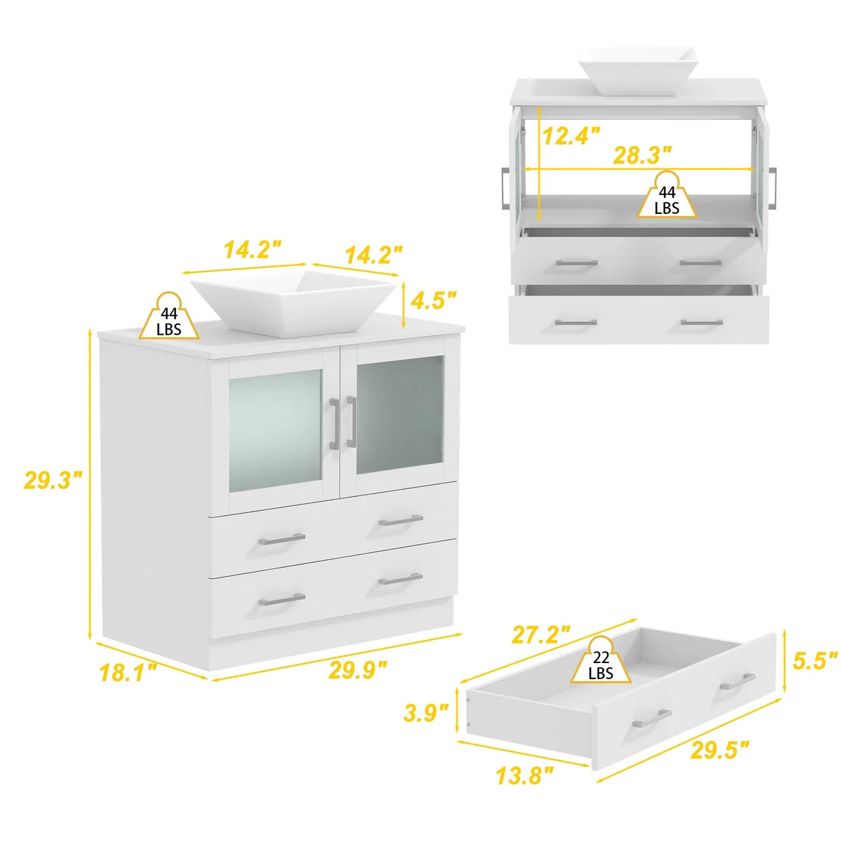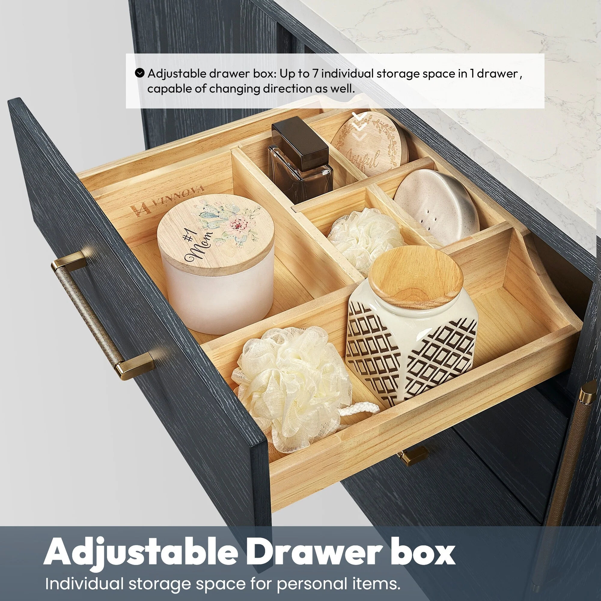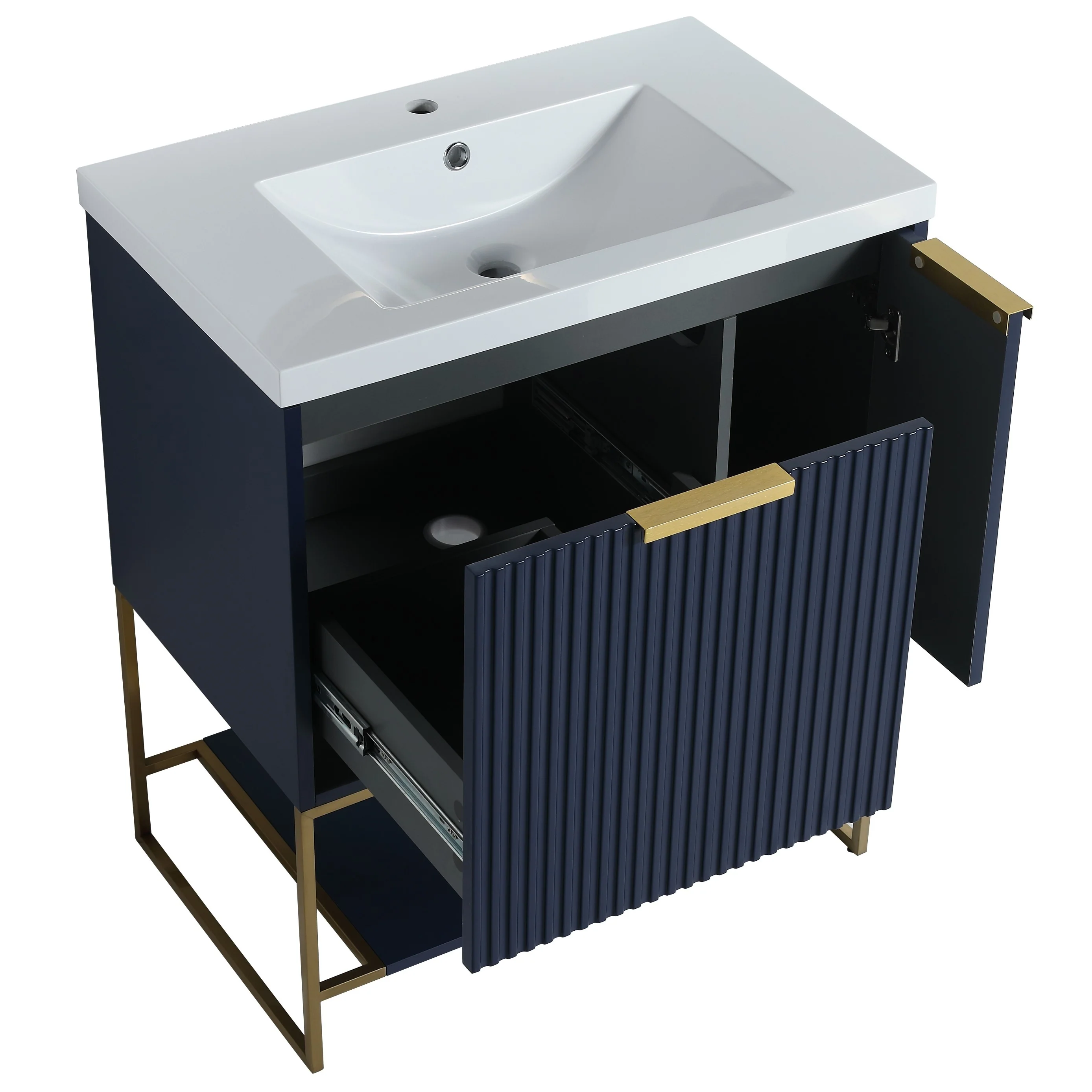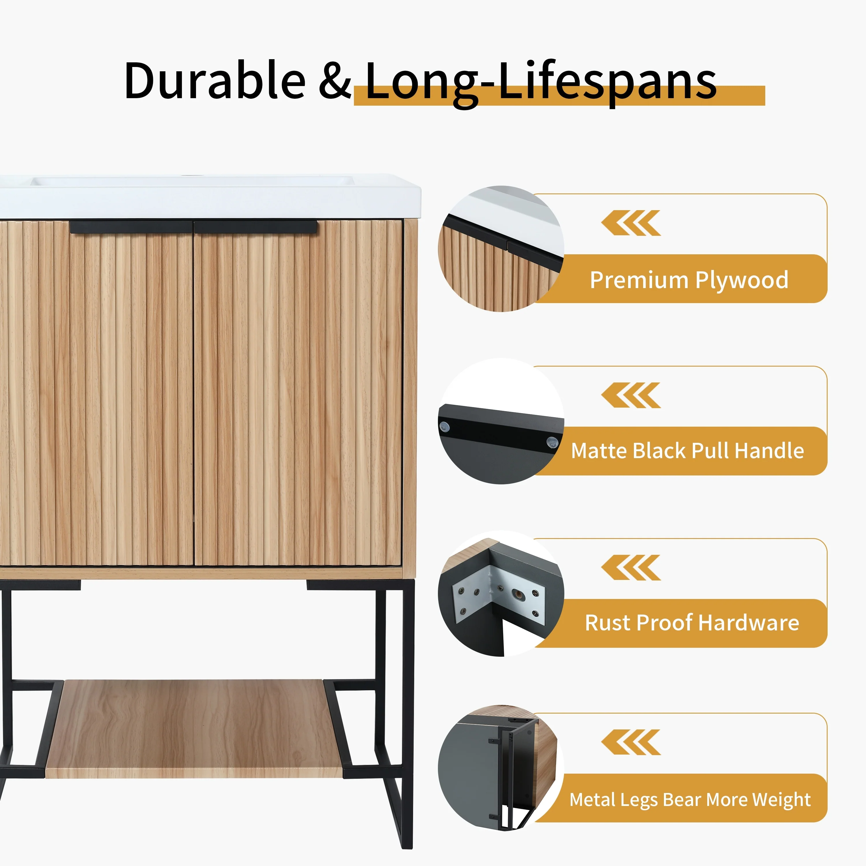 Bathroom Vanity with 2 Soft-close Doors and Double-tier Deep Drawer