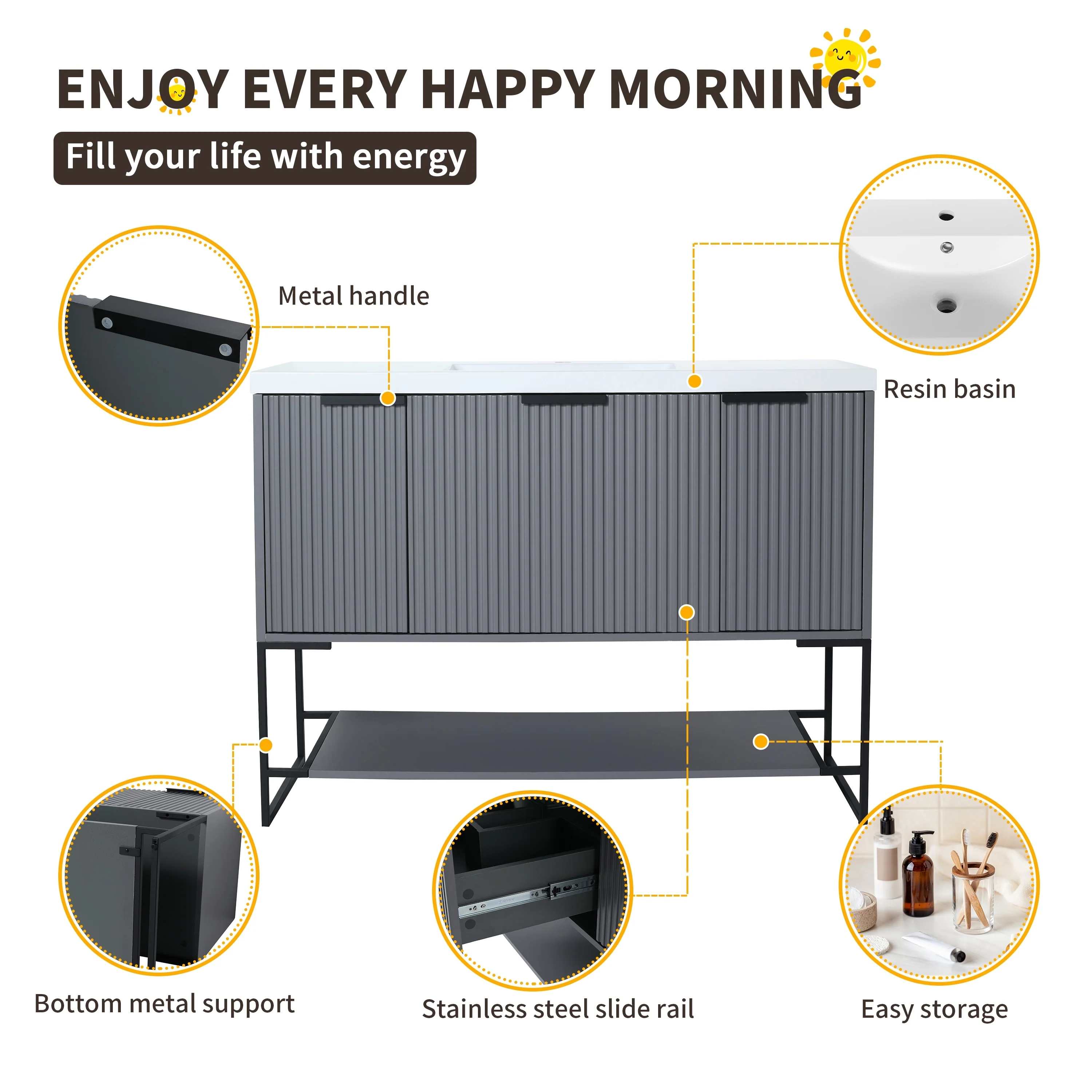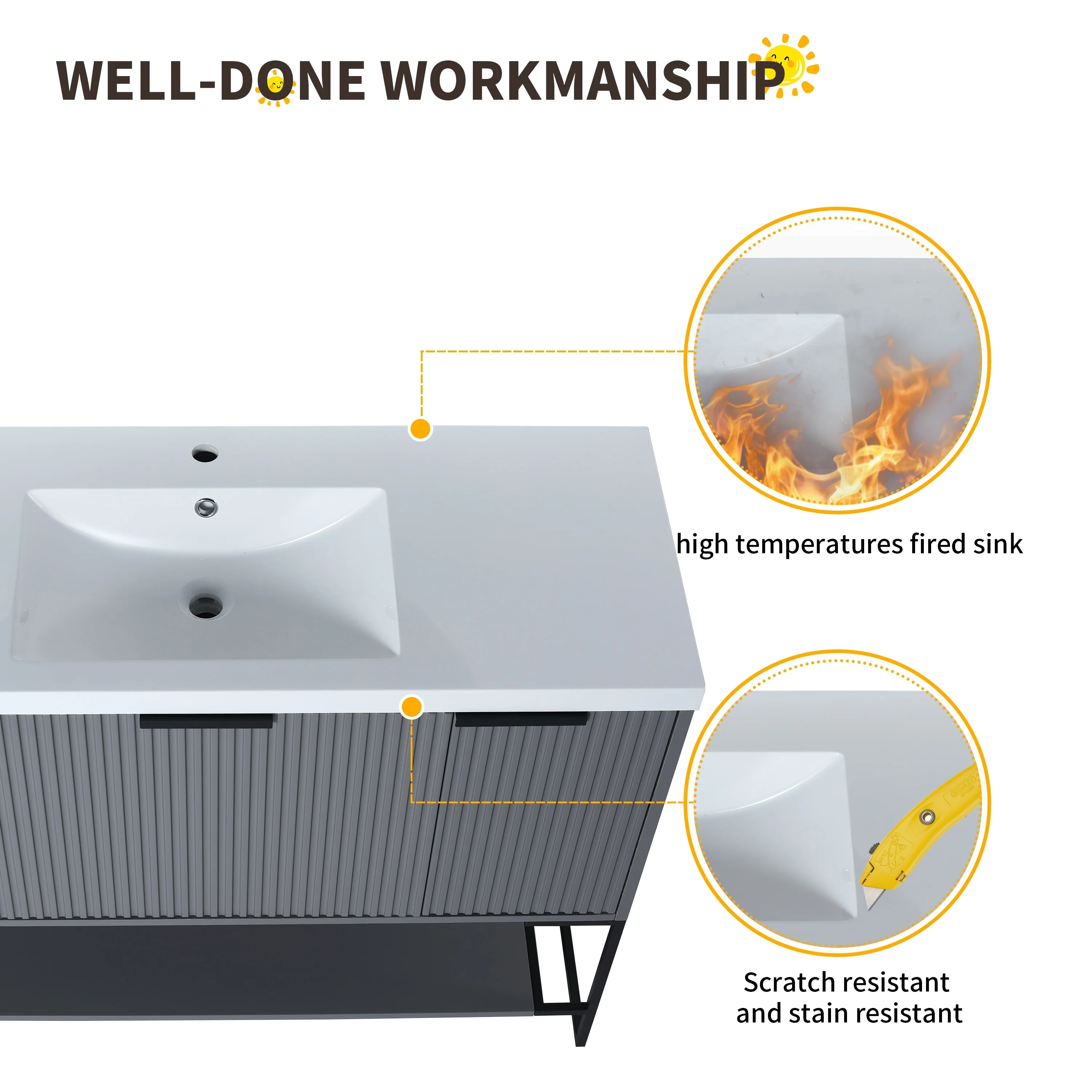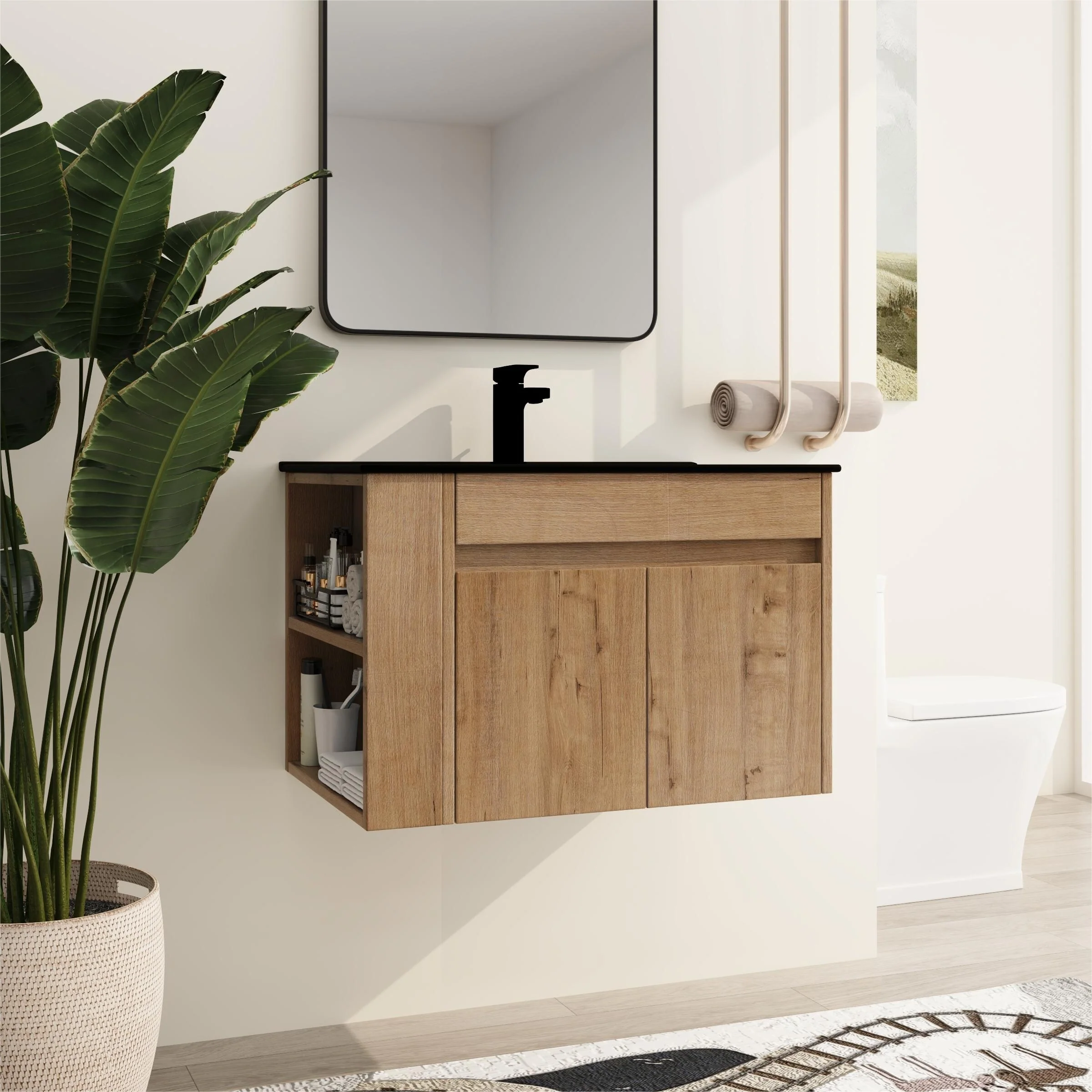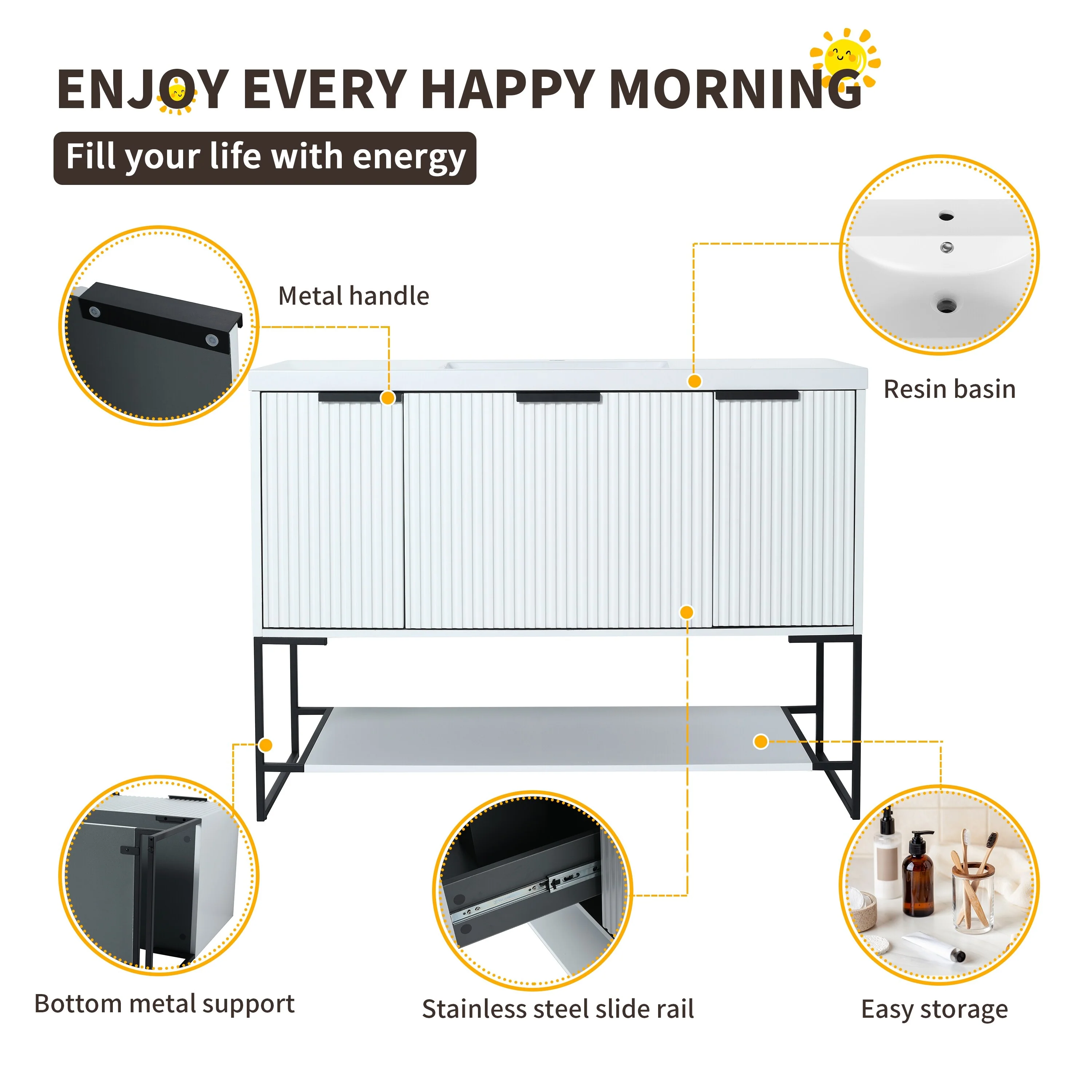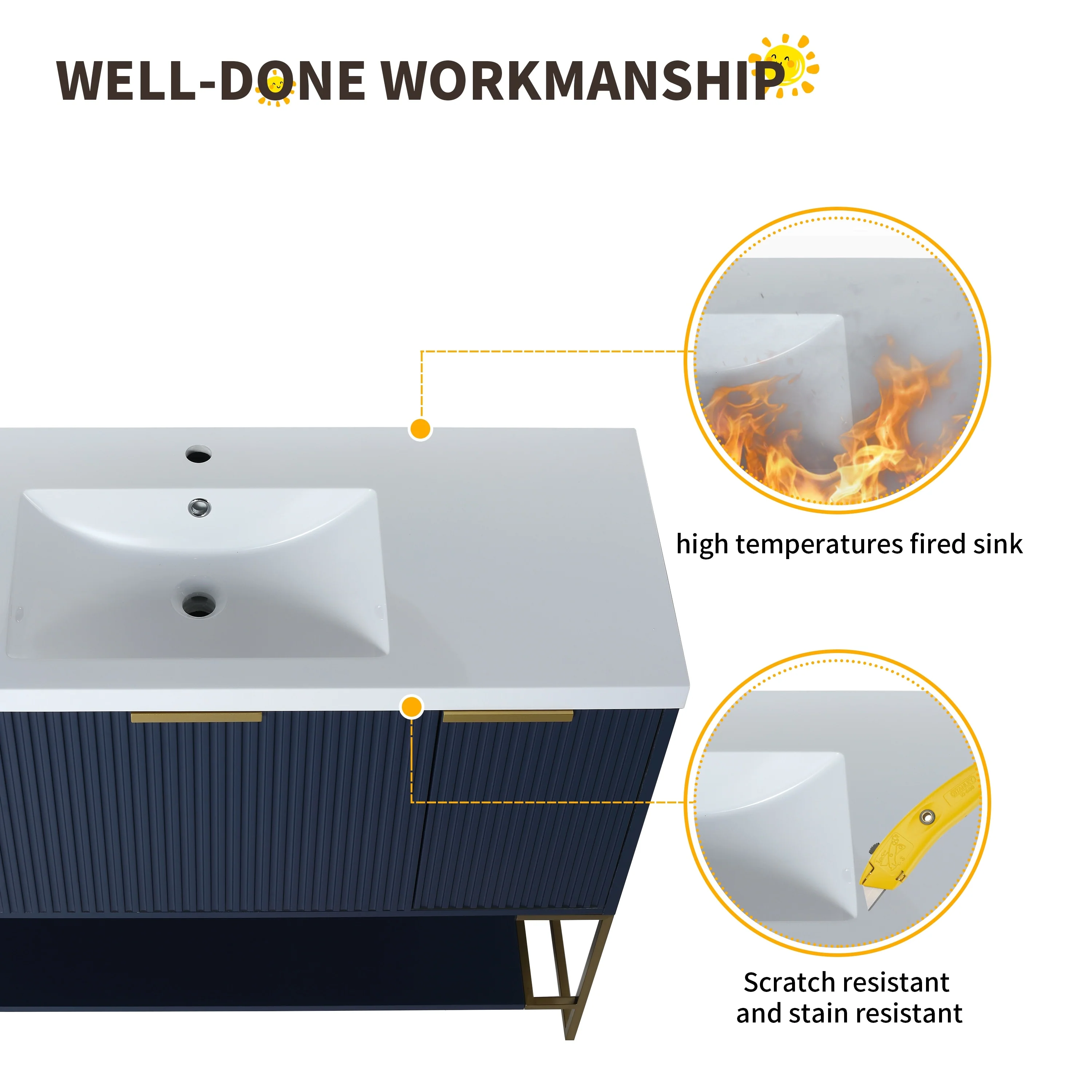Bathroom Vanity with 2 Soft-close Doors and Double-tier Deep Drawer