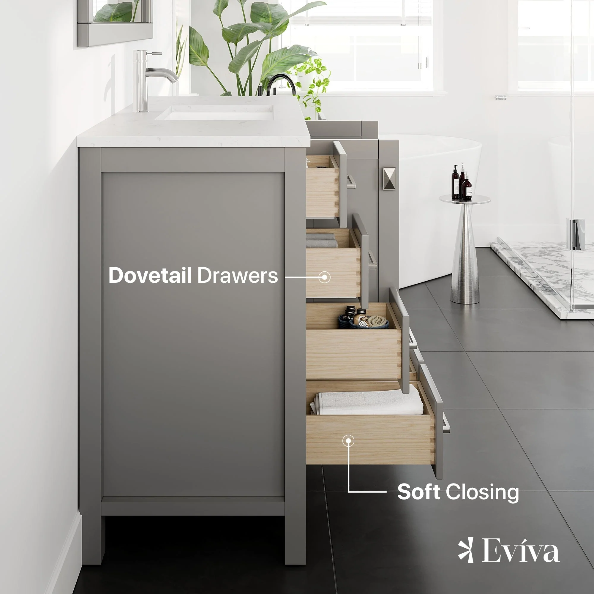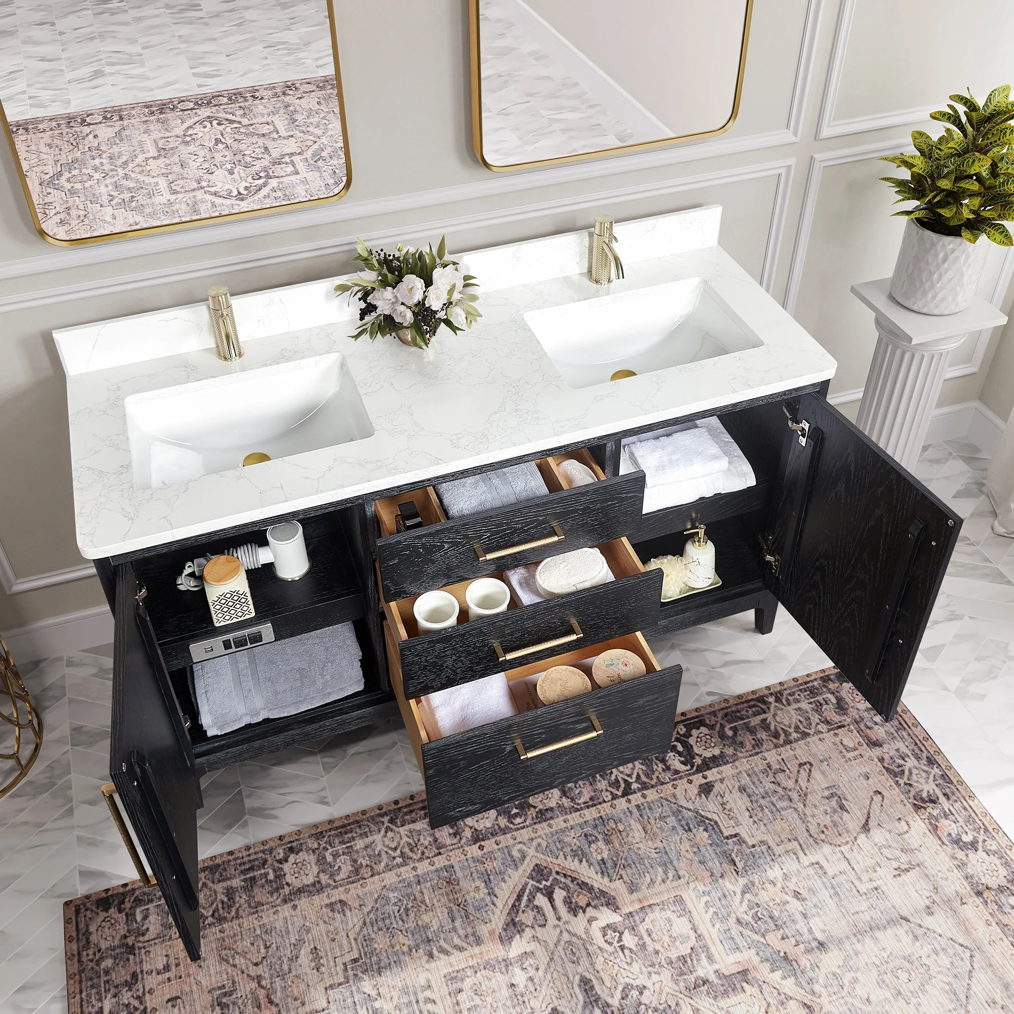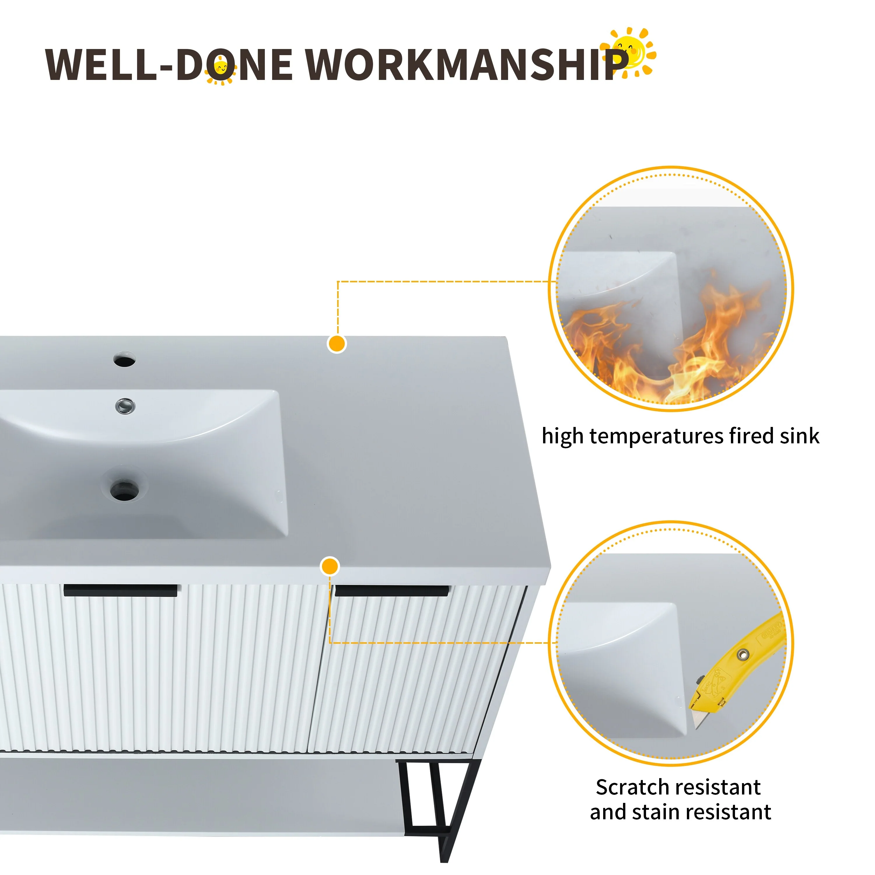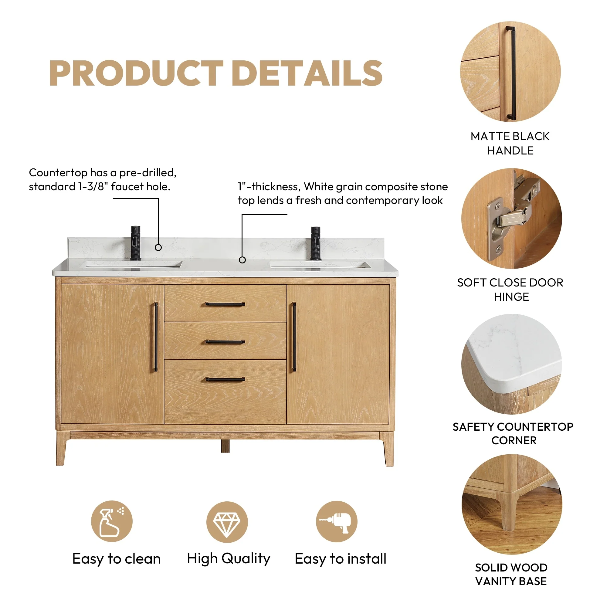 Bathroom Vanity with 2 Soft-close Doors and Double-tier Deep Drawer