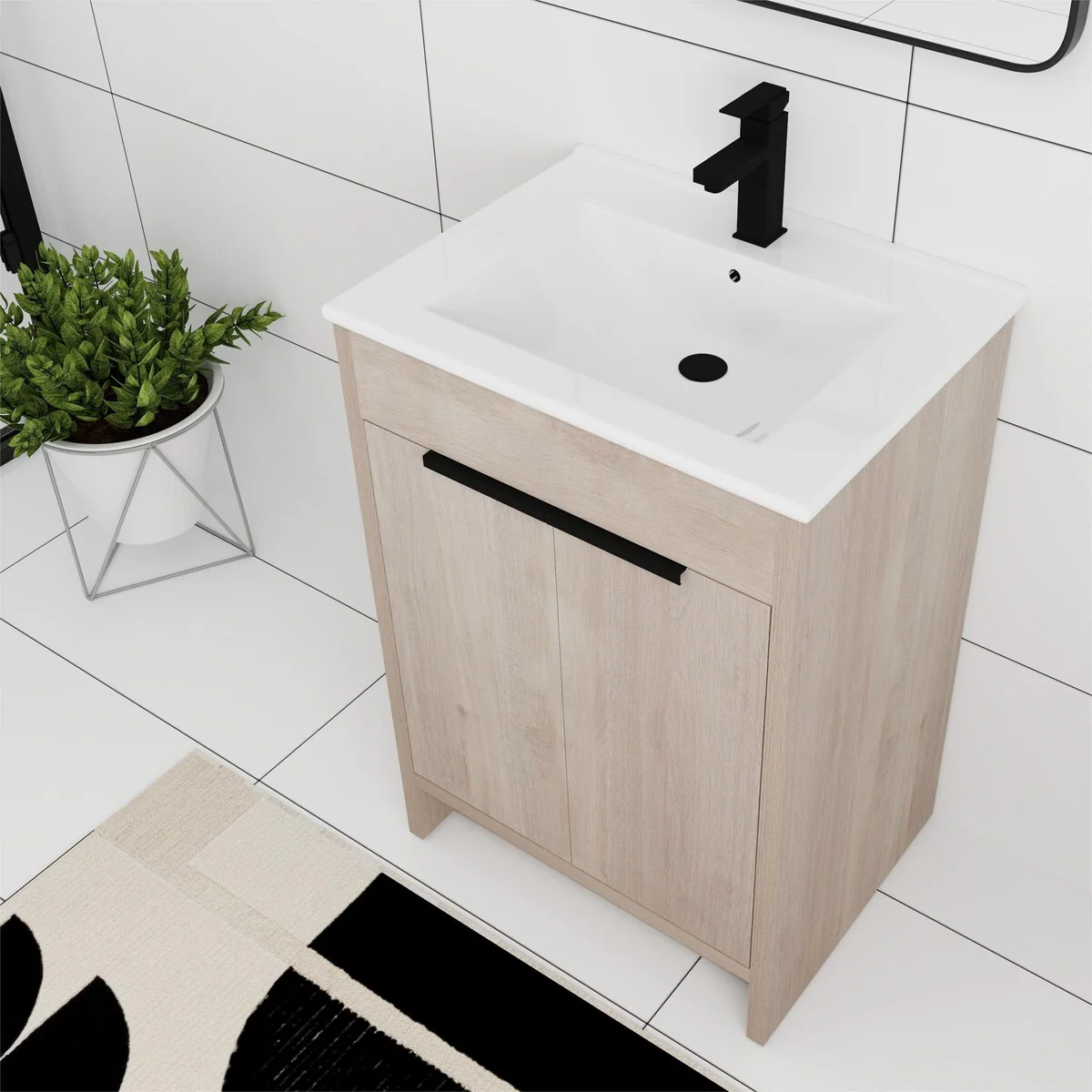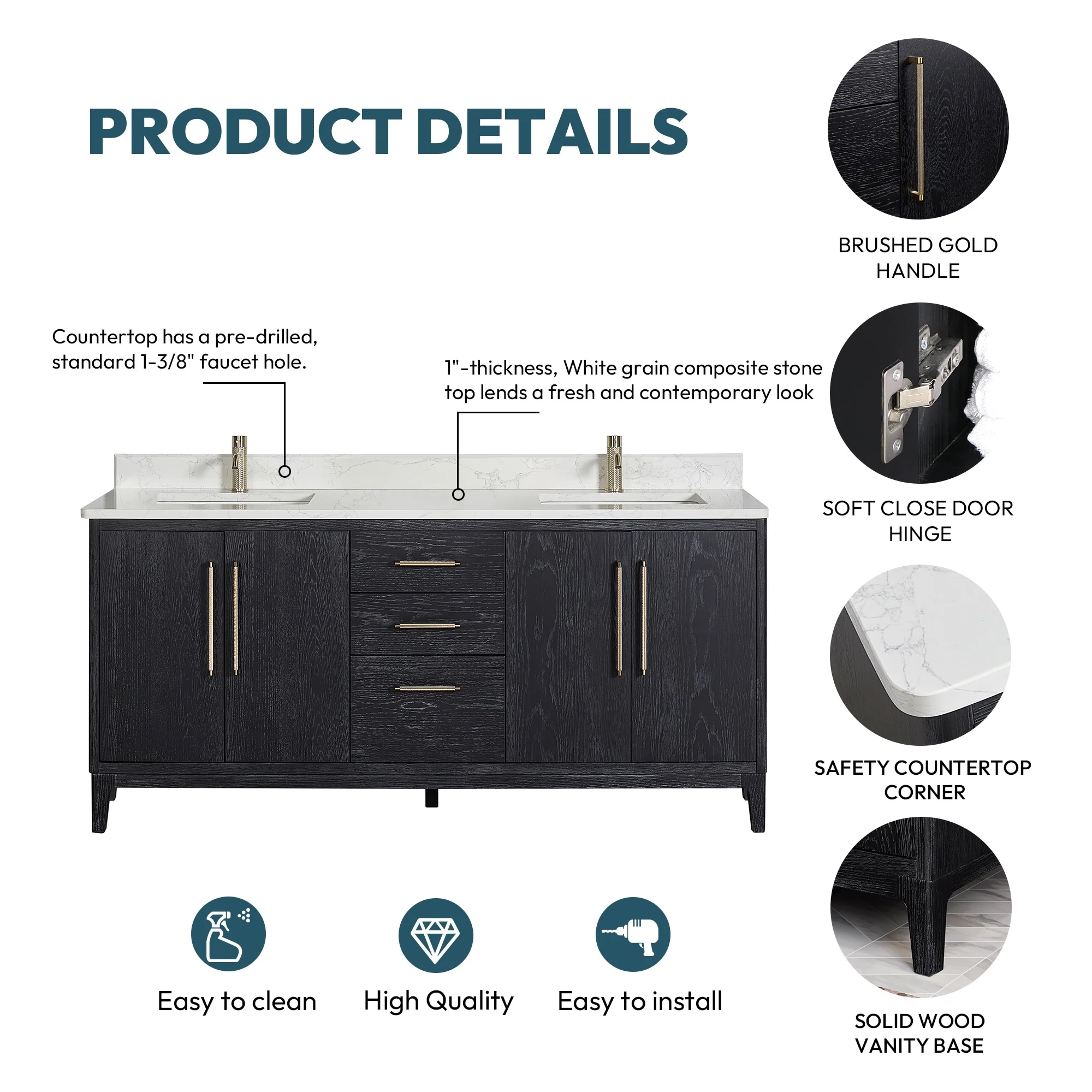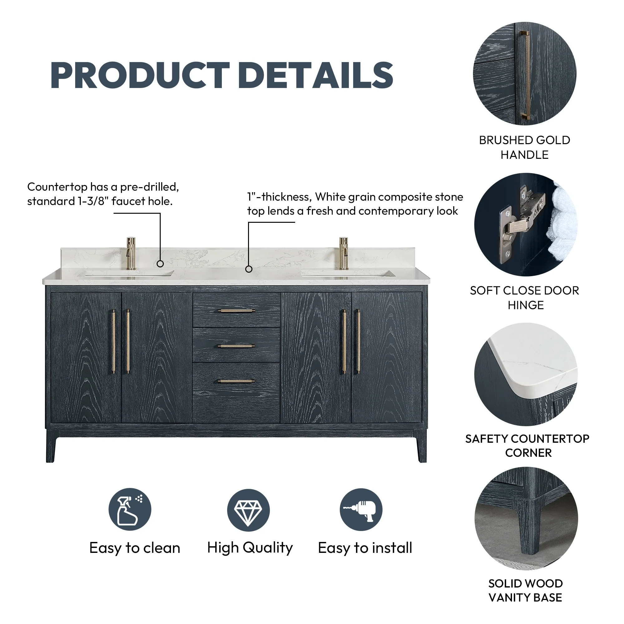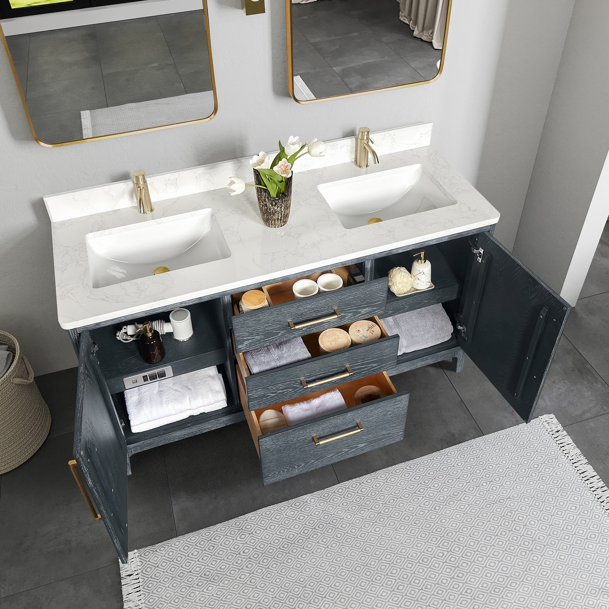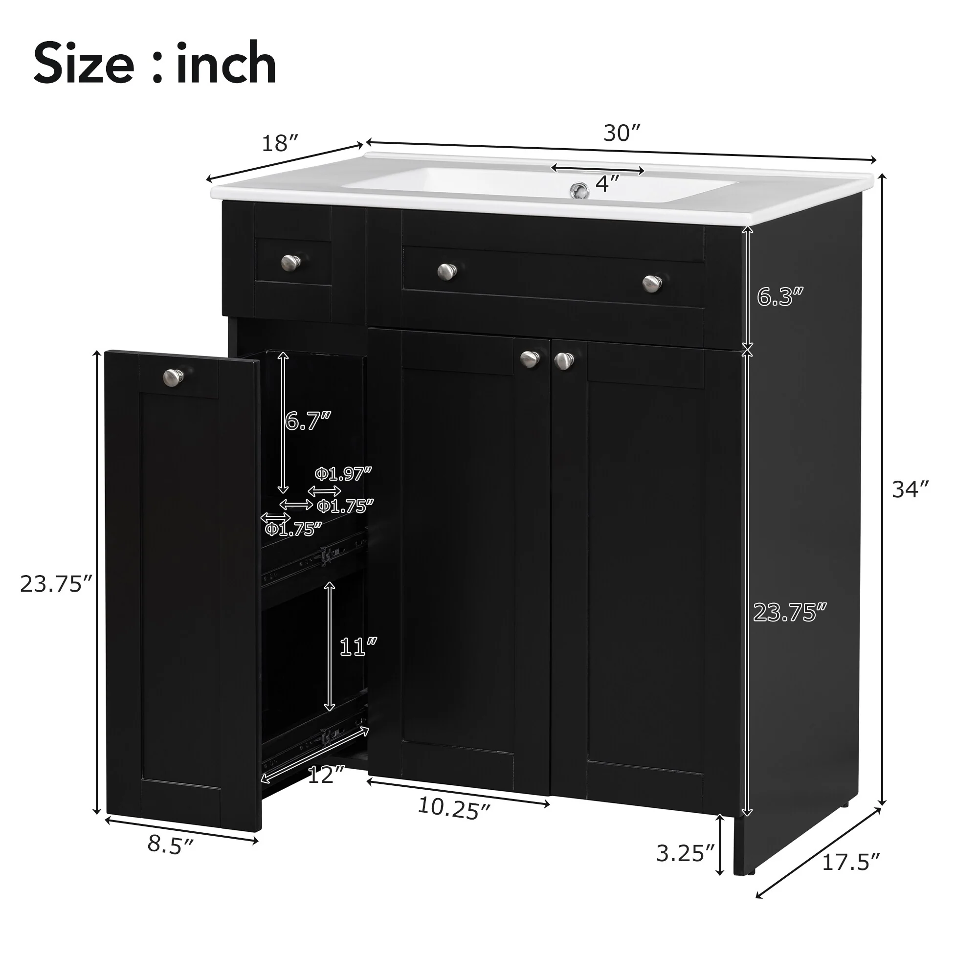 Bathroom Vanity with 2 Soft-close Doors and Double-tier Deep Drawer