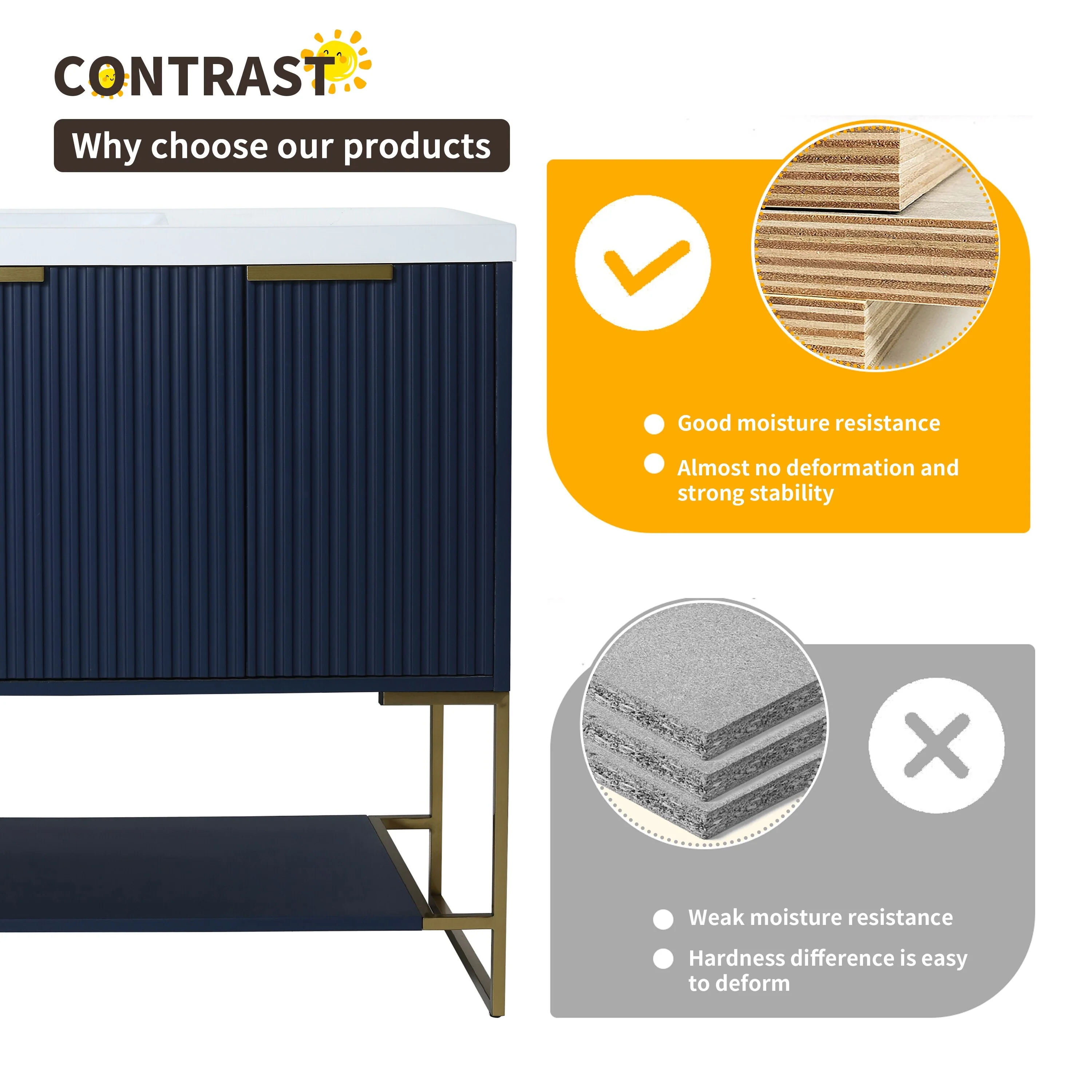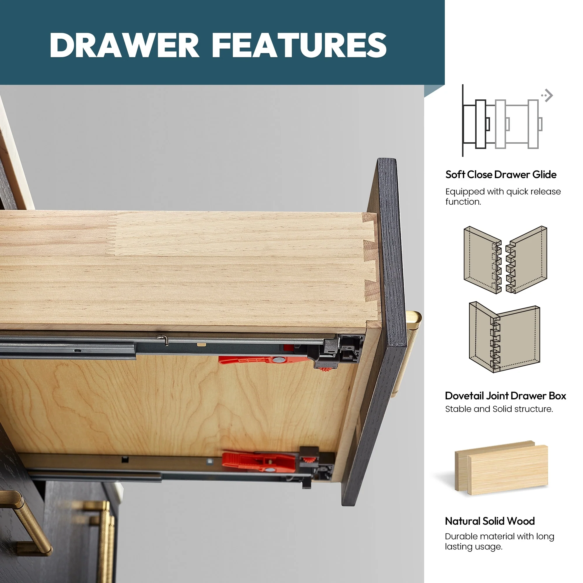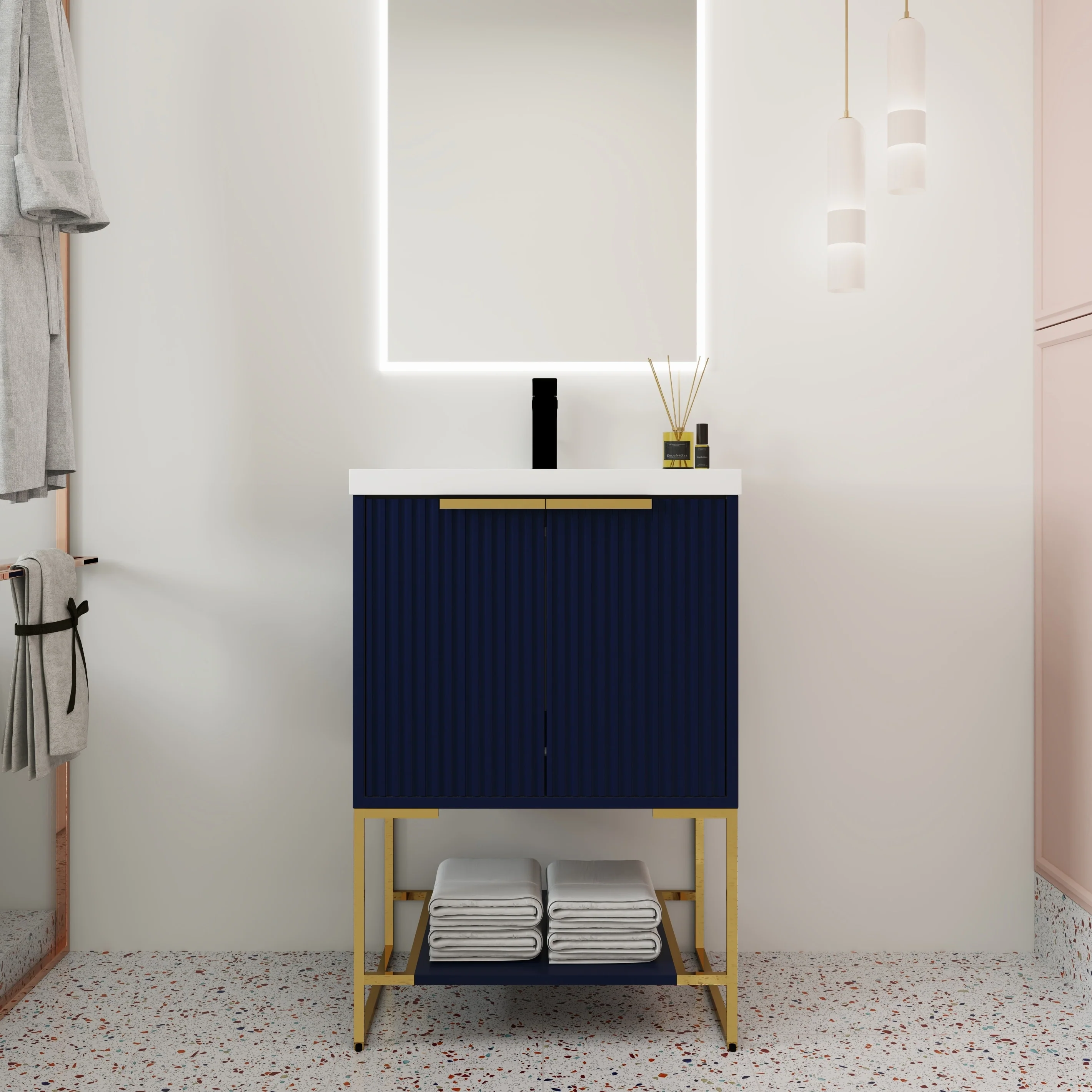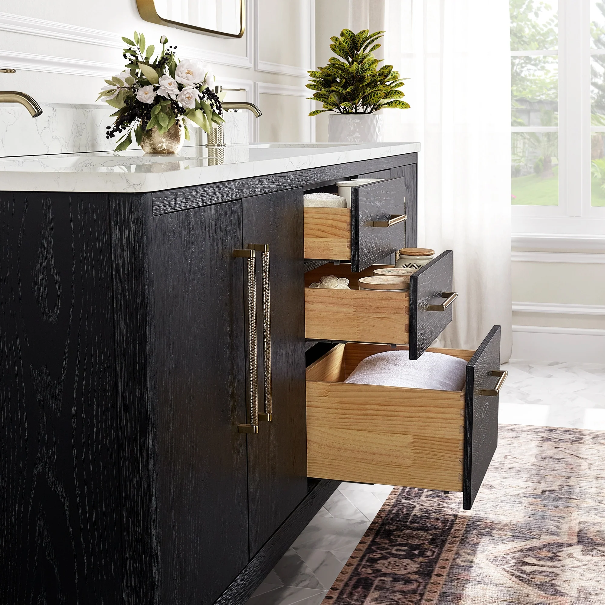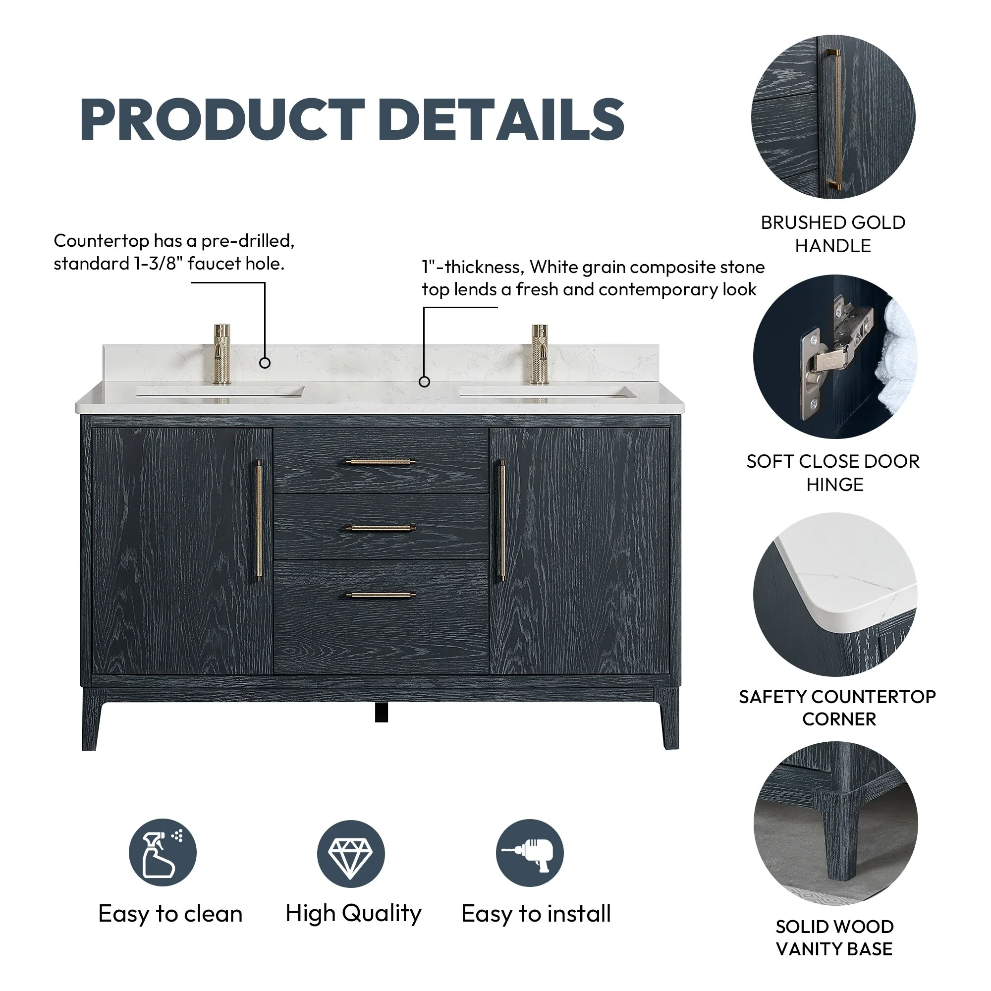 Bathroom Vanity with 2 Soft-close Doors and Double-tier Deep Drawer