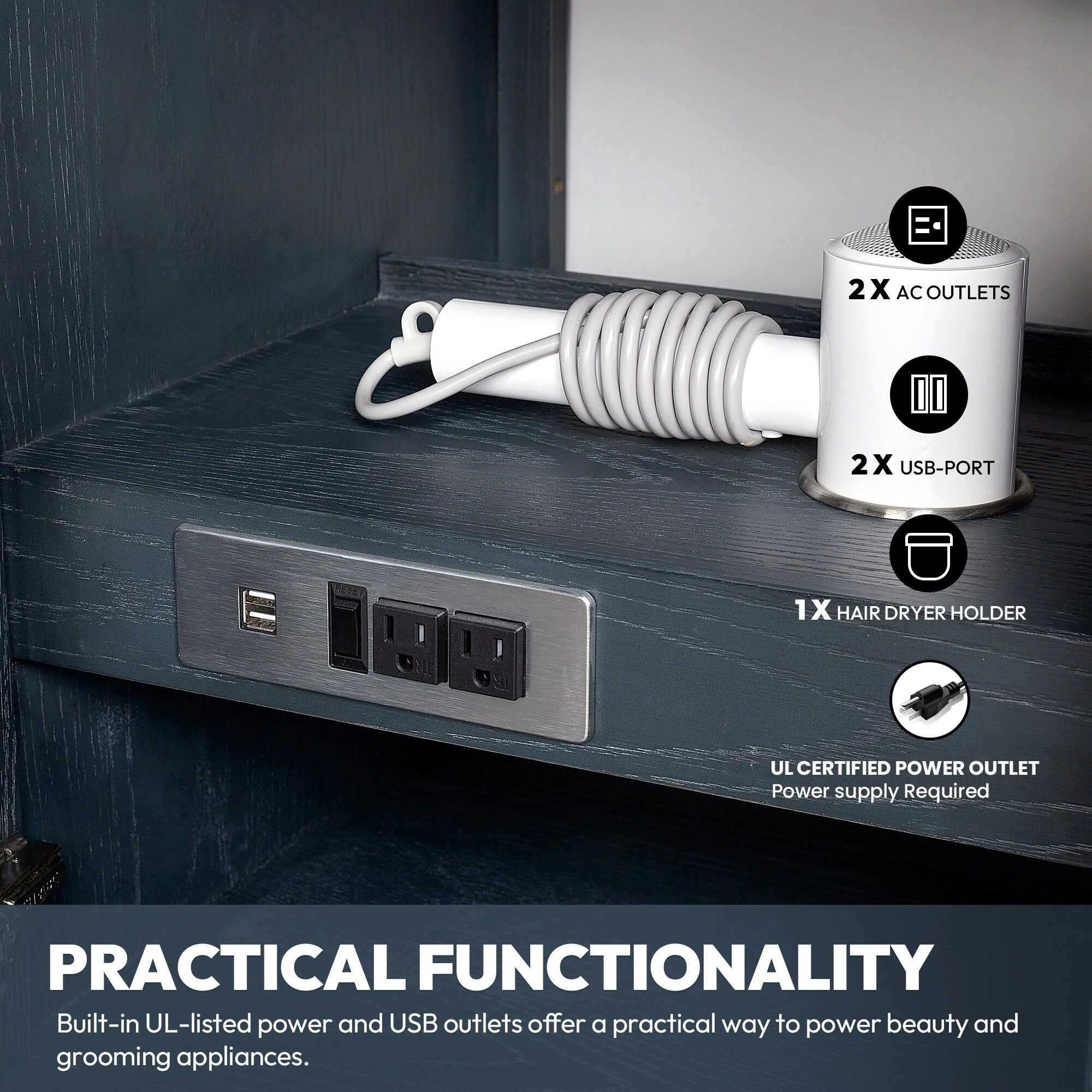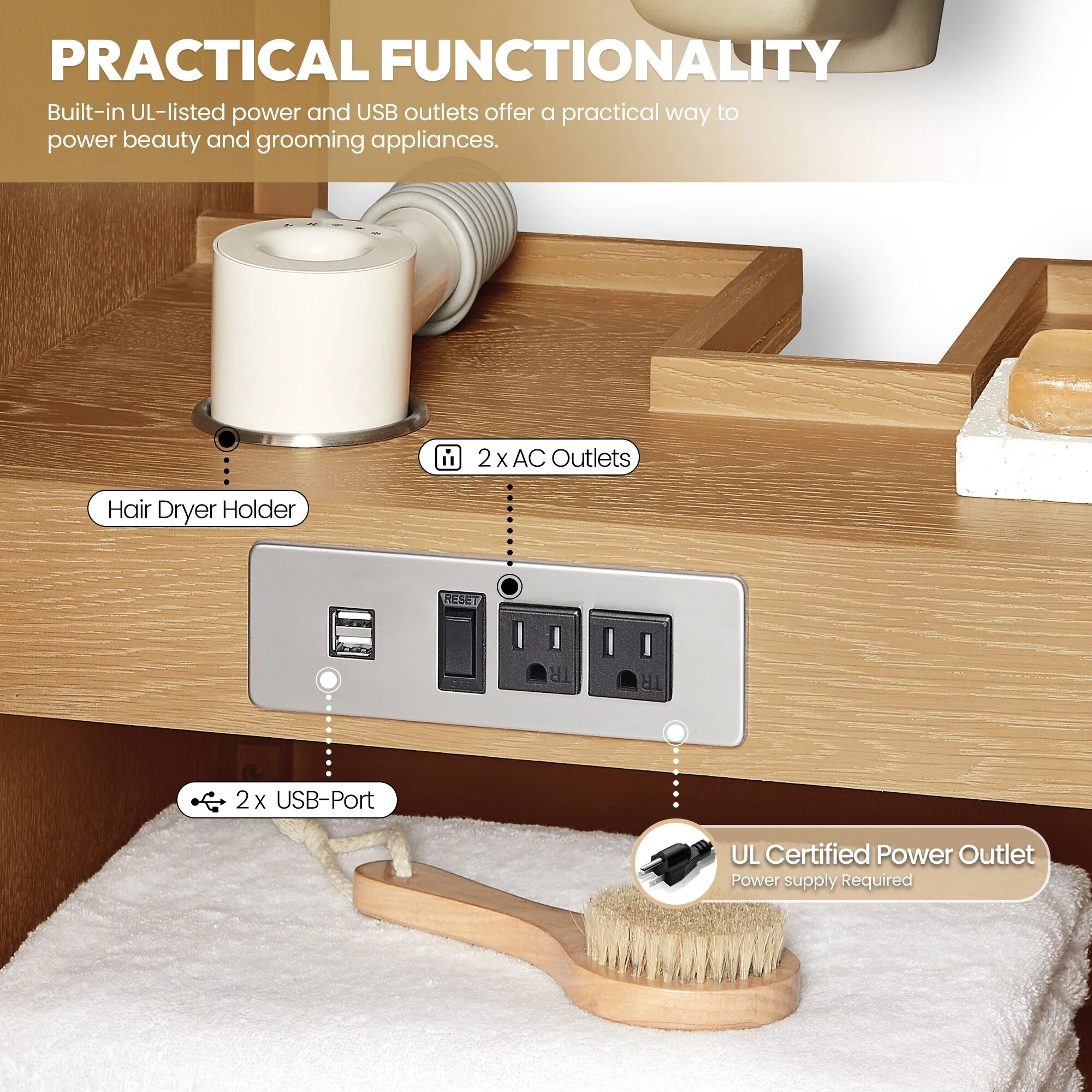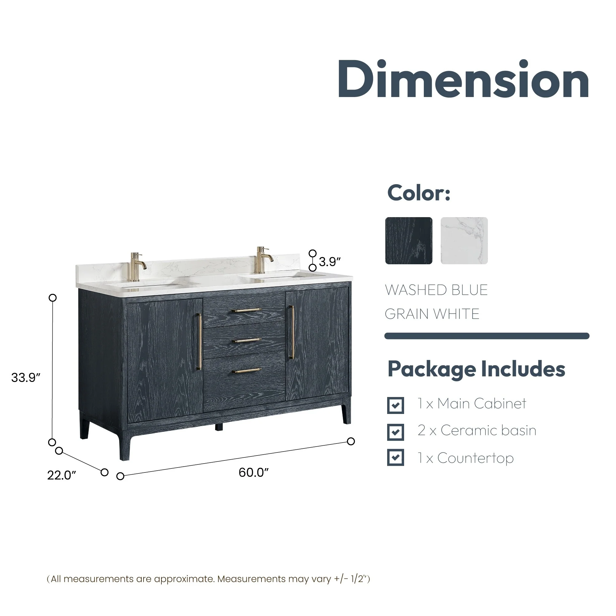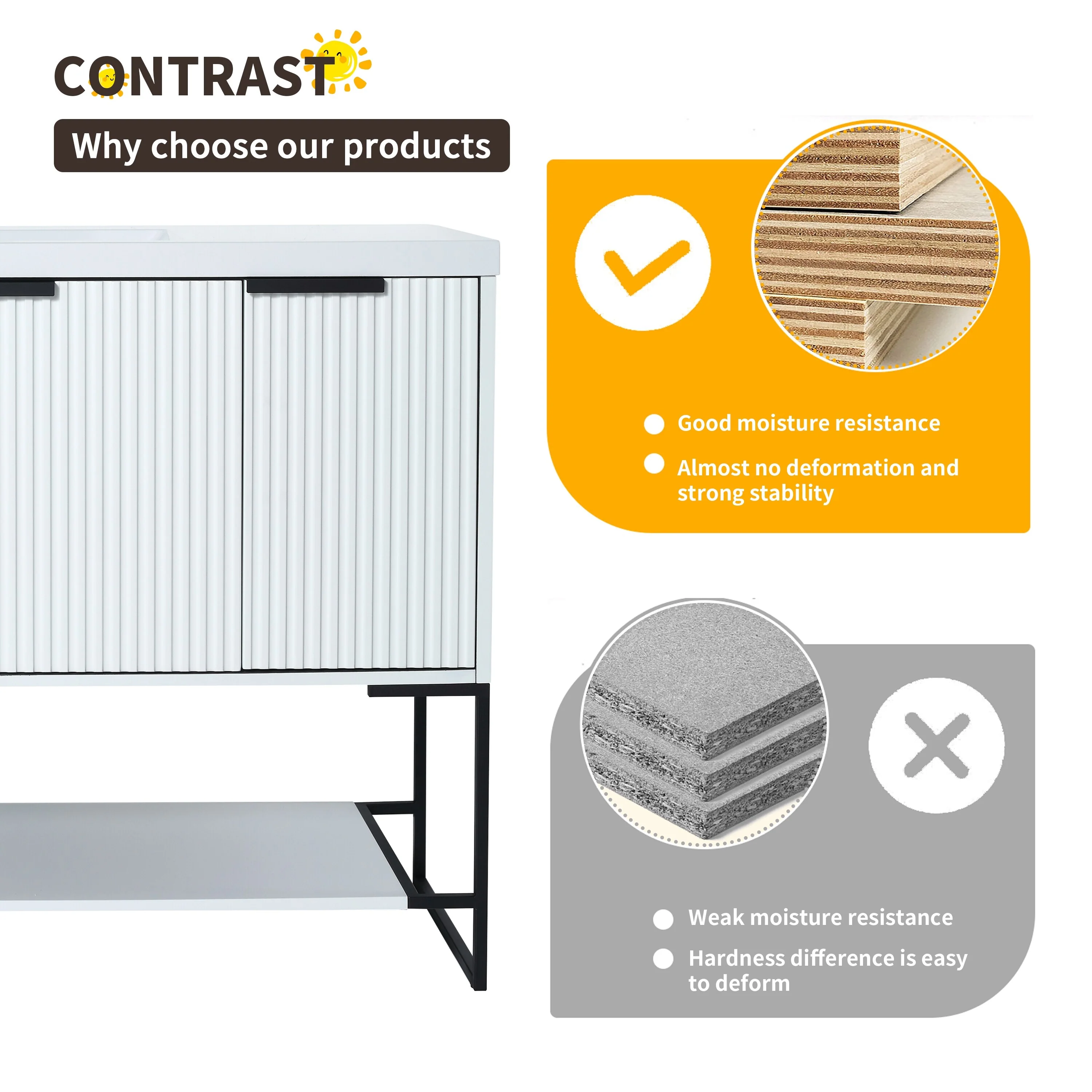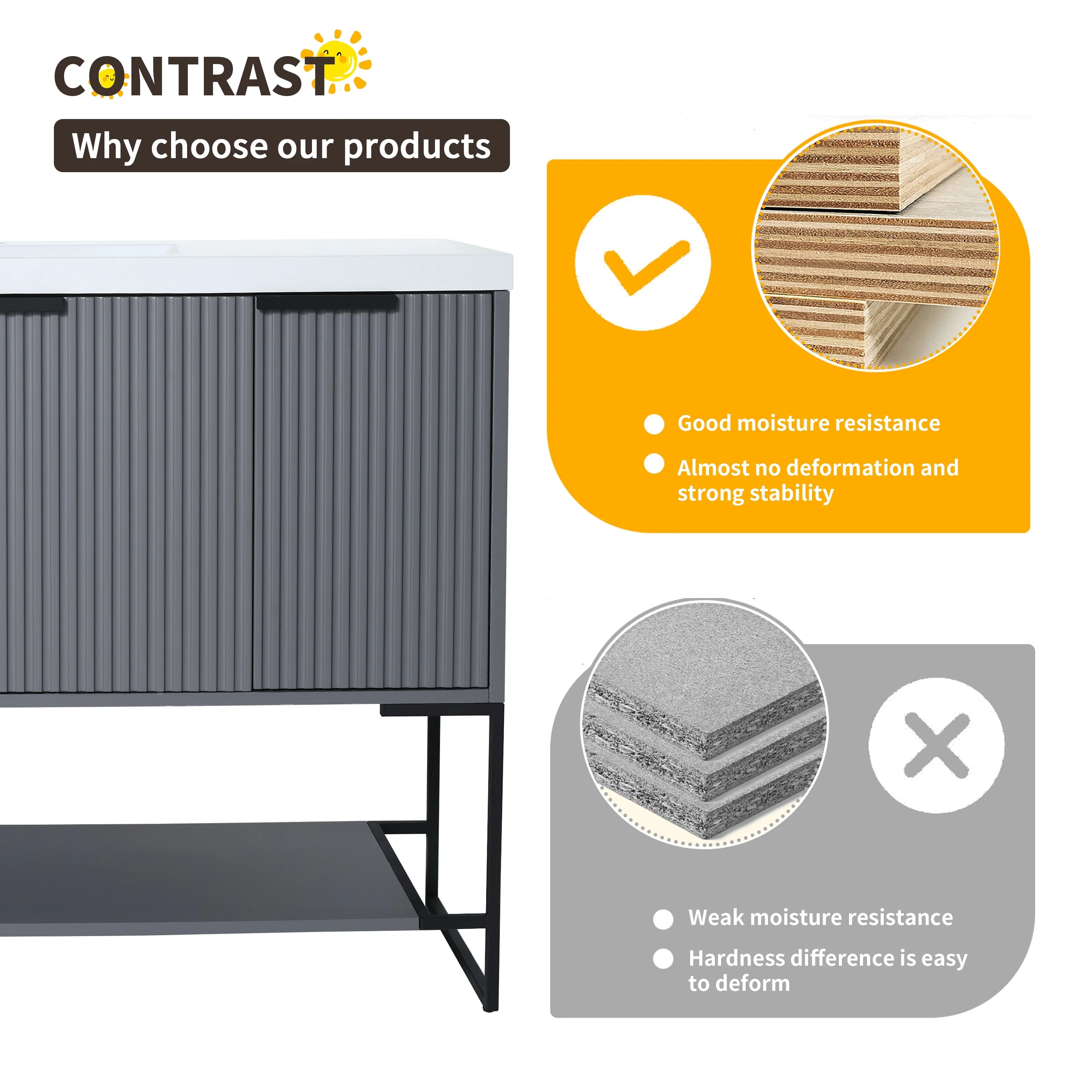 Bathroom Vanity with 2 Soft-close Doors and Double-tier Deep Drawer