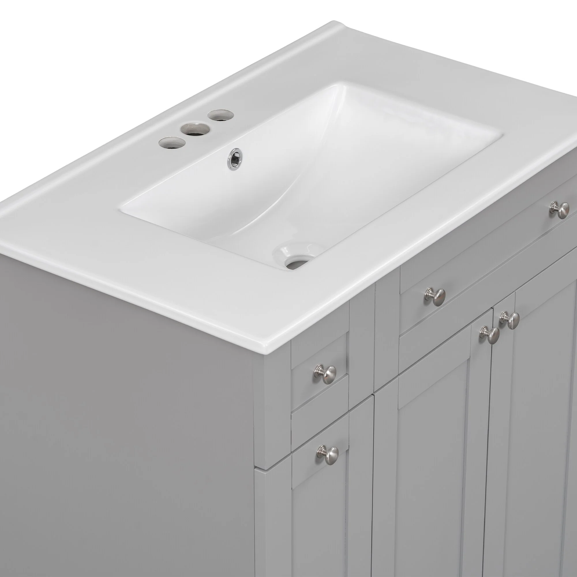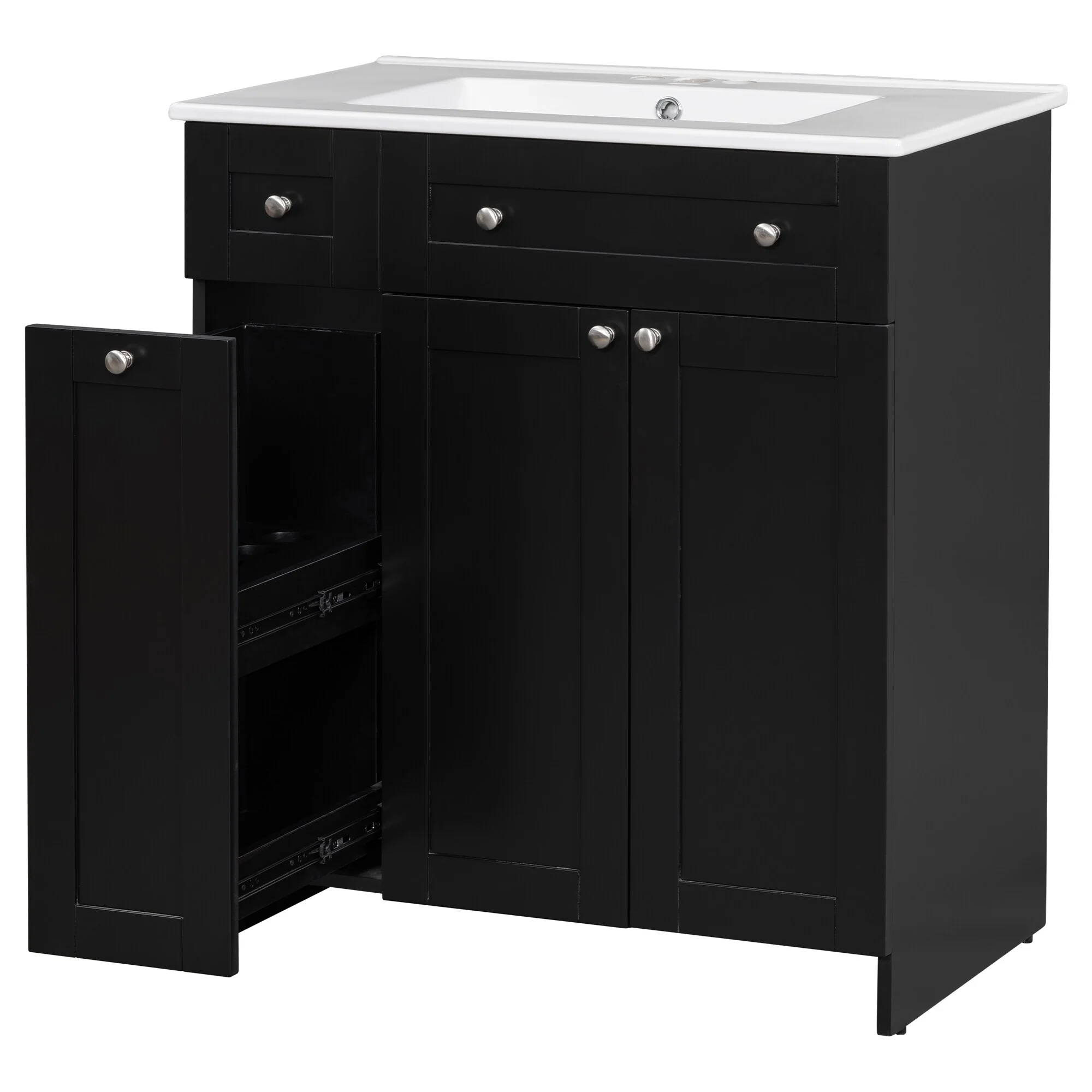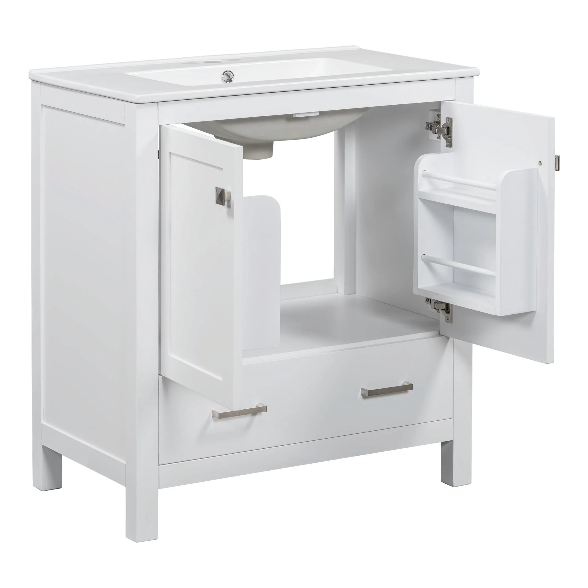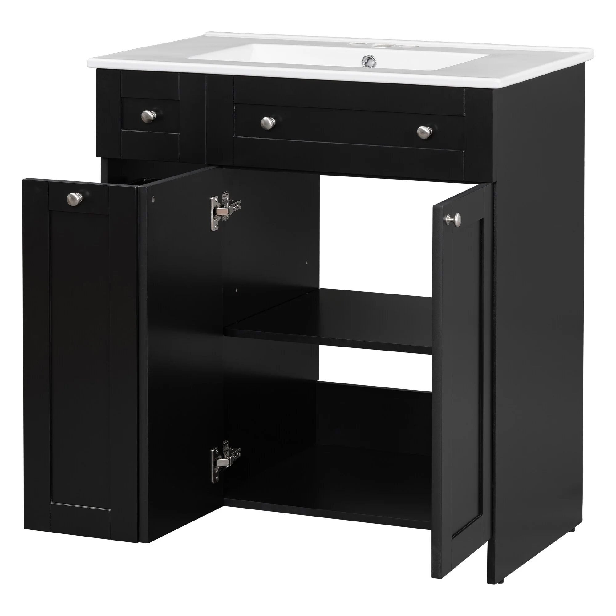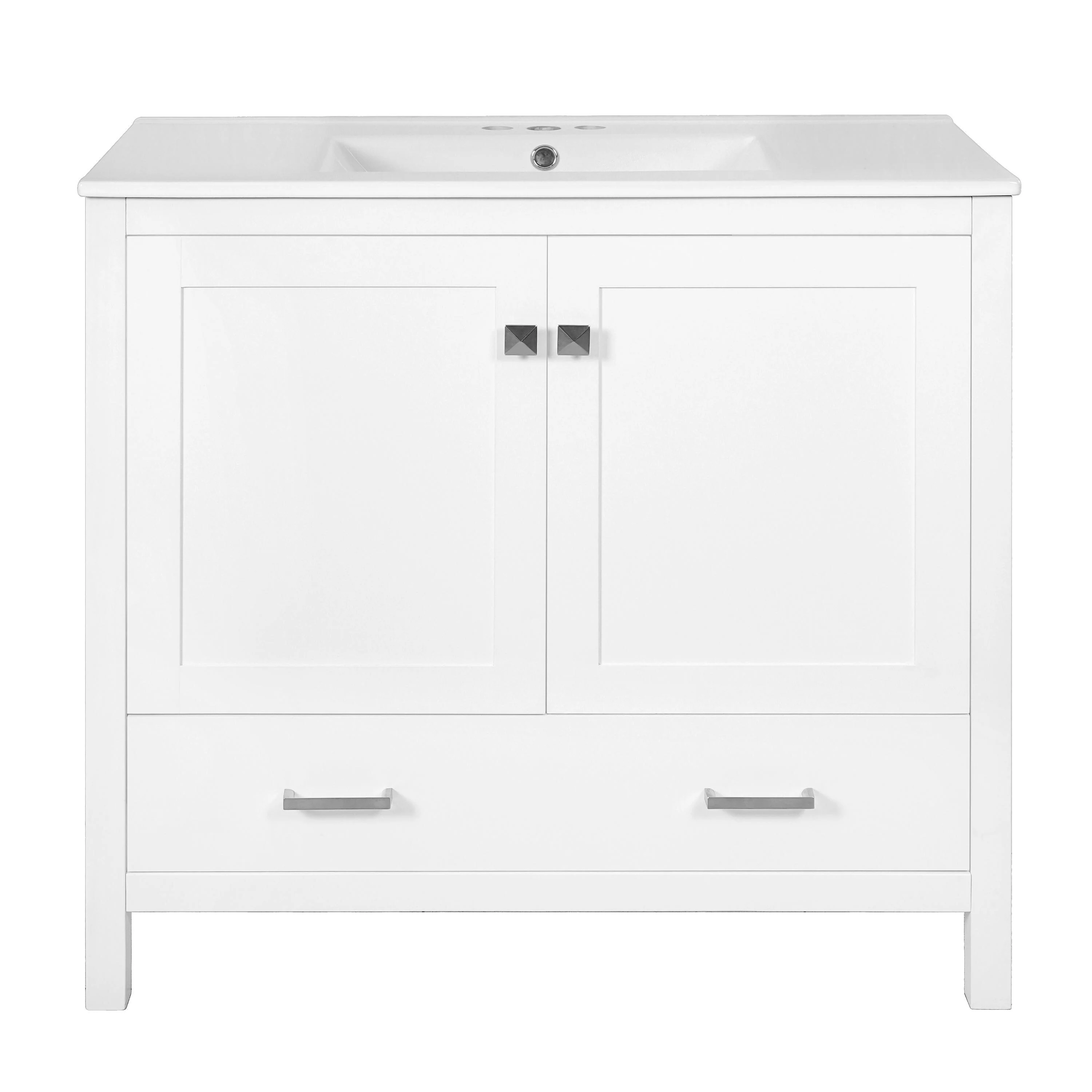 36"/30" Bathroom Vanity with Ceramic Sink, Soft-Close Doors, Double Storage Shelves & Divided Drawer