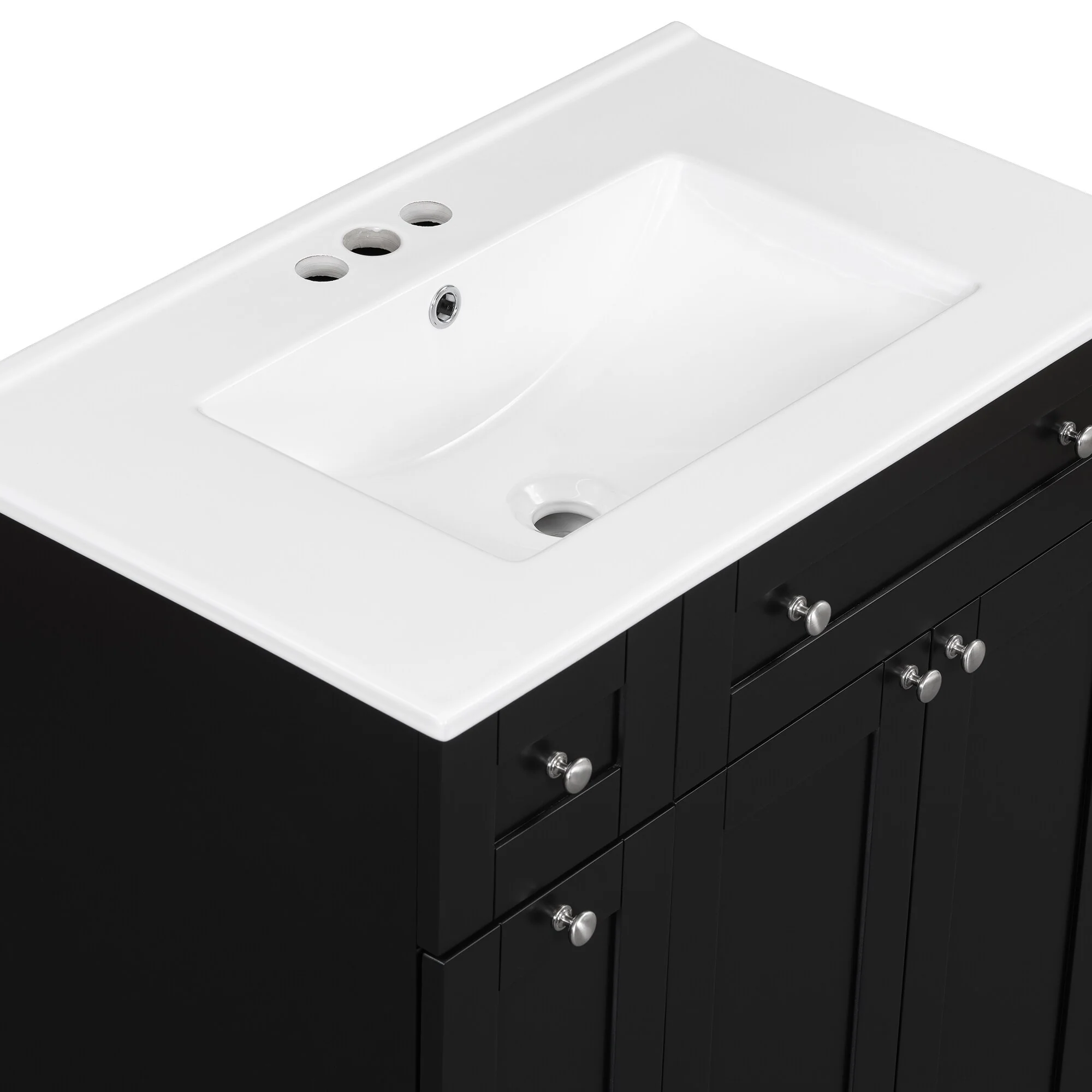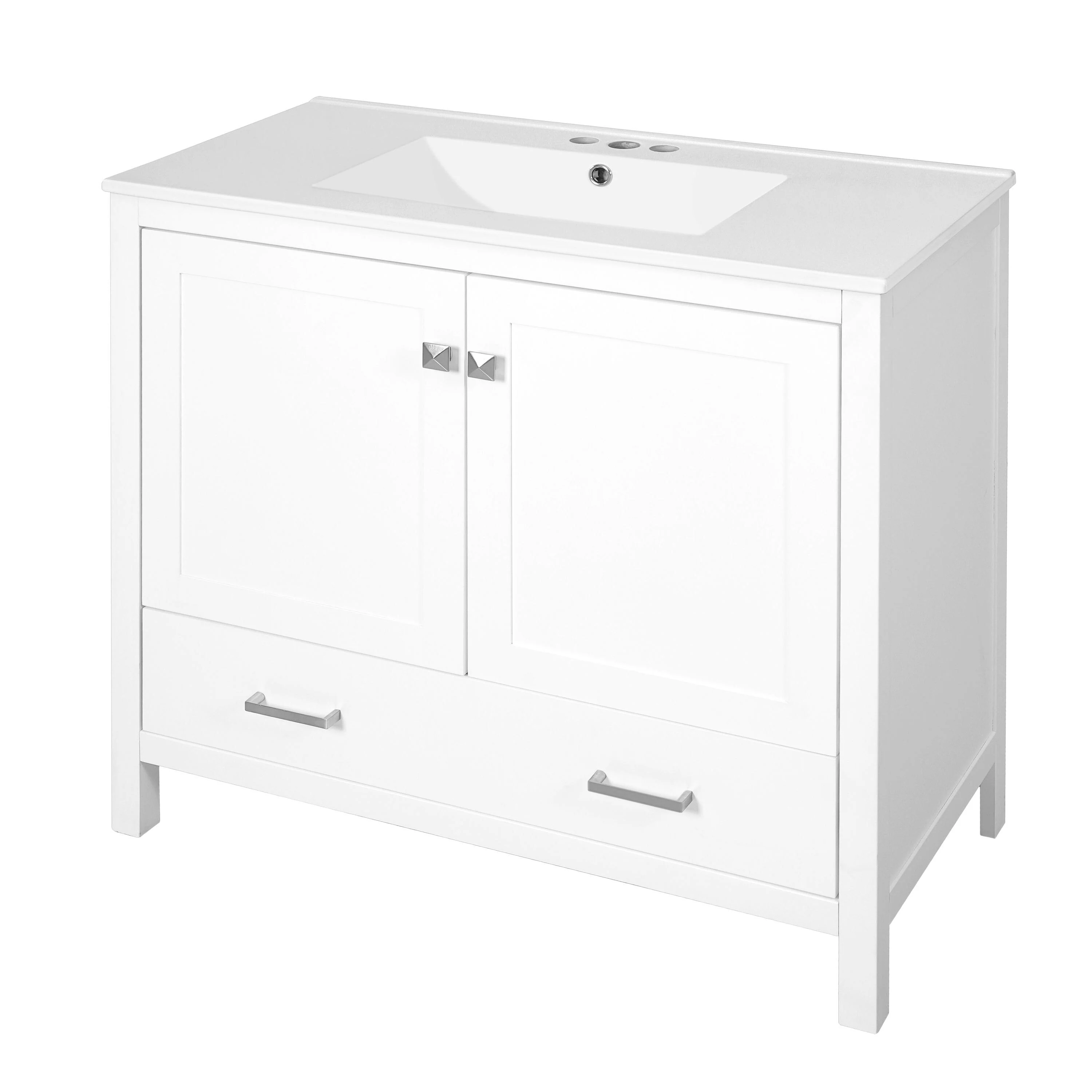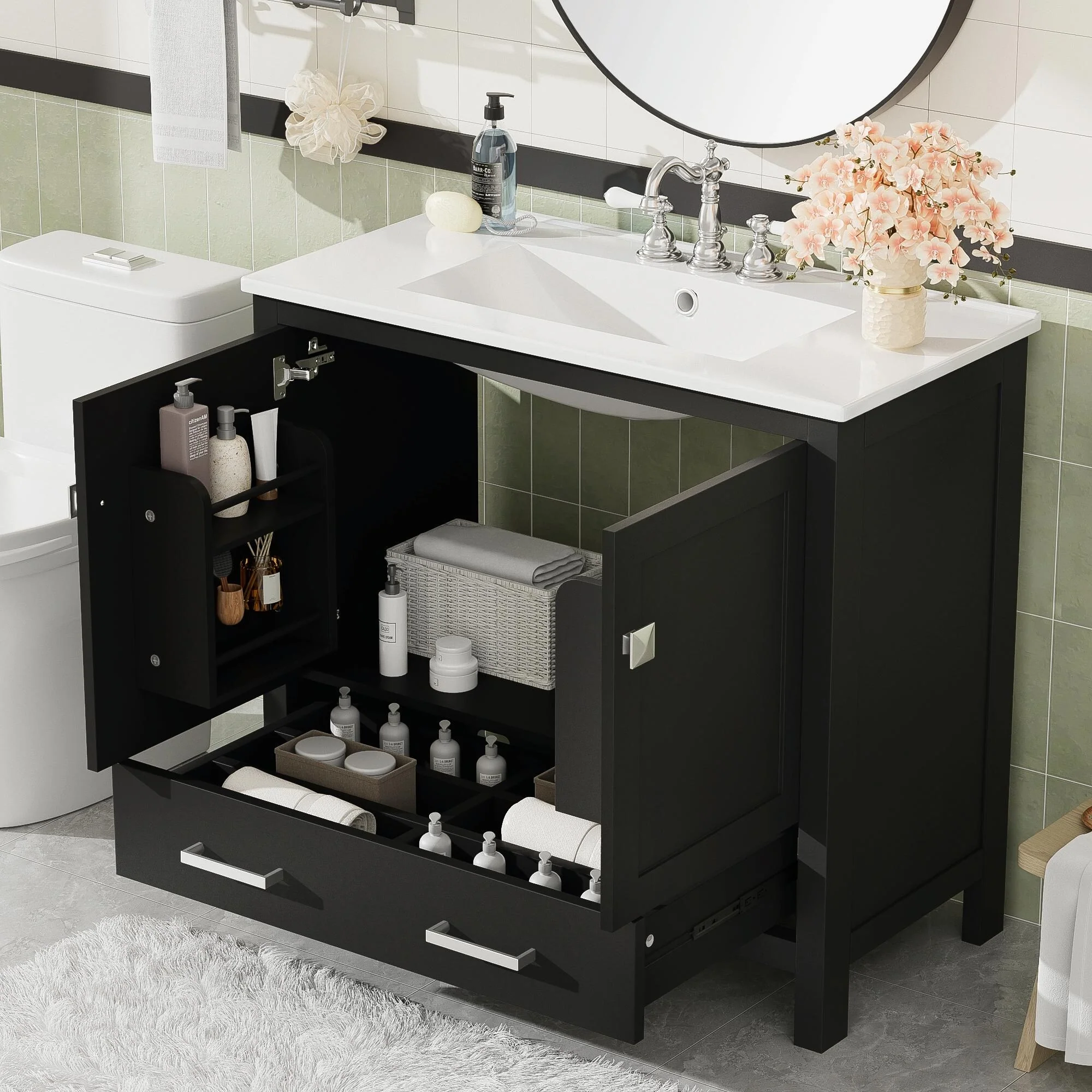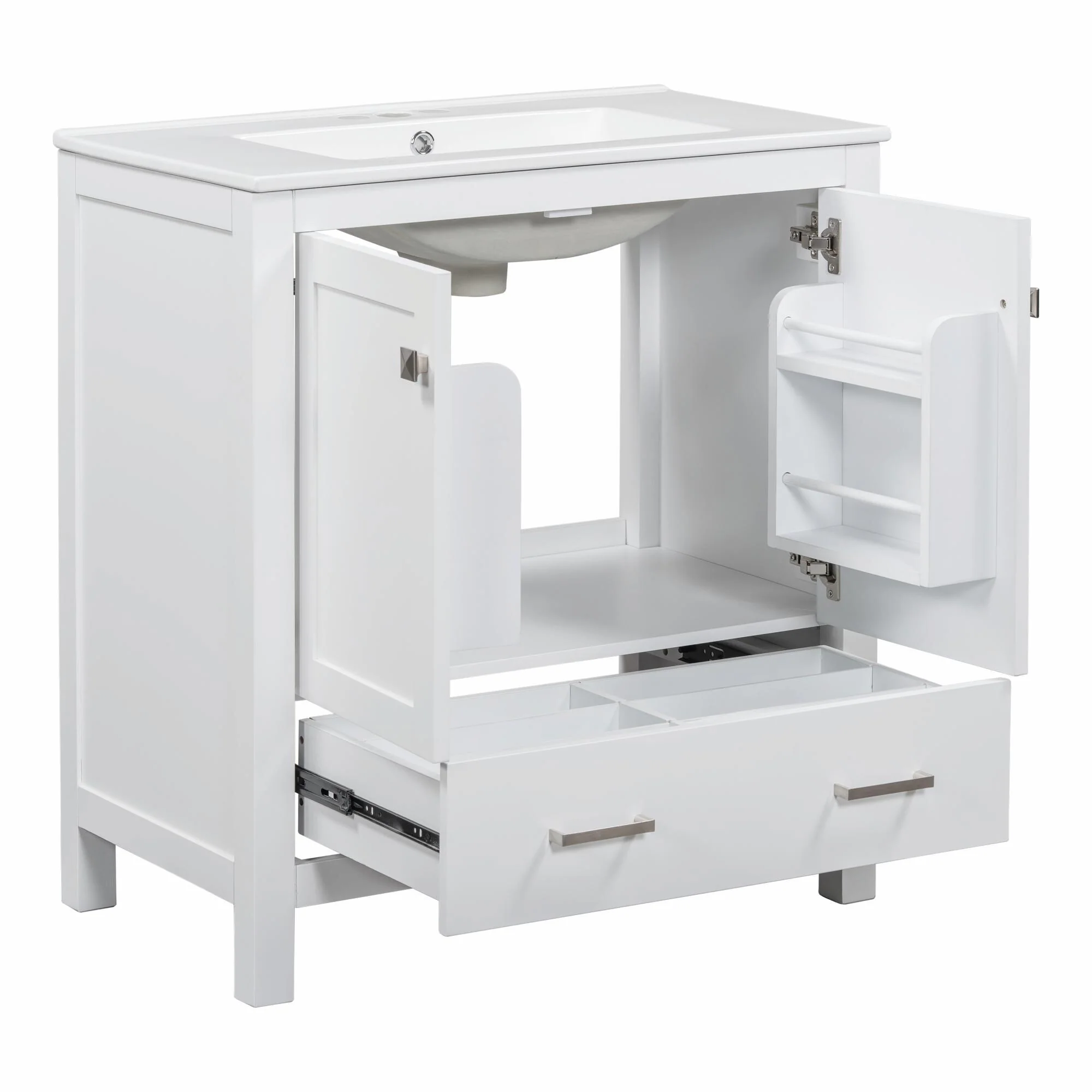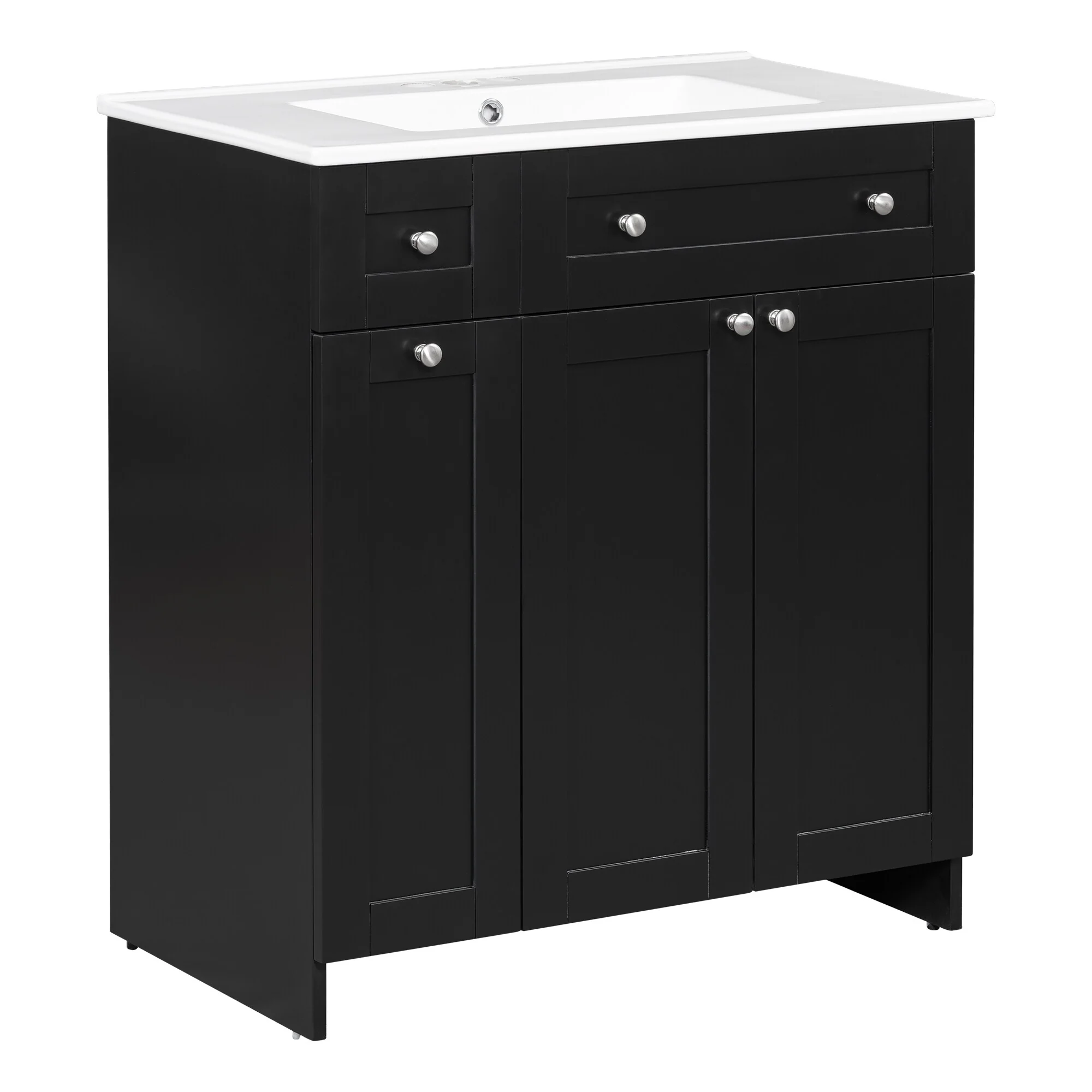 36"/30" Bathroom Vanity with Ceramic Sink, Soft-Close Doors, Double Storage Shelves & Divided Drawer