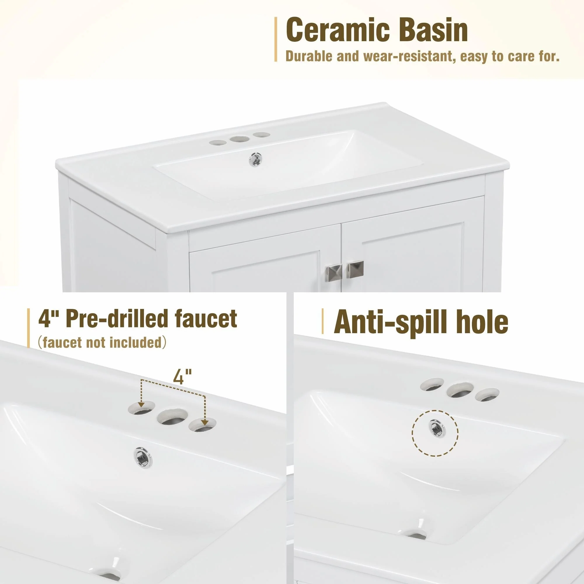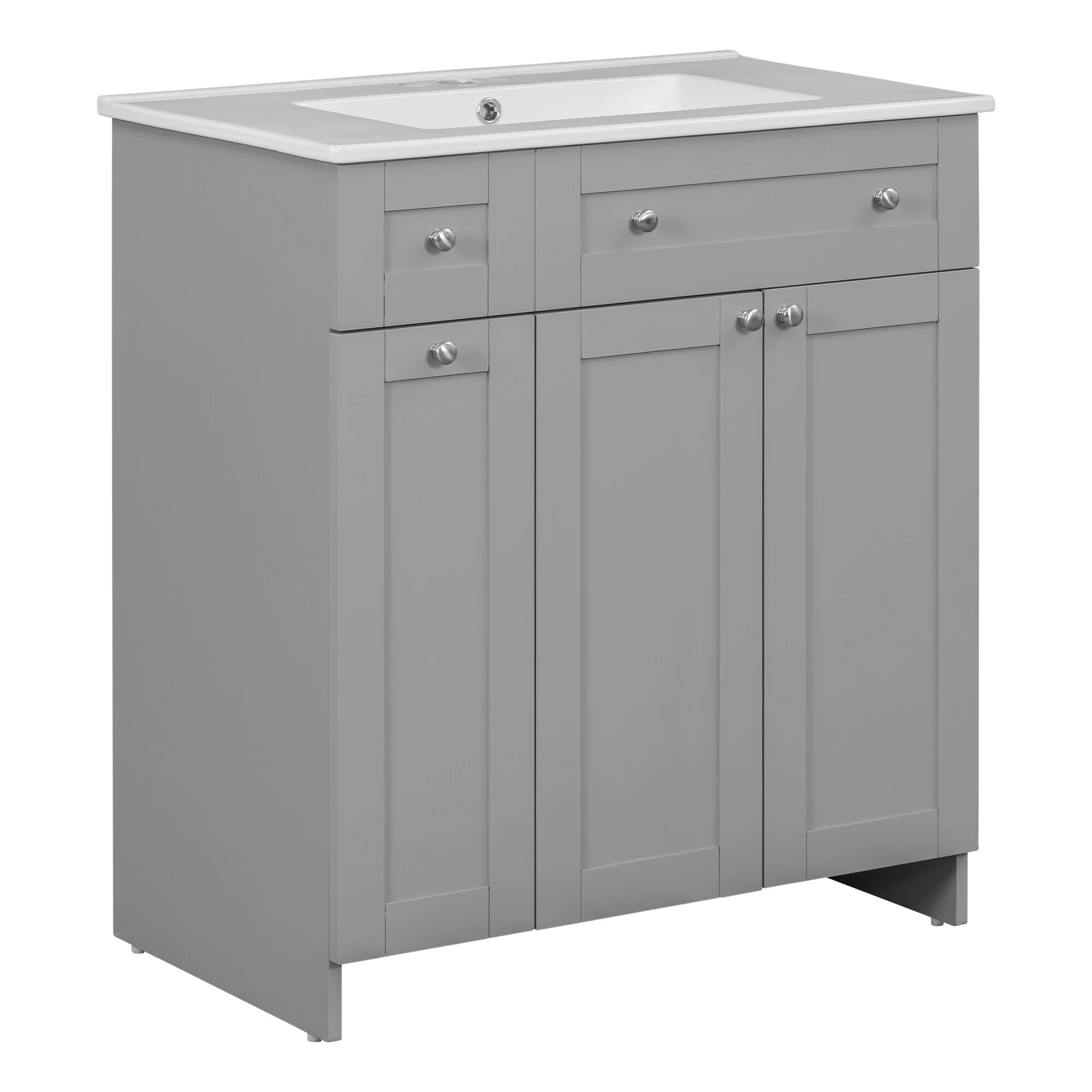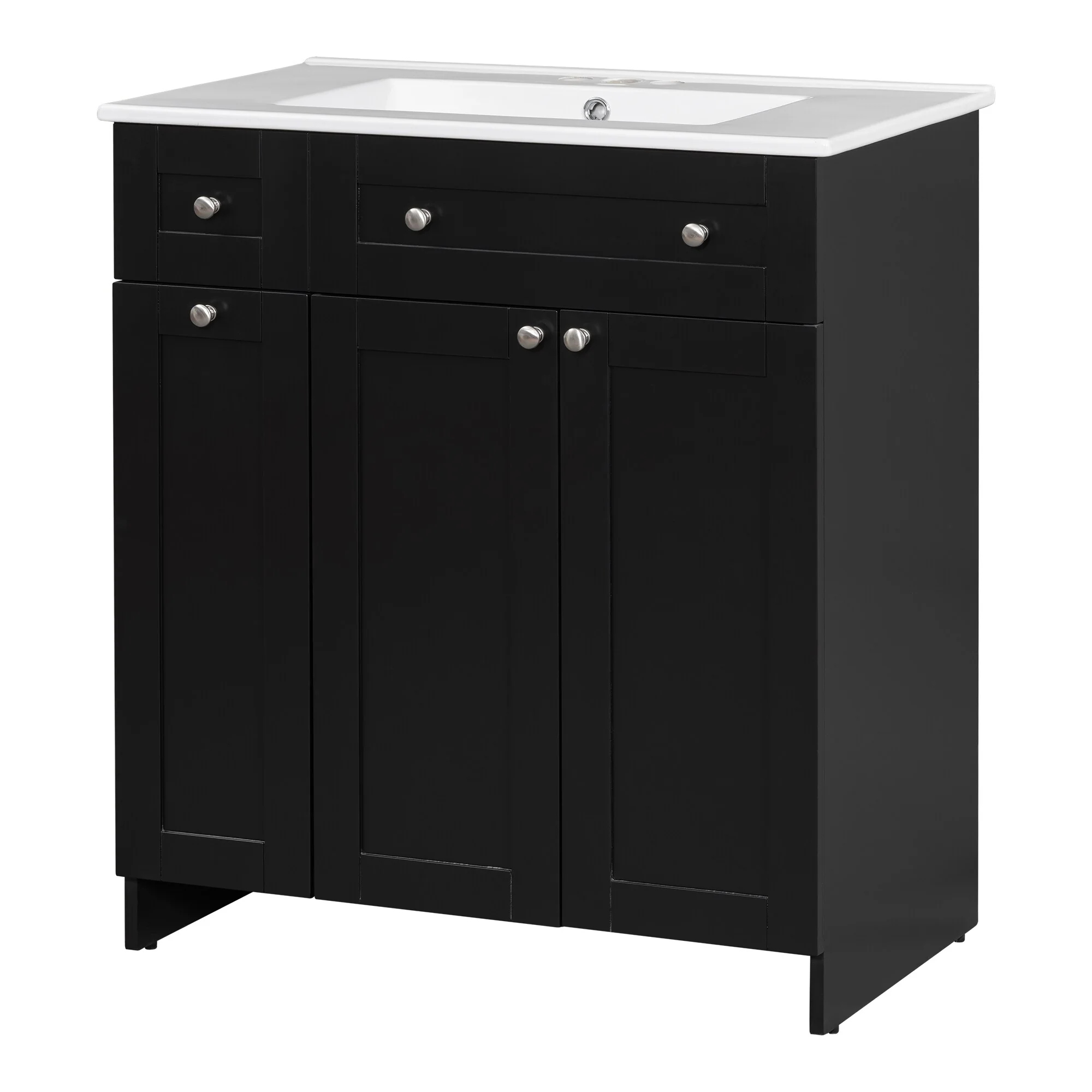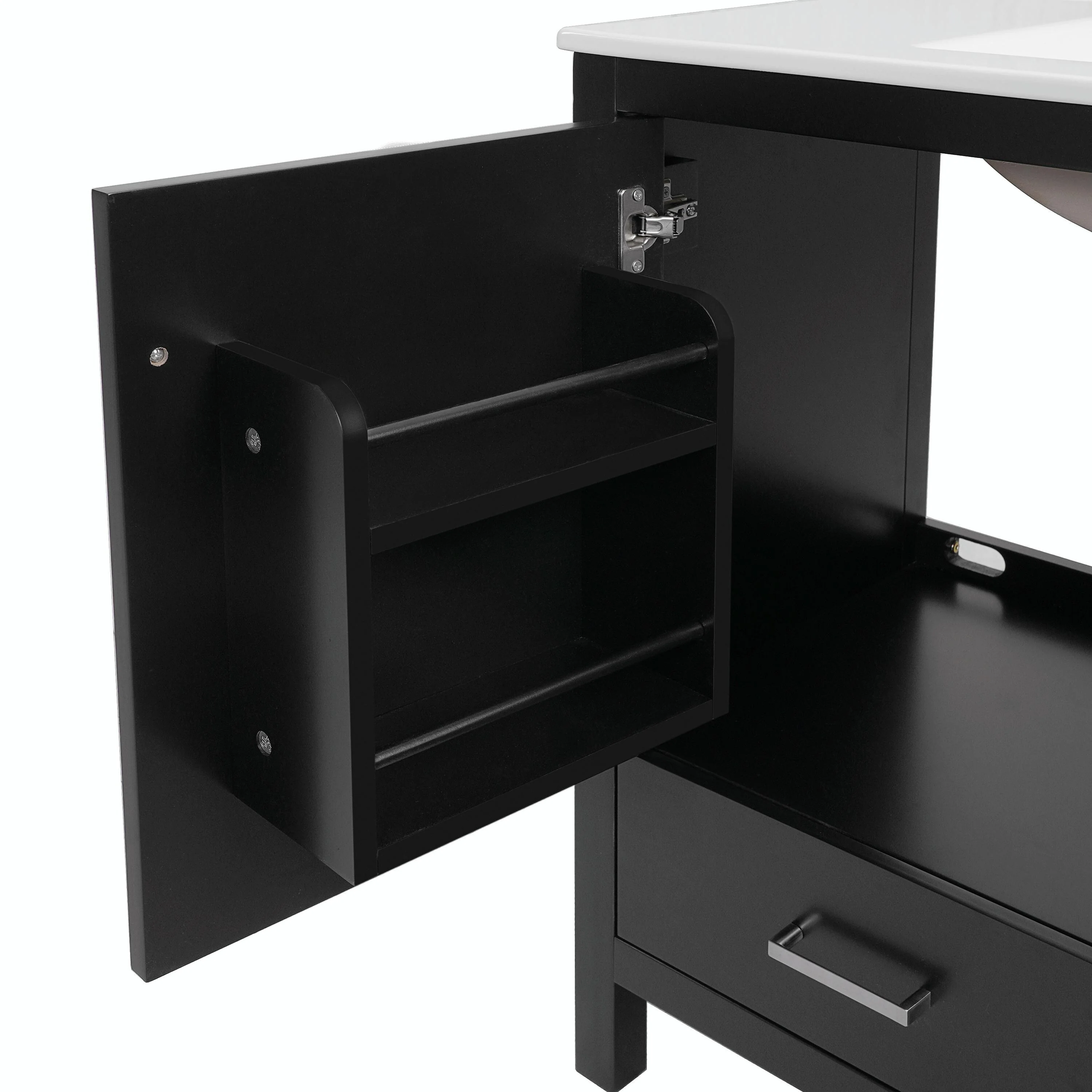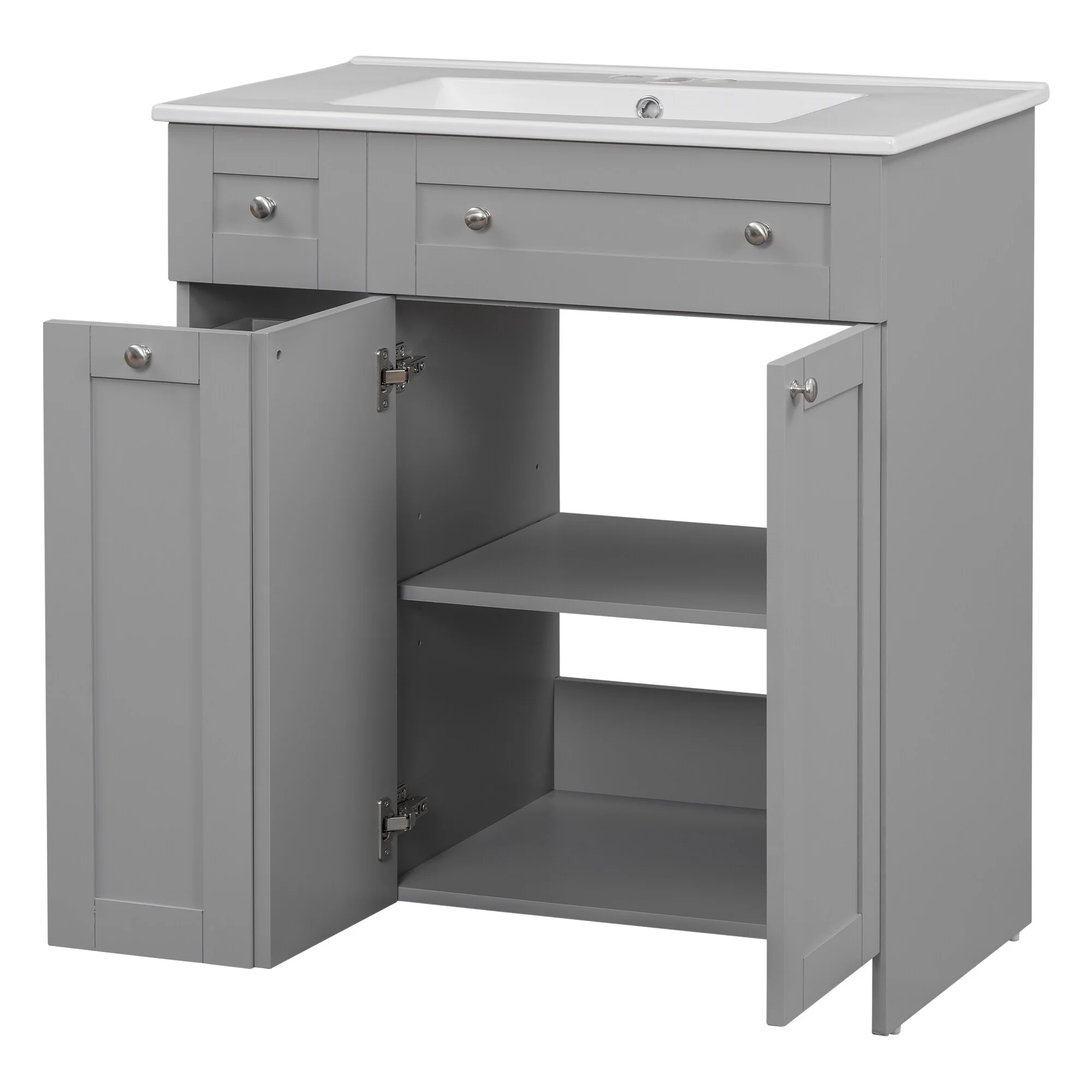 36"/30" Bathroom Vanity with Ceramic Sink, Soft-Close Doors, Double Storage Shelves & Divided Drawer