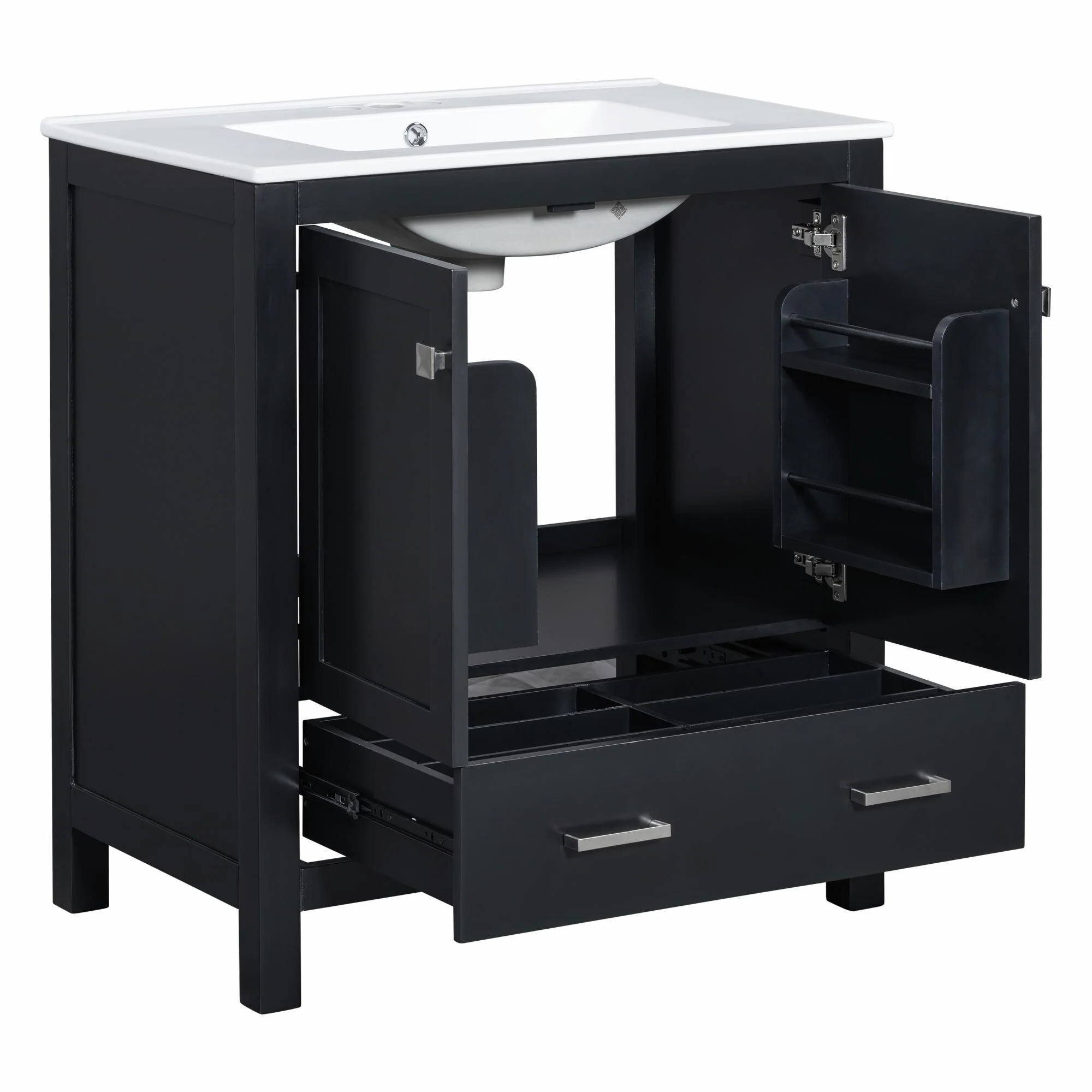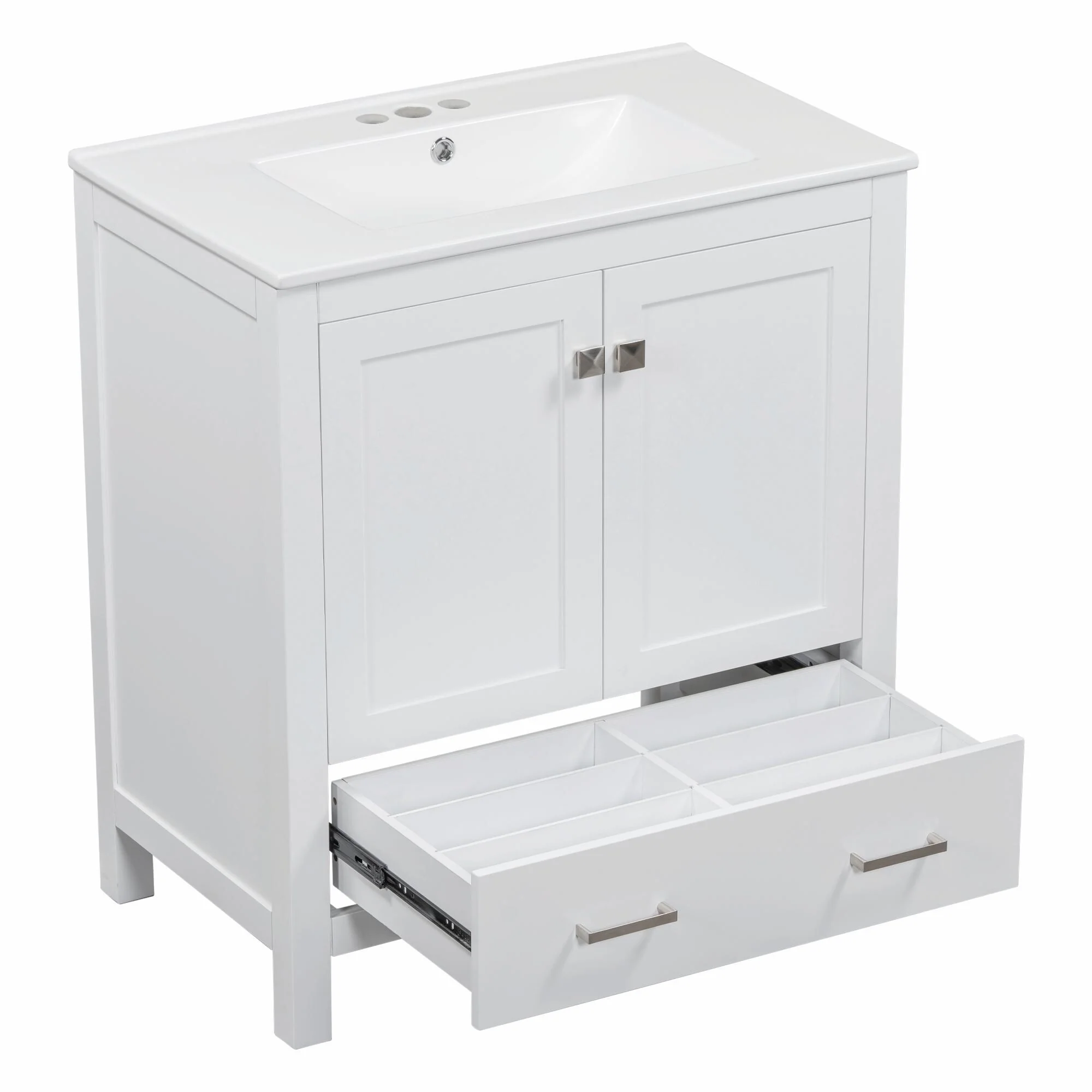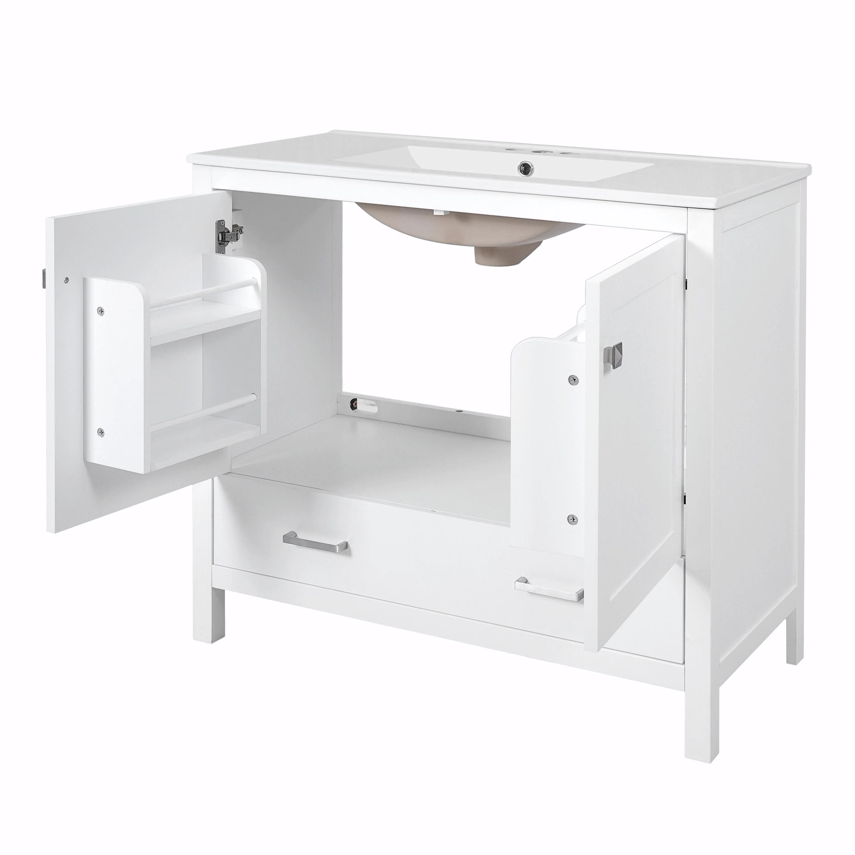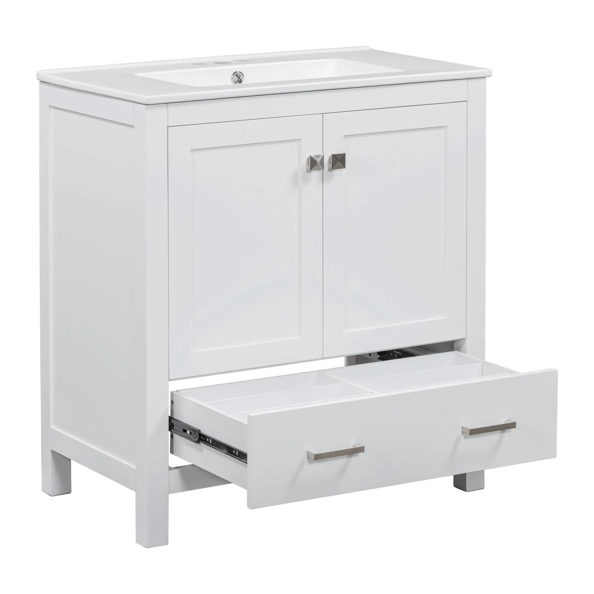 36"/30" Bathroom Vanity with Ceramic Sink, Soft-Close Doors, Double Storage Shelves & Divided Drawer