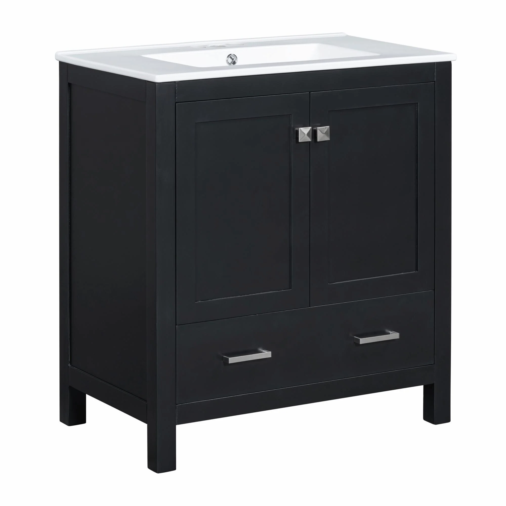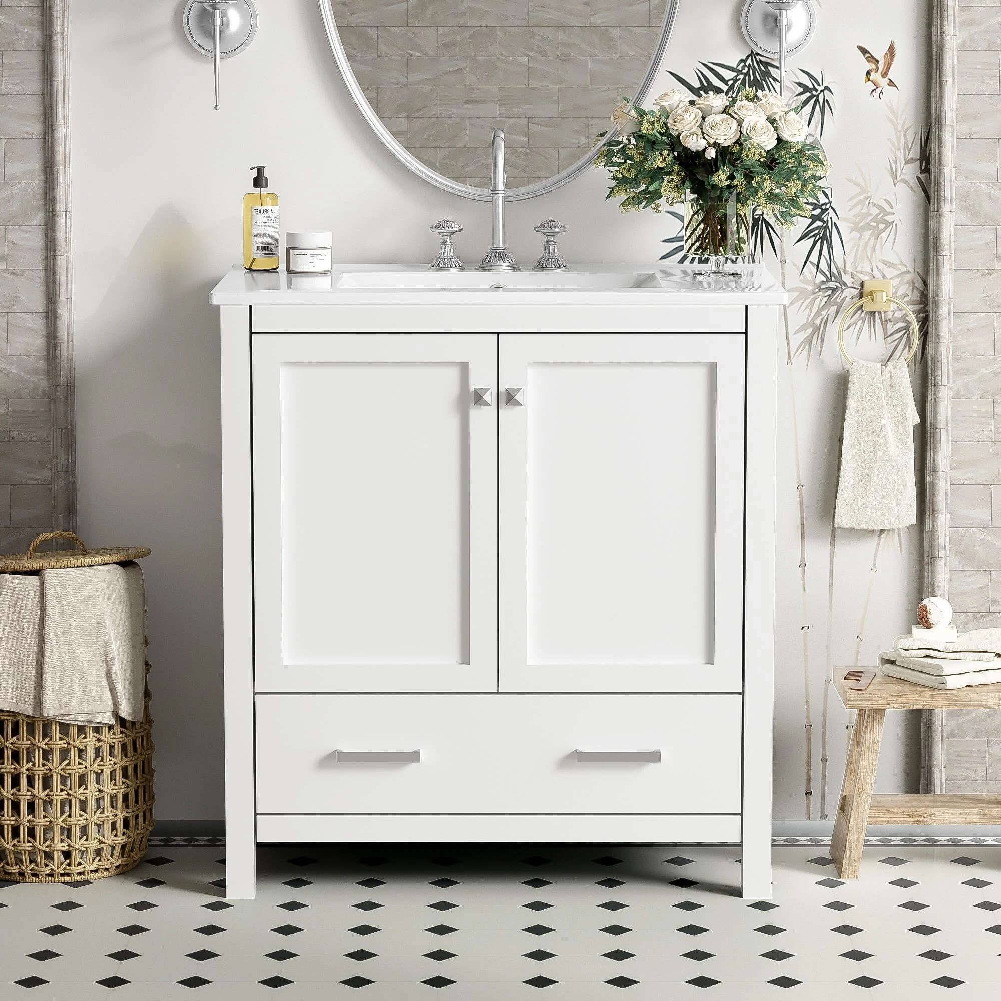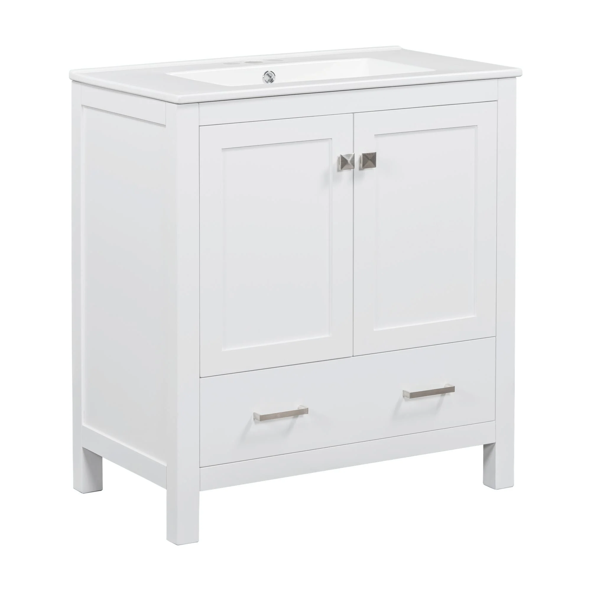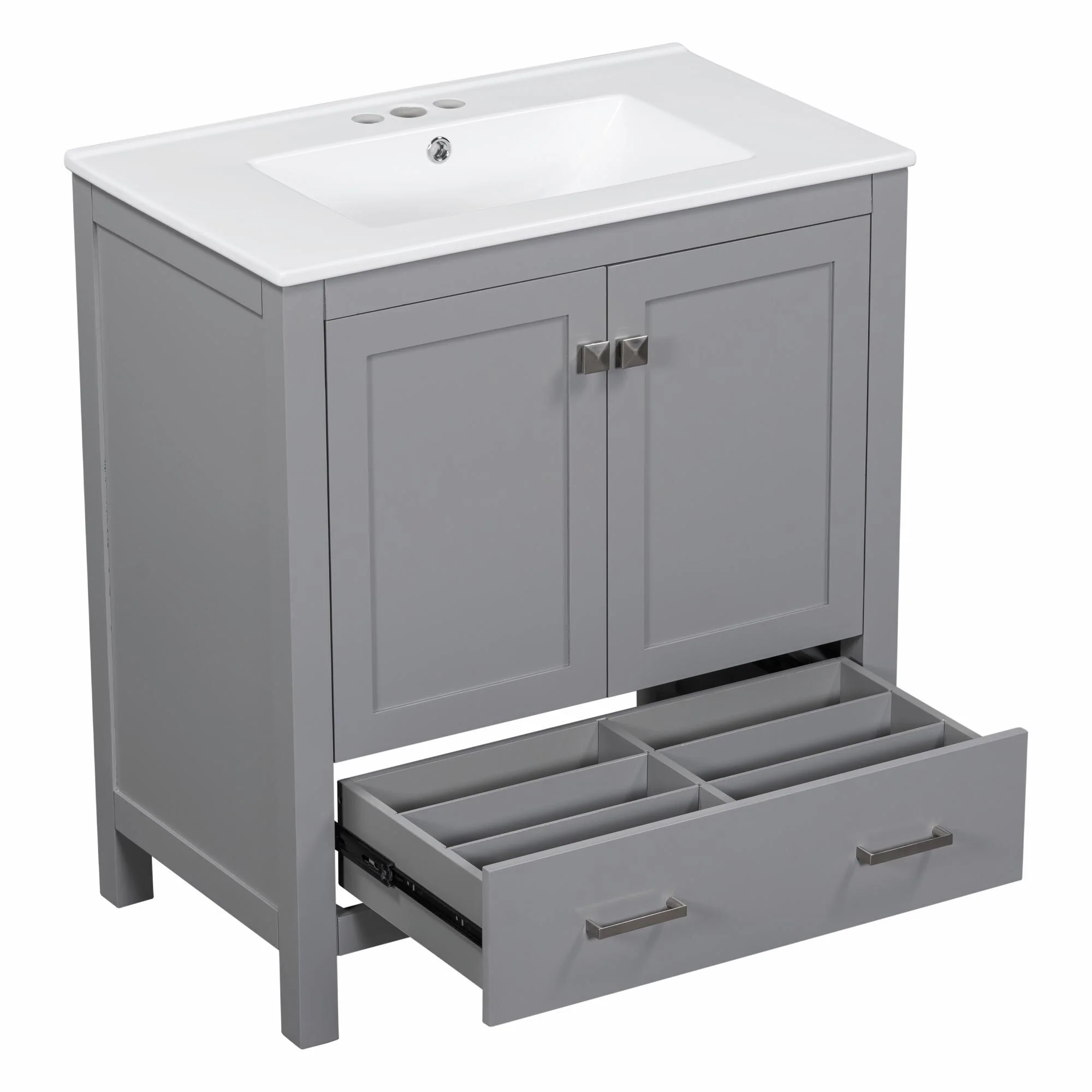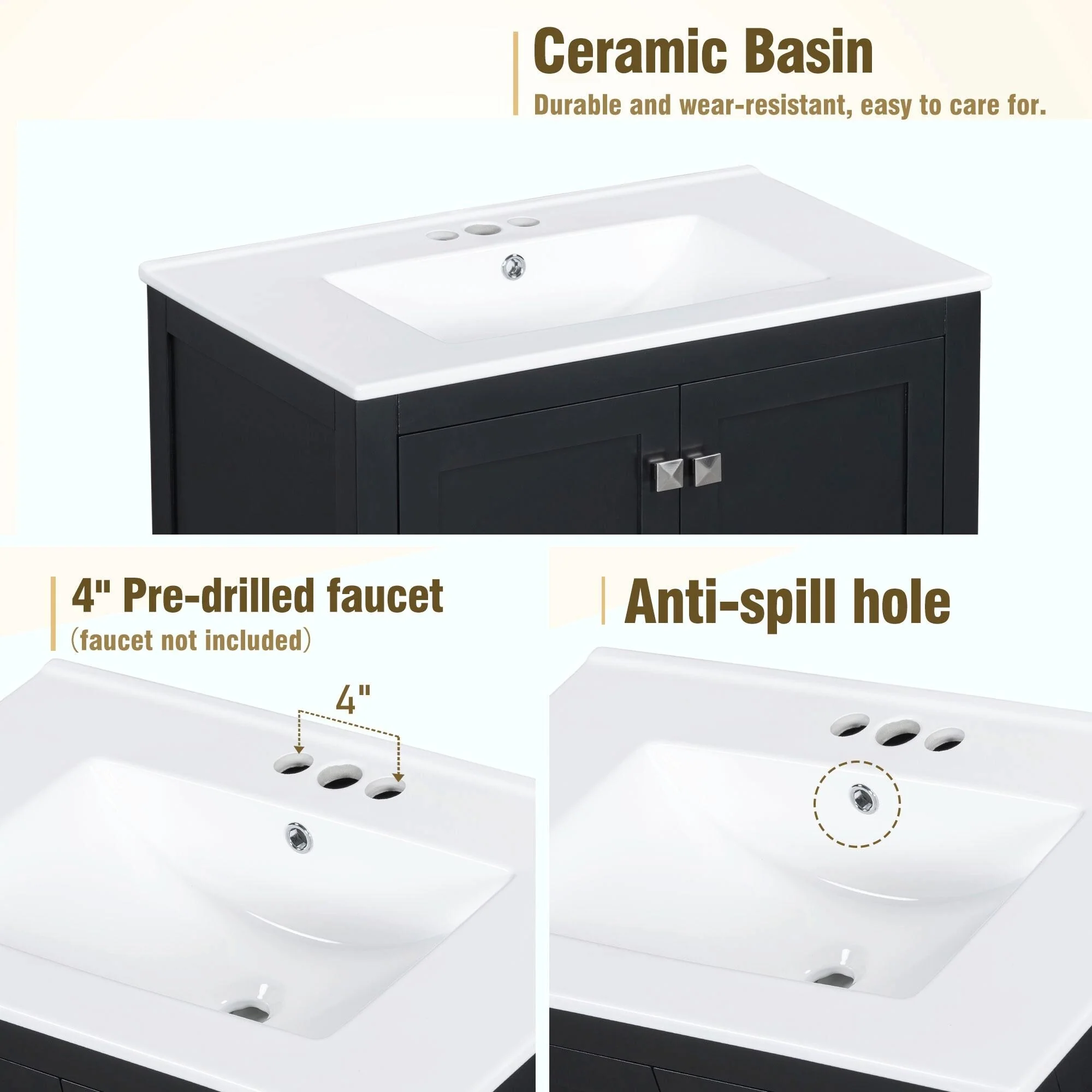 36"/30" Bathroom Vanity with Ceramic Sink, Soft-Close Doors, Double Storage Shelves & Divided Drawer