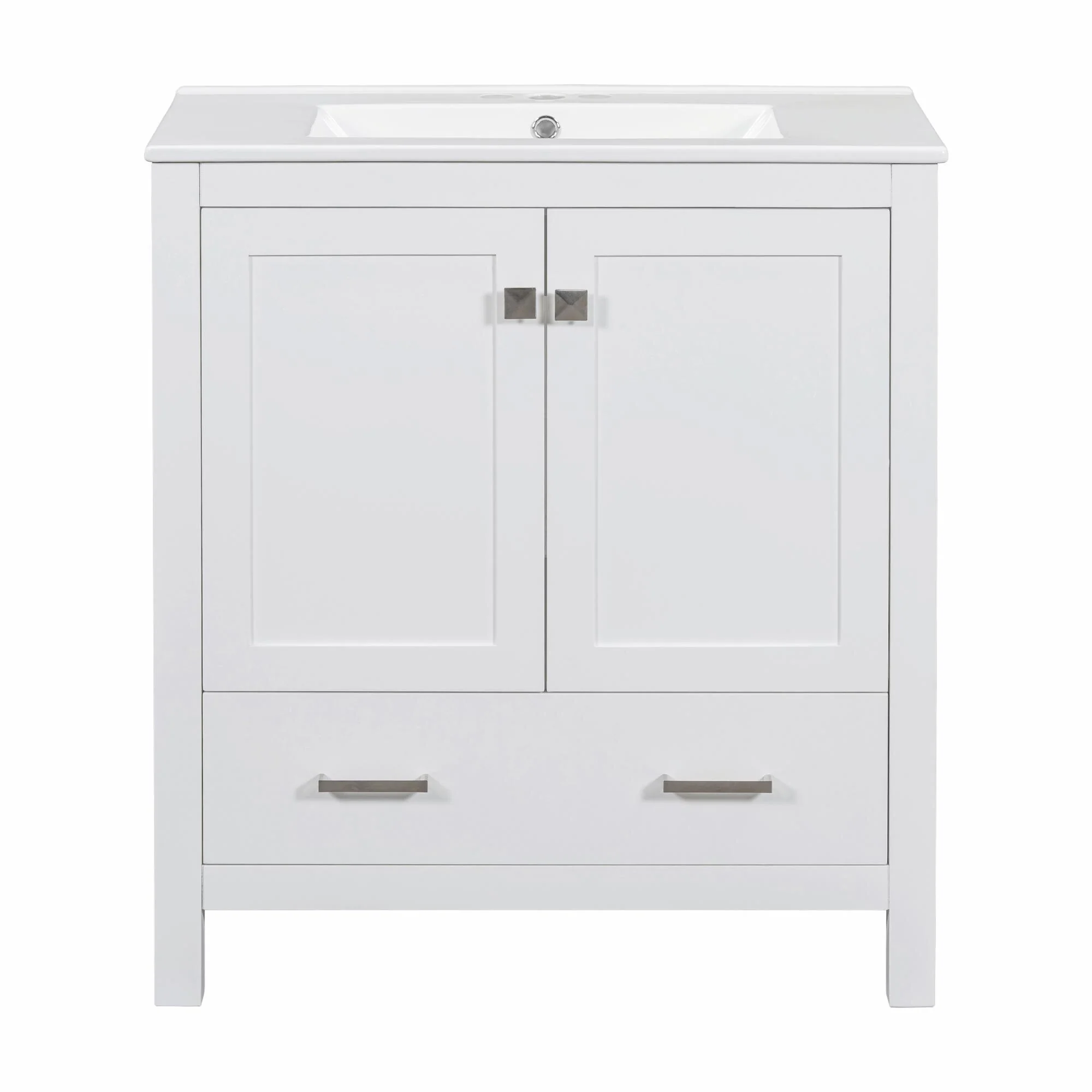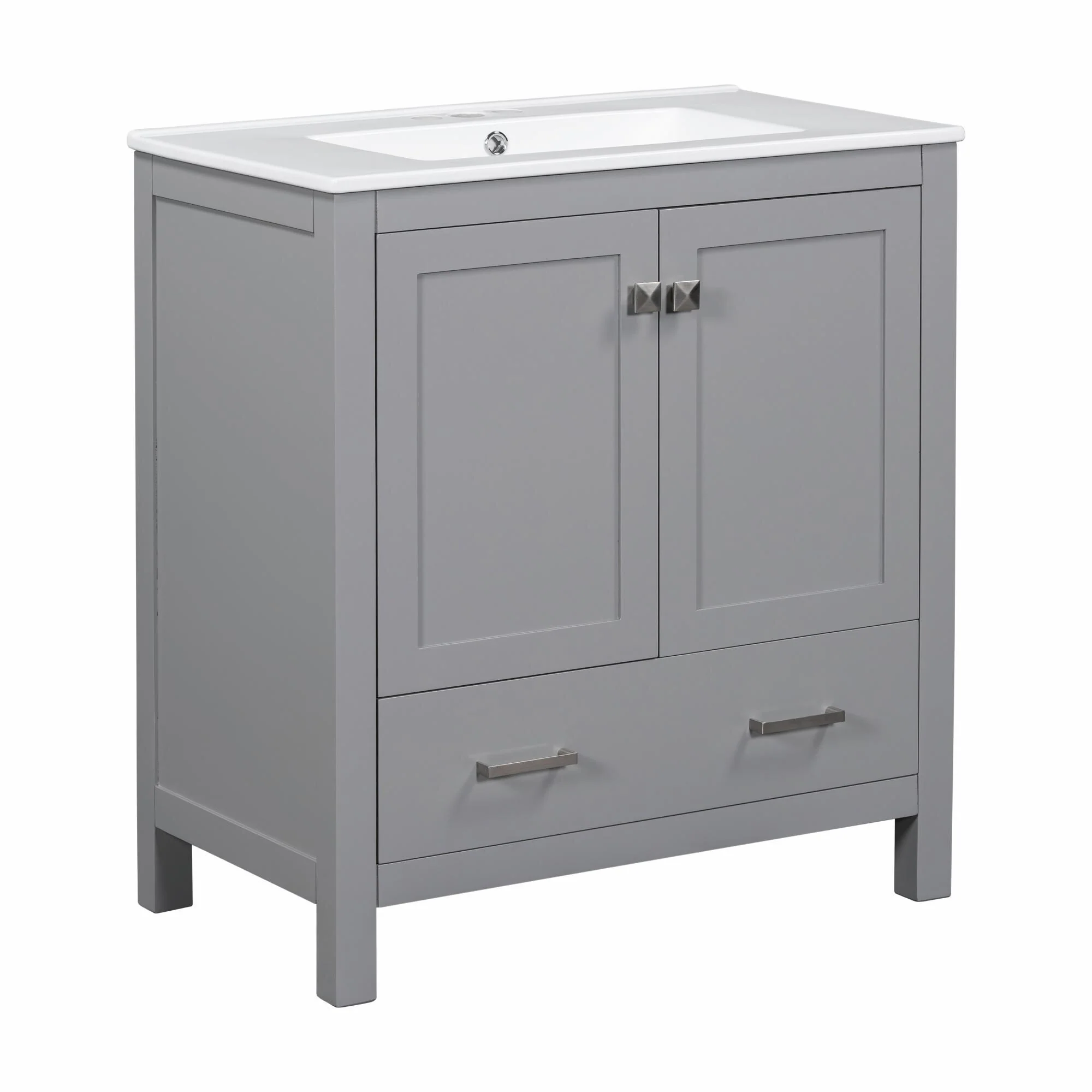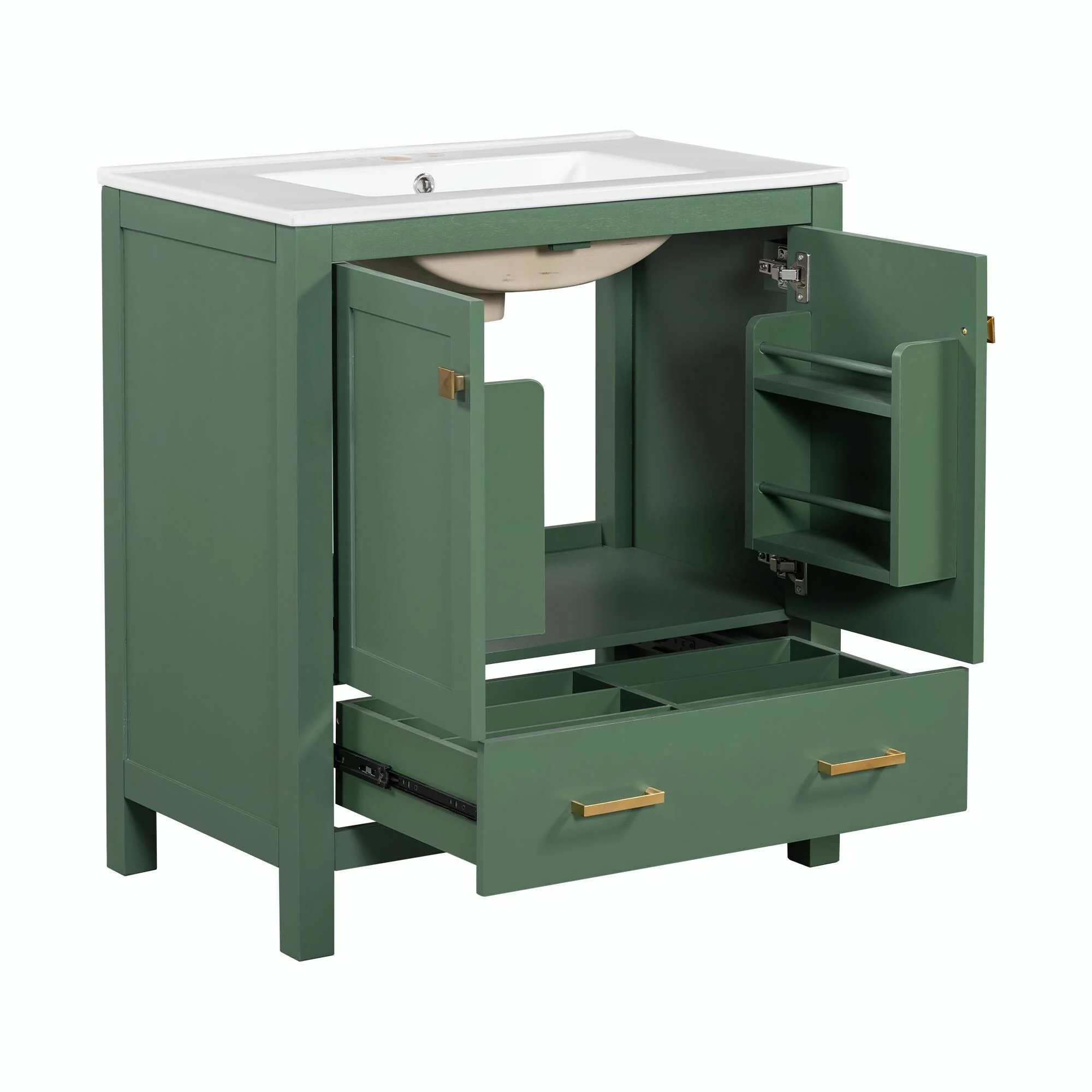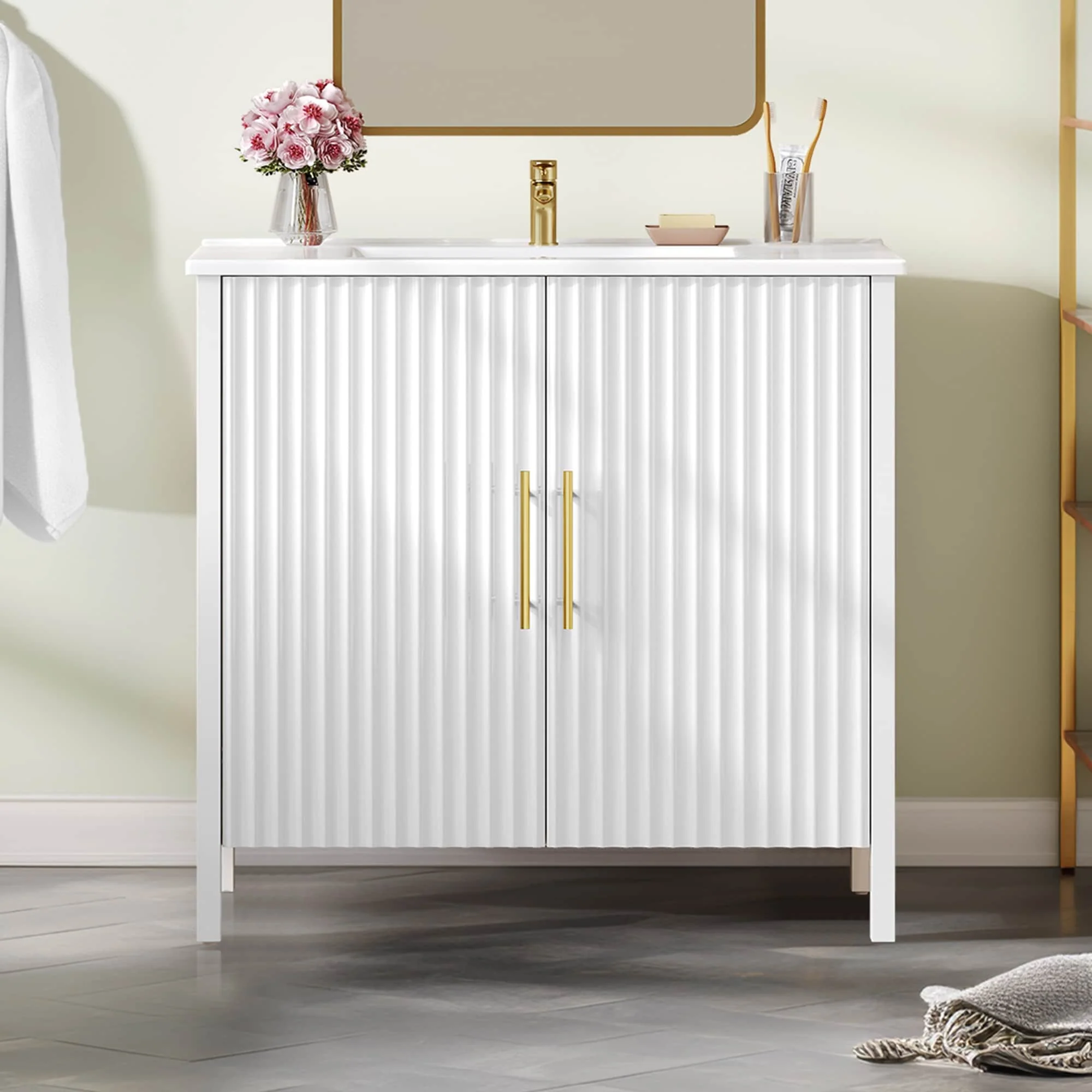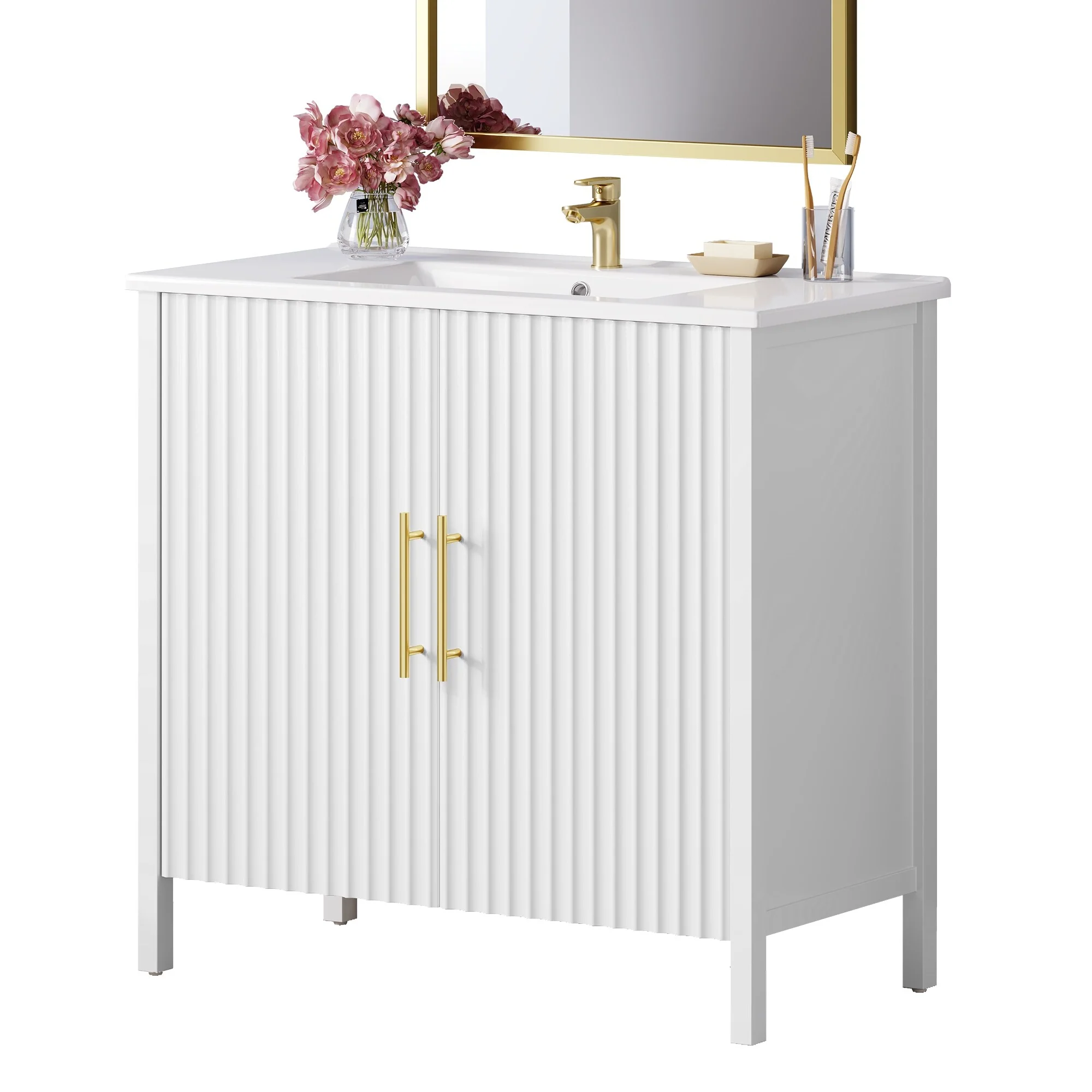 36"/30" Bathroom Vanity with Ceramic Sink, Soft-Close Doors, Double Storage Shelves & Divided Drawer
