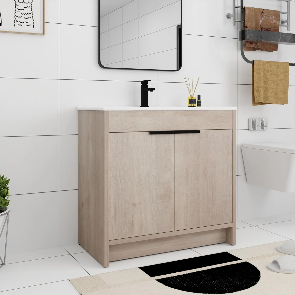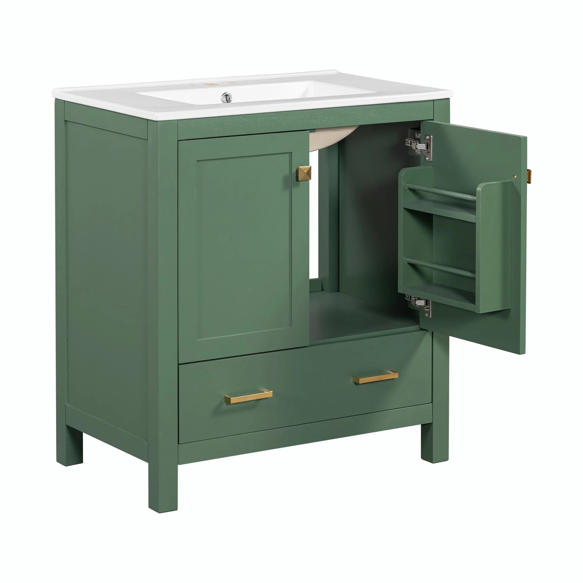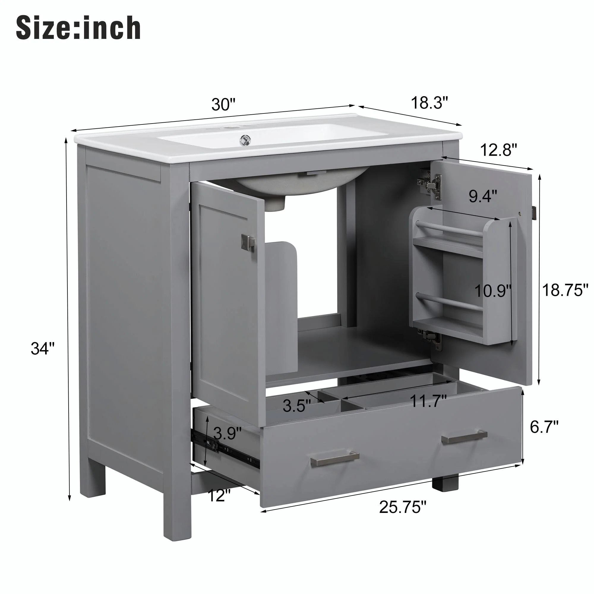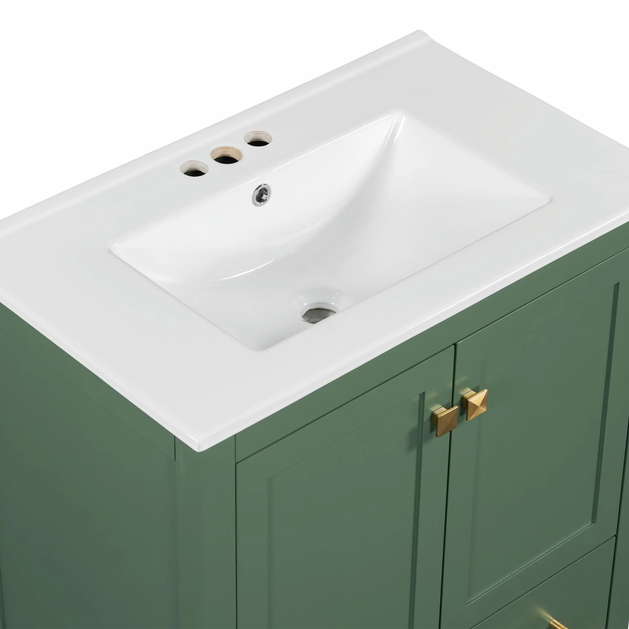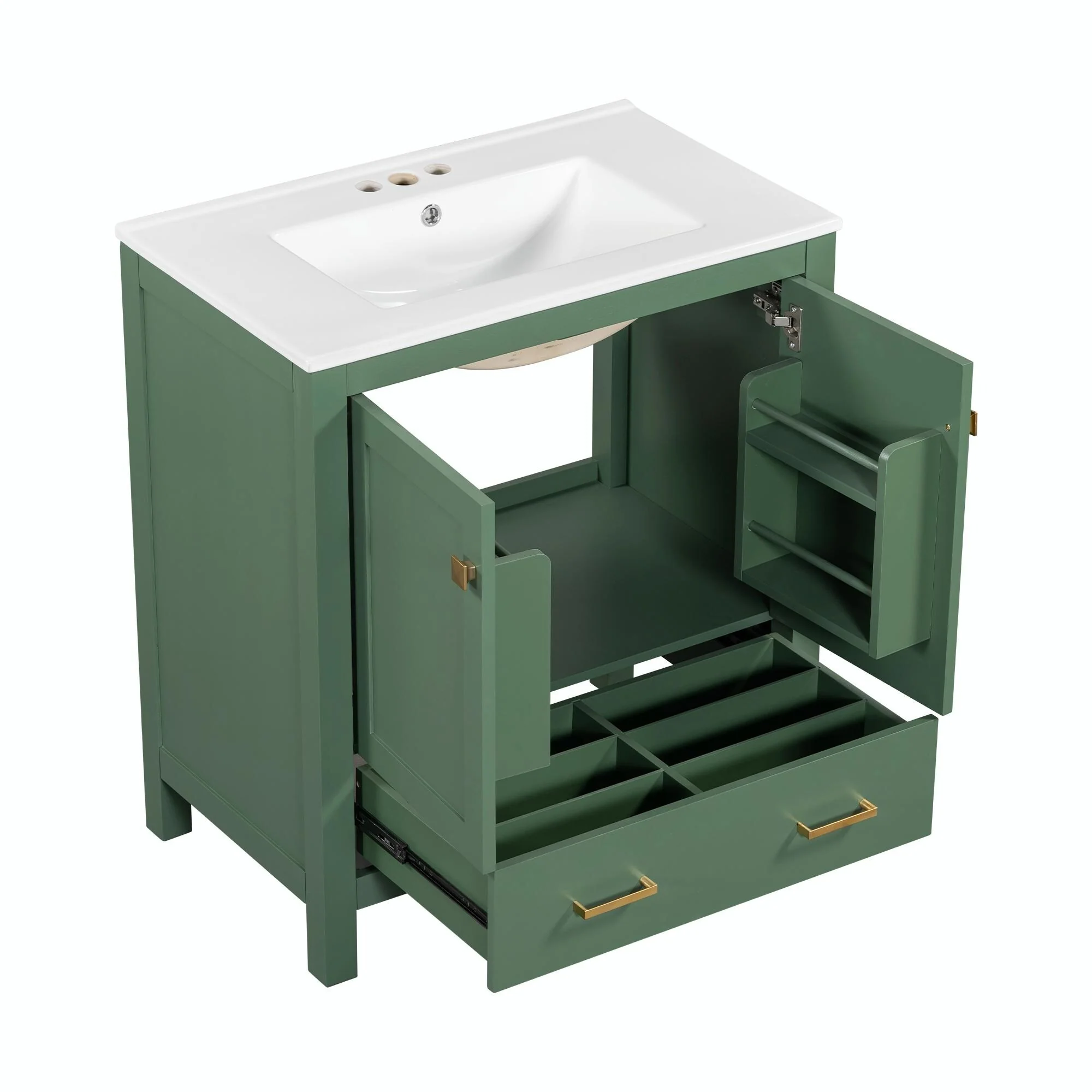 36"/30" Bathroom Vanity with Ceramic Sink, Soft-Close Doors, Double Storage Shelves & Divided Drawer