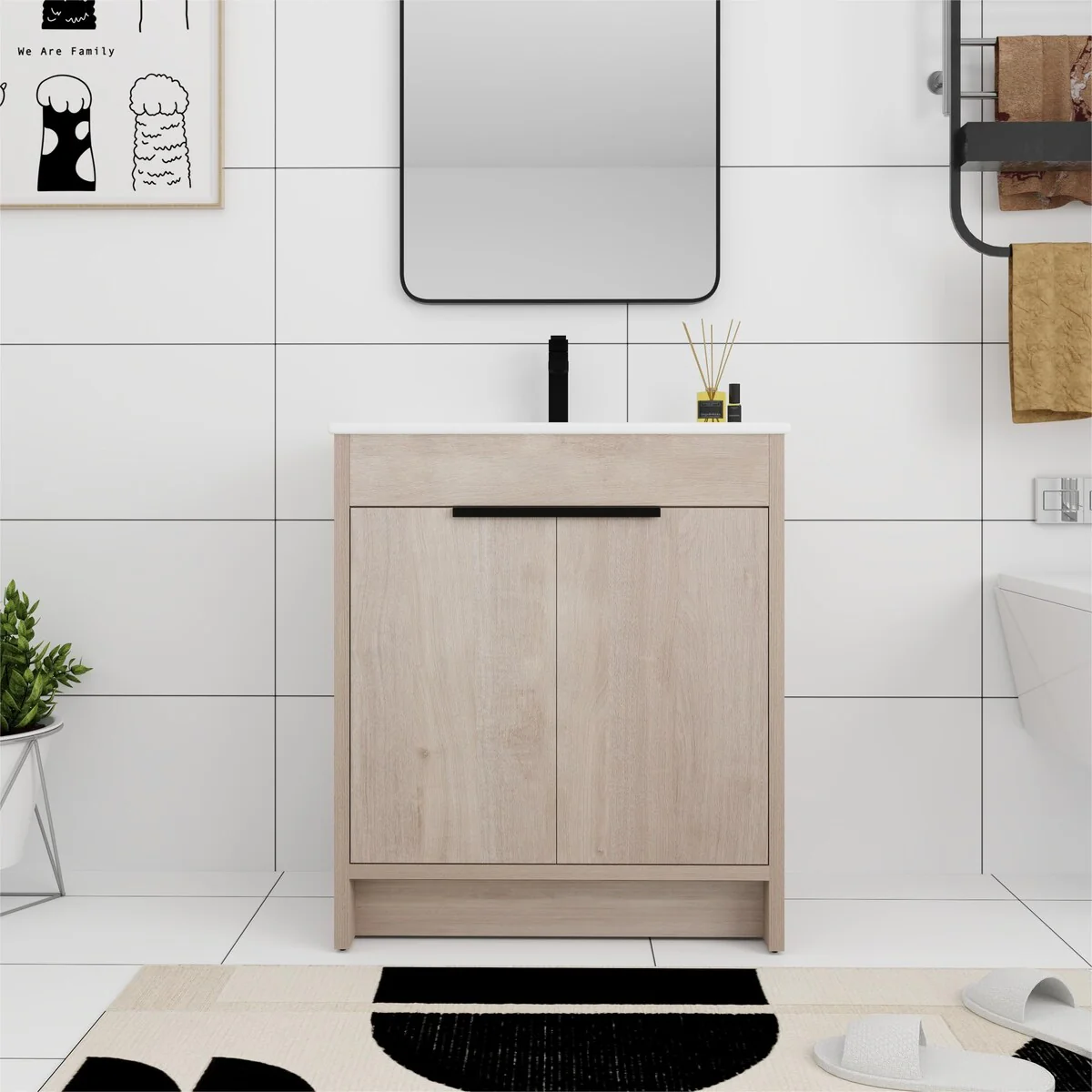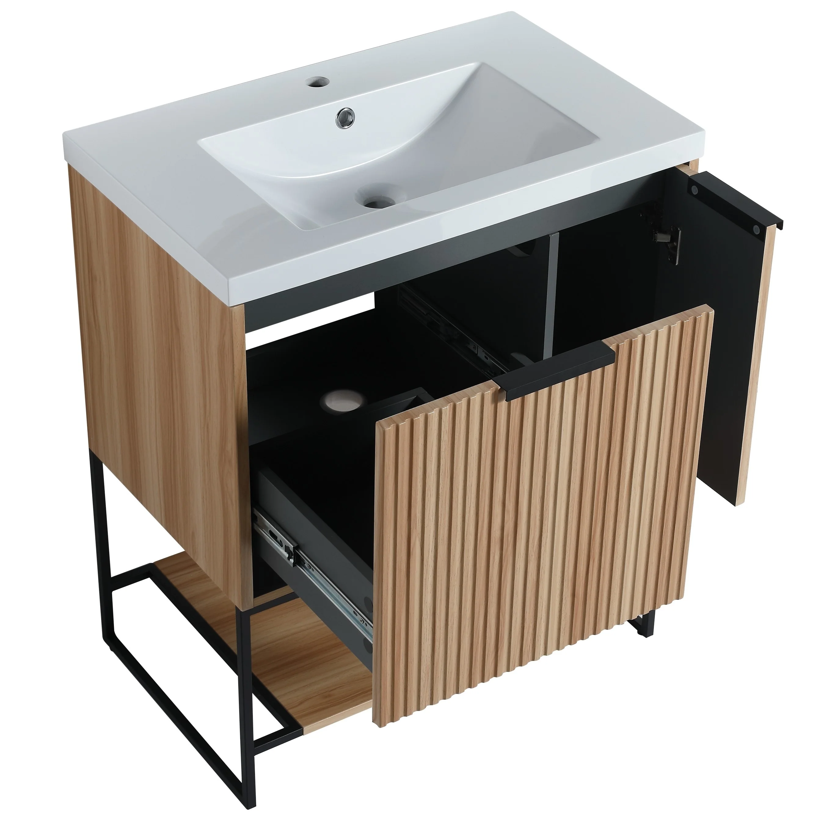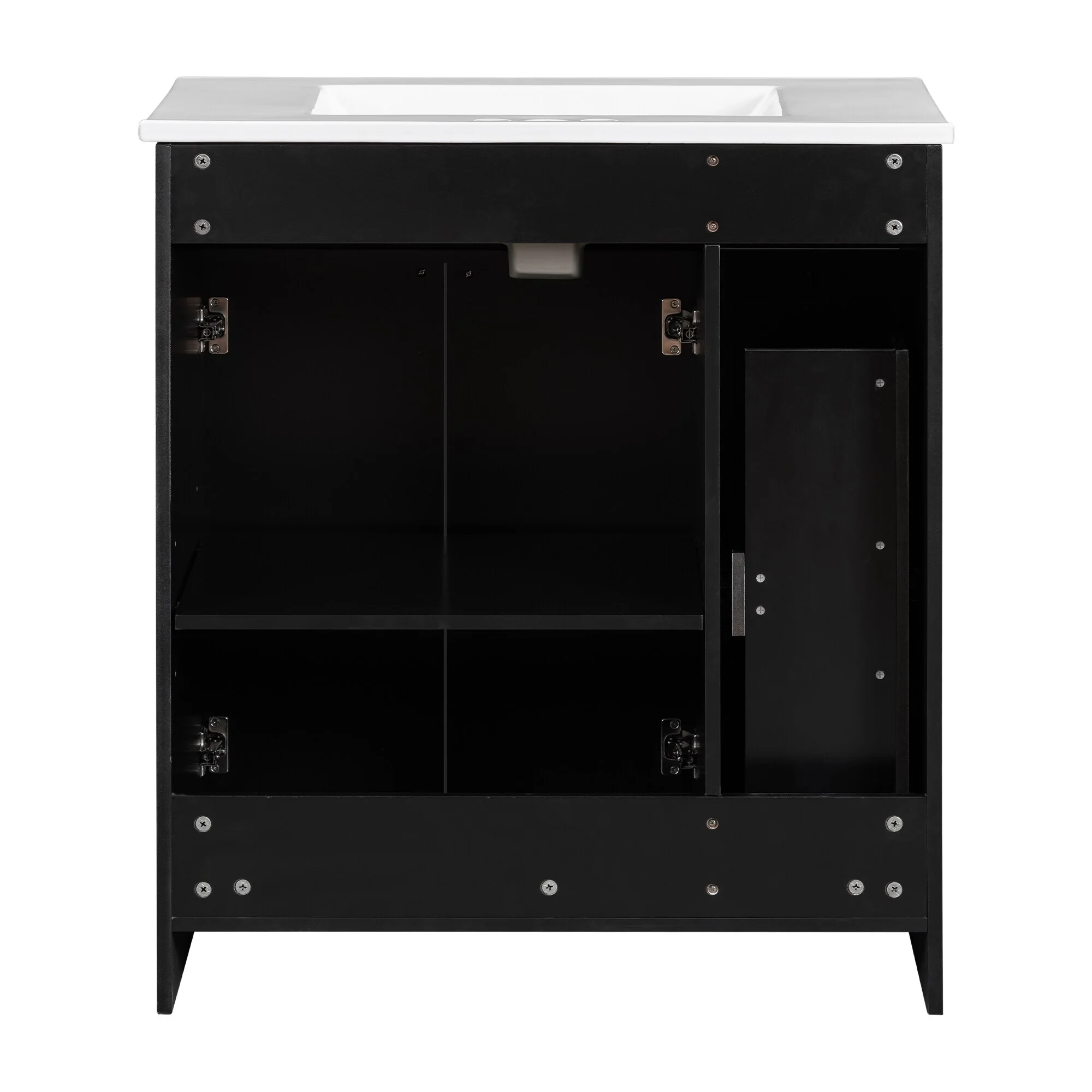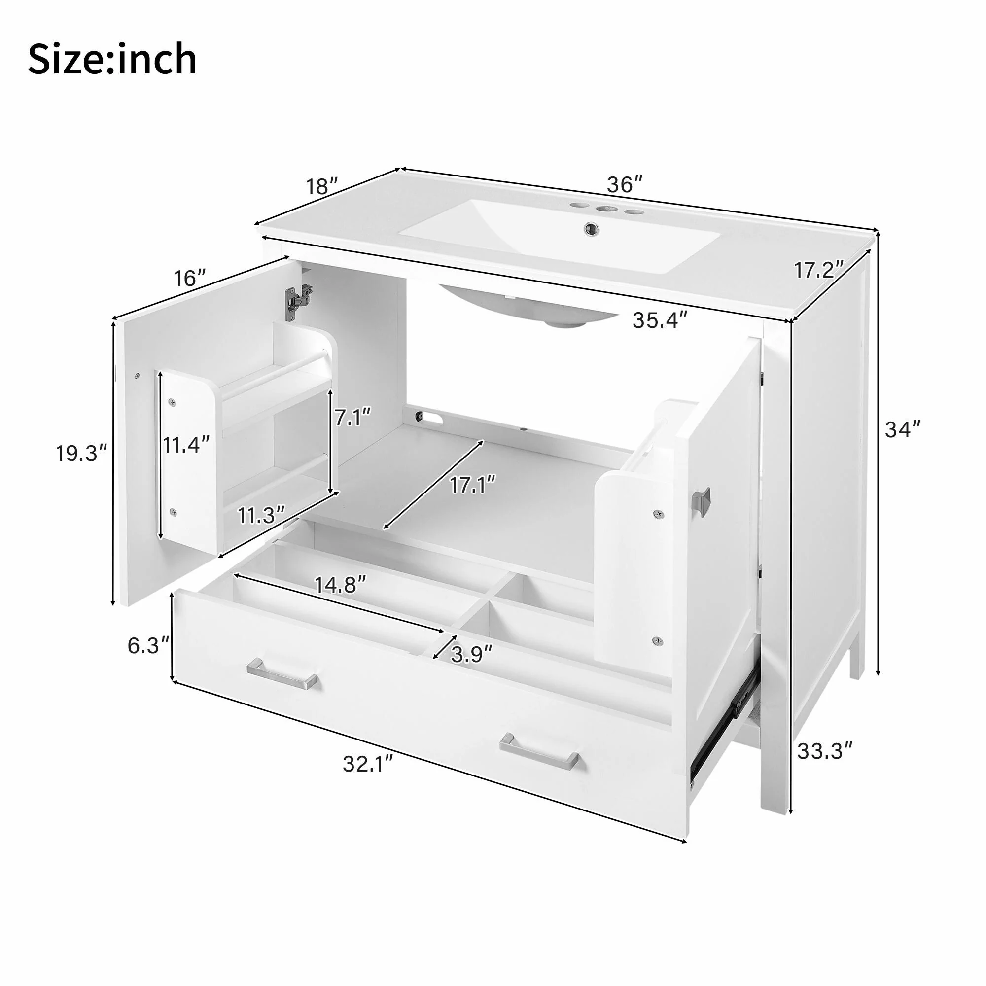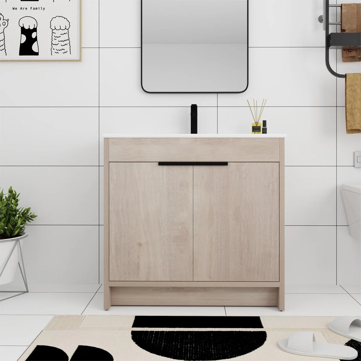 36"/30" Bathroom Vanity with Ceramic Sink, Soft-Close Doors, Double Storage Shelves & Divided Drawer