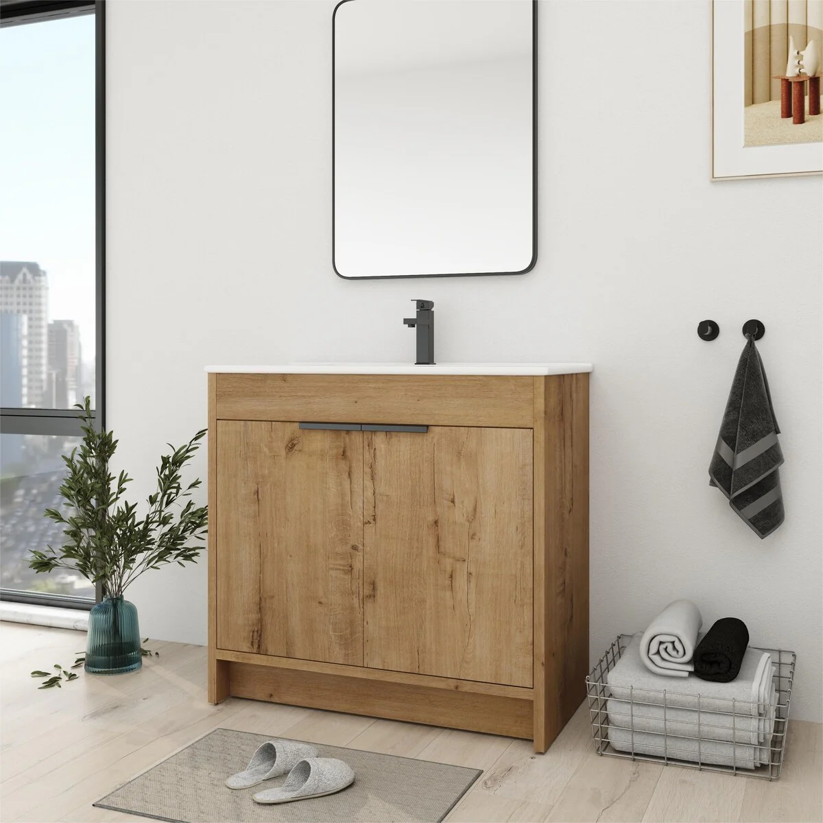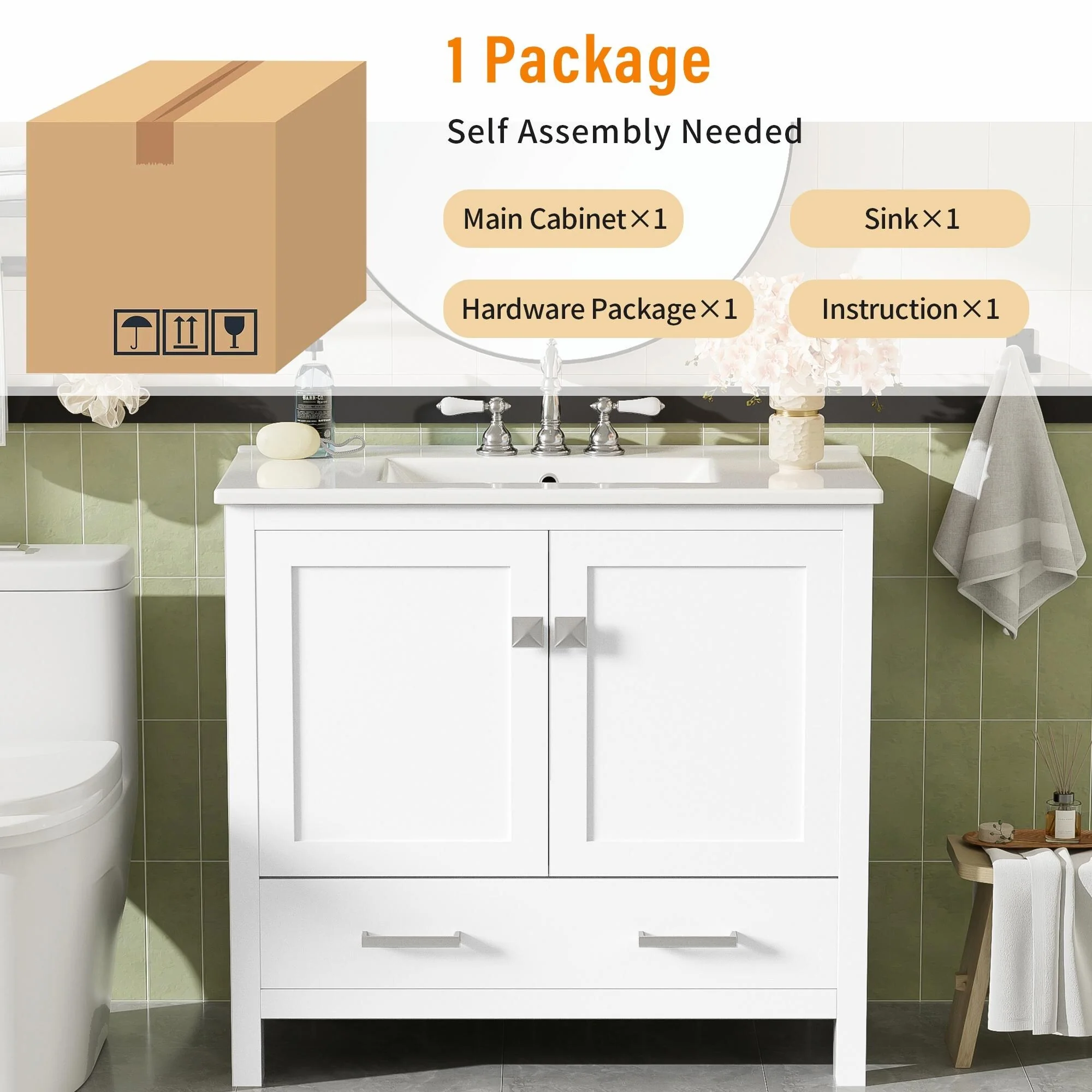 Bathroom Vanity With Sink In 24/30/36 Inch, Freestanding Bathroom Vanity With Soft Close Door and Adjustable Shelf