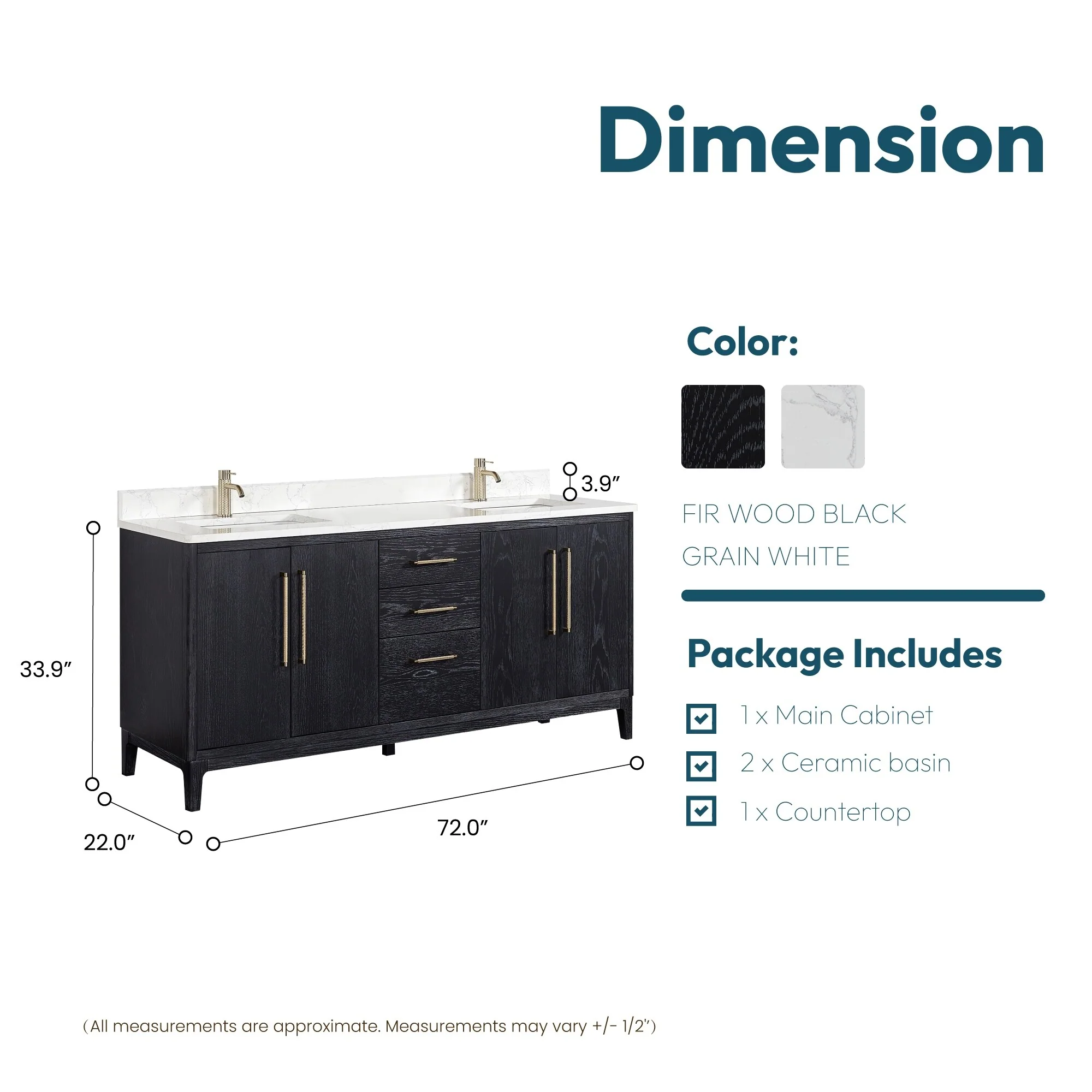 72 in. - Black - No Mirror