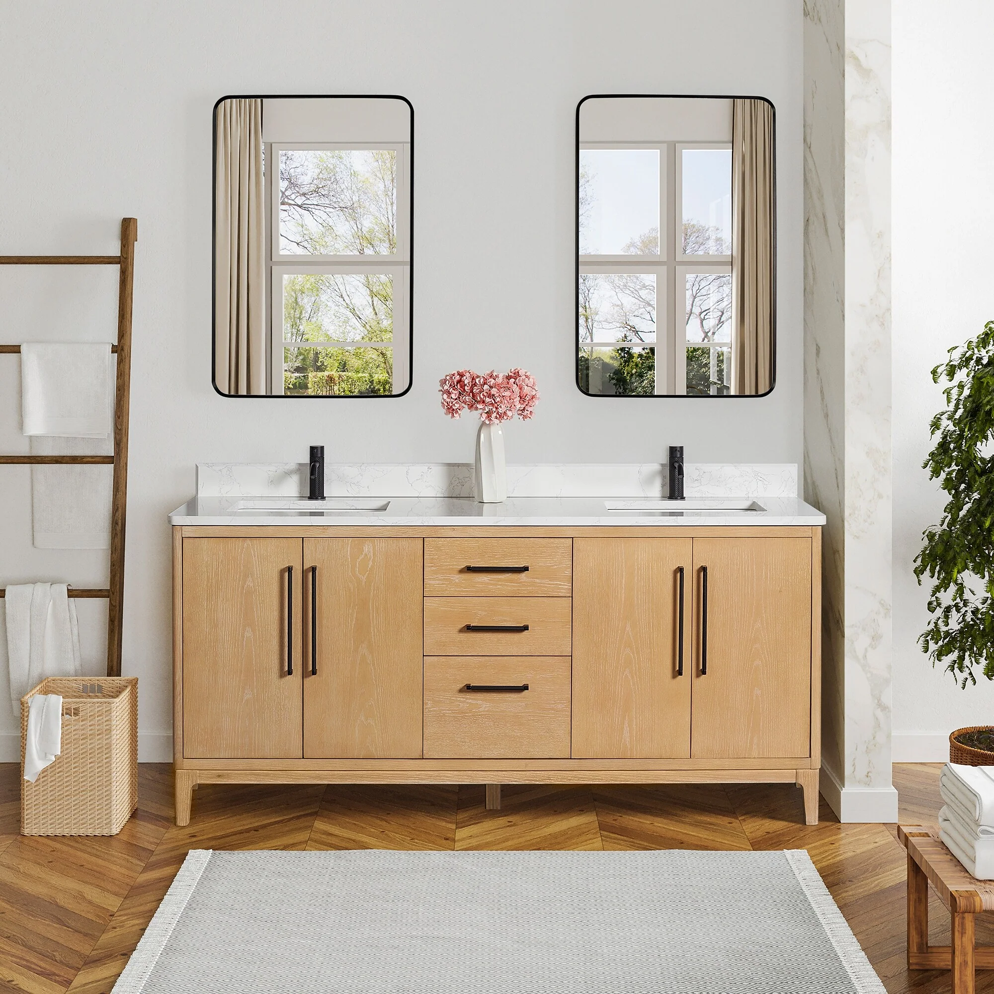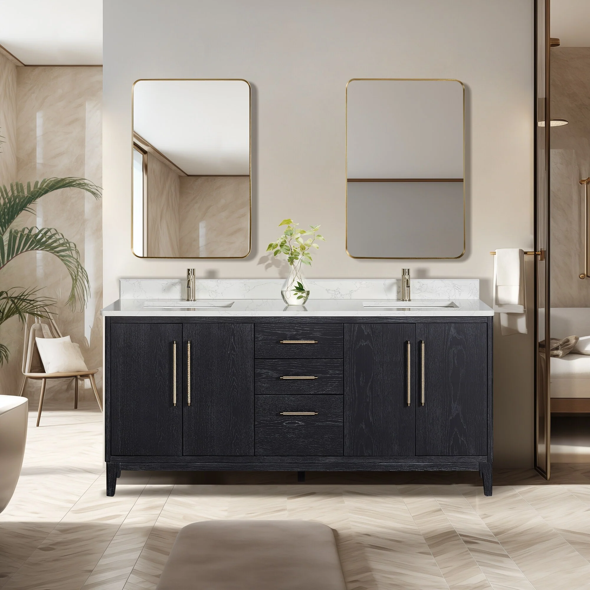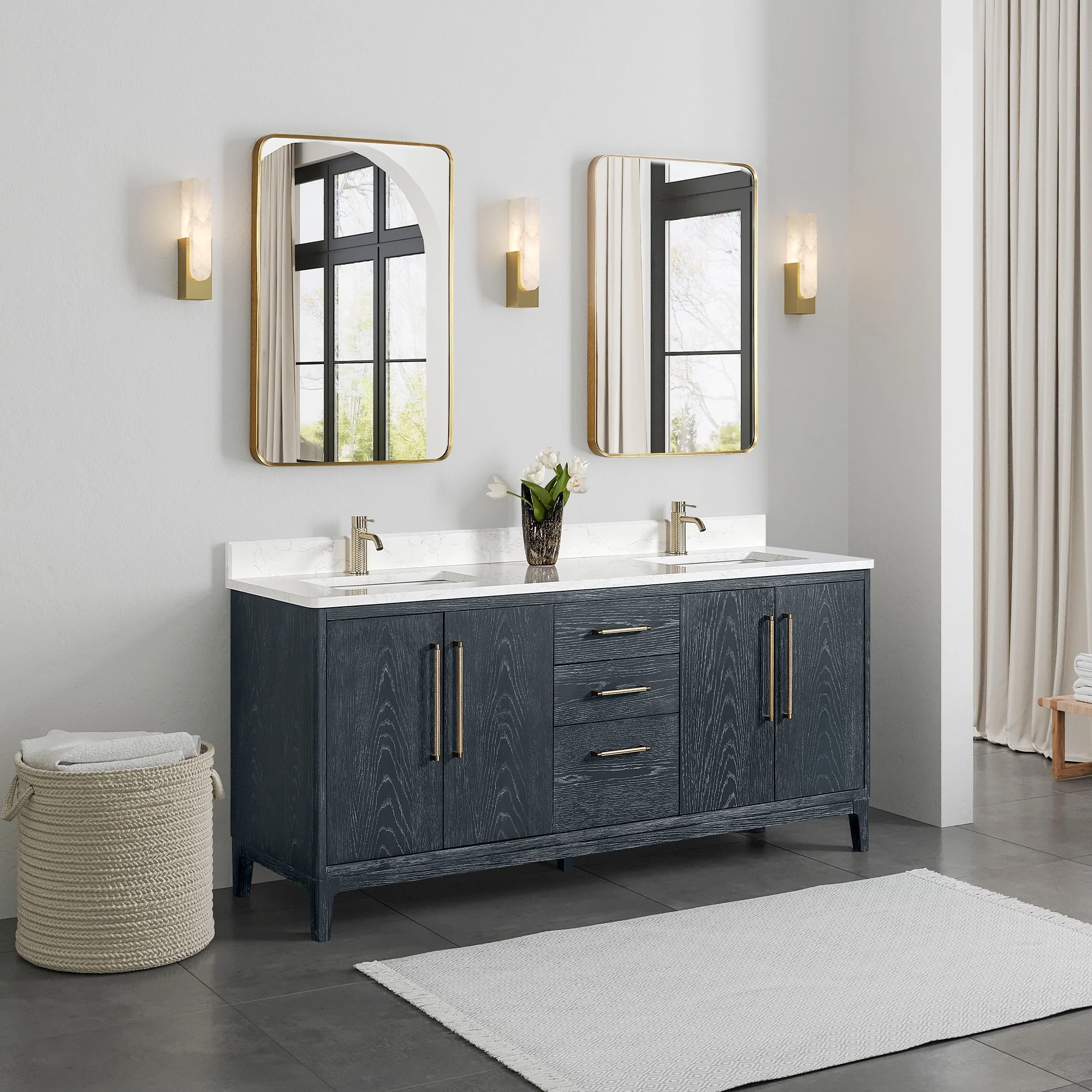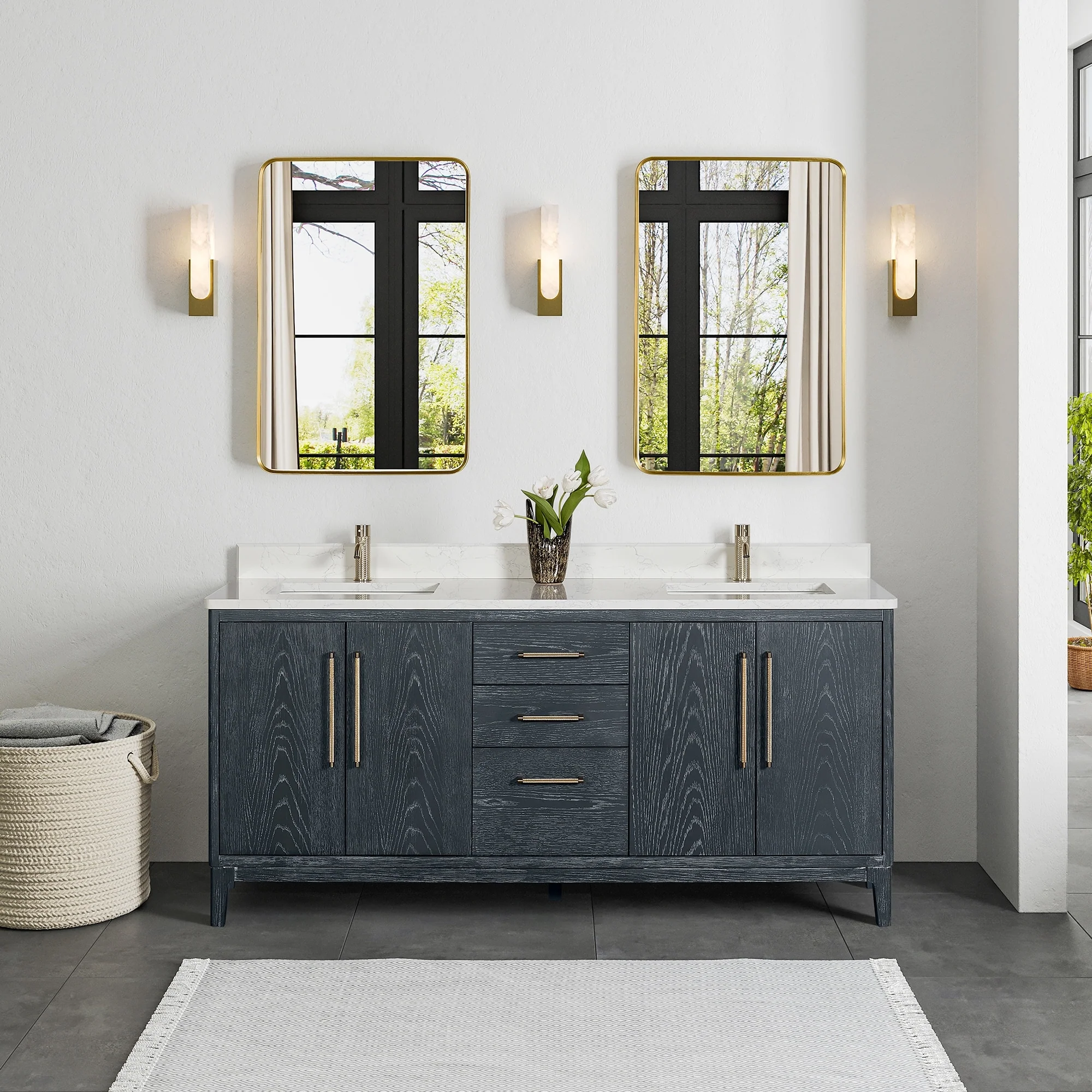 Leon 72 in. Double Bathroom Vanity with Composite Stone Top