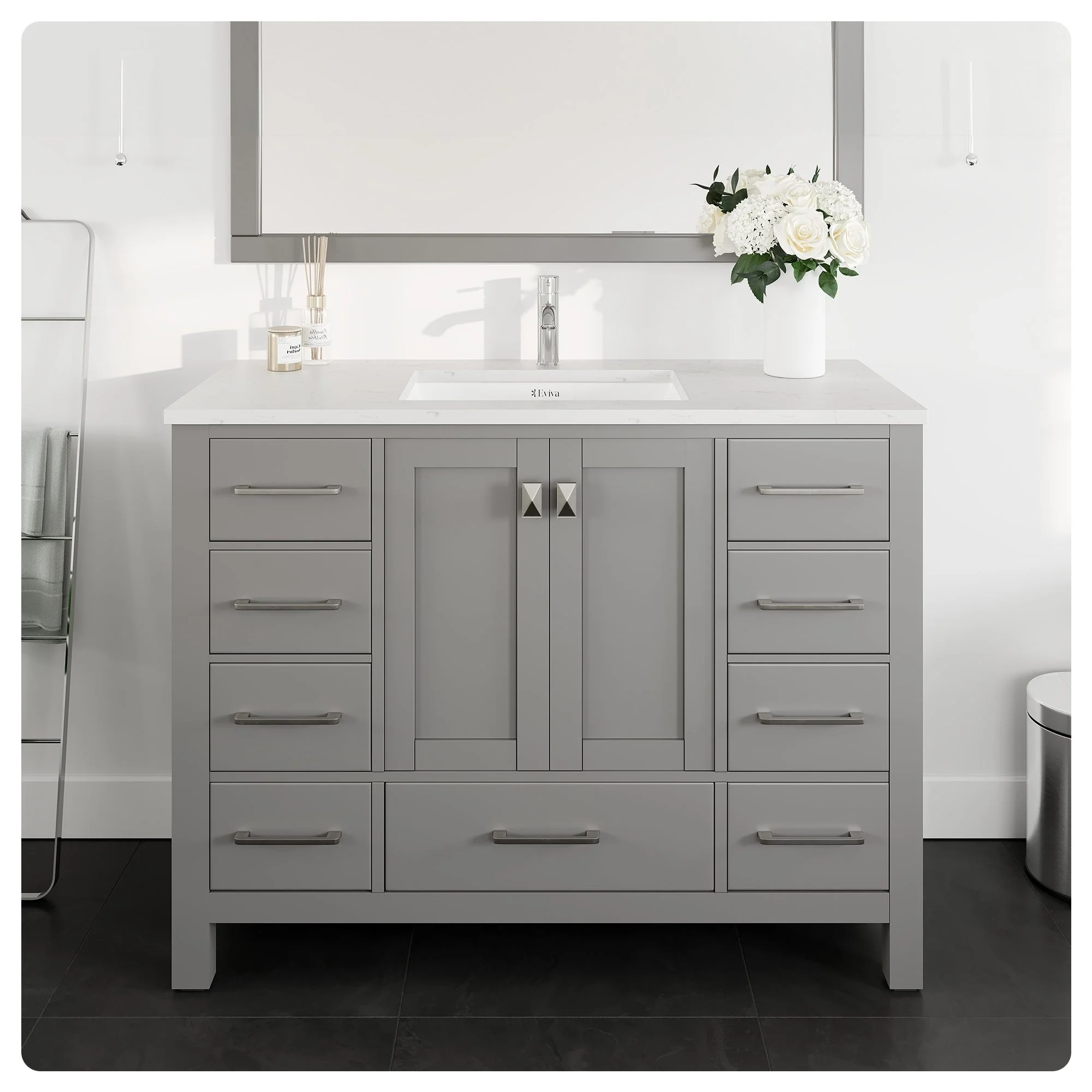 Eviva Aberdeen 42"W x 22"D Grey Bathroom Vanity with Carrara Quartz Countertop and Undermount Porcelain Sink
