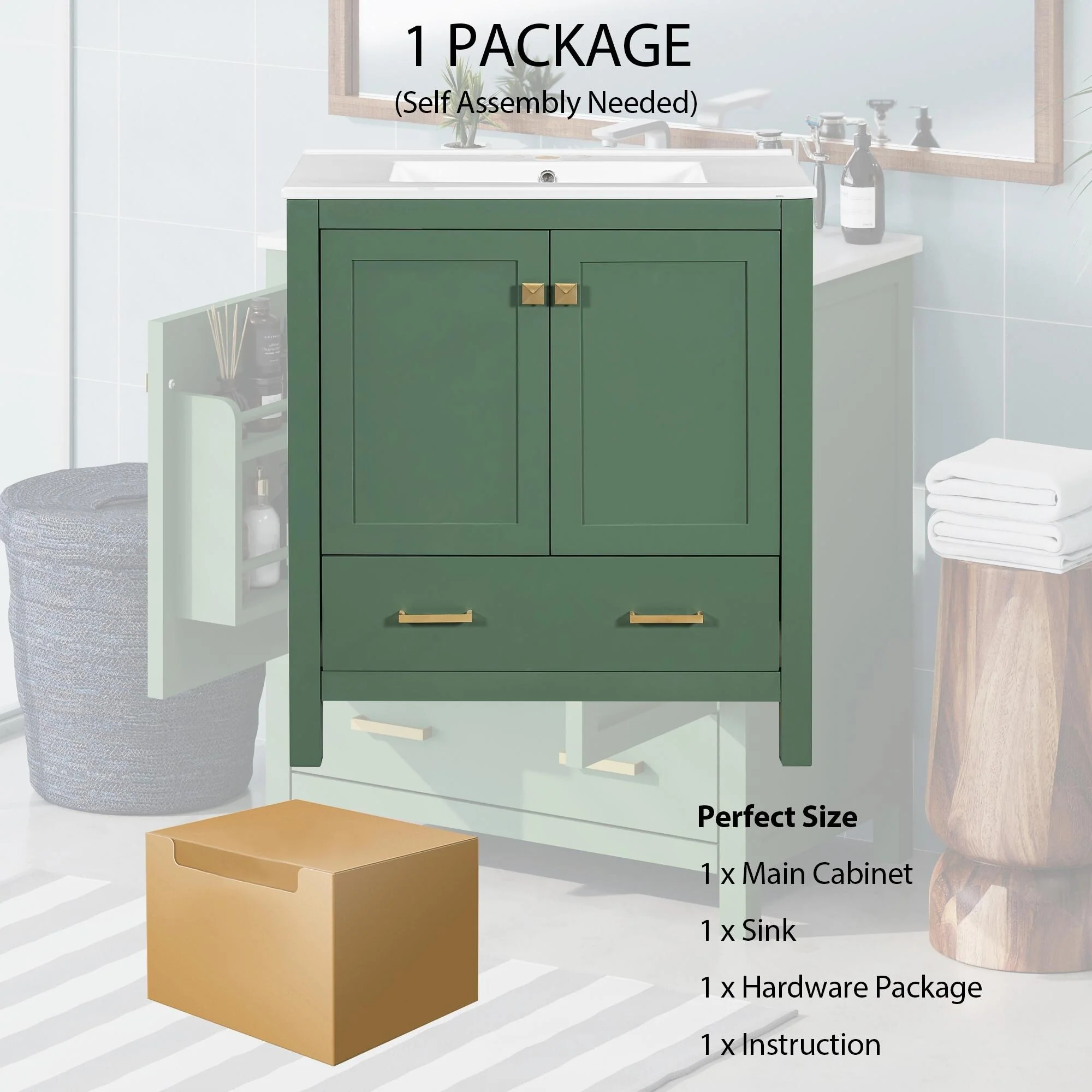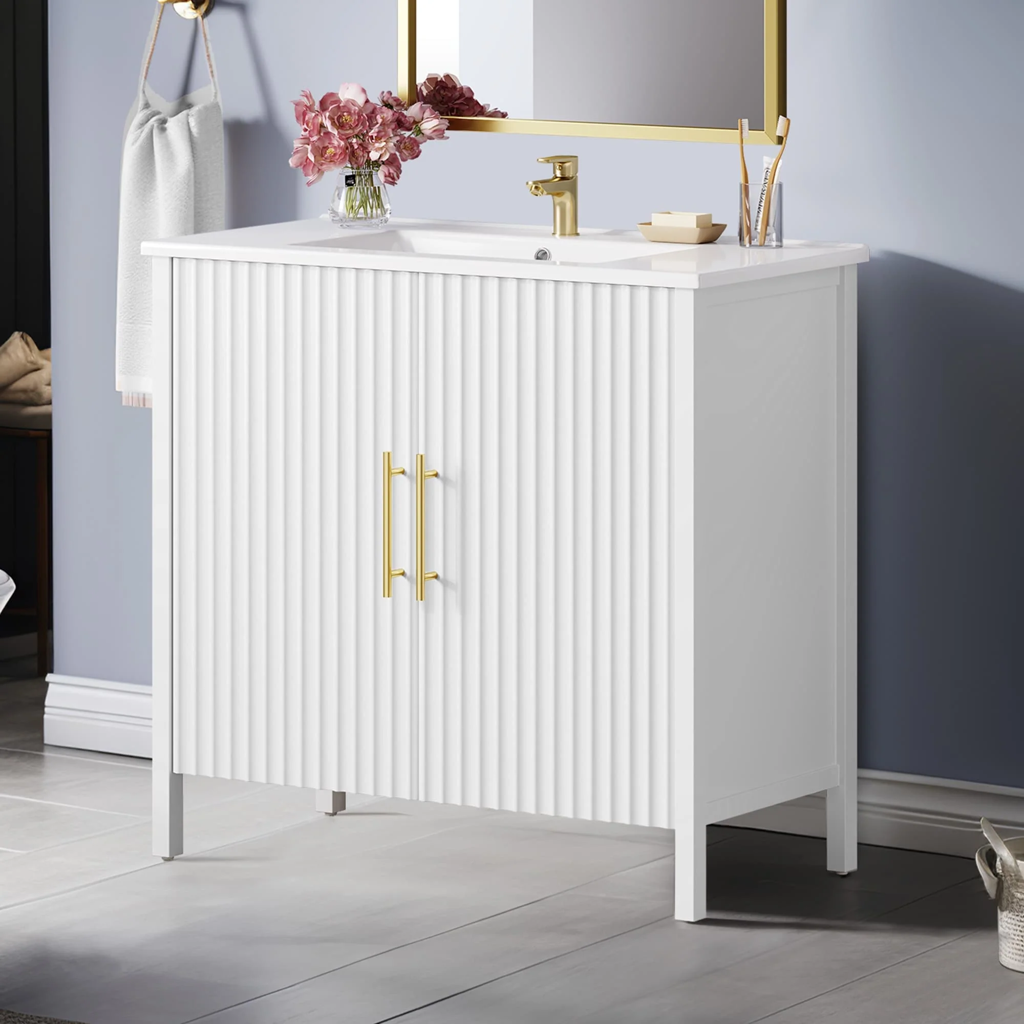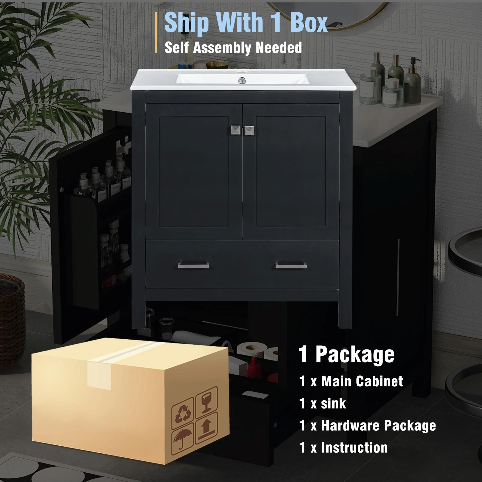 Bathroom Vanity With Sink In 24/30 Inch, Freestanding Bathroom Vanity With Soft Close Door And Adjustable Shelves