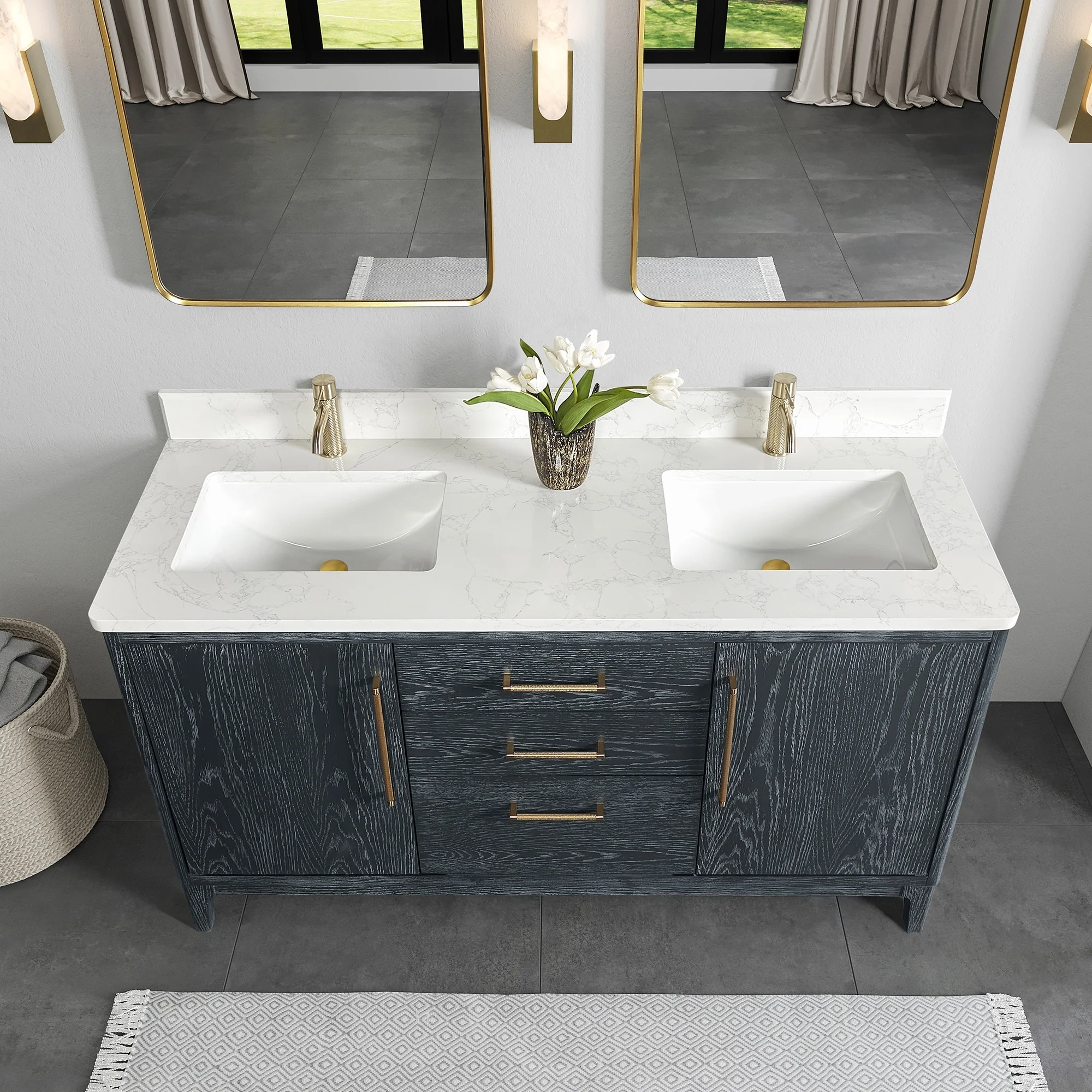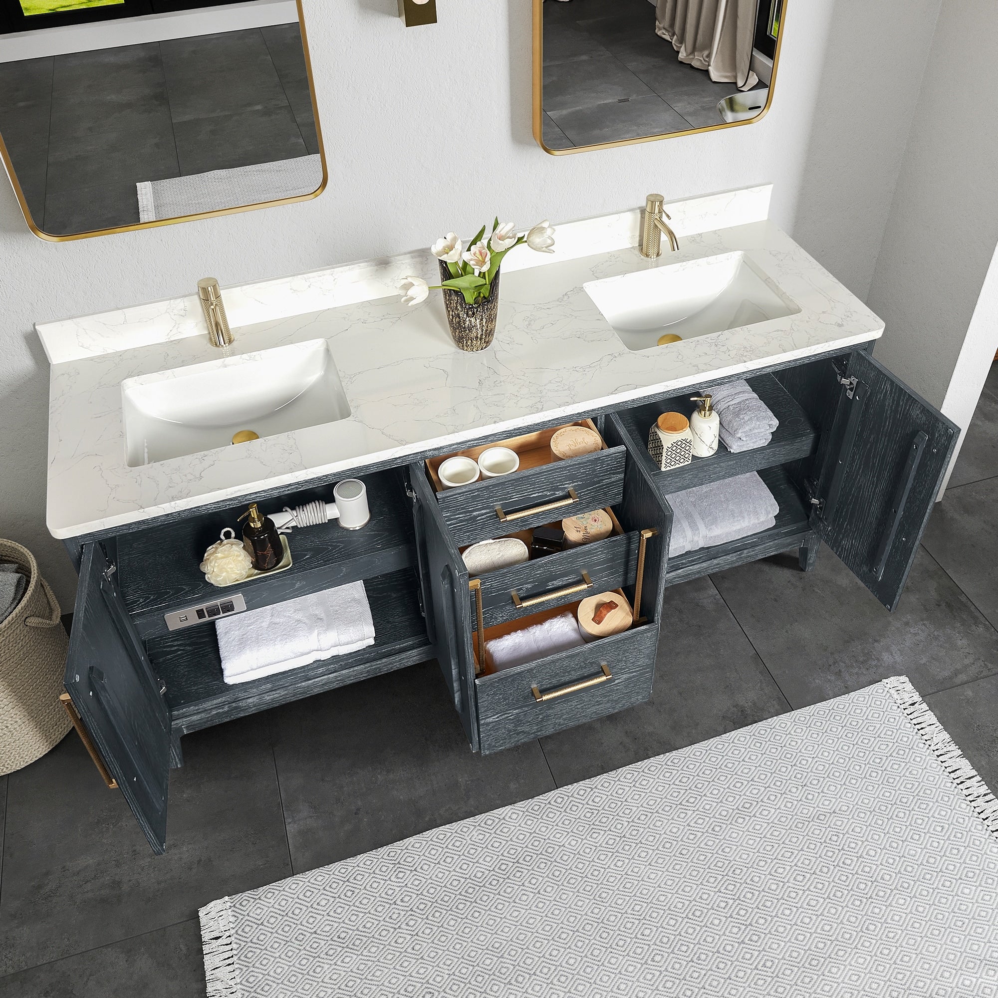 Gara Double Bath Vanity with Composite Stone Top without Mirror