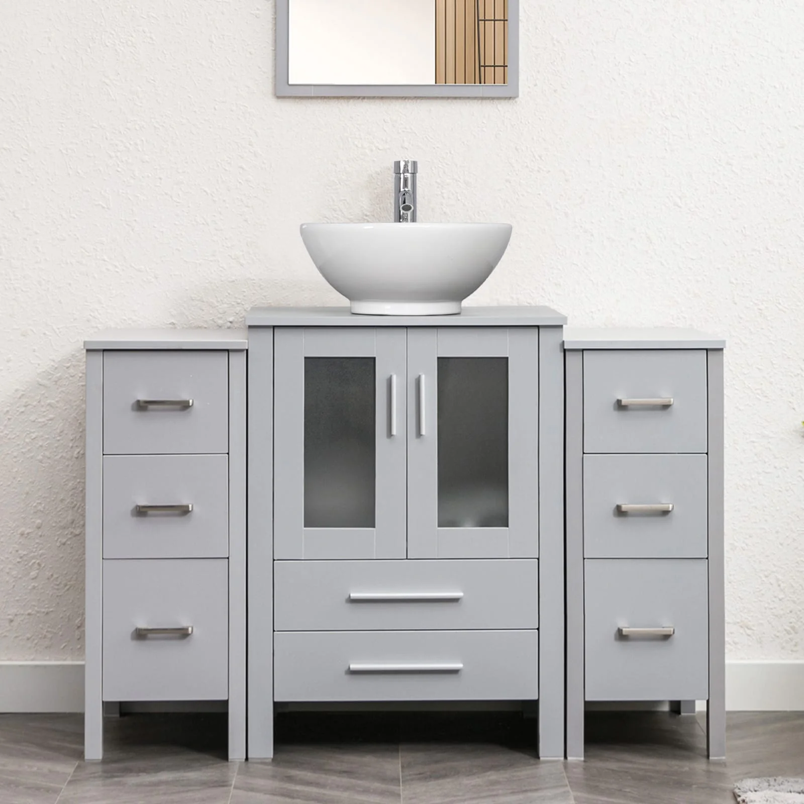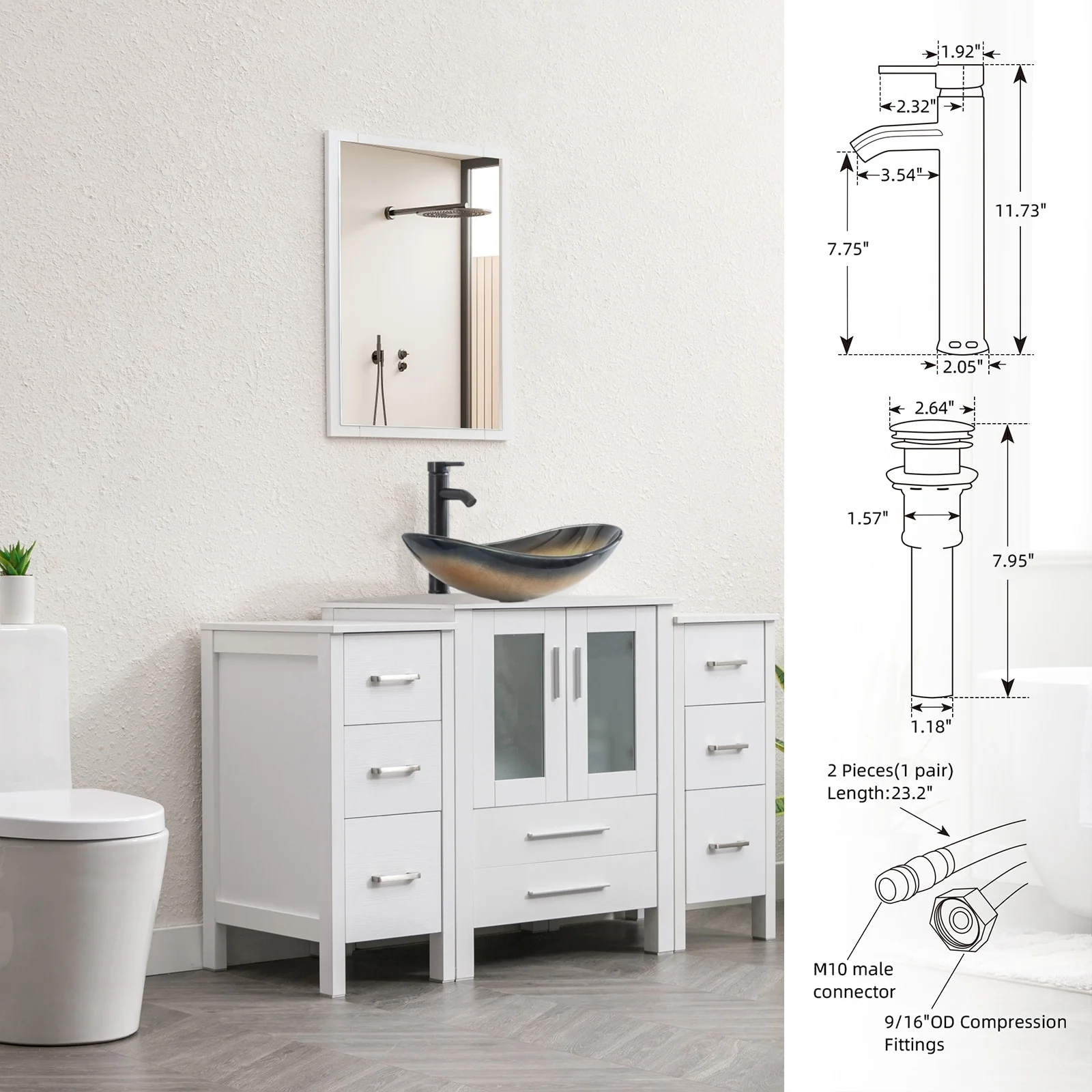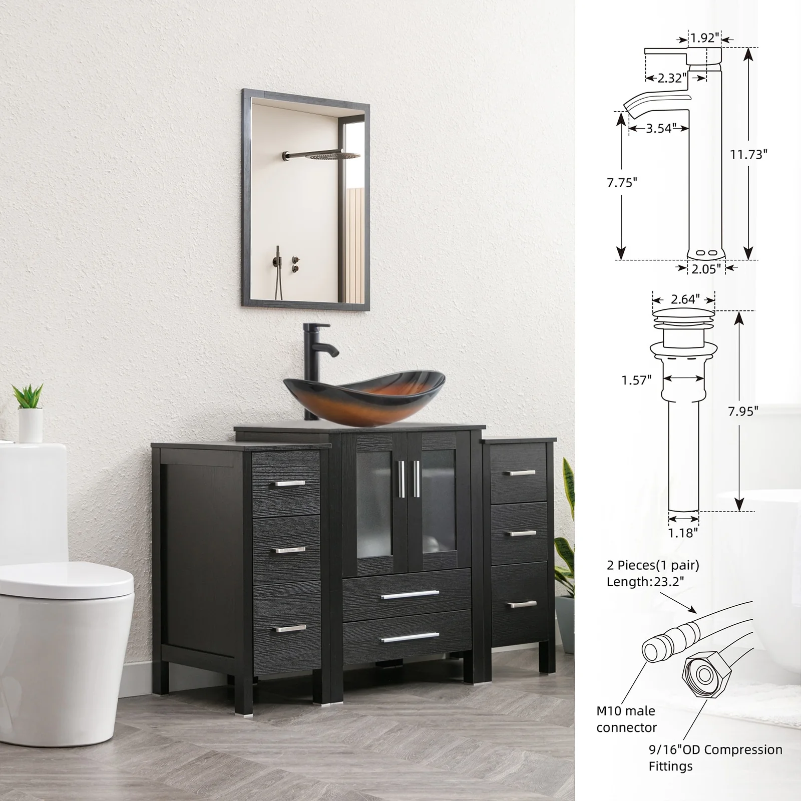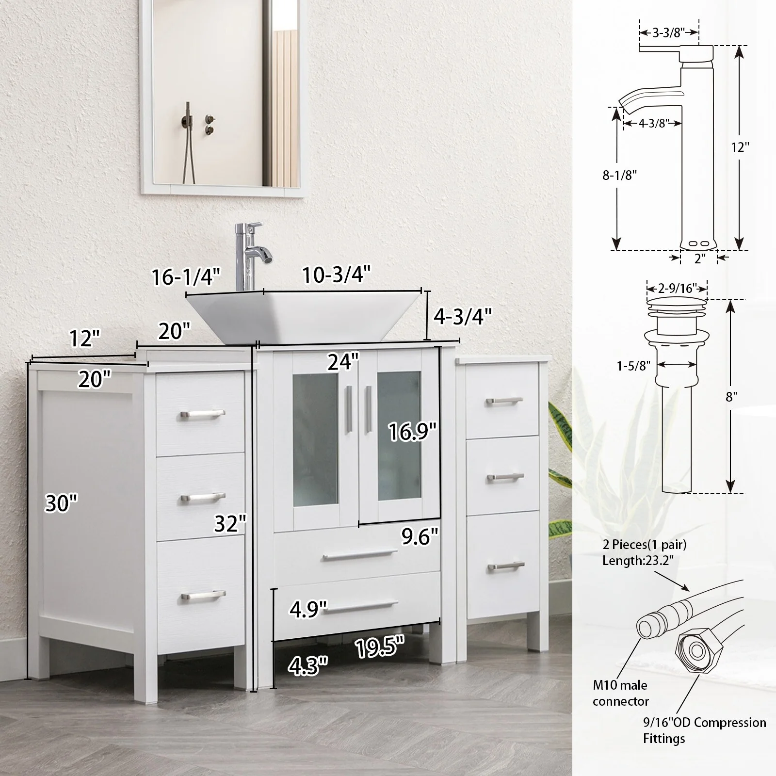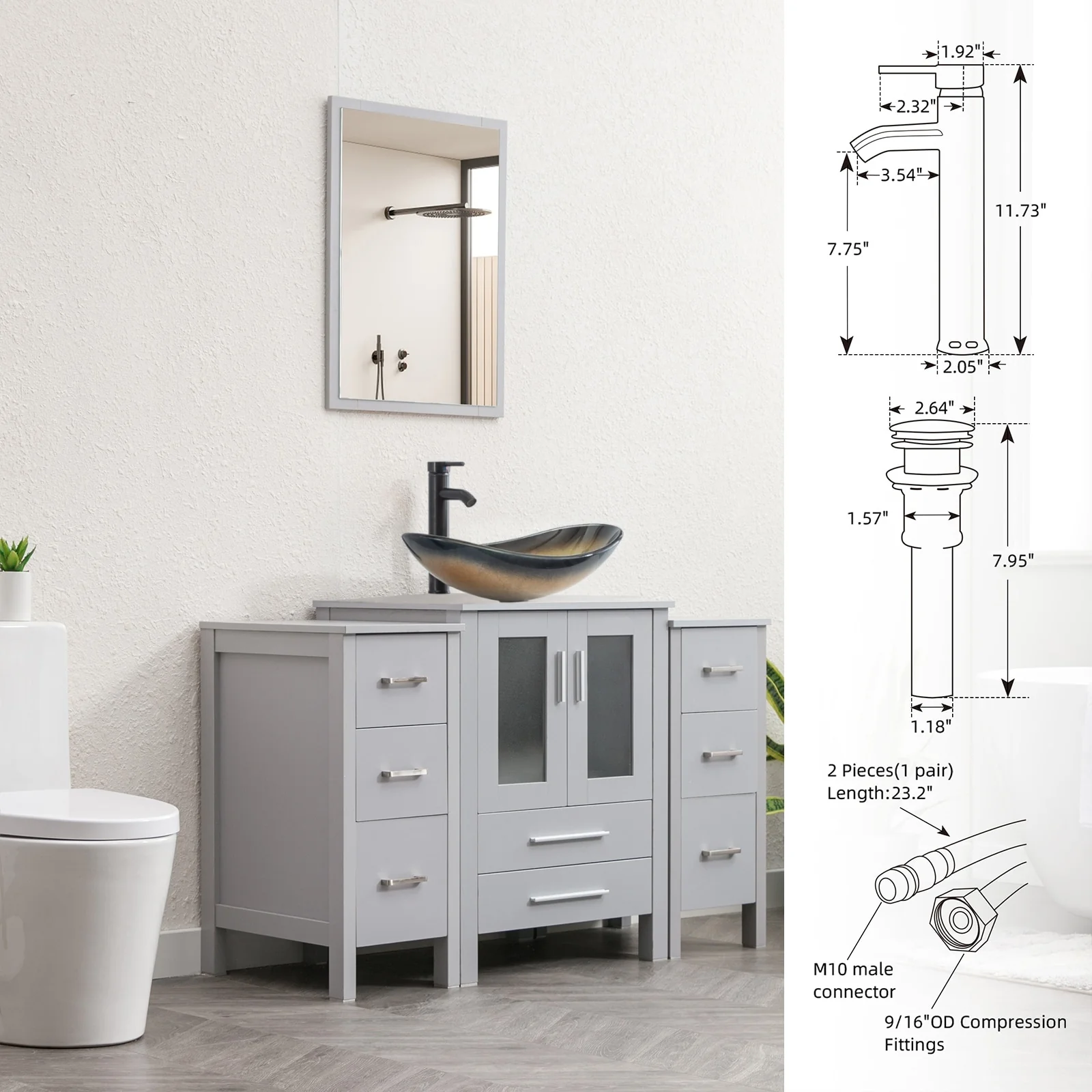 48" Bathroom Vanity Set Vessel Sink Faucet W/ Small Cabinet Combo