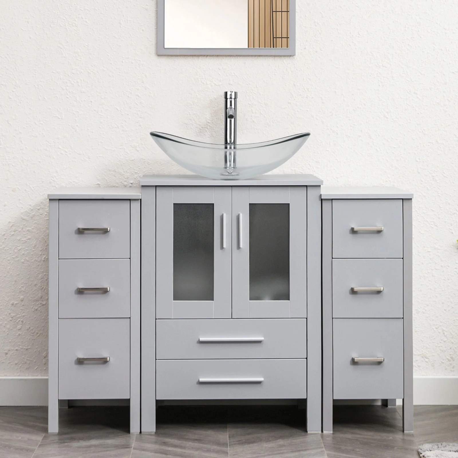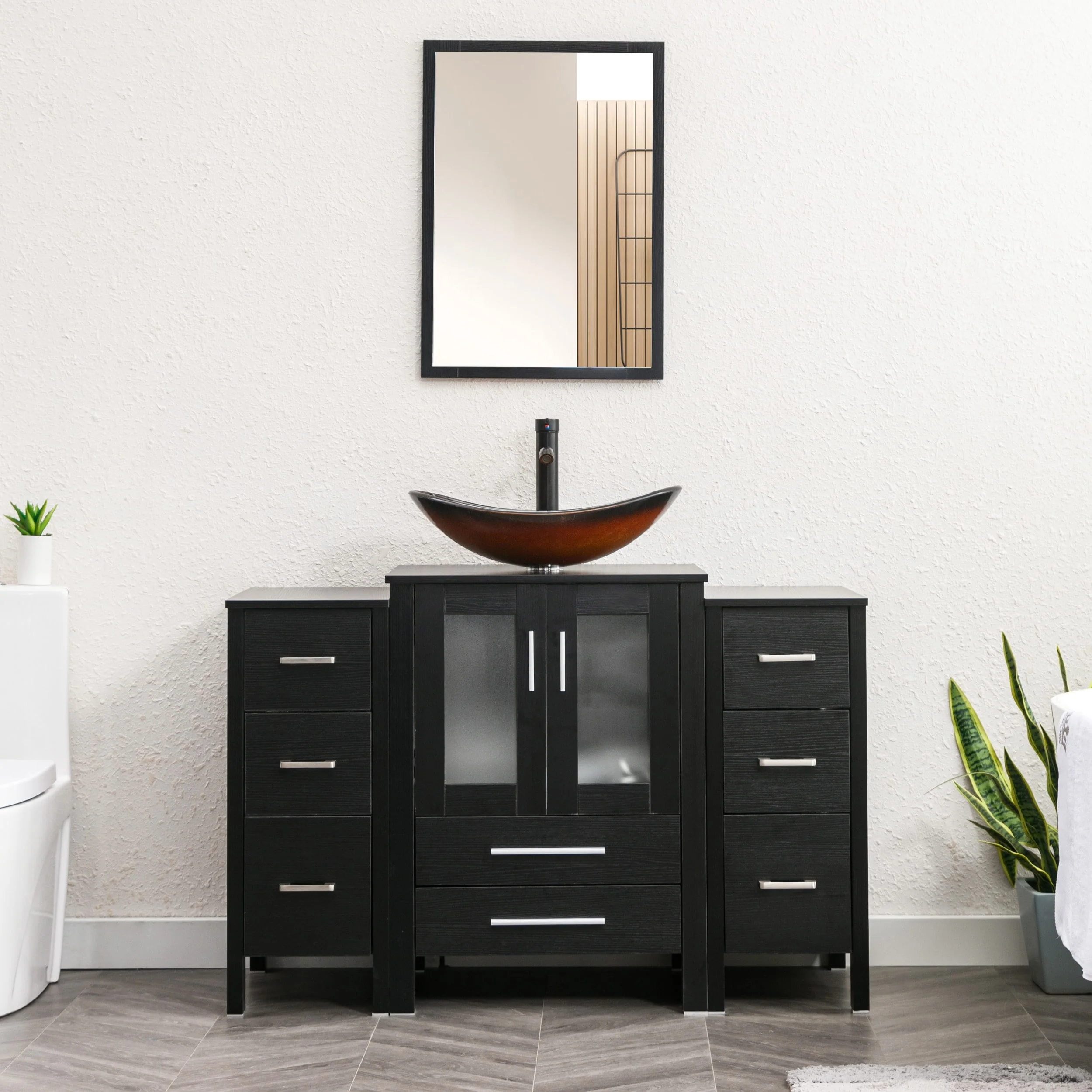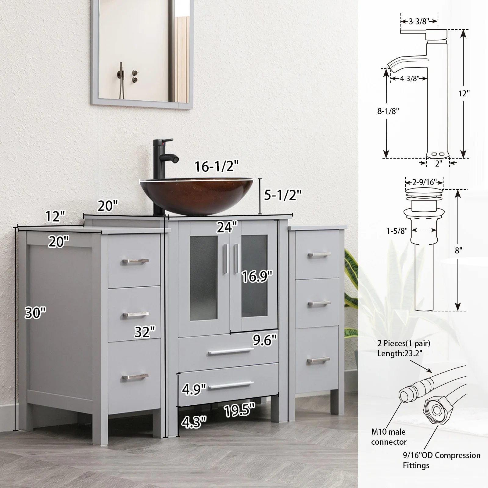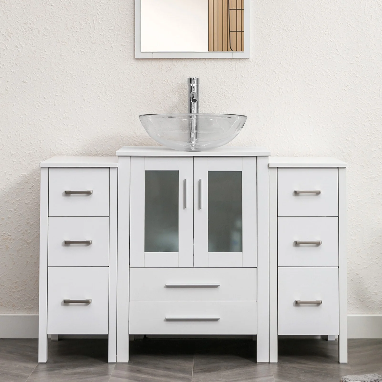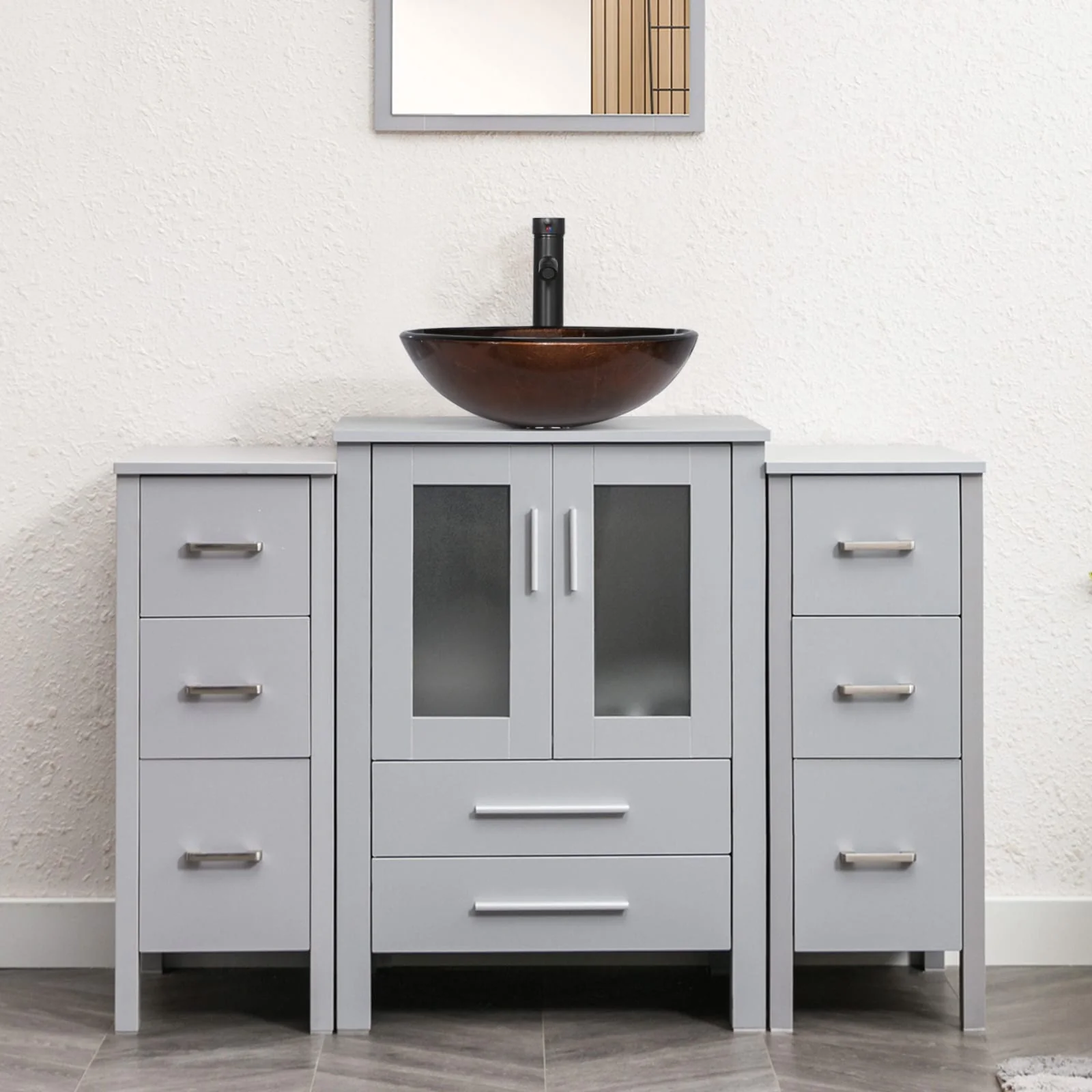 48" Bathroom Vanity Set Vessel Sink Faucet W/ Small Cabinet Combo
