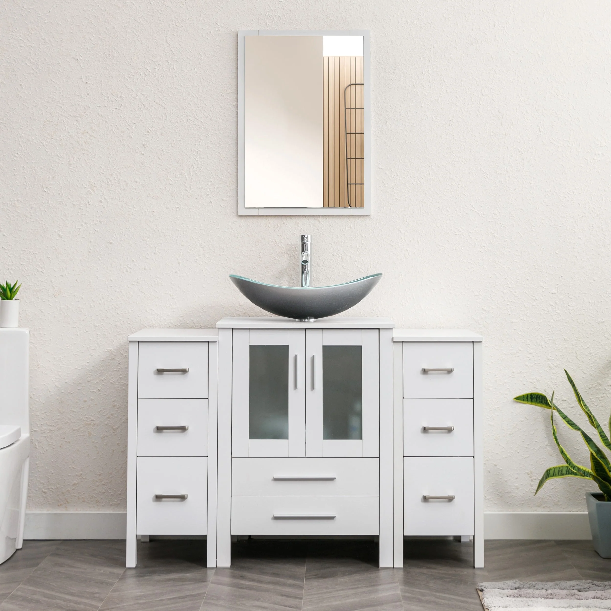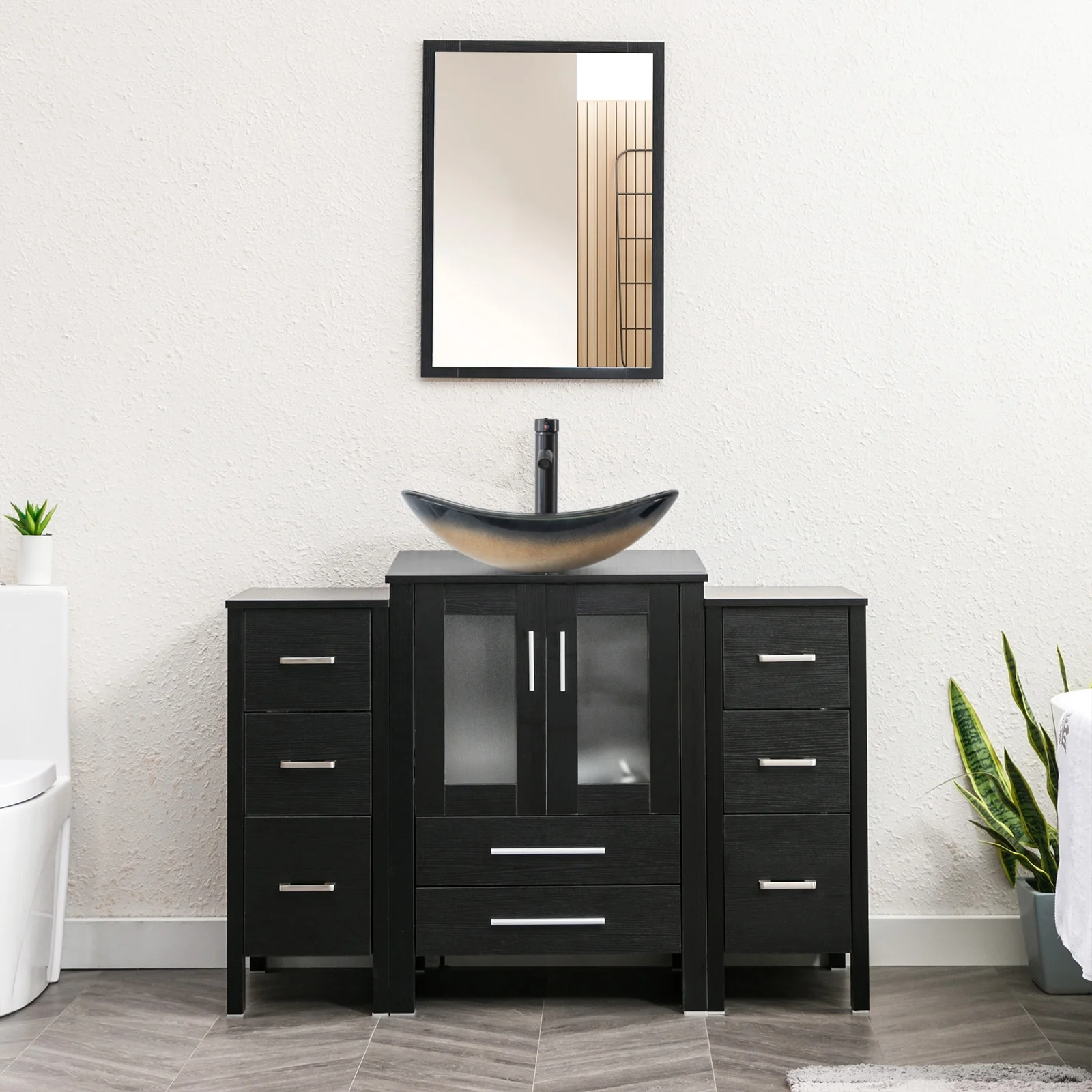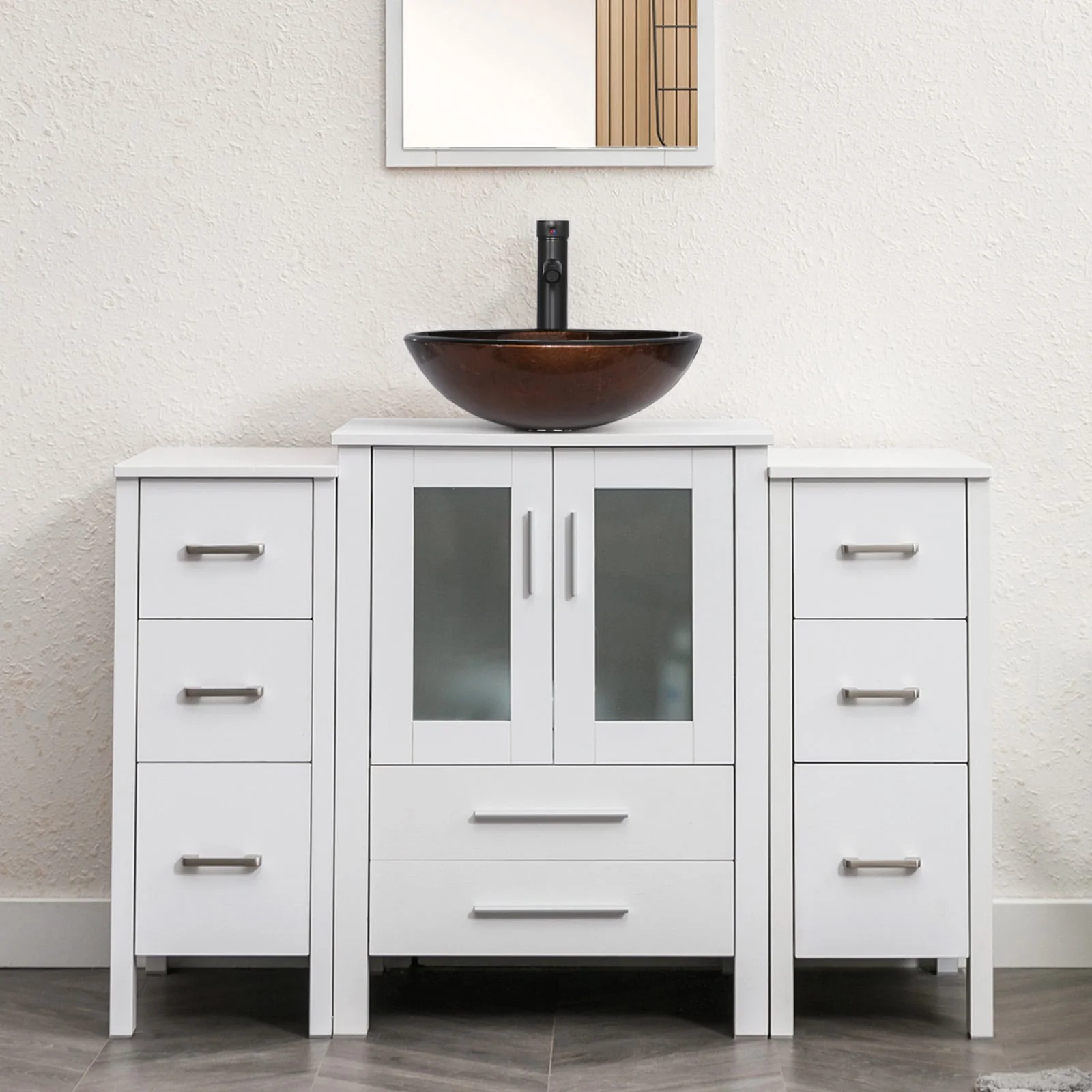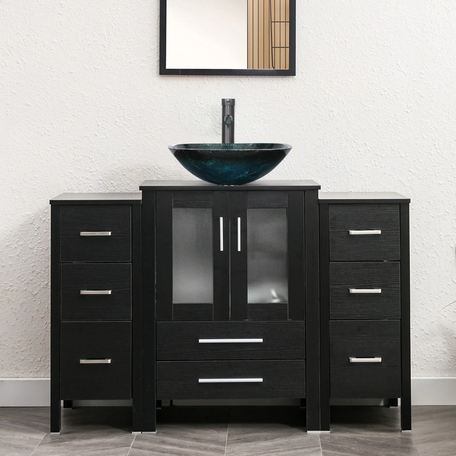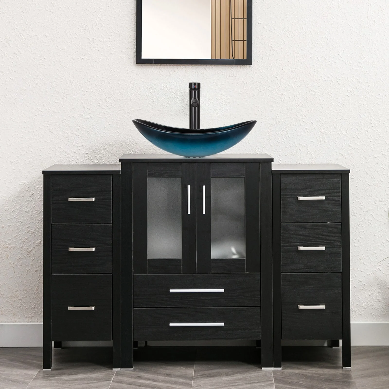 48" Bathroom Vanity Set Vessel Sink Faucet W/ Small Cabinet Combo