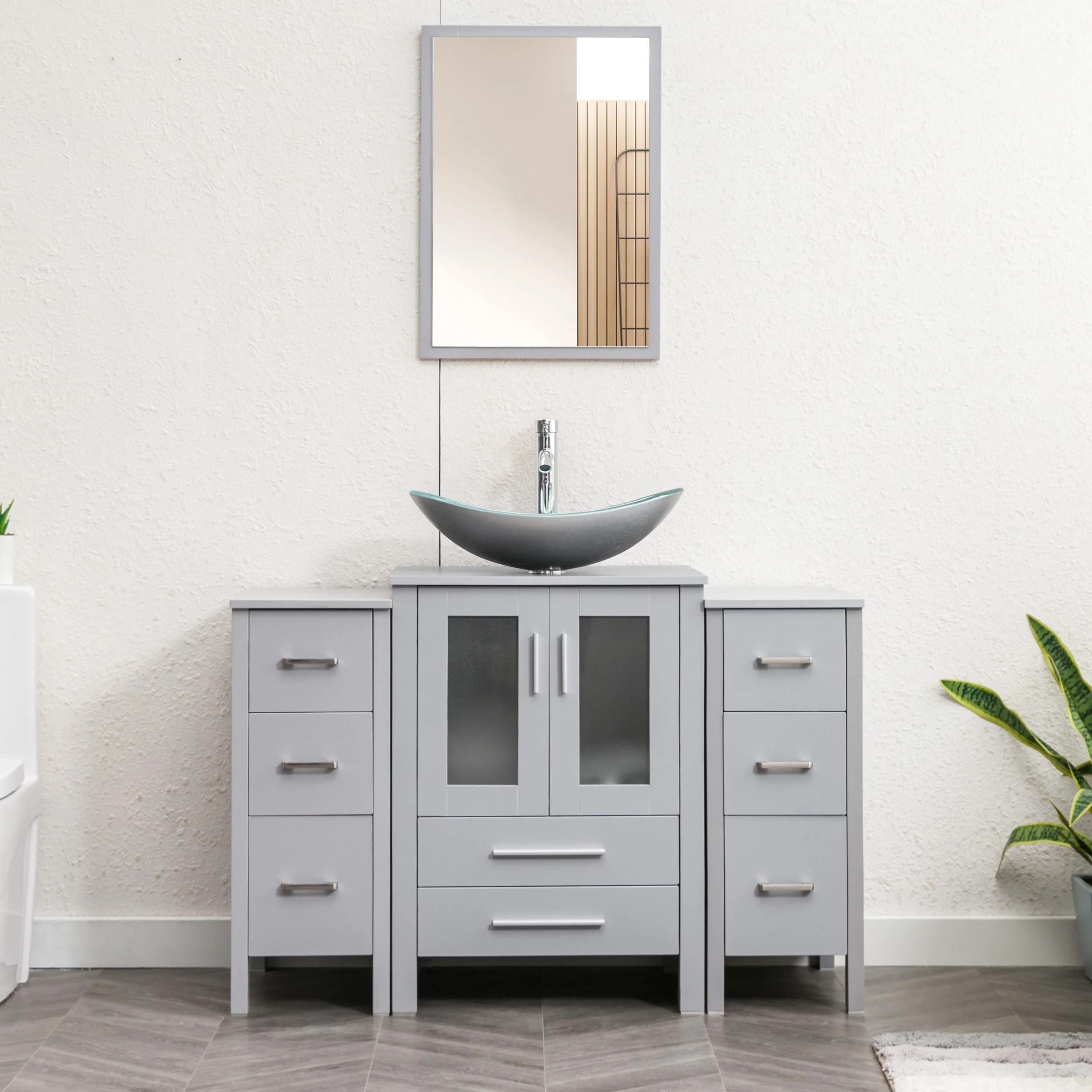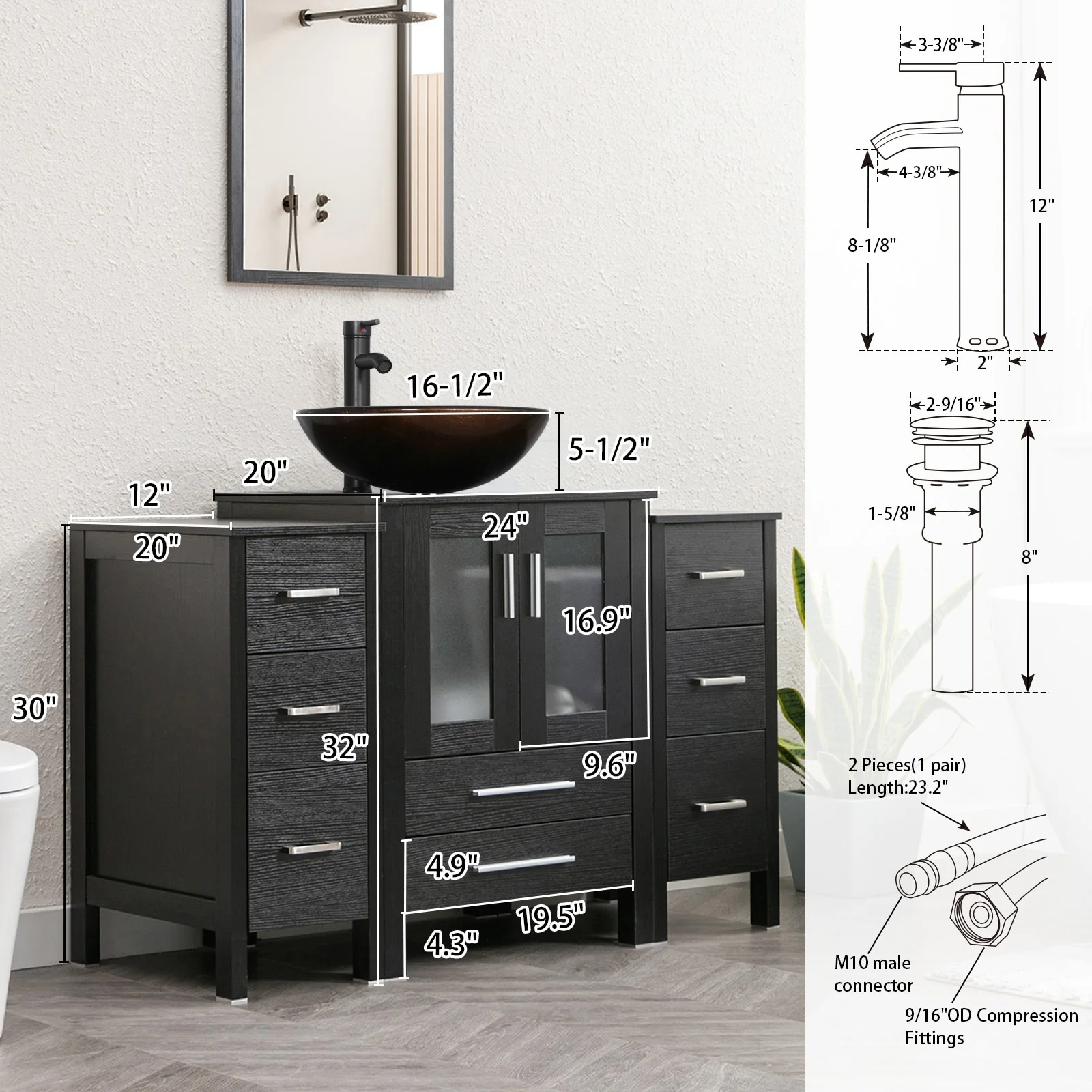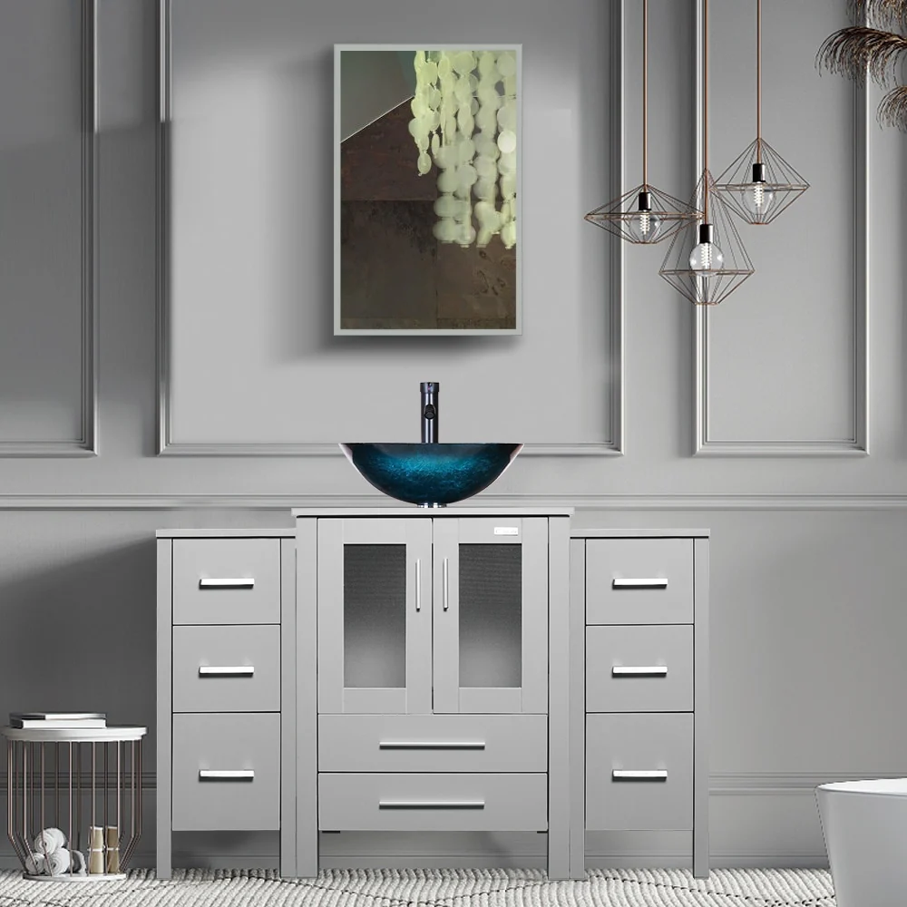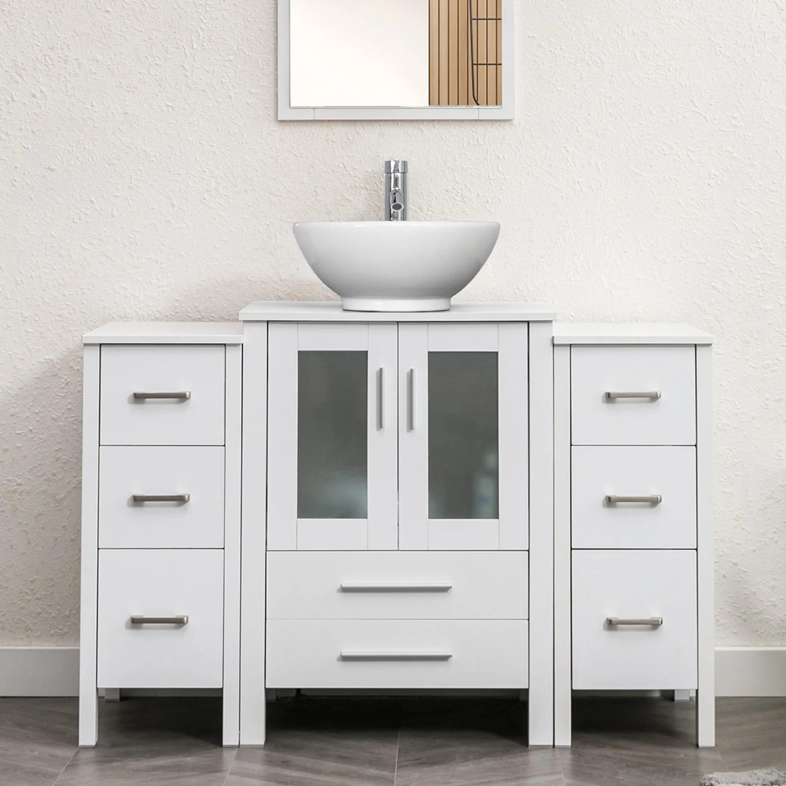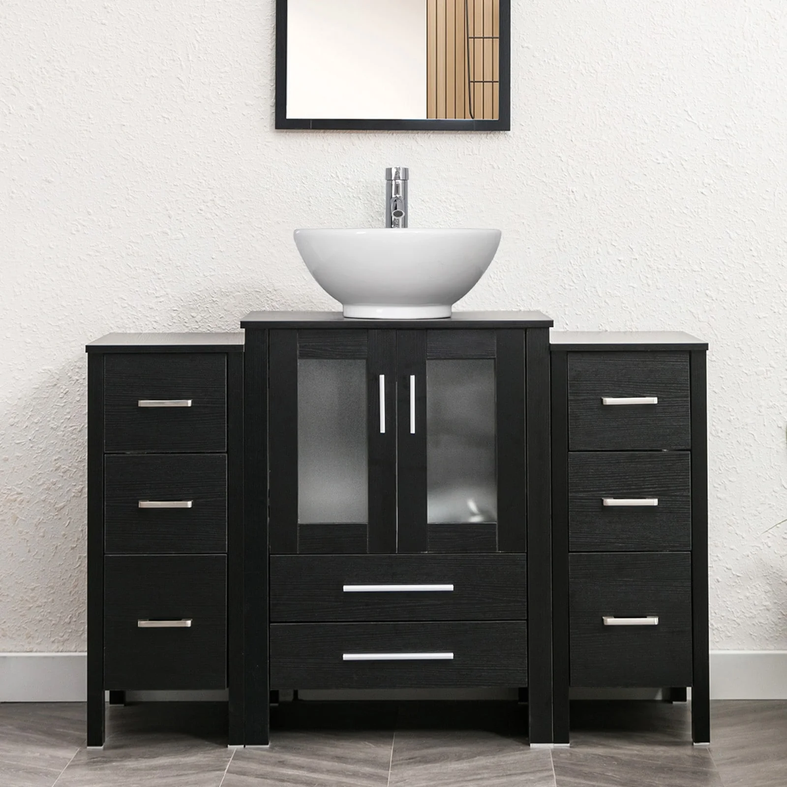 48" Bathroom Vanity Set Vessel Sink Faucet W/ Small Cabinet Combo
