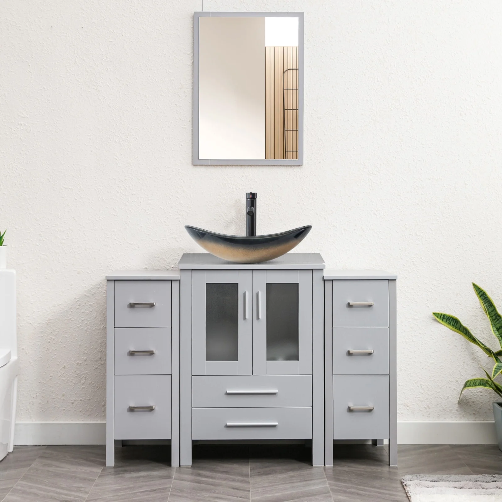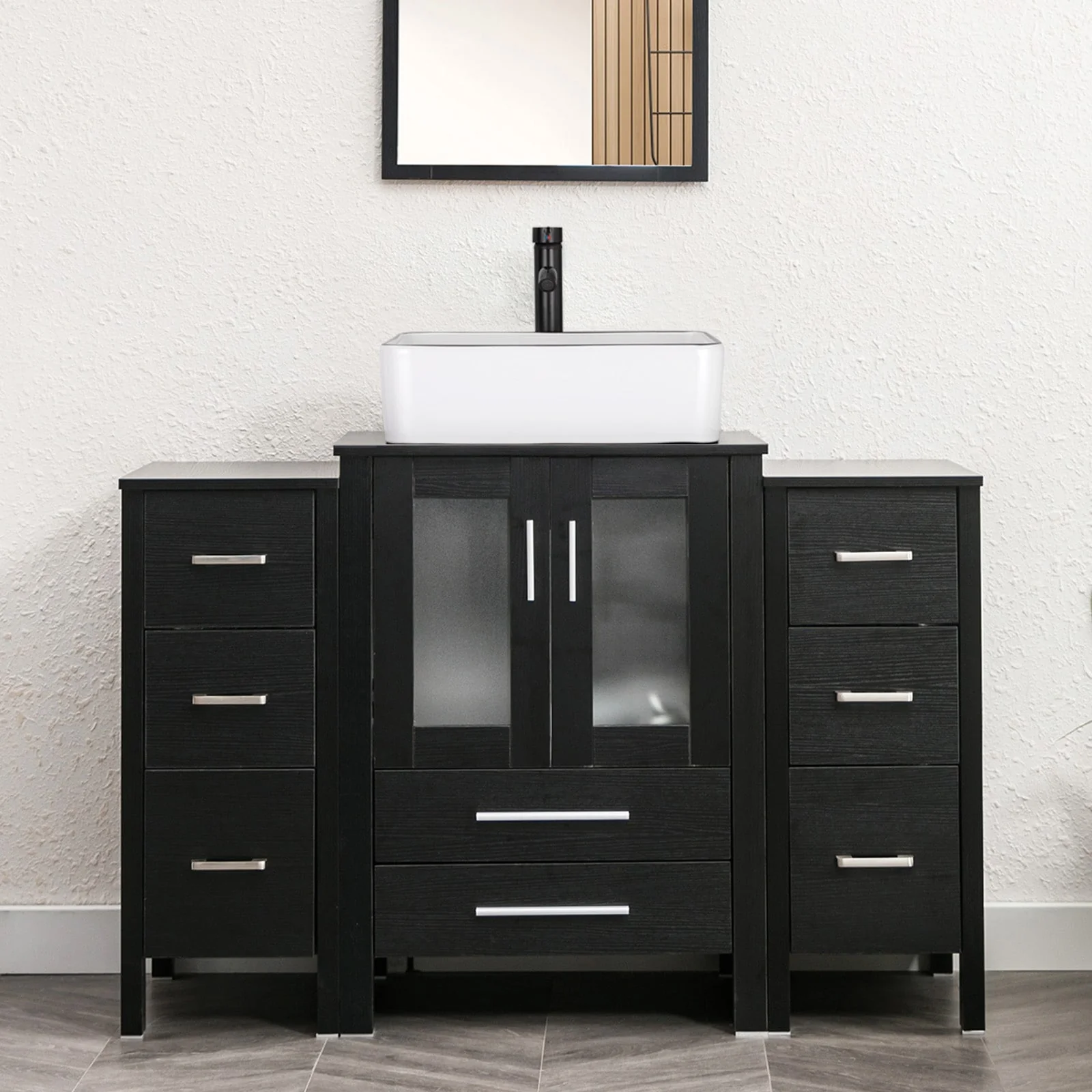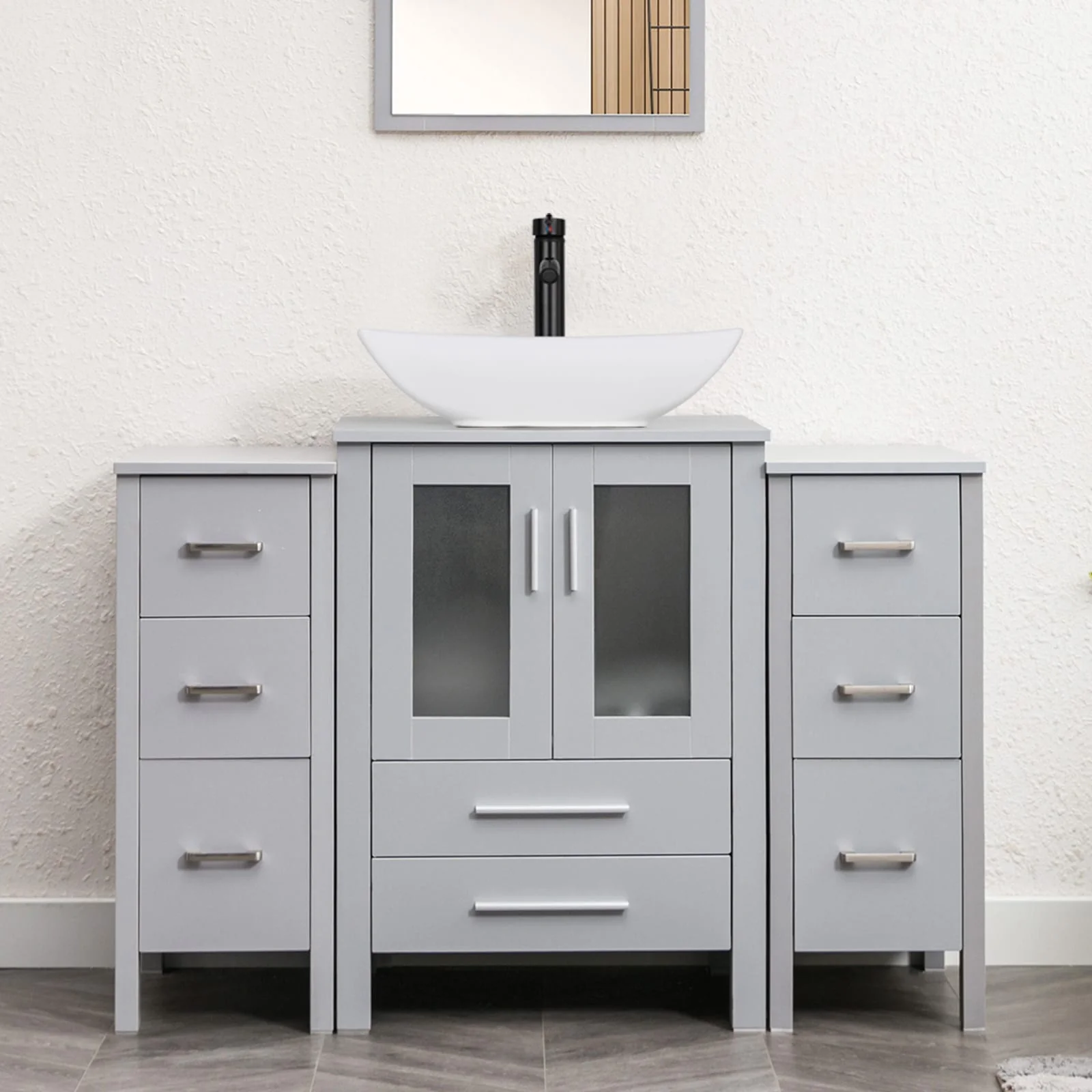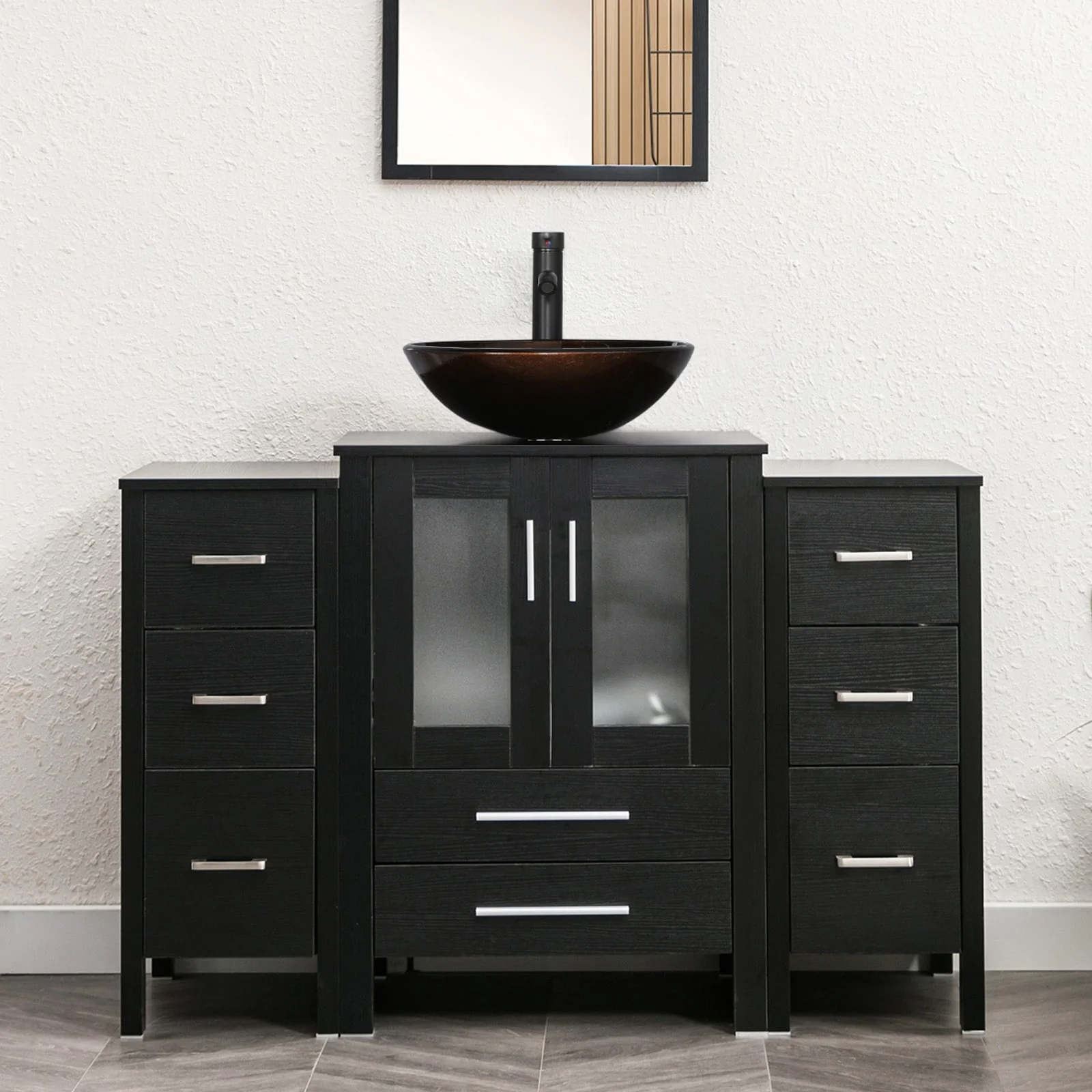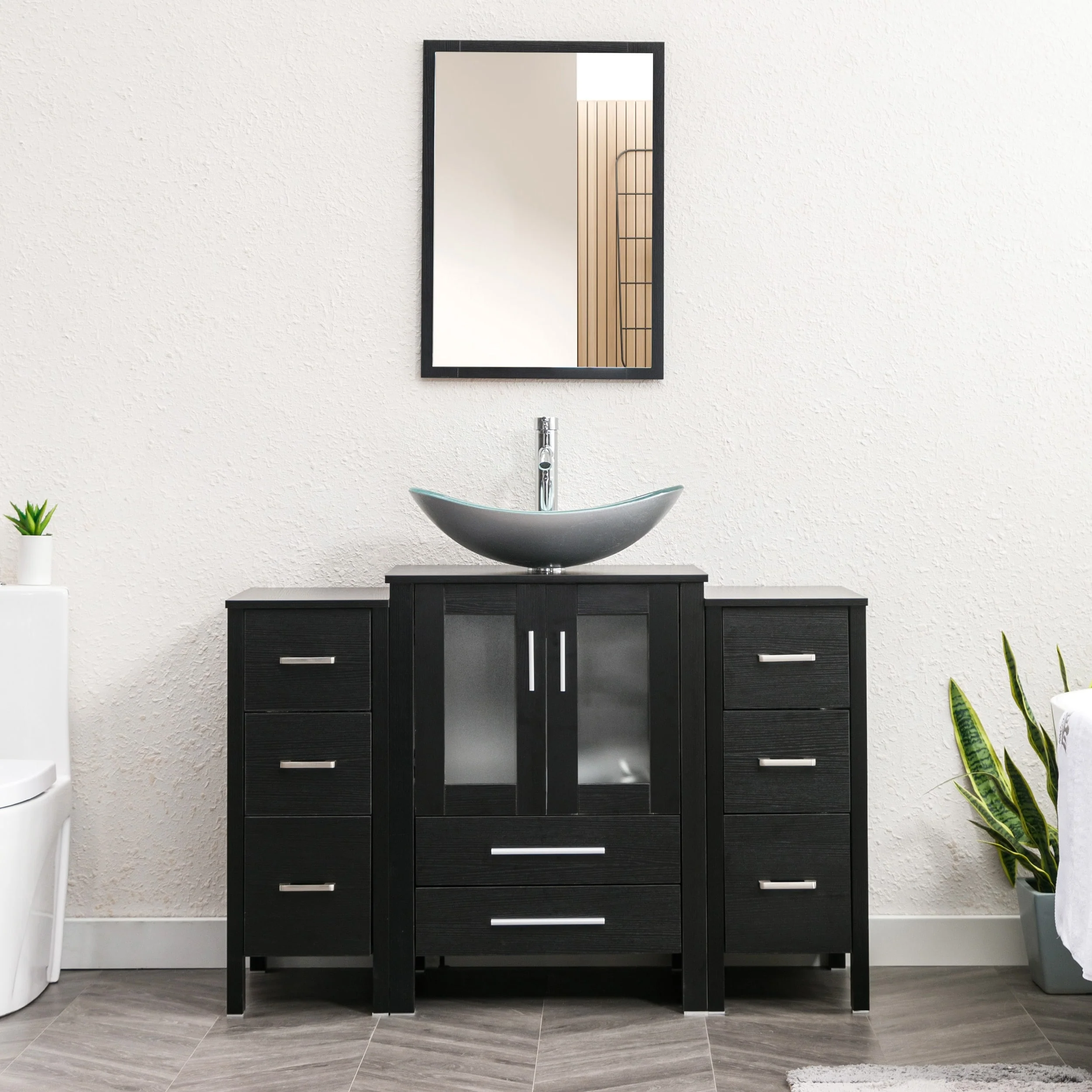 48" Bathroom Vanity Set Vessel Sink Faucet W/ Small Cabinet Combo