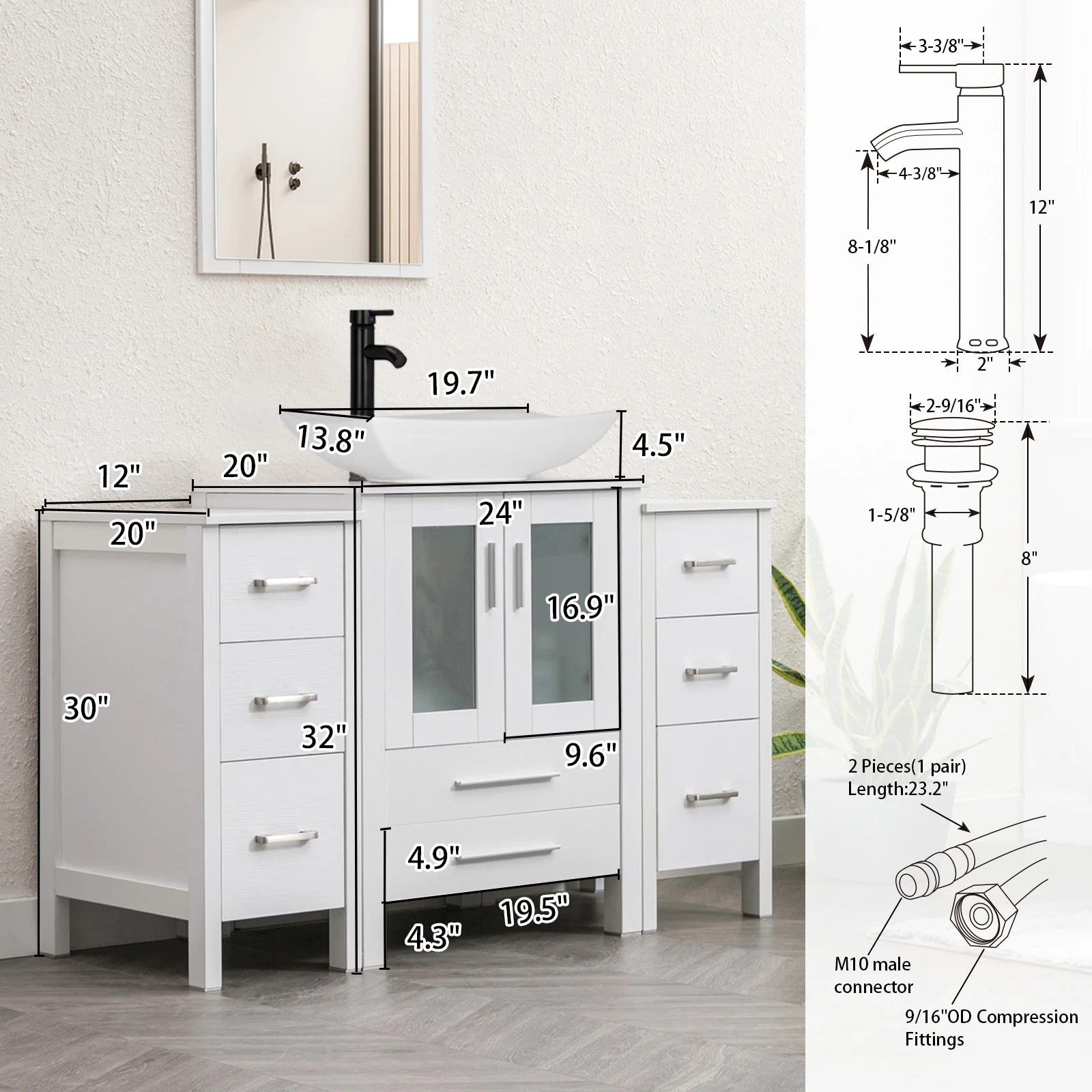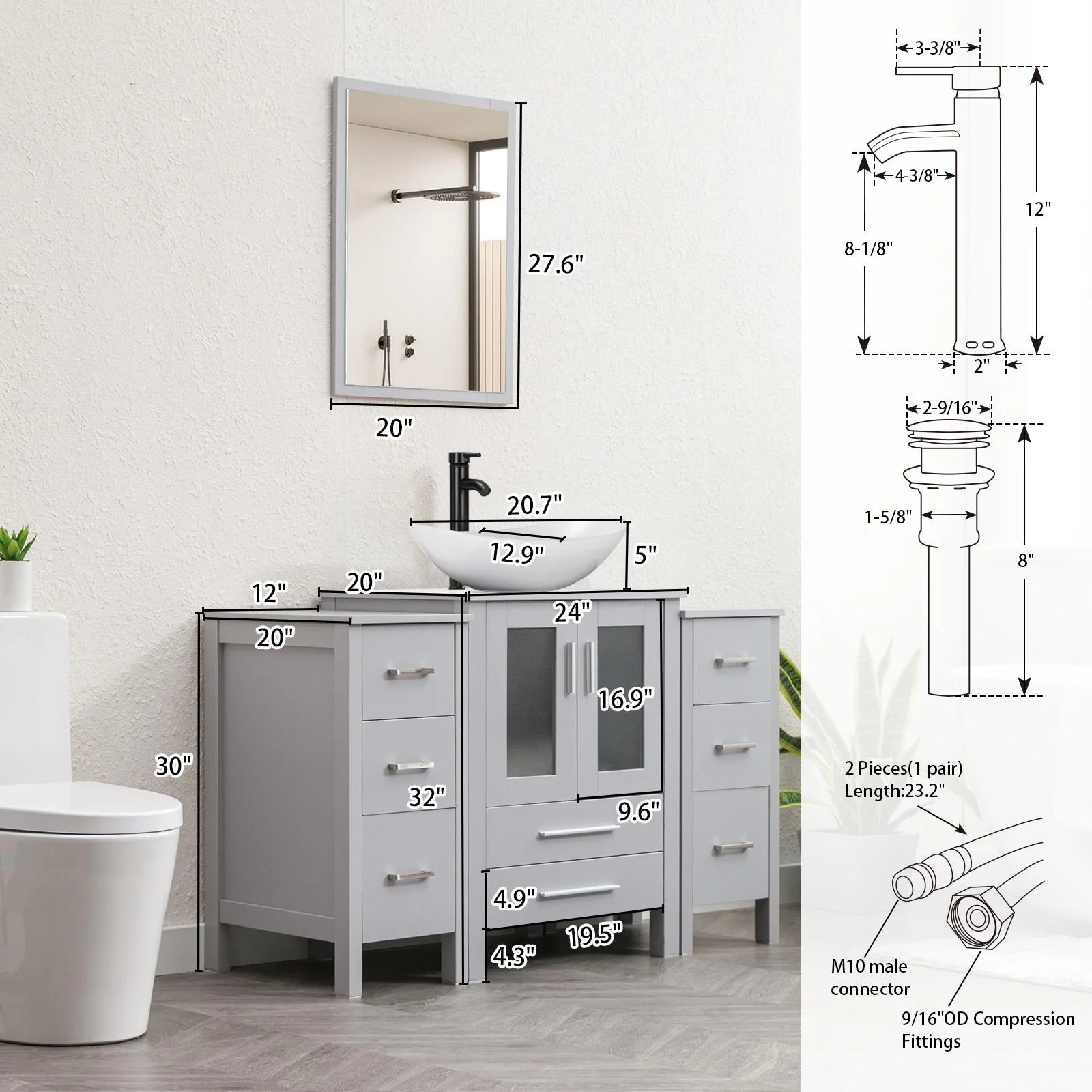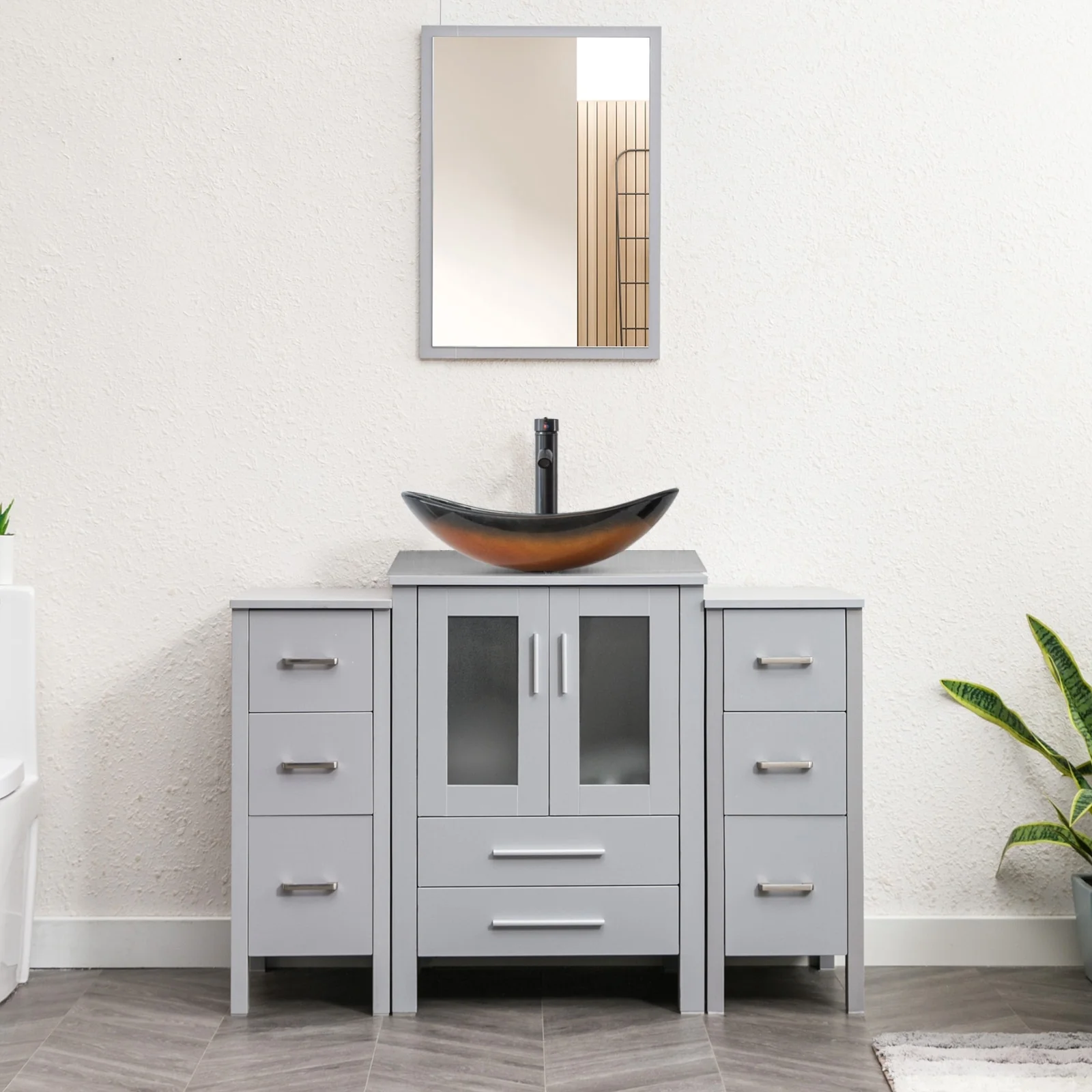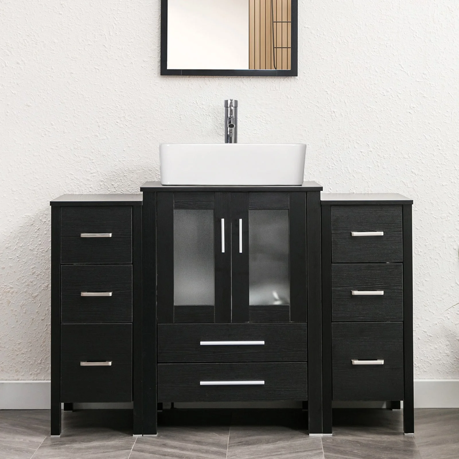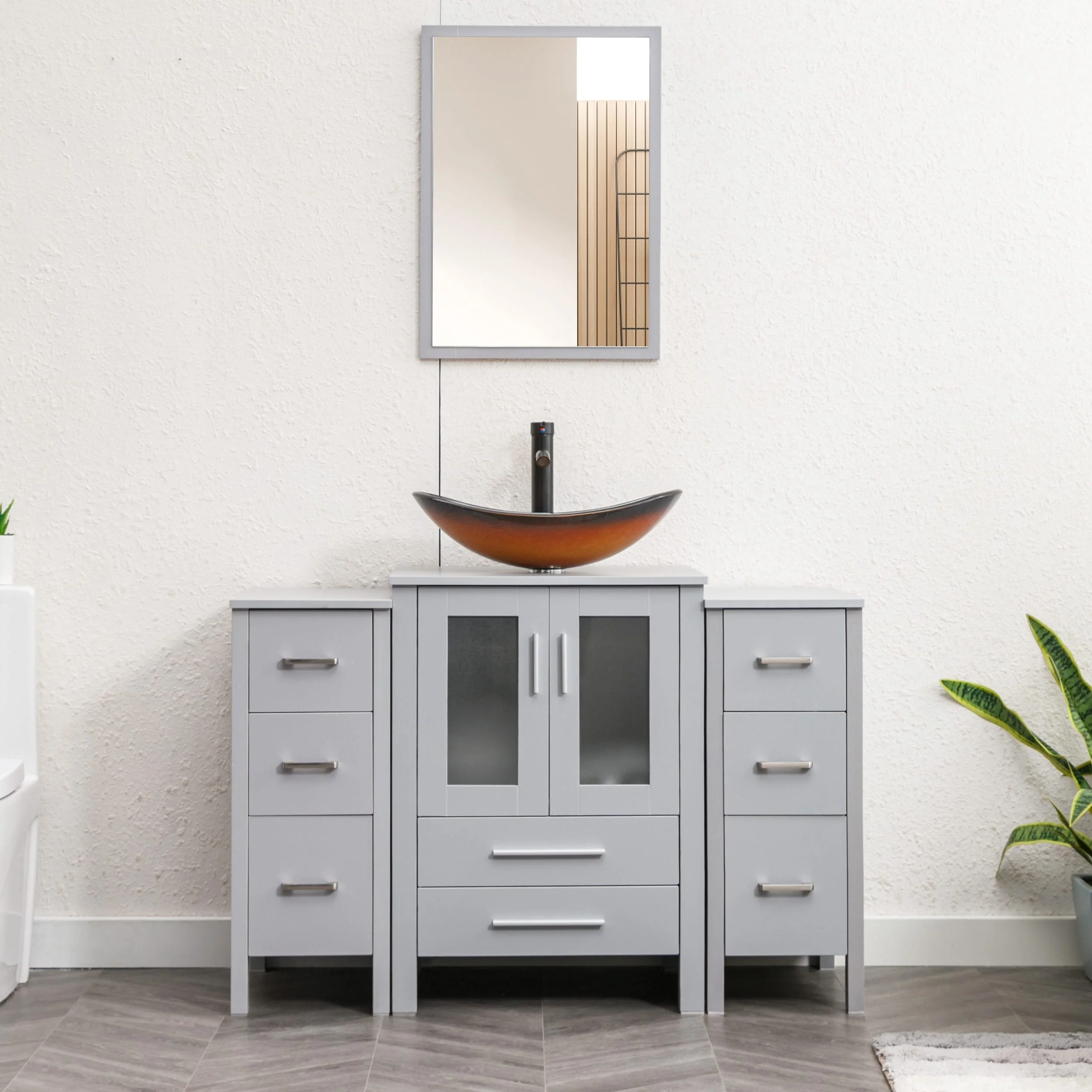 48" Bathroom Vanity Set Vessel Sink Faucet W/ Small Cabinet Combo