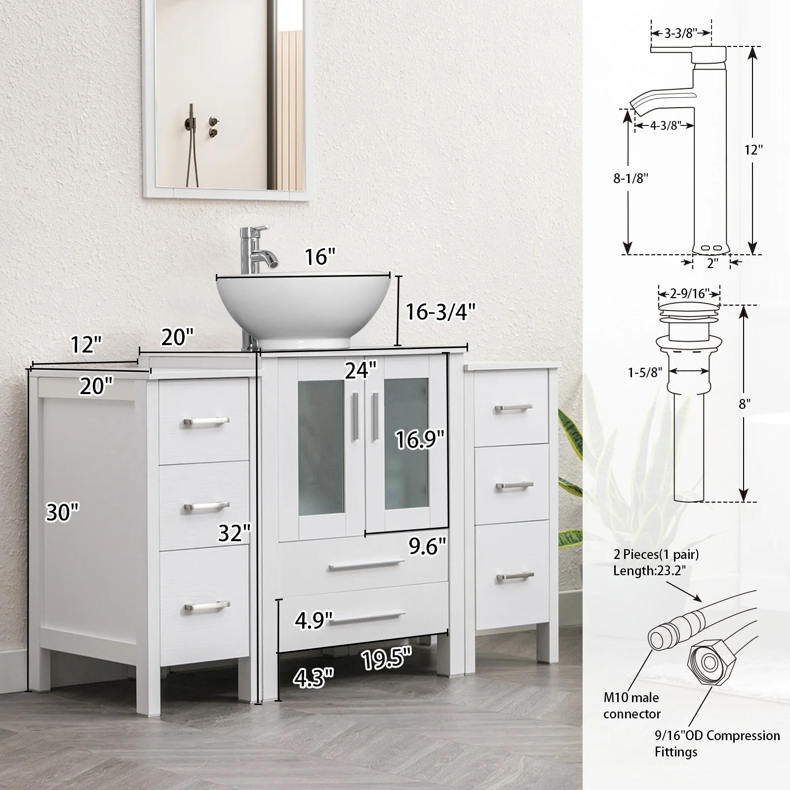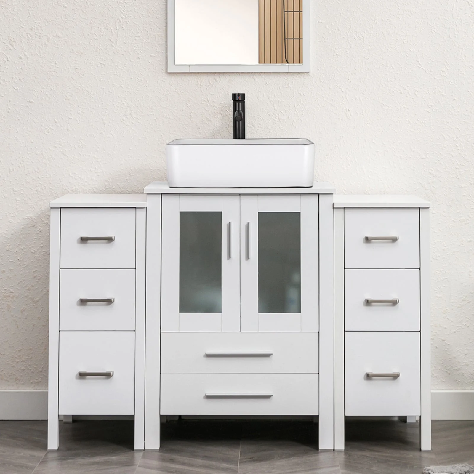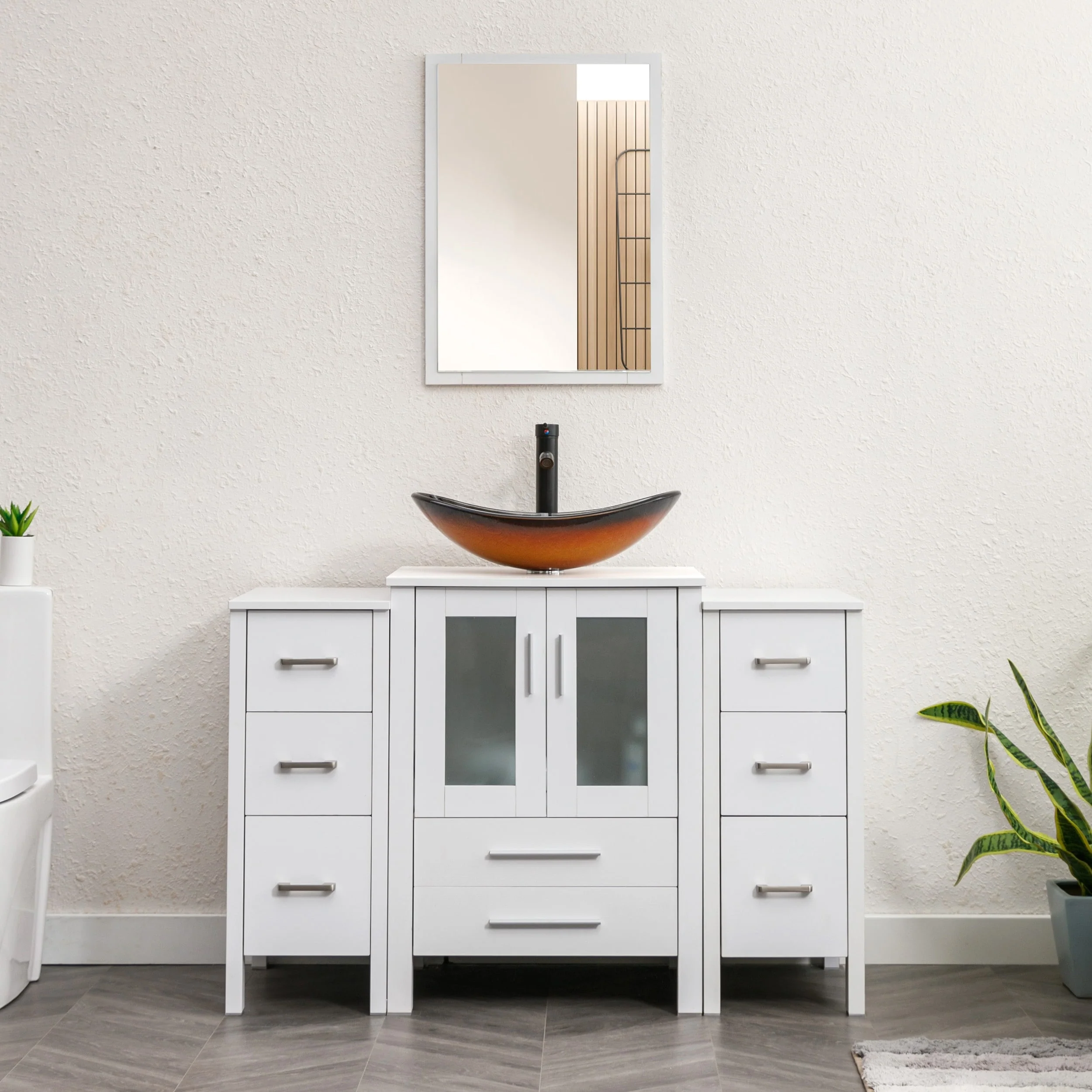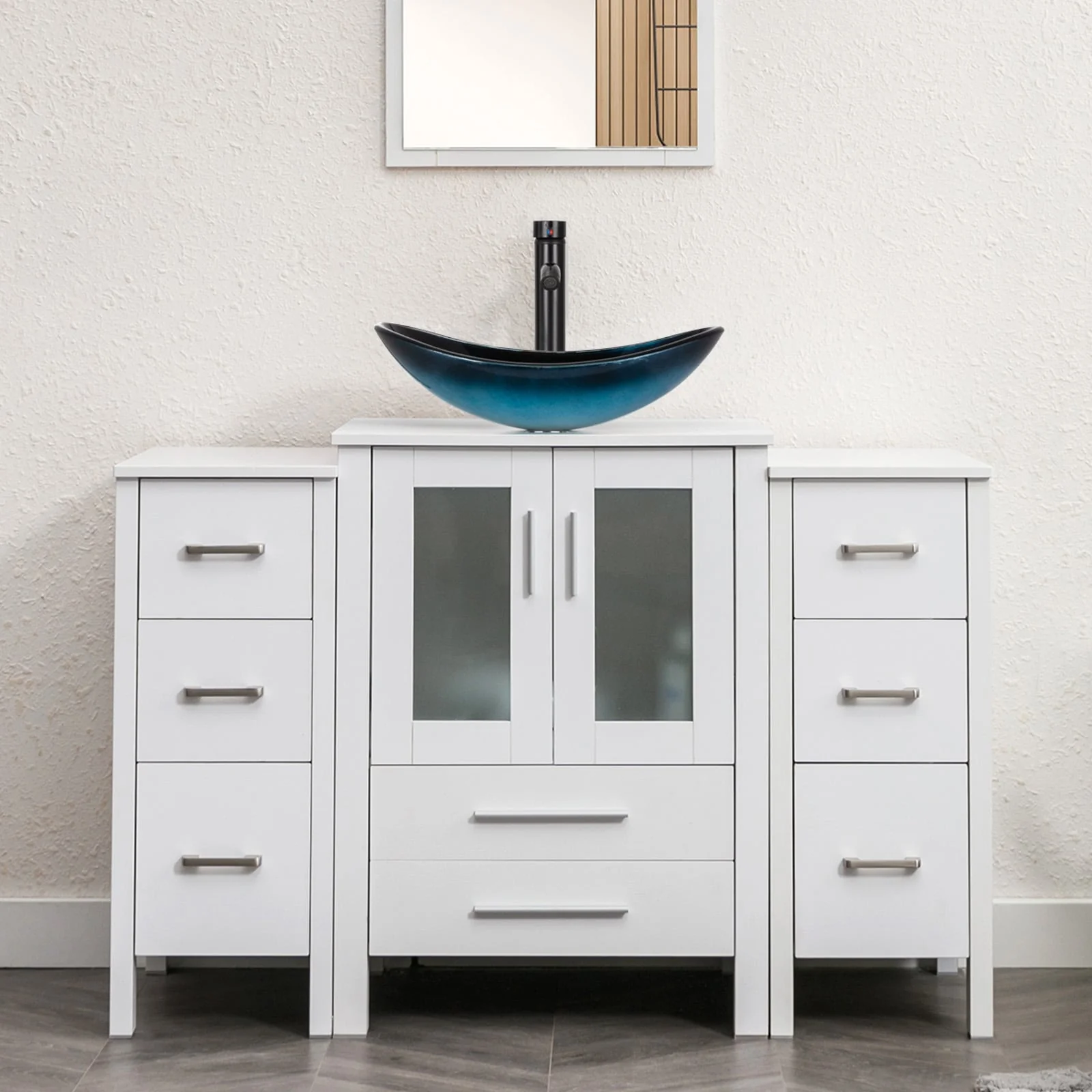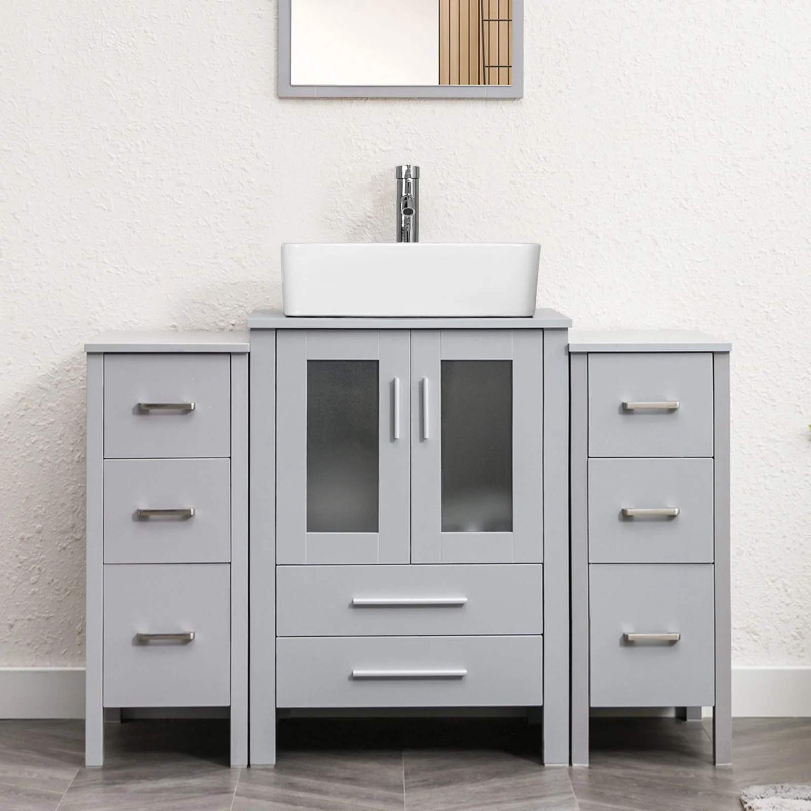 48" Bathroom Vanity Set Vessel Sink Faucet W/ Small Cabinet Combo
