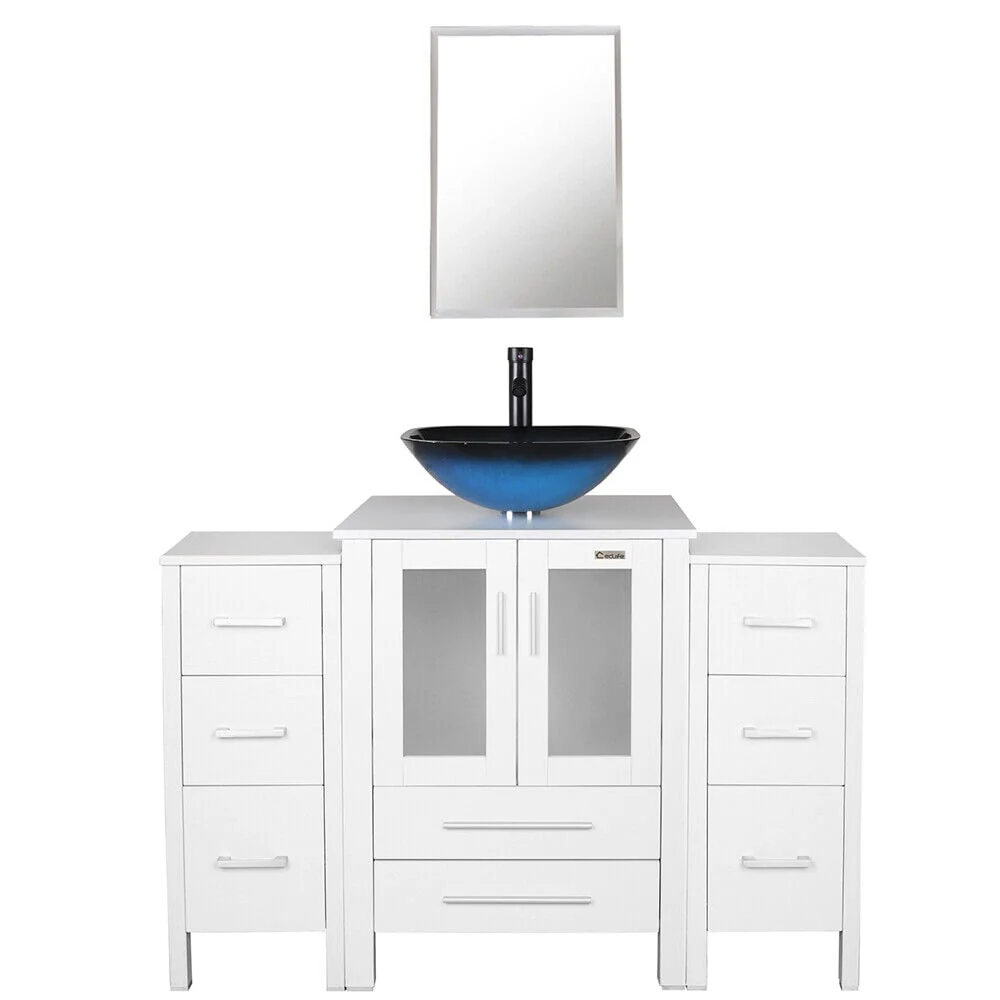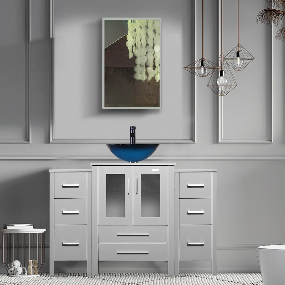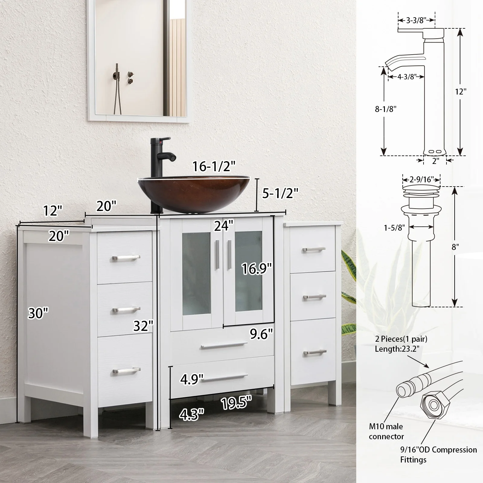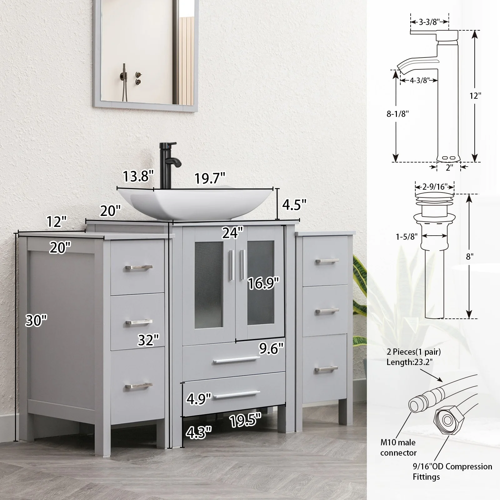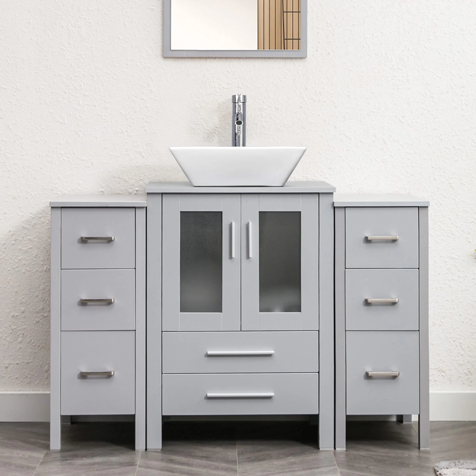 48" Bathroom Vanity Set Vessel Sink Faucet W/ Small Cabinet Combo