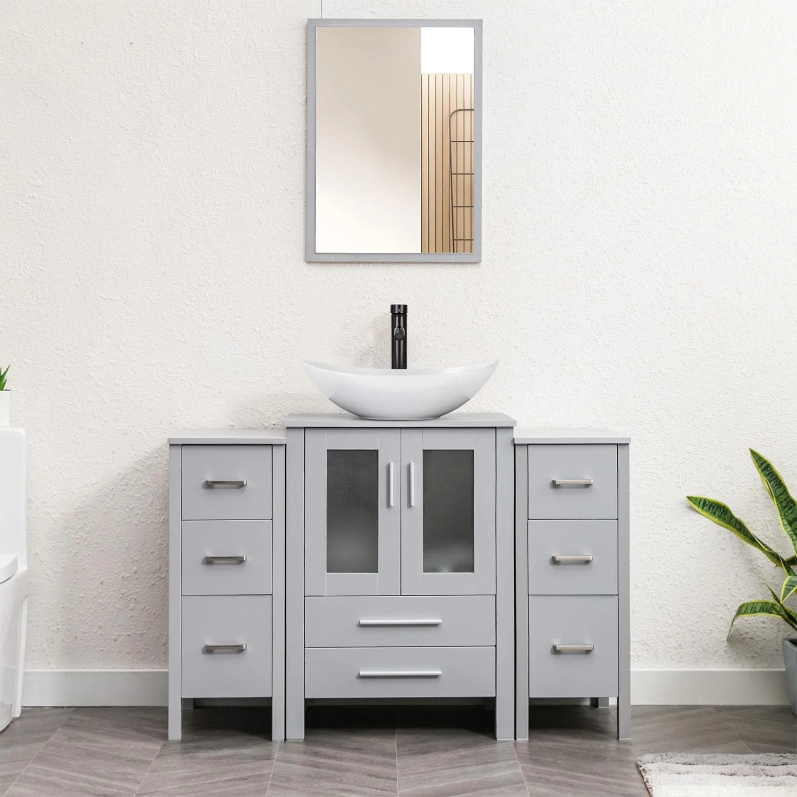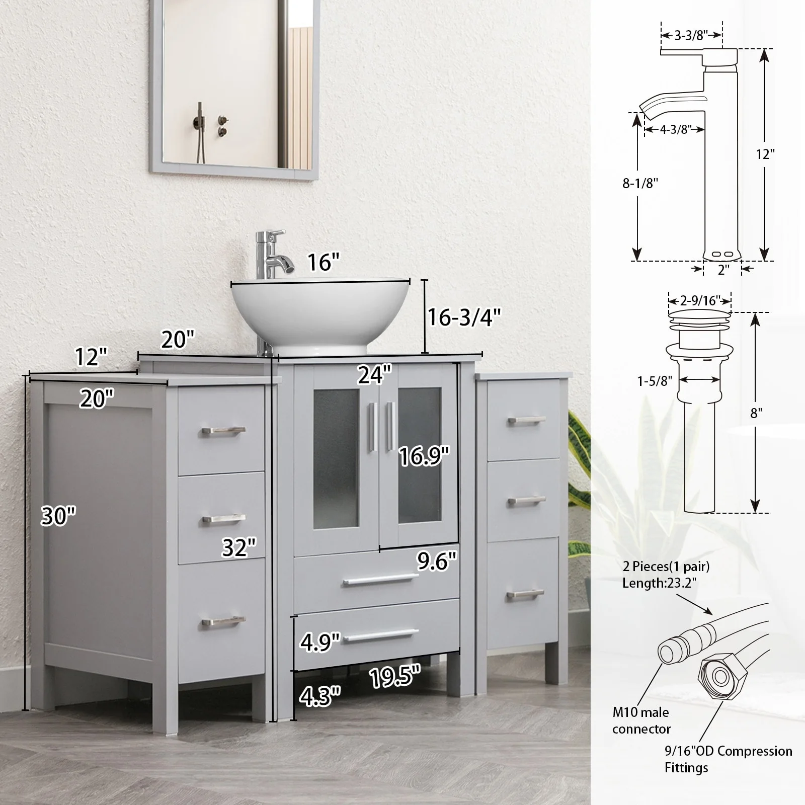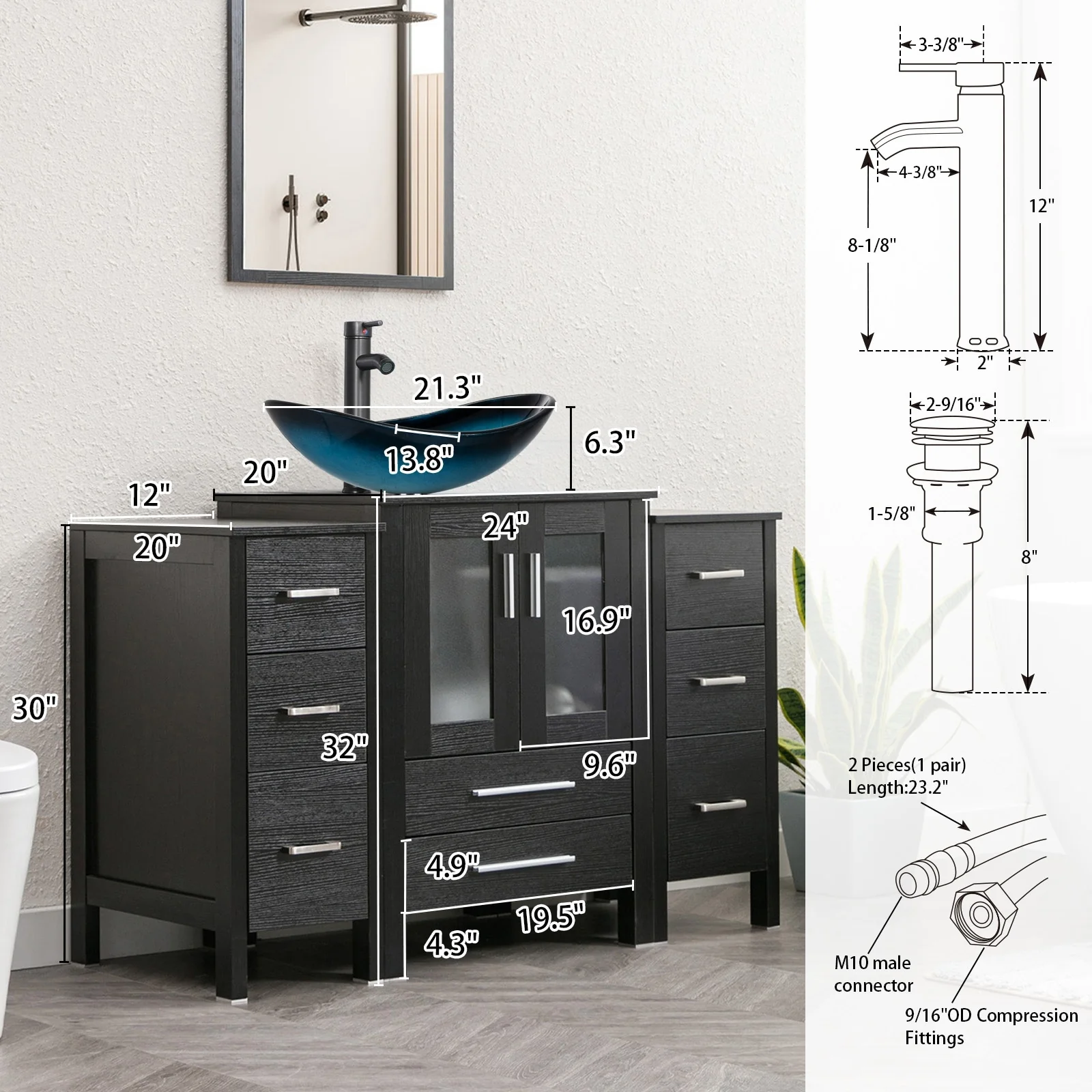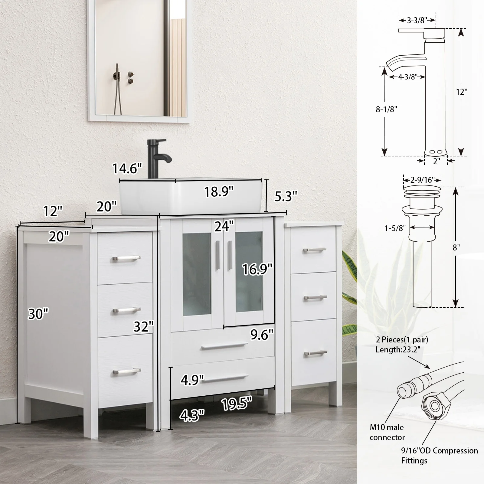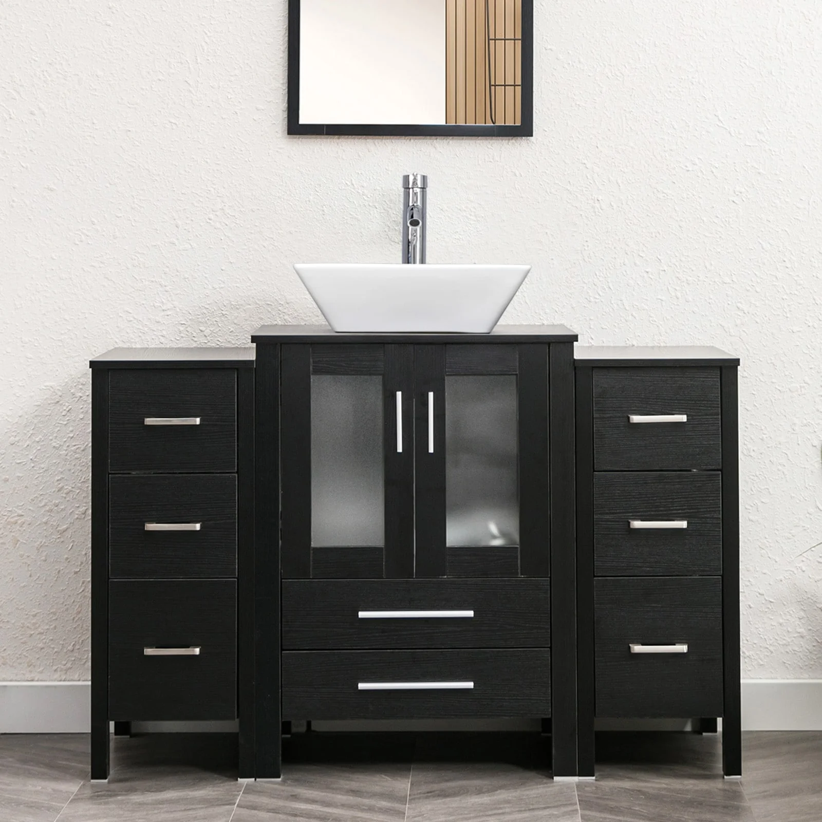 48" Bathroom Vanity Set Vessel Sink Faucet W/ Small Cabinet Combo