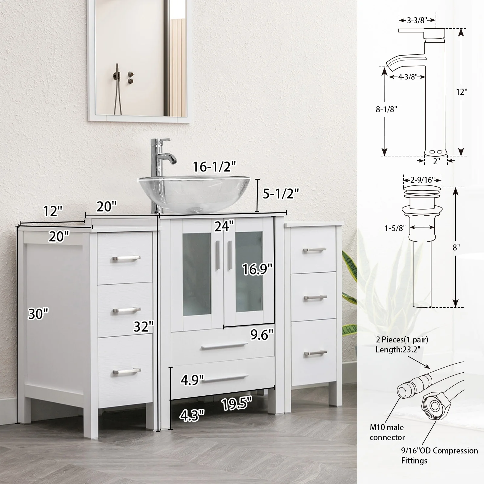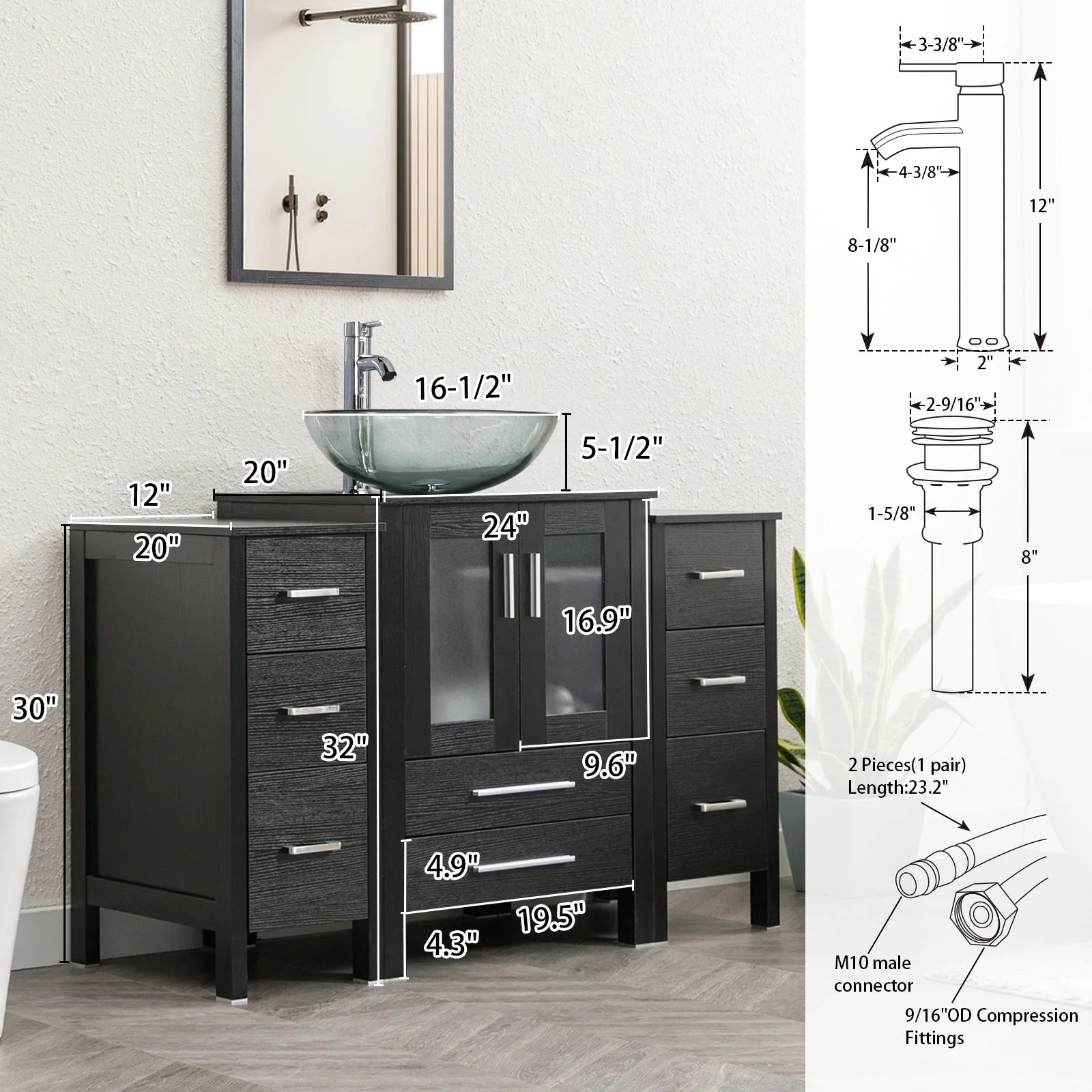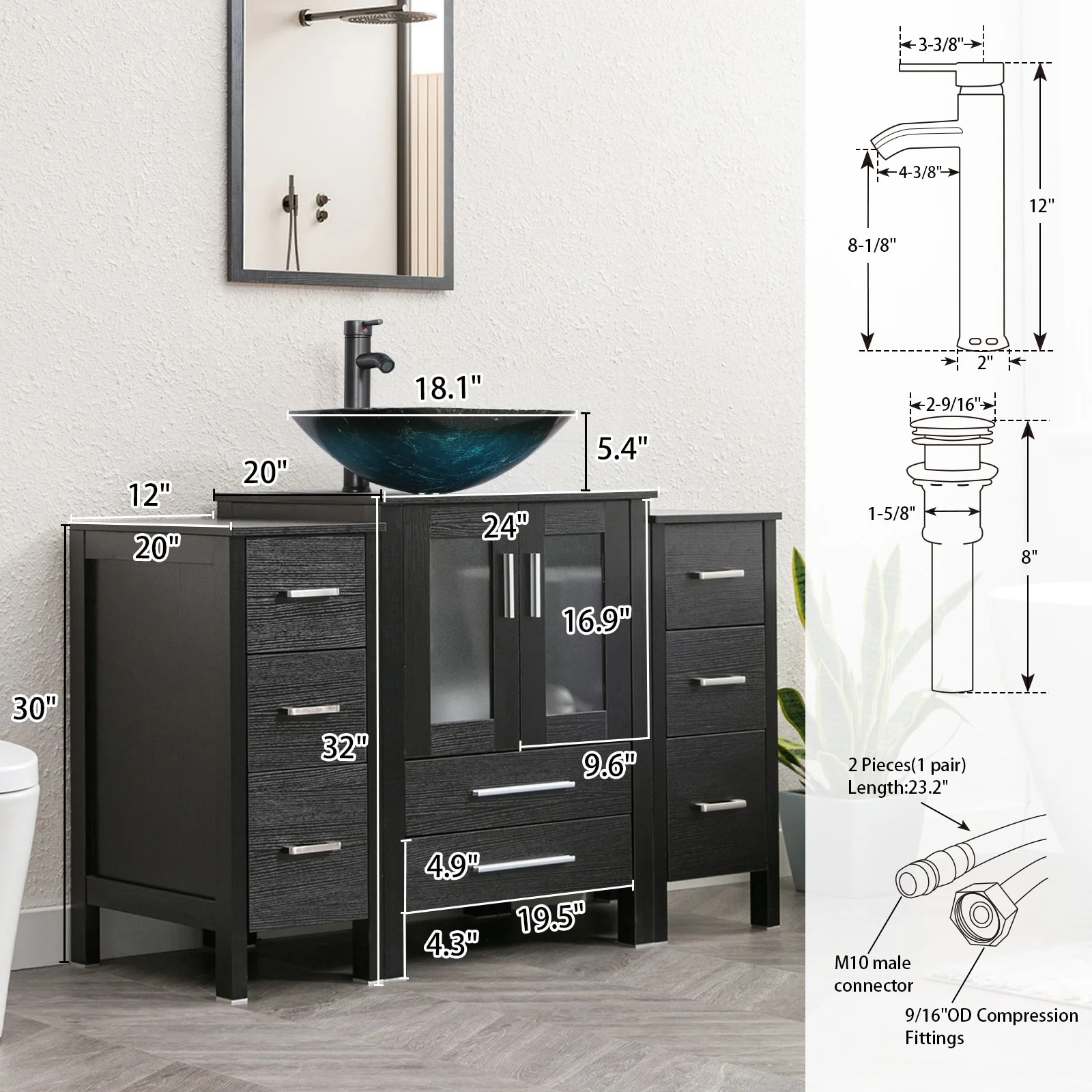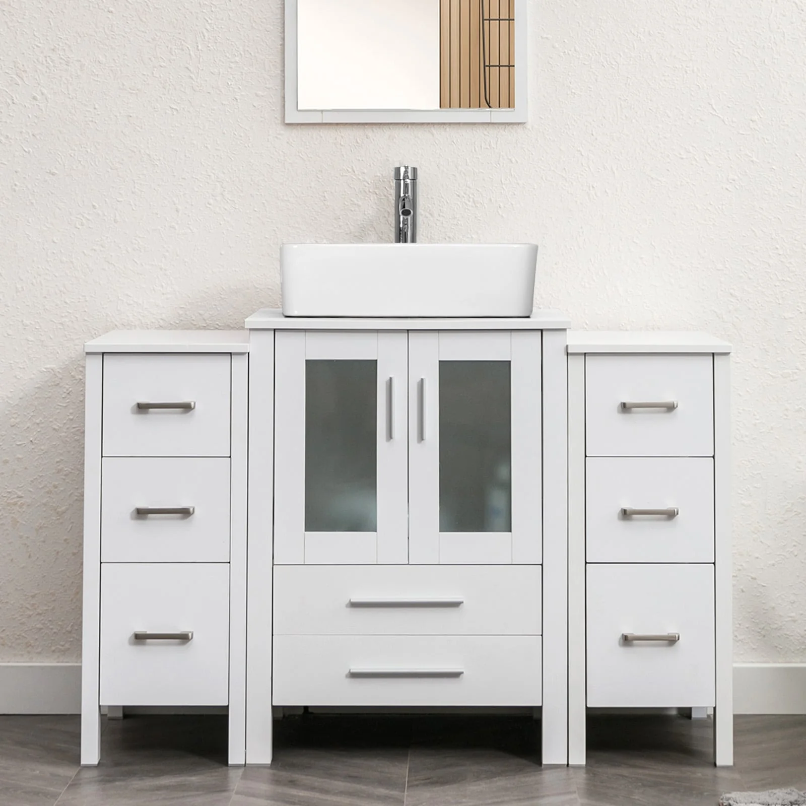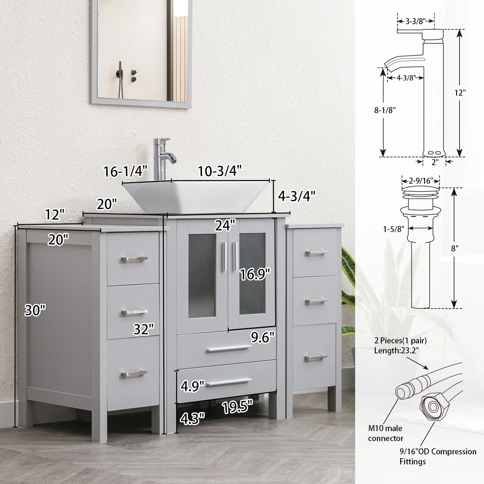 48" Bathroom Vanity Set Vessel Sink Faucet W/ Small Cabinet Combo