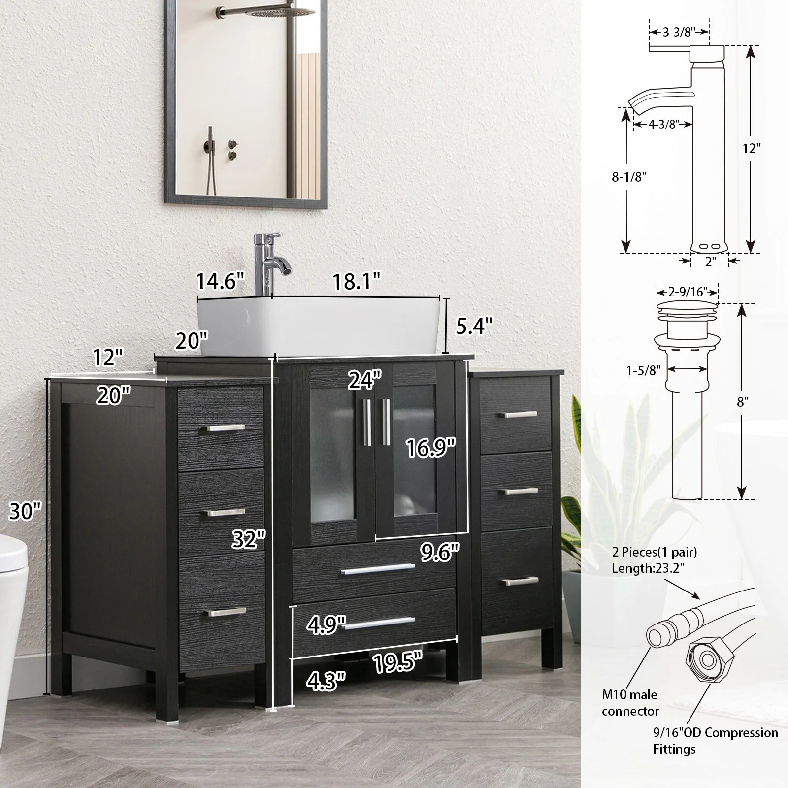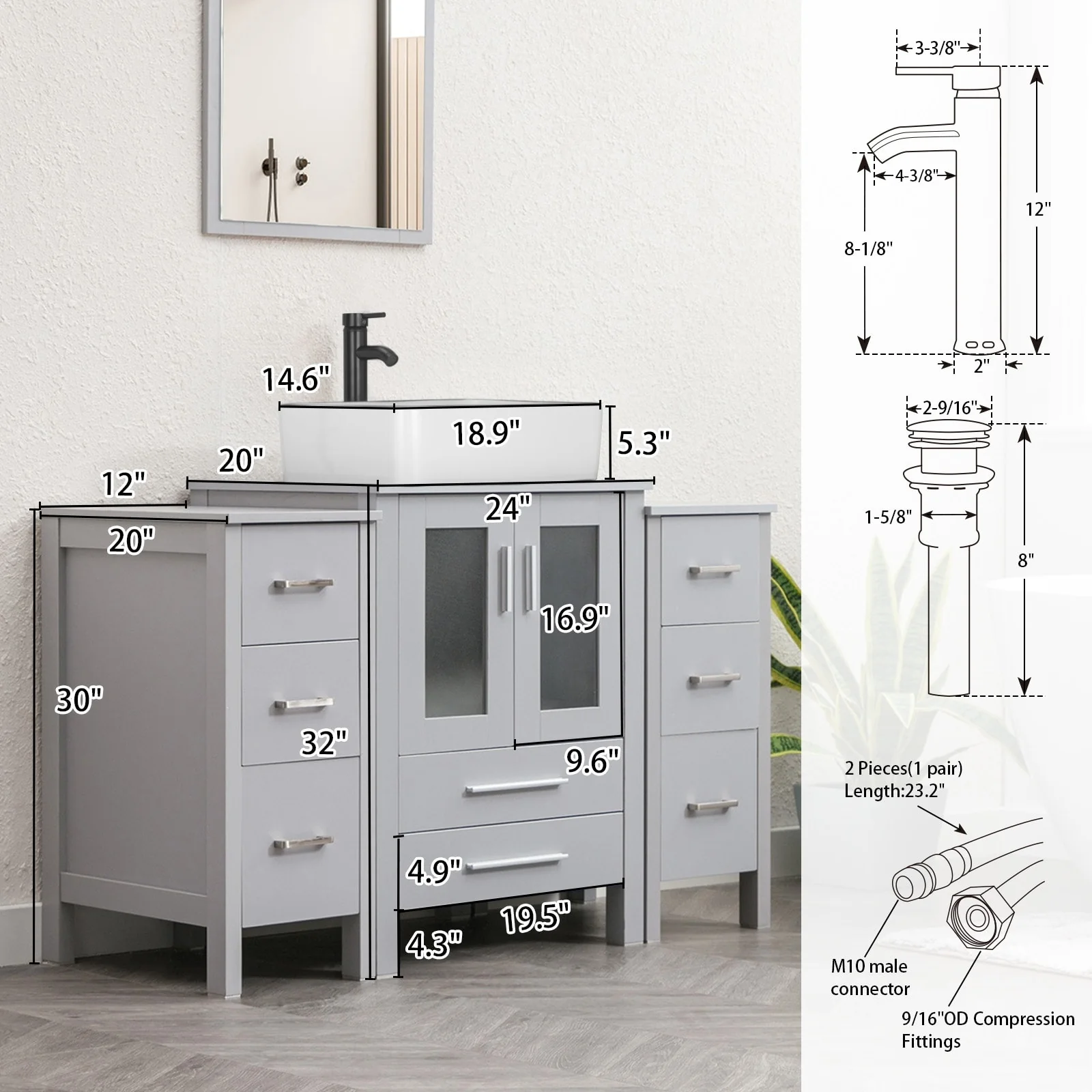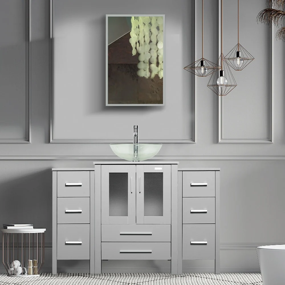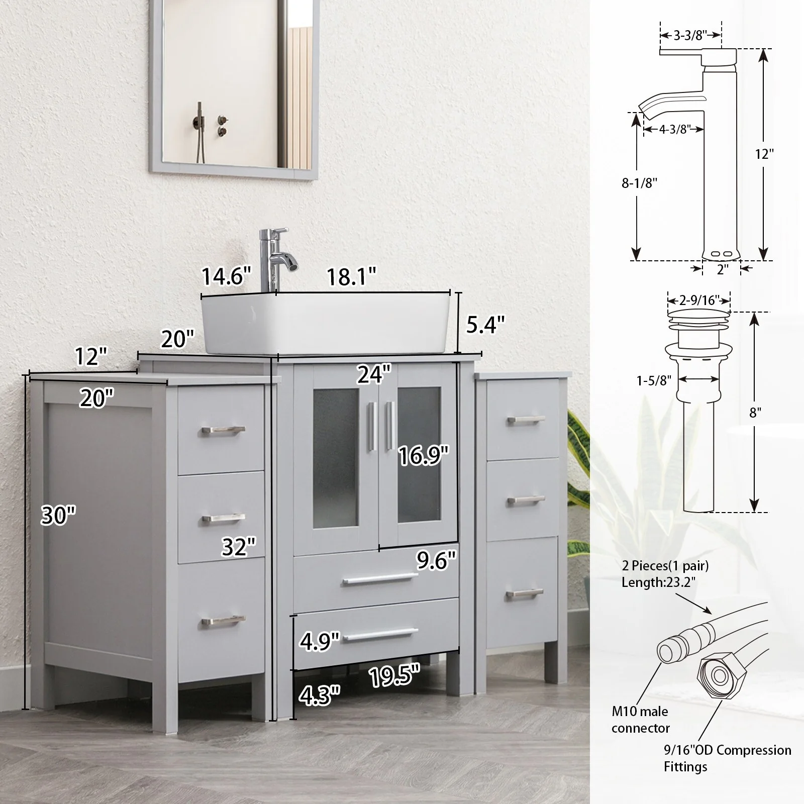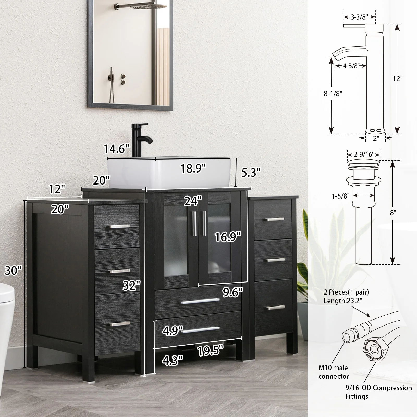 48" Bathroom Vanity Set Vessel Sink Faucet W/ Small Cabinet Combo