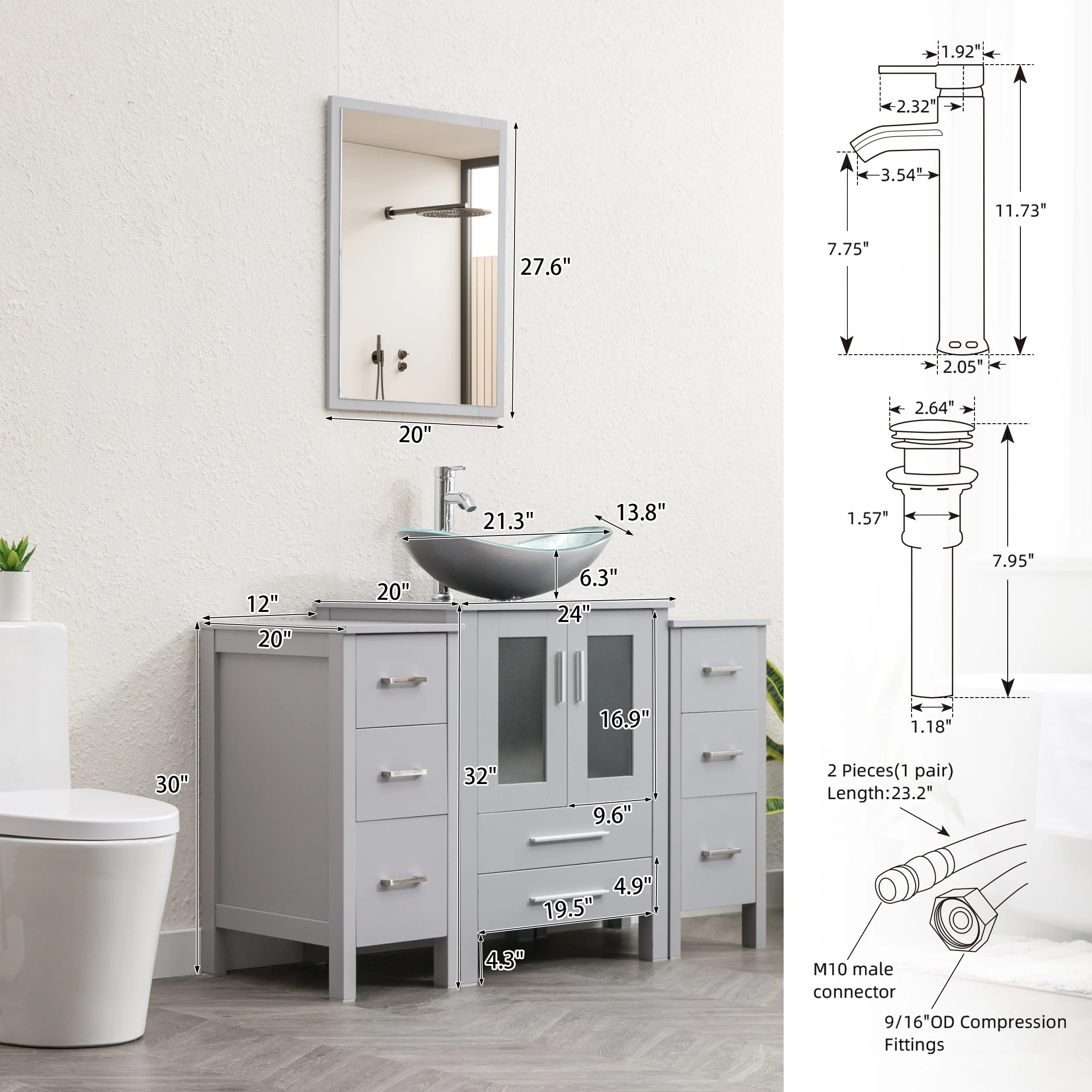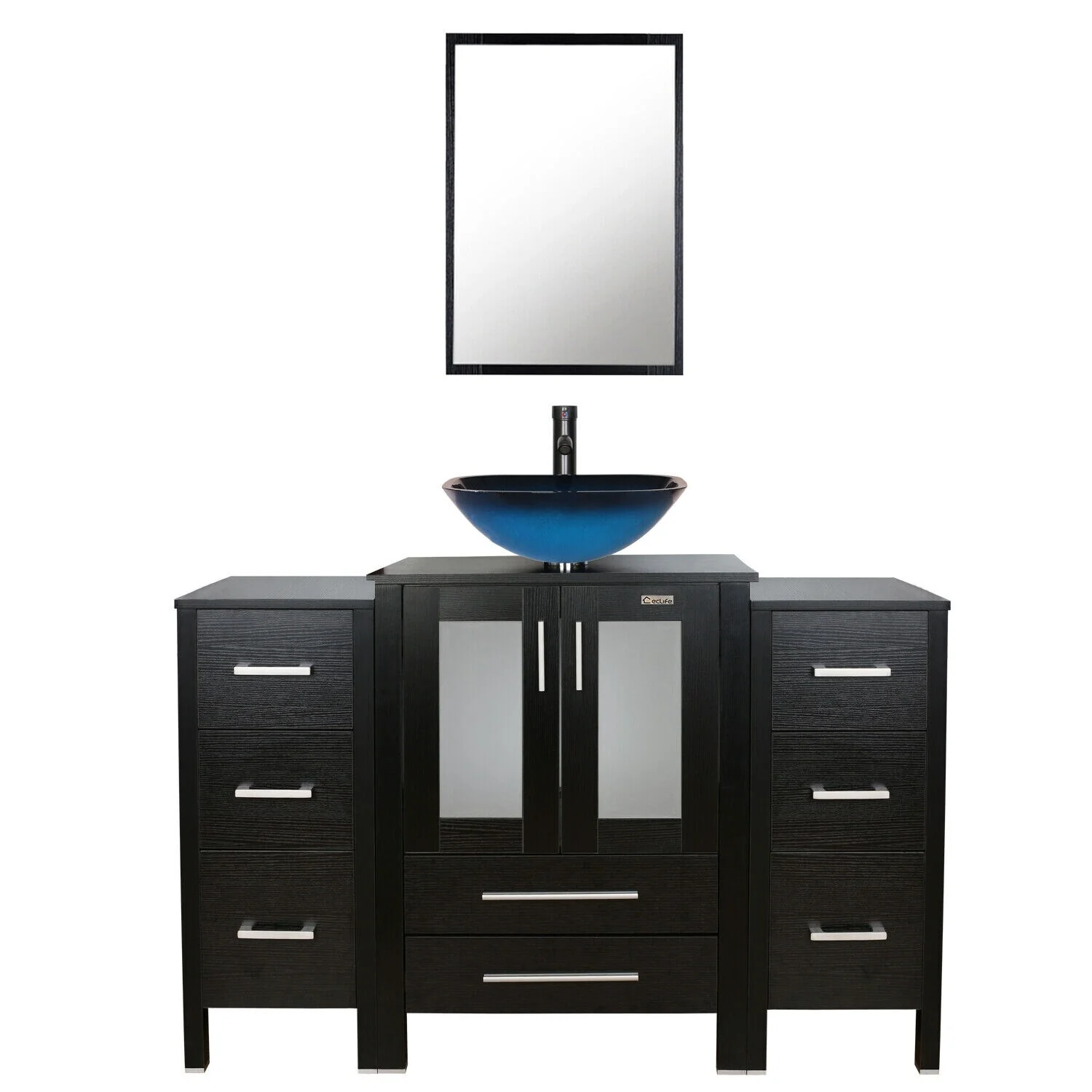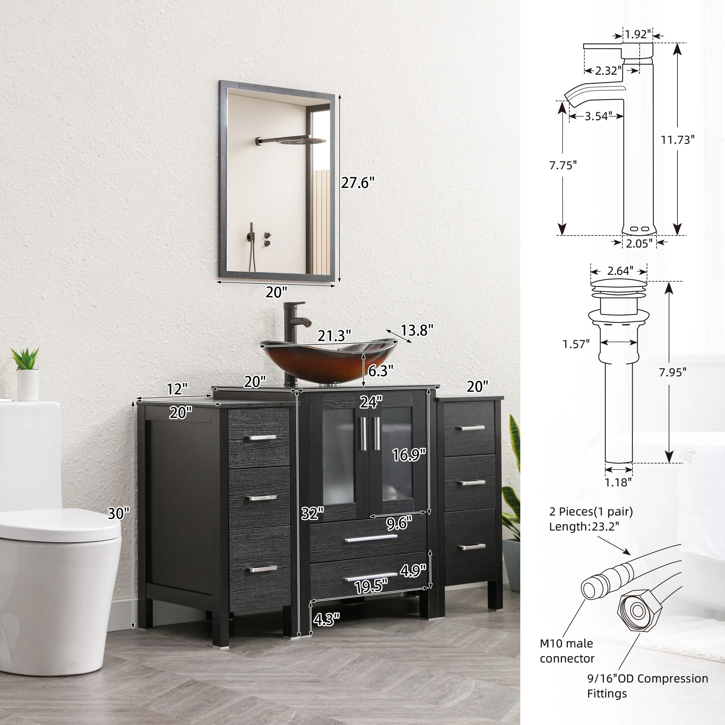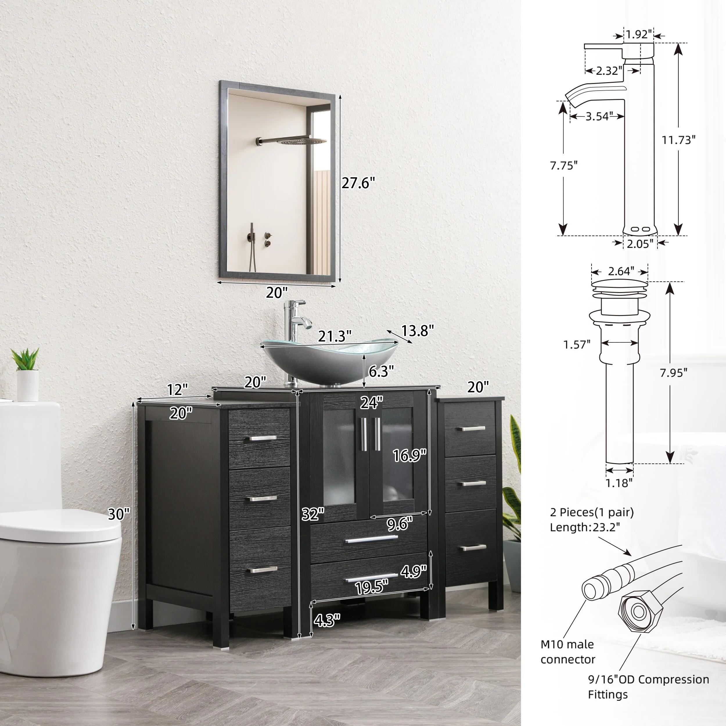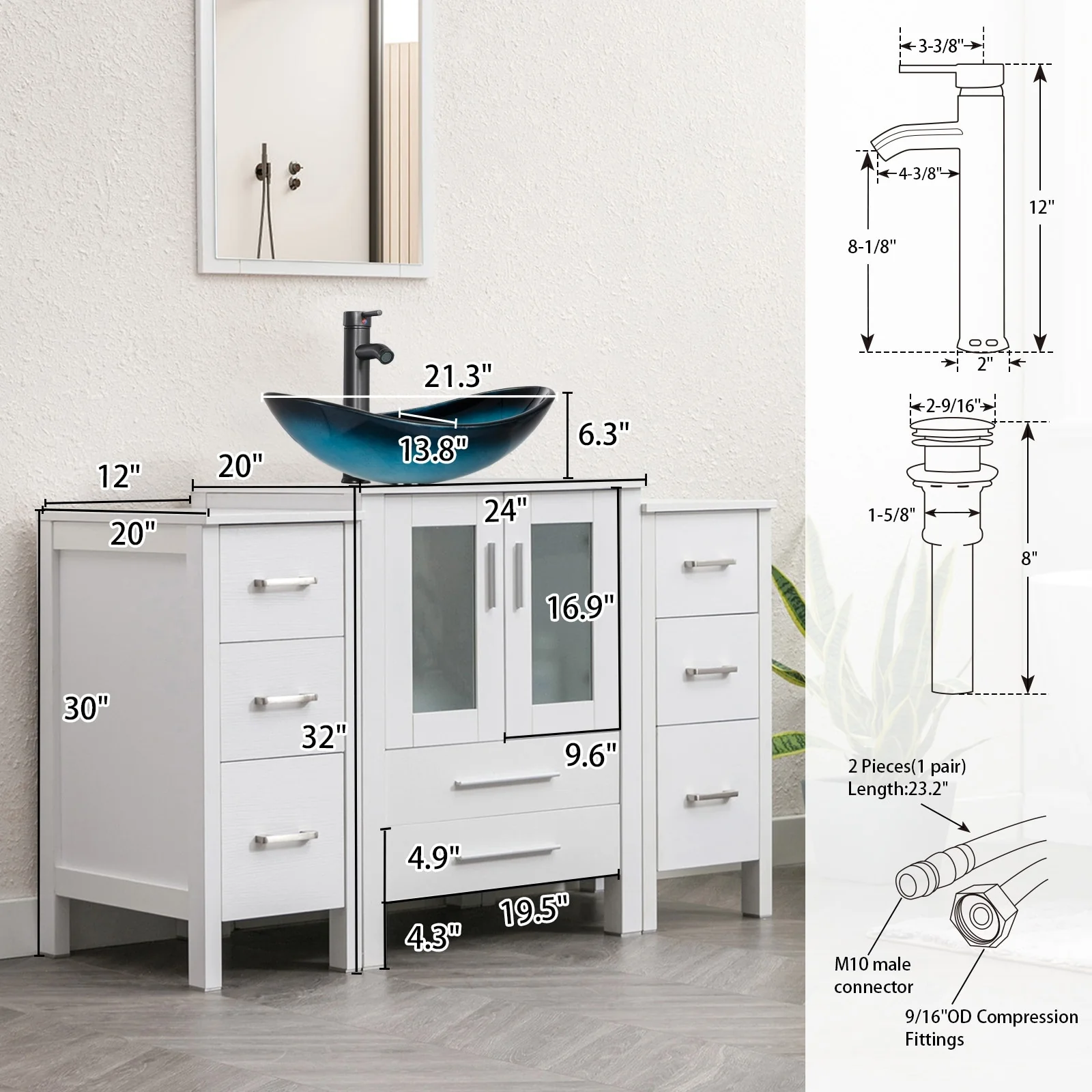 48" Bathroom Vanity Set Vessel Sink Faucet W/ Small Cabinet Combo