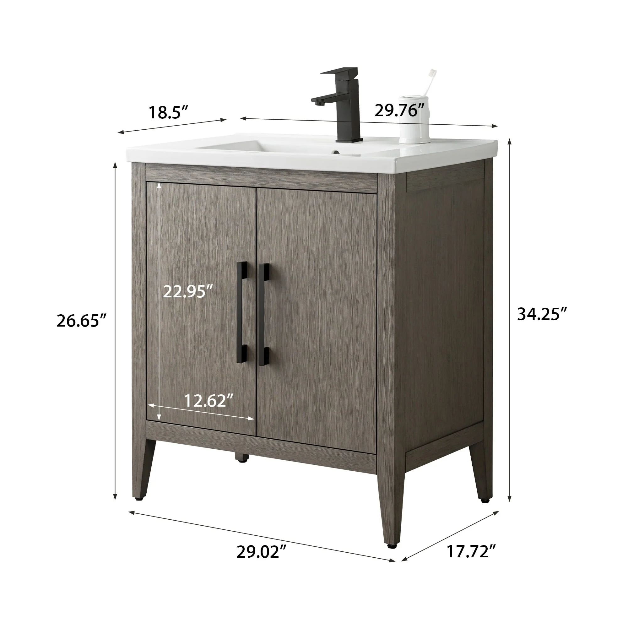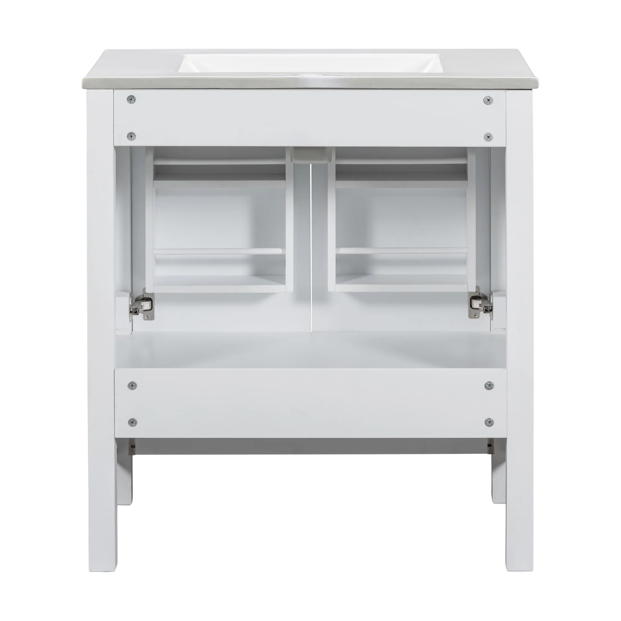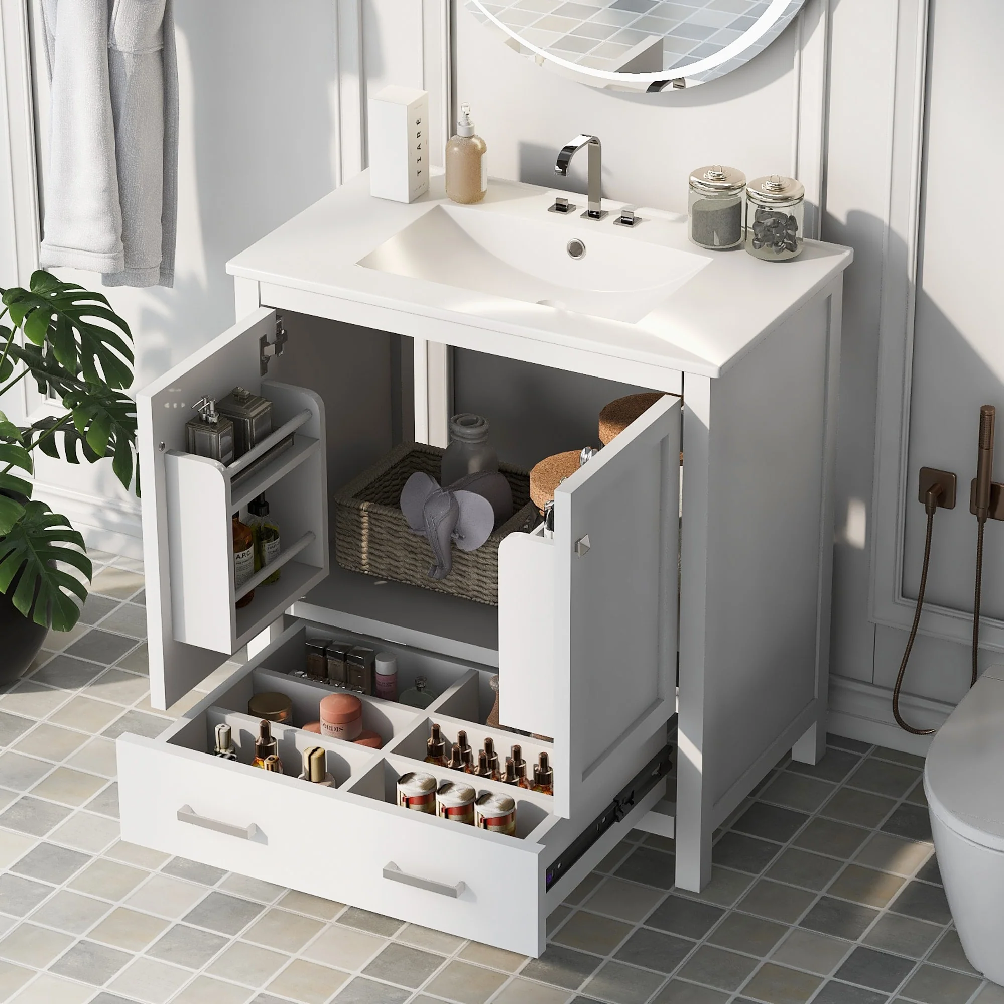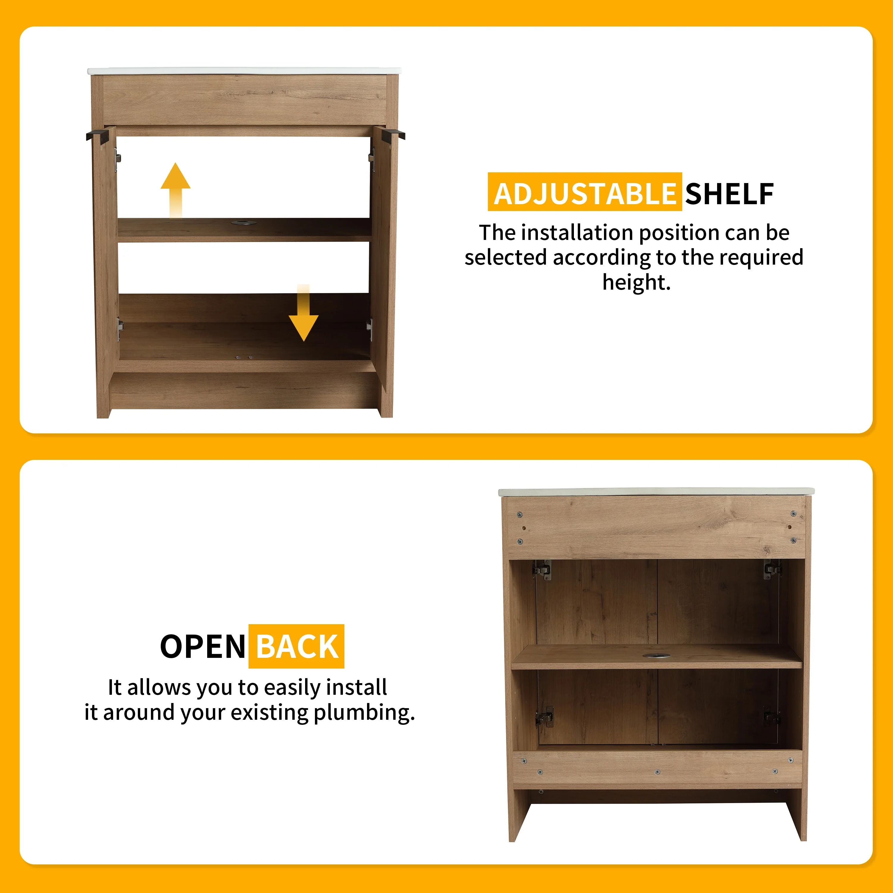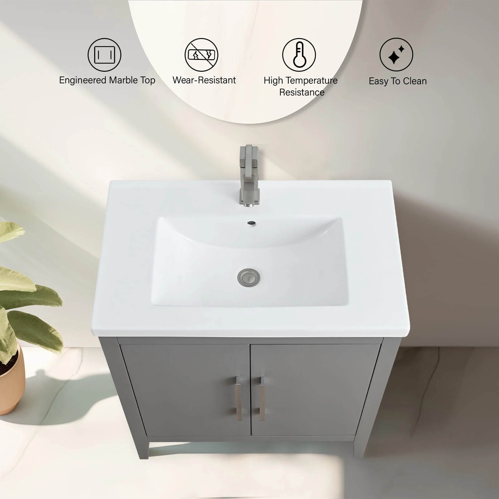 Modern 30-Inch Bathroom Vanity Cabinet with Easy-to-Clean Resin Integrated Sink