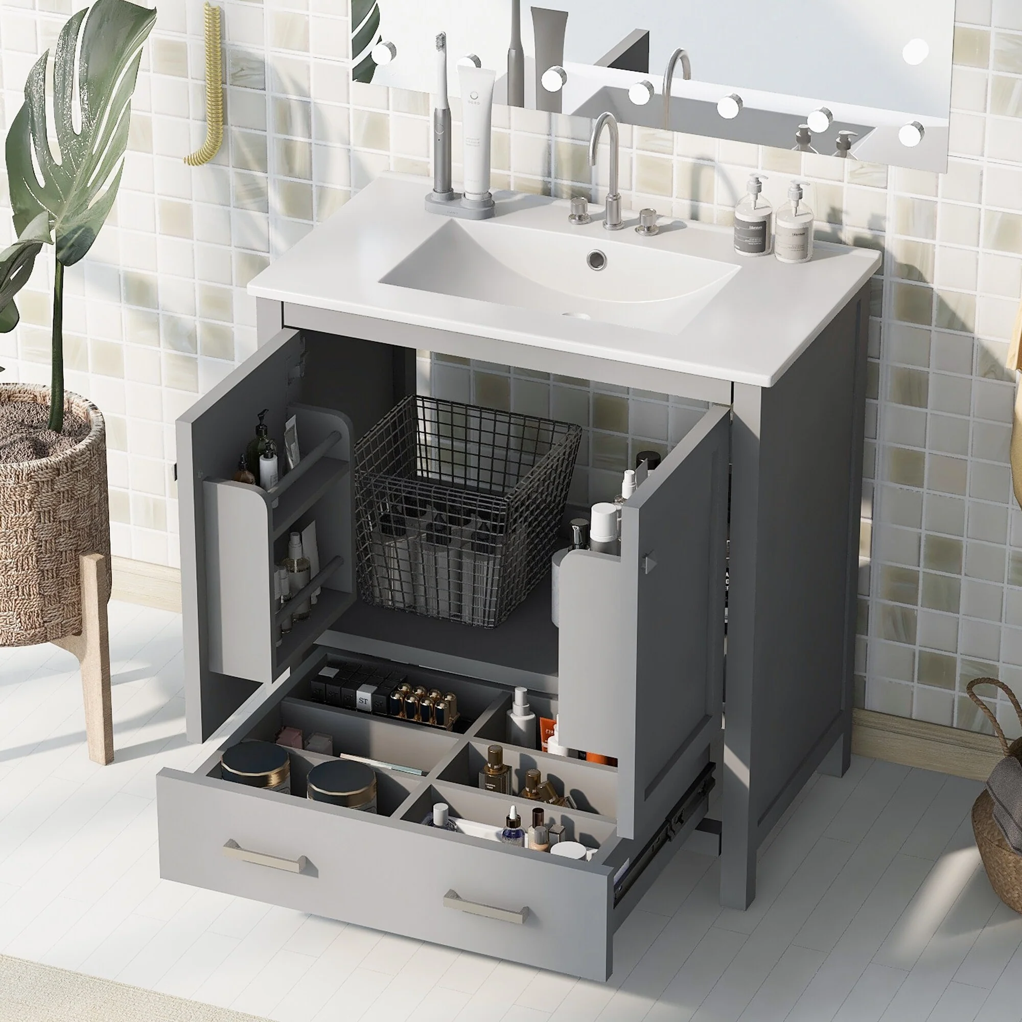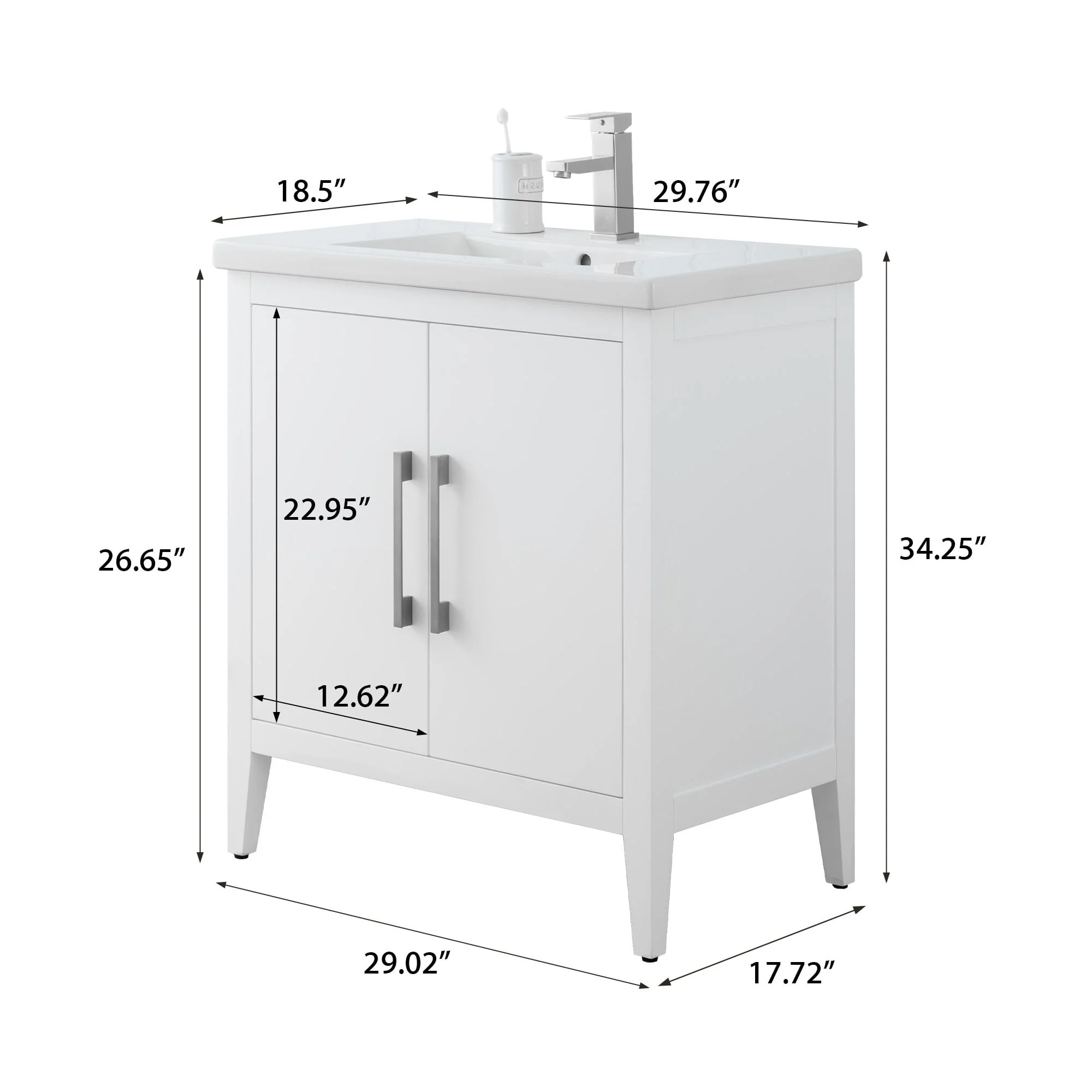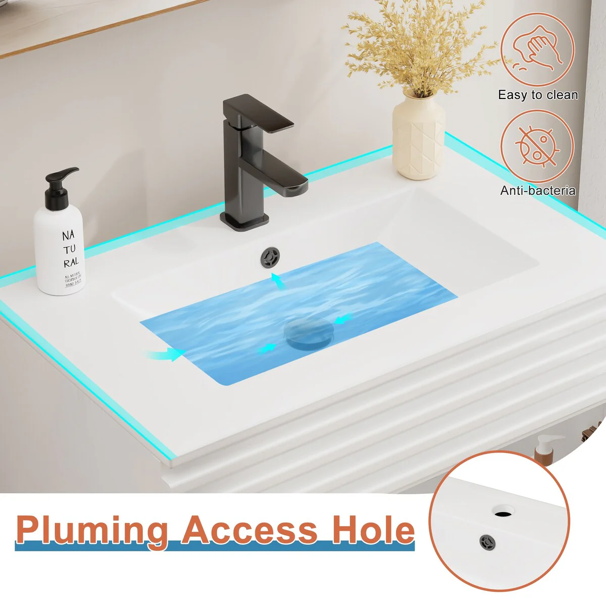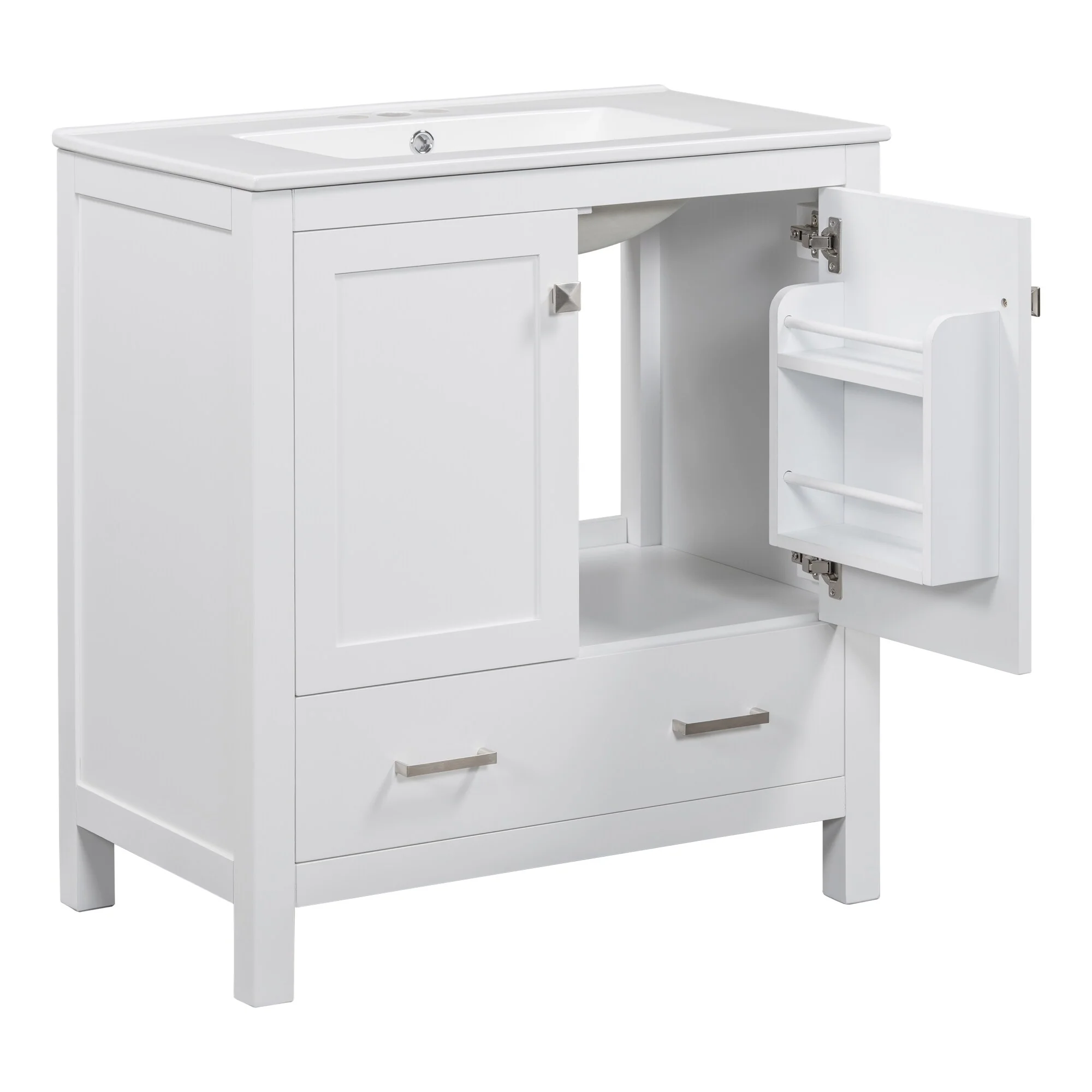 Modern 30-Inch Bathroom Vanity Cabinet with Easy-to-Clean Resin Integrated Sink