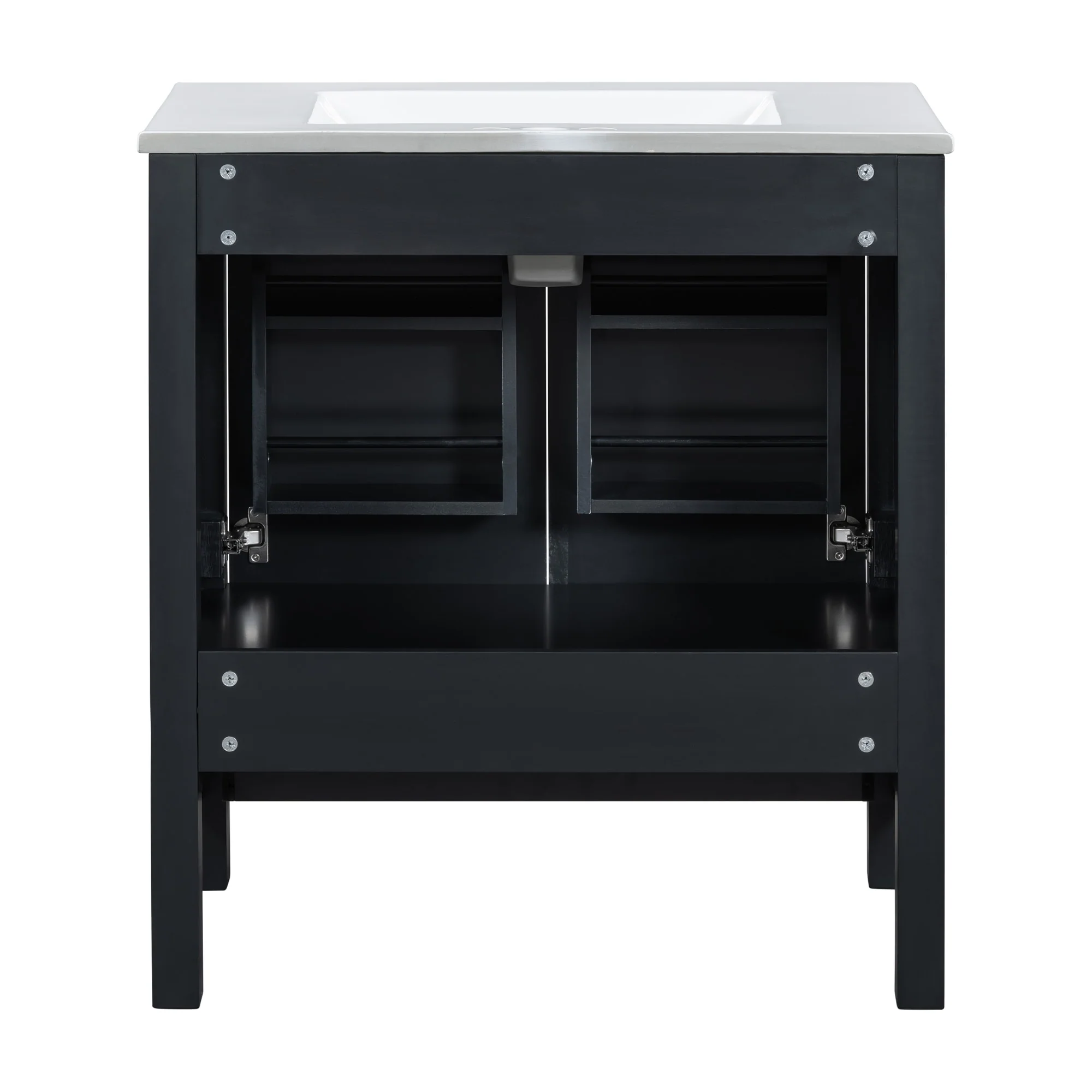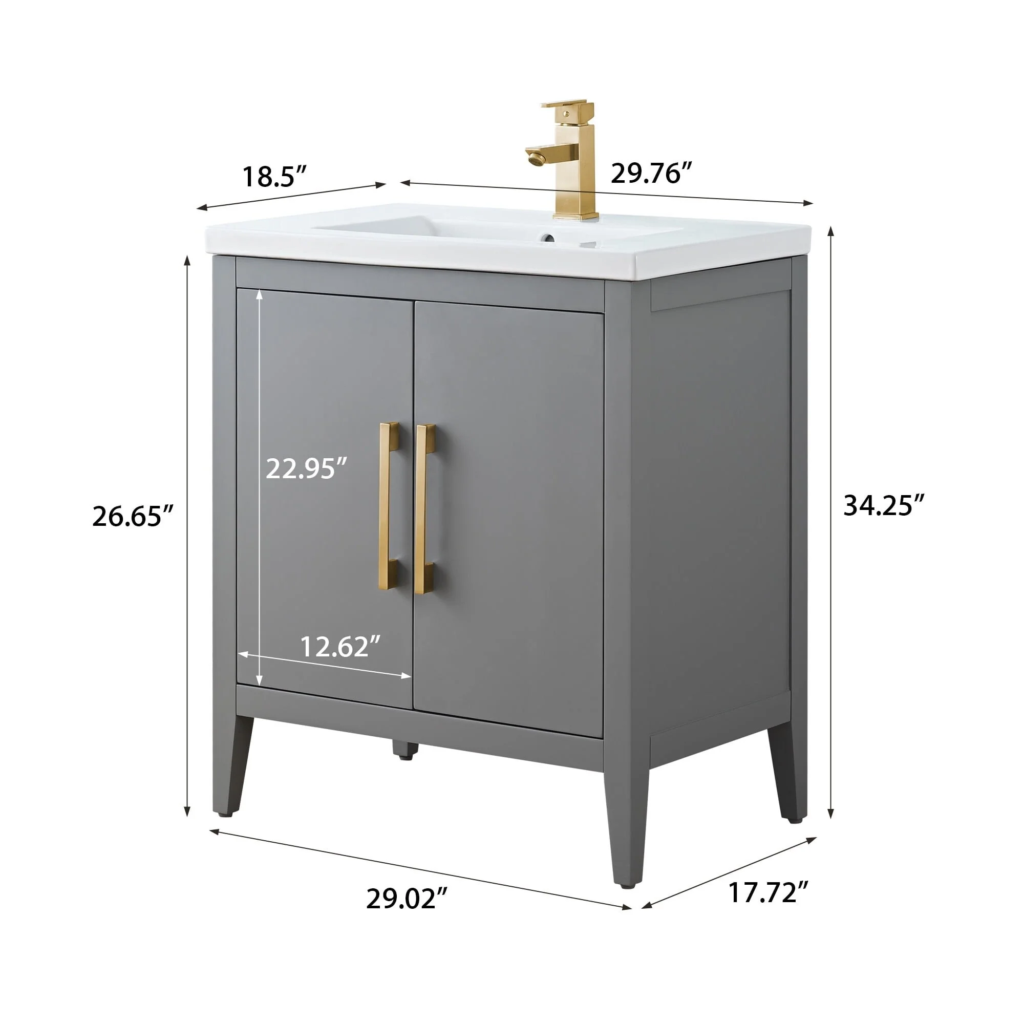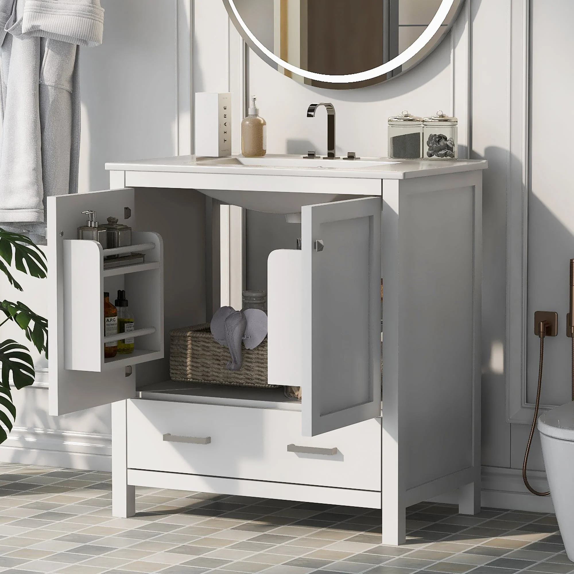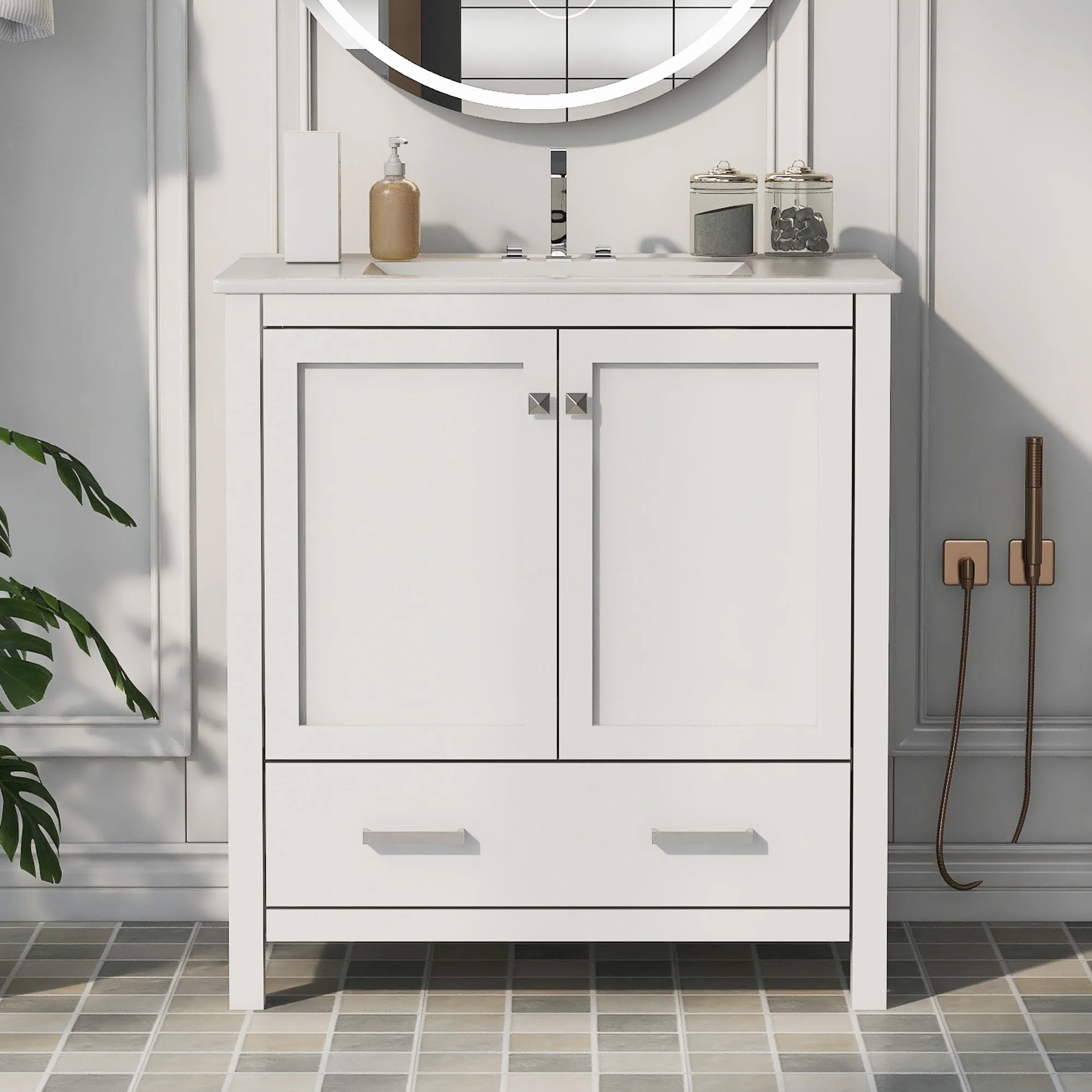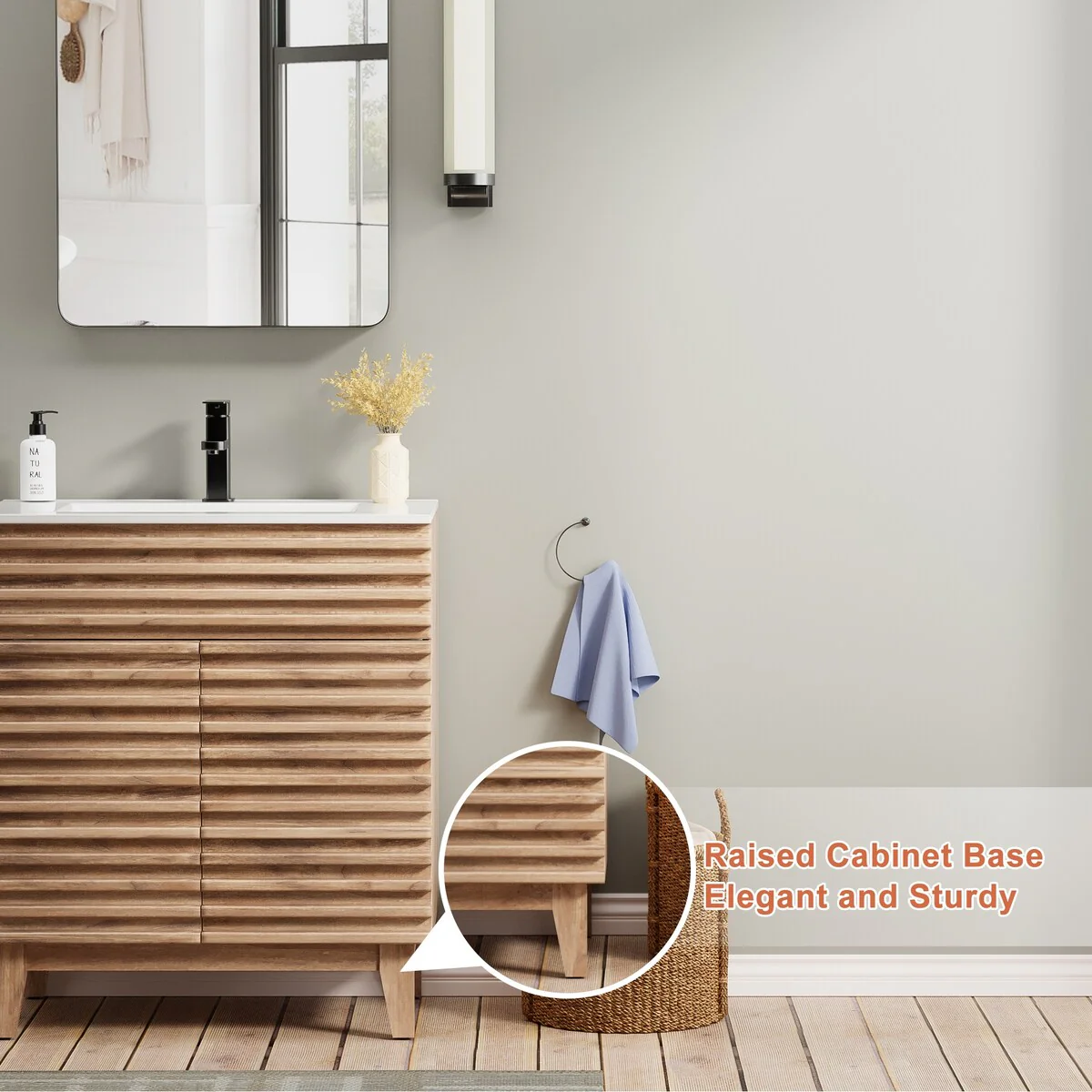 Modern 30-Inch Bathroom Vanity Cabinet with Easy-to-Clean Resin Integrated Sink