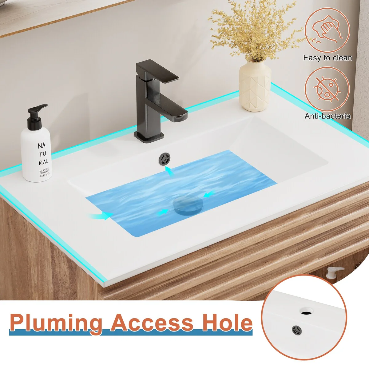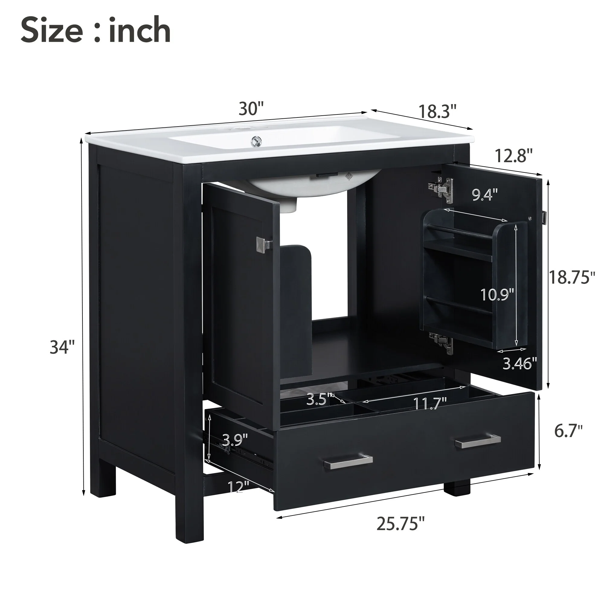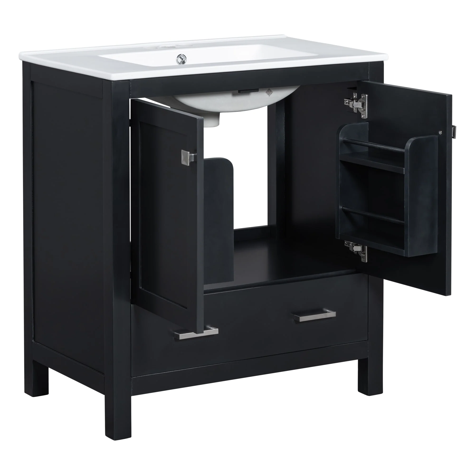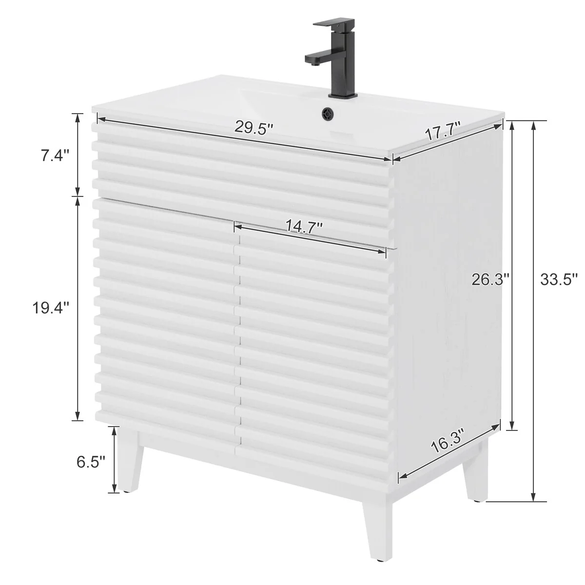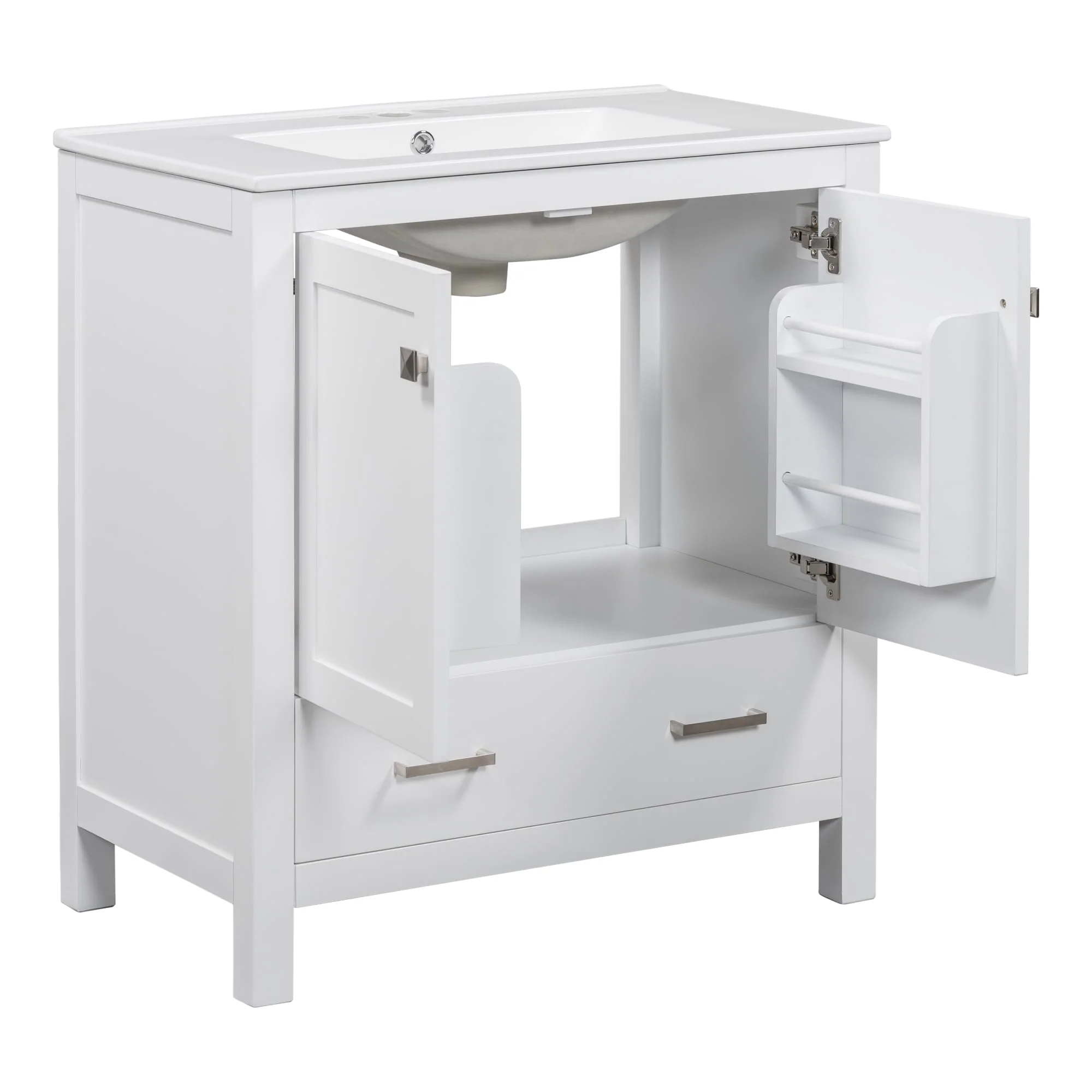 Modern 30-Inch Bathroom Vanity Cabinet with Easy-to-Clean Resin Integrated Sink