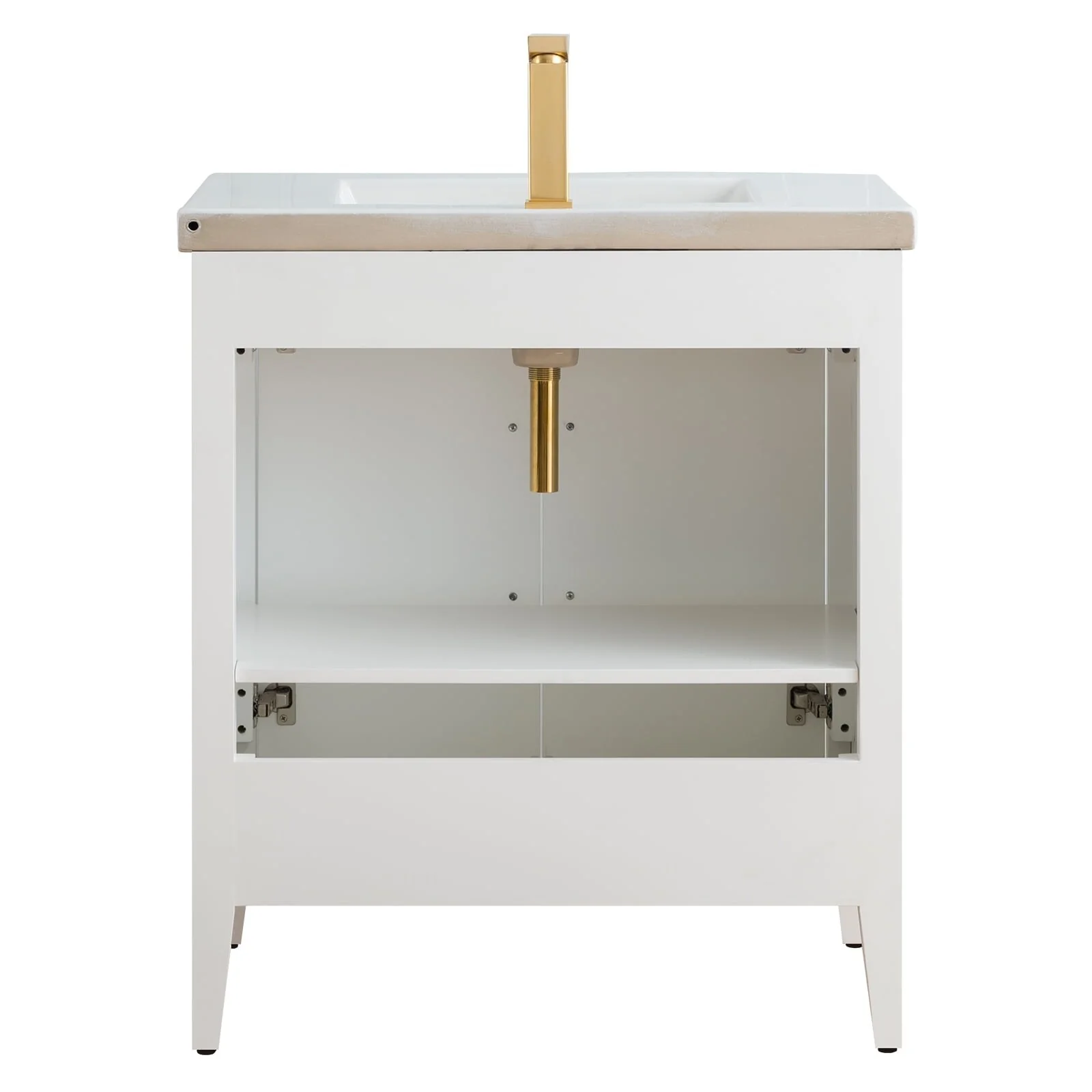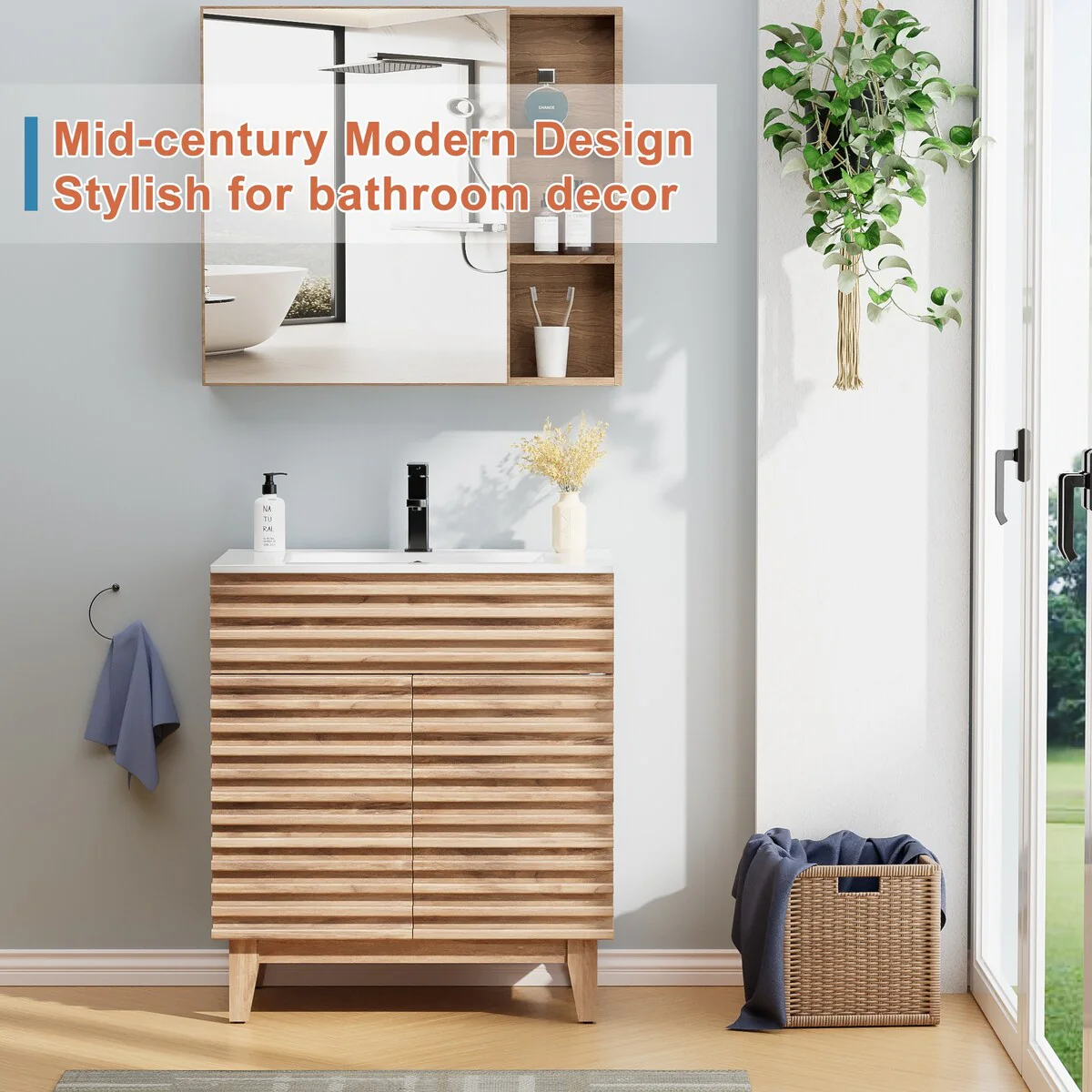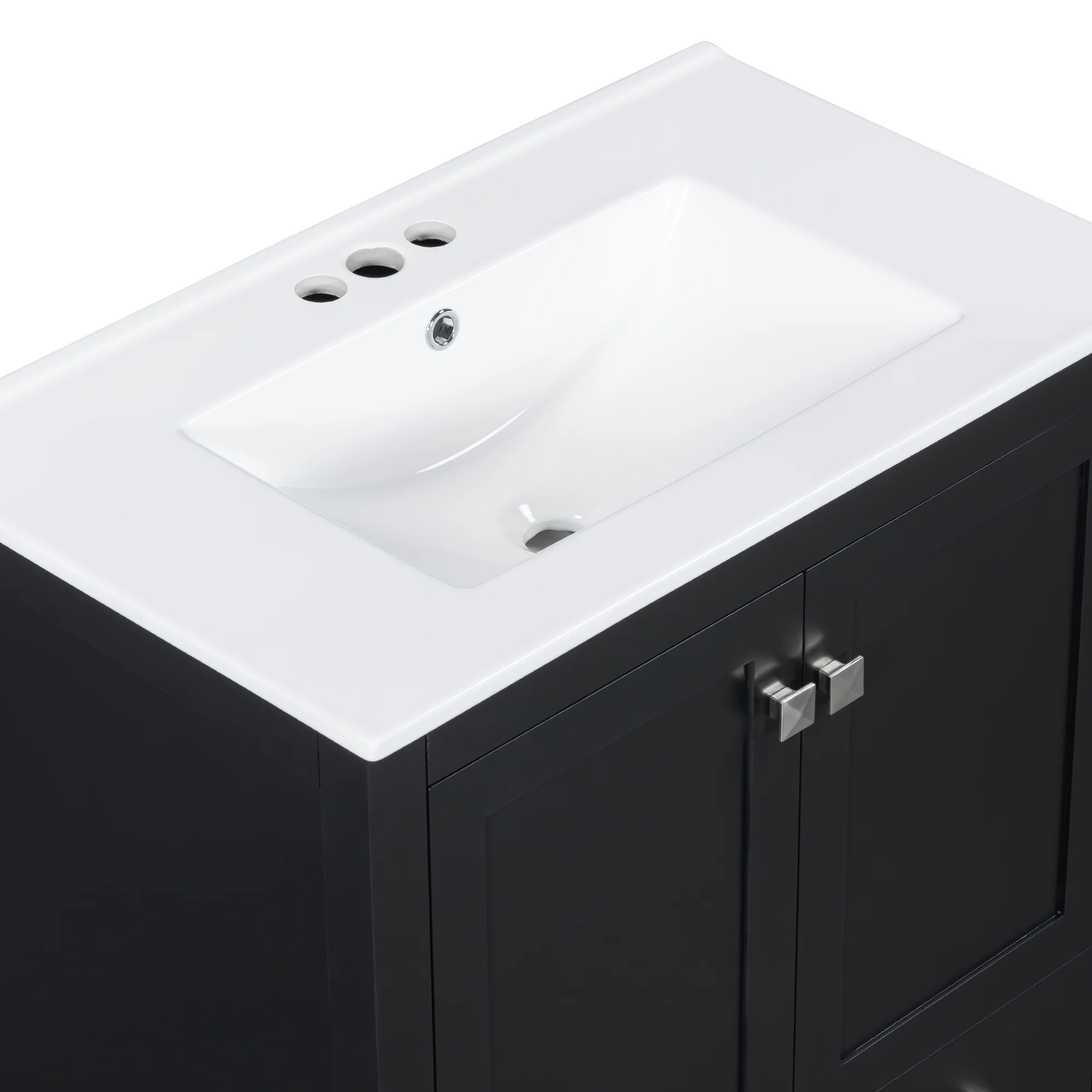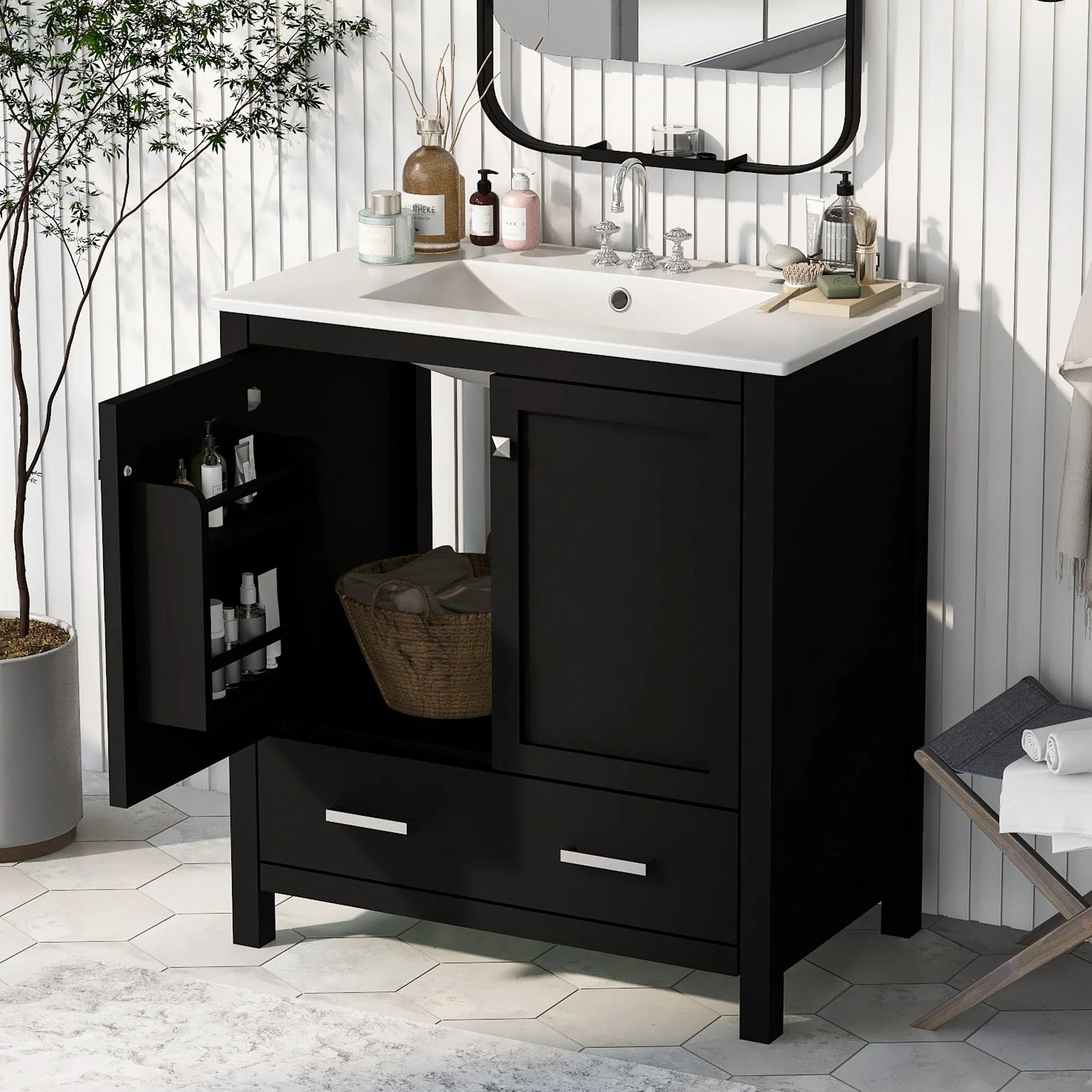 Modern 30-Inch Bathroom Vanity Cabinet with Easy-to-Clean Resin Integrated Sink