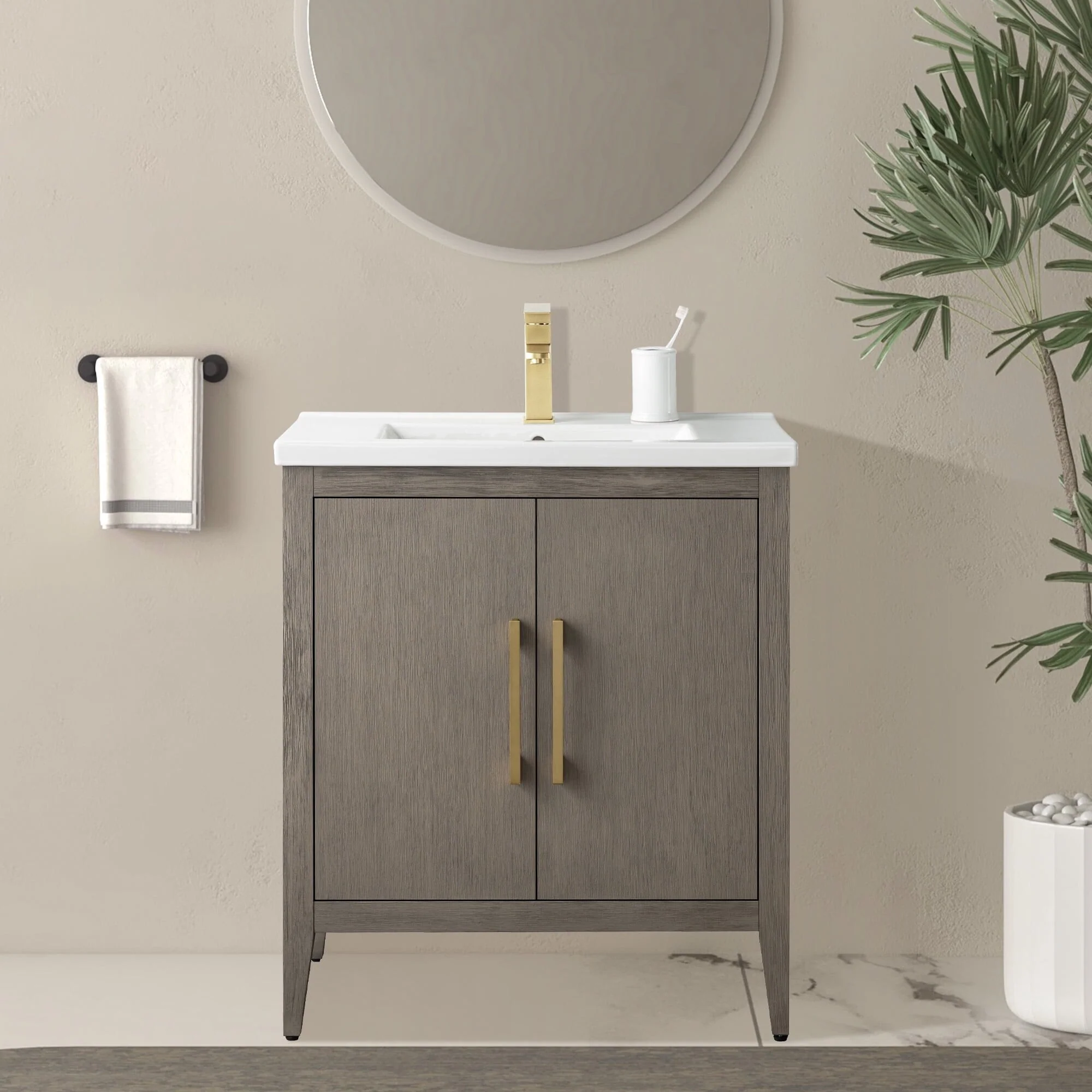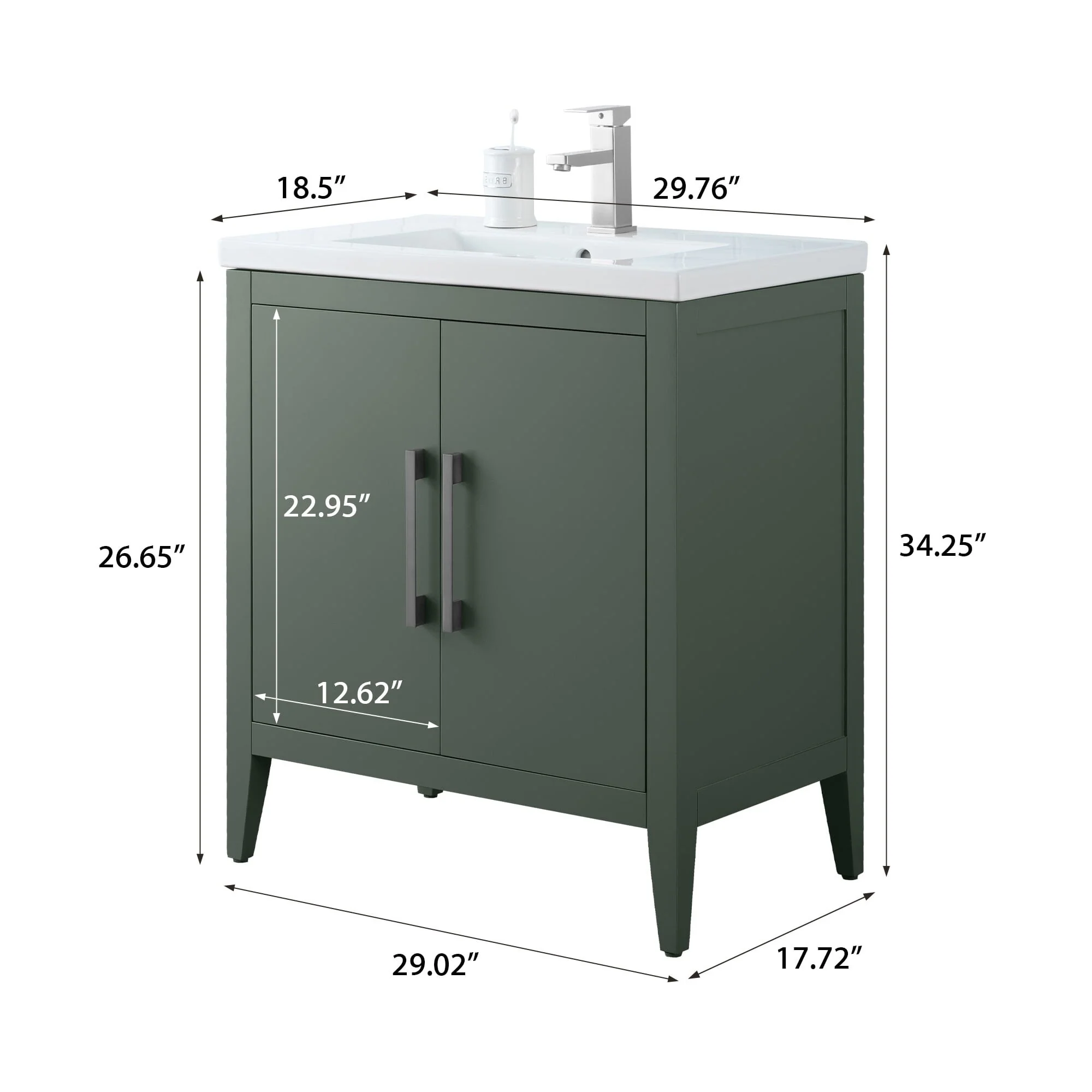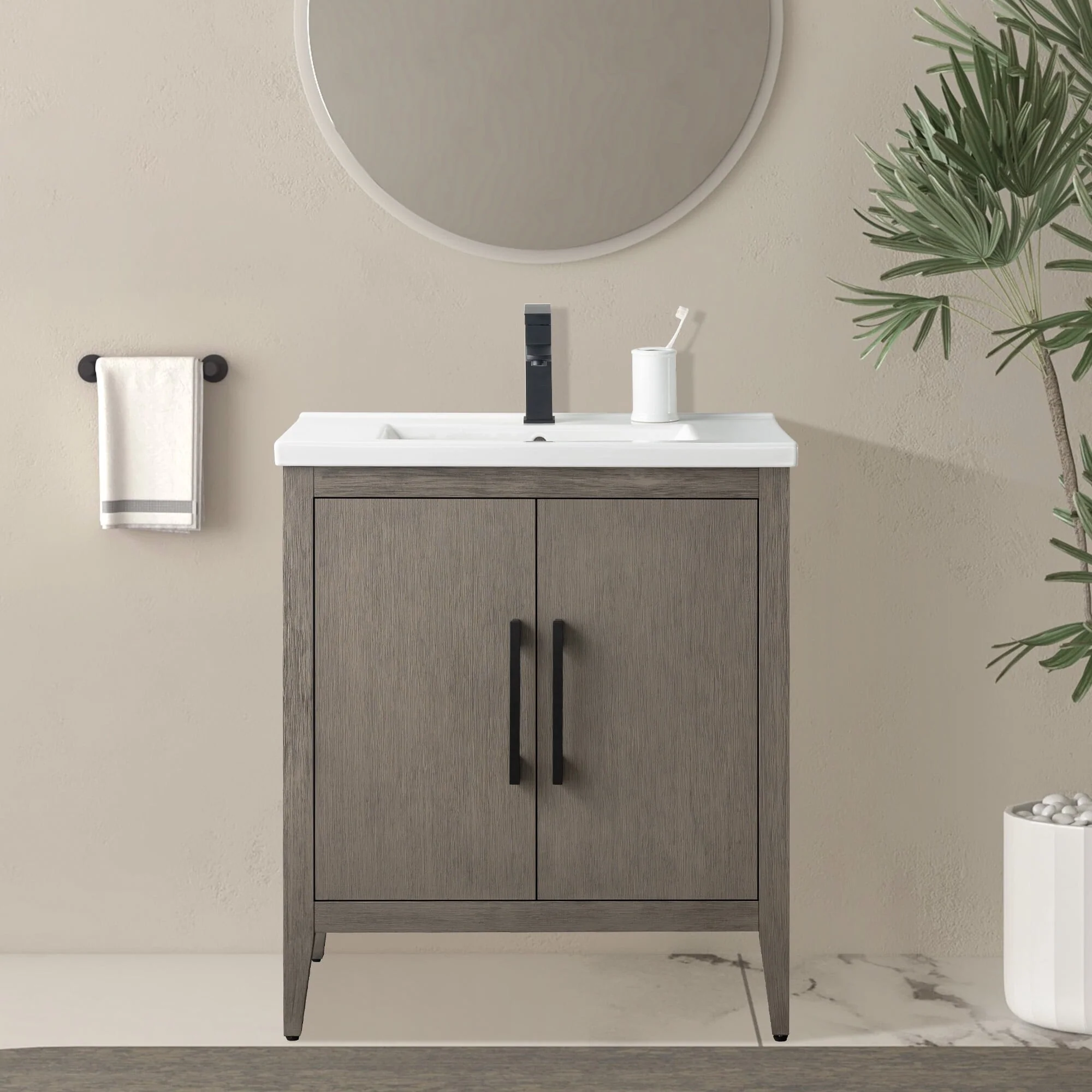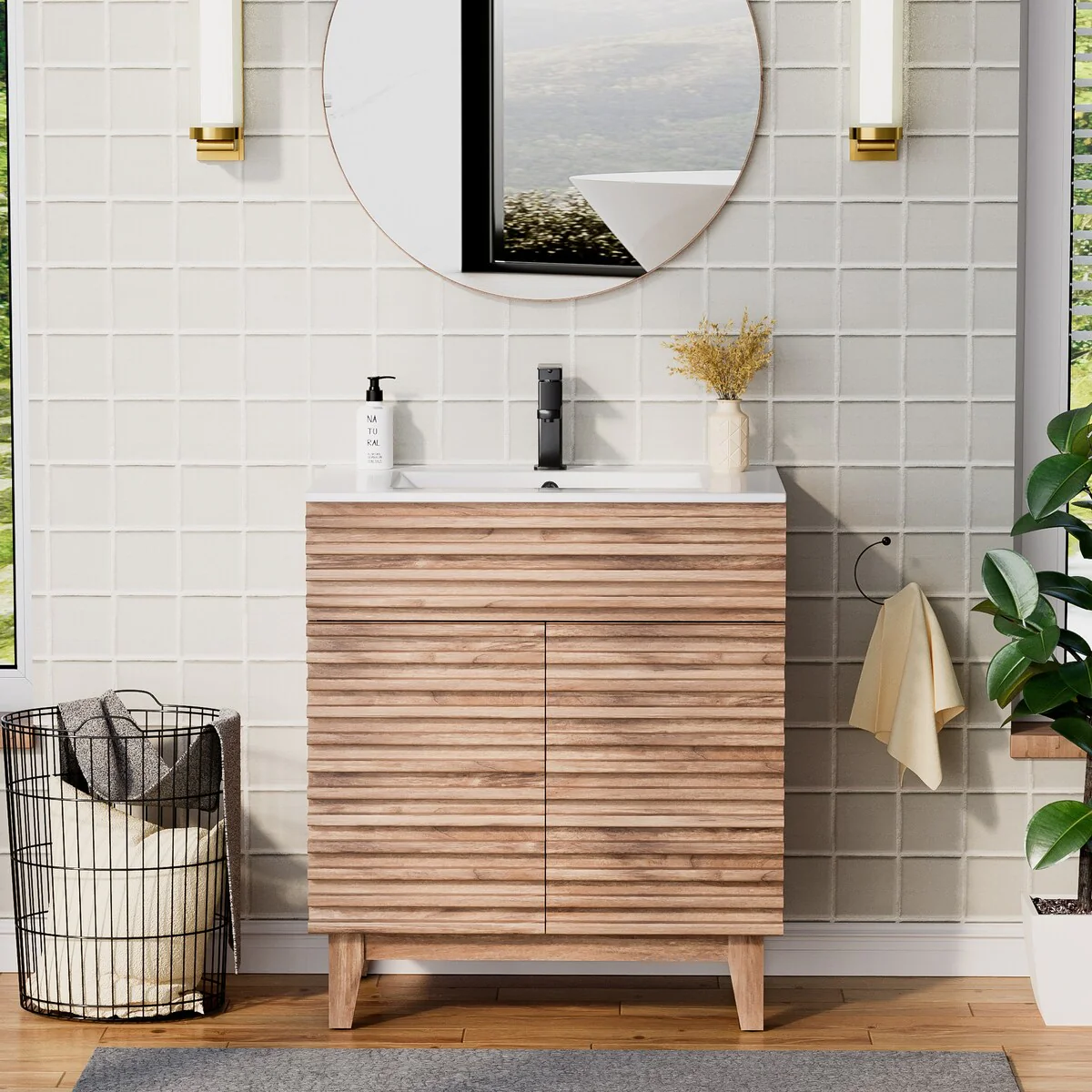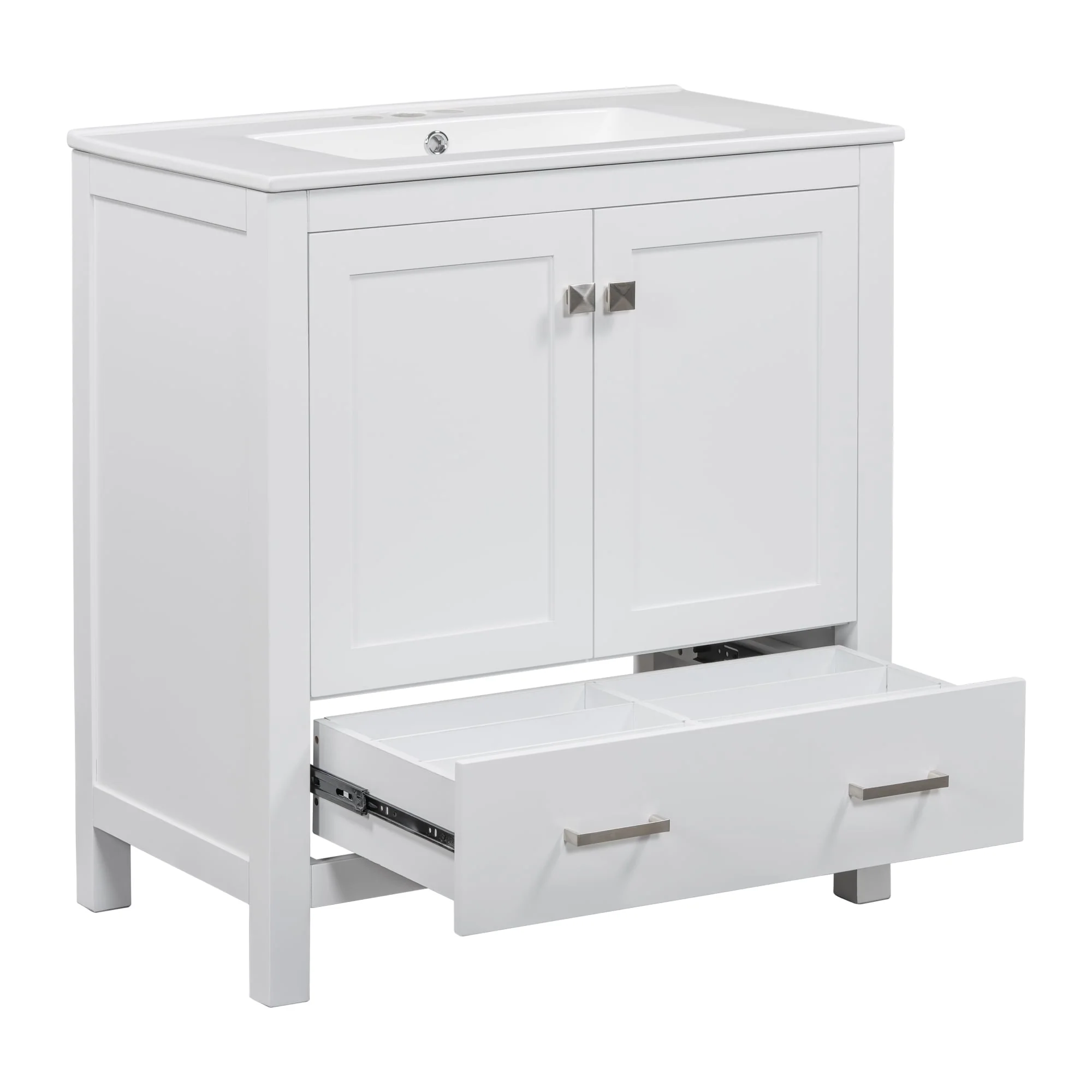 Modern 30-Inch Bathroom Vanity Cabinet with Easy-to-Clean Resin Integrated Sink
