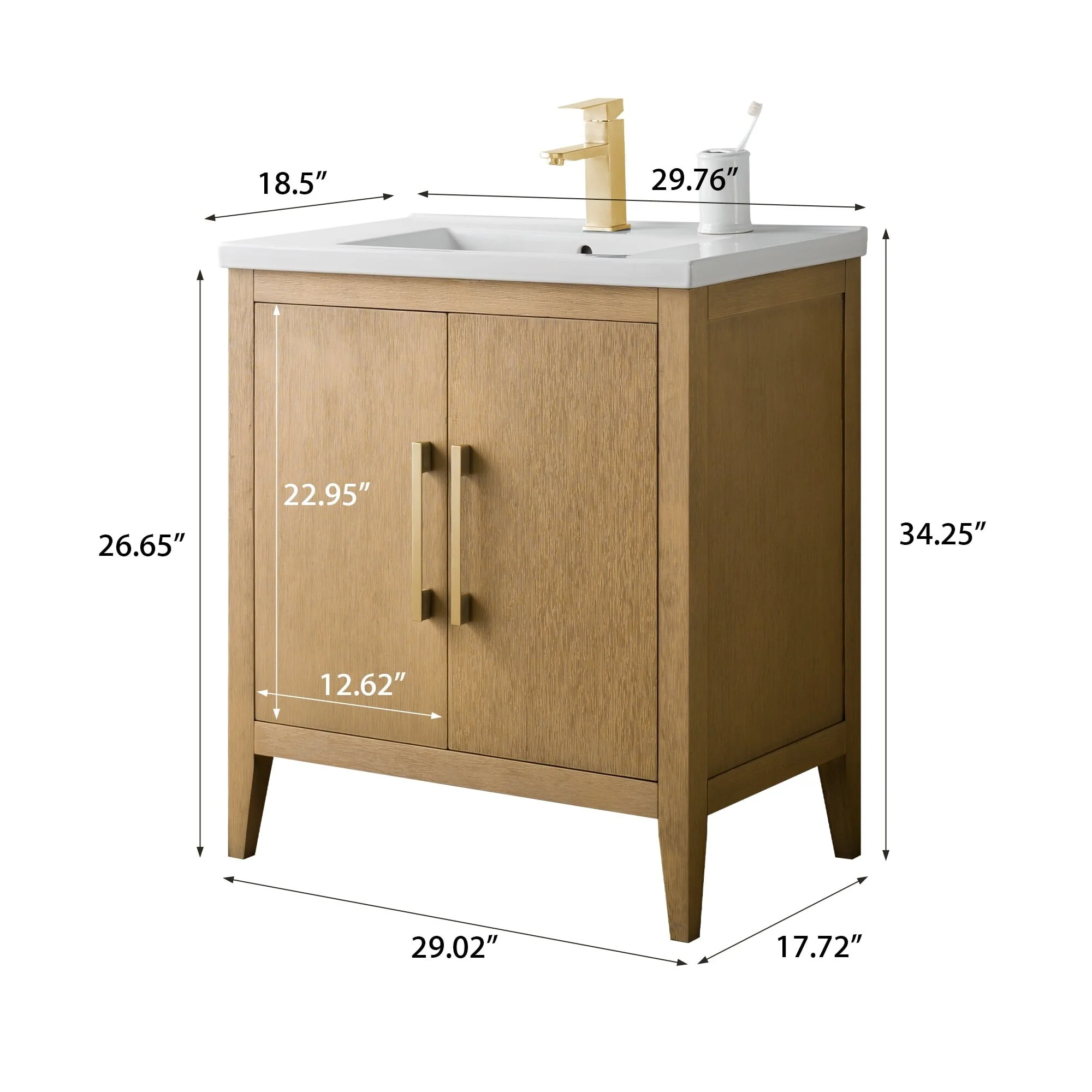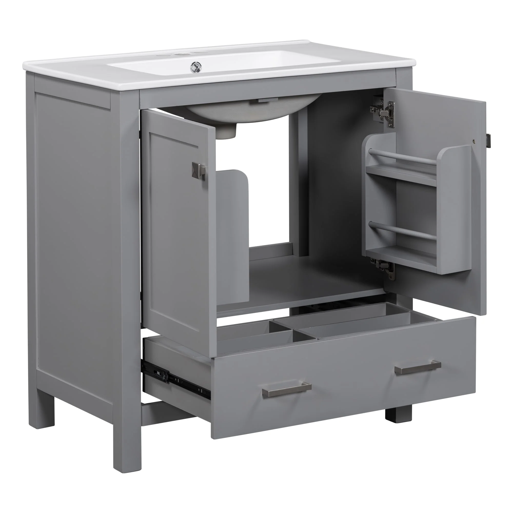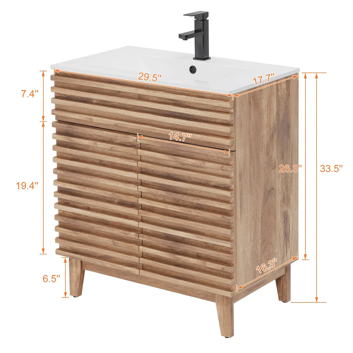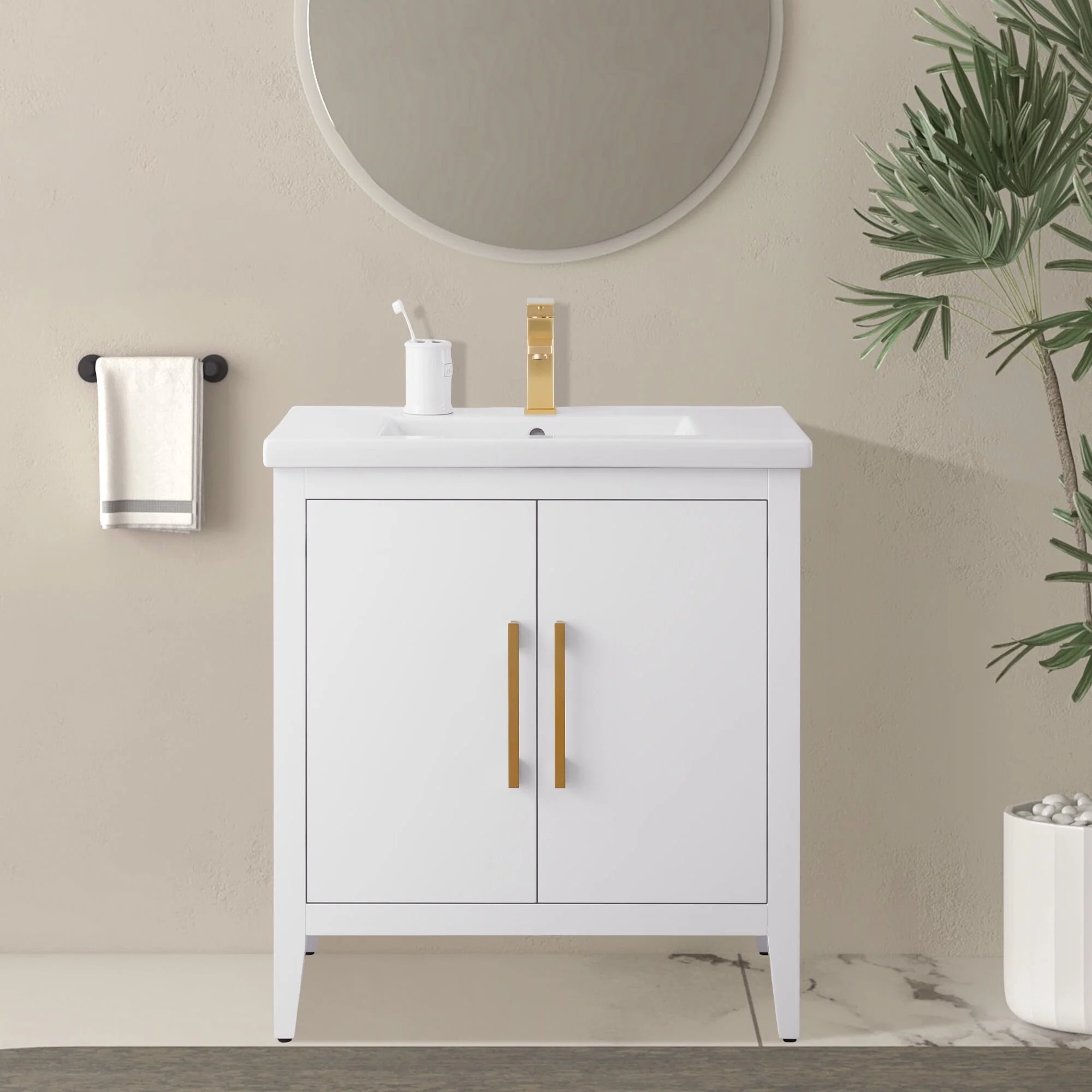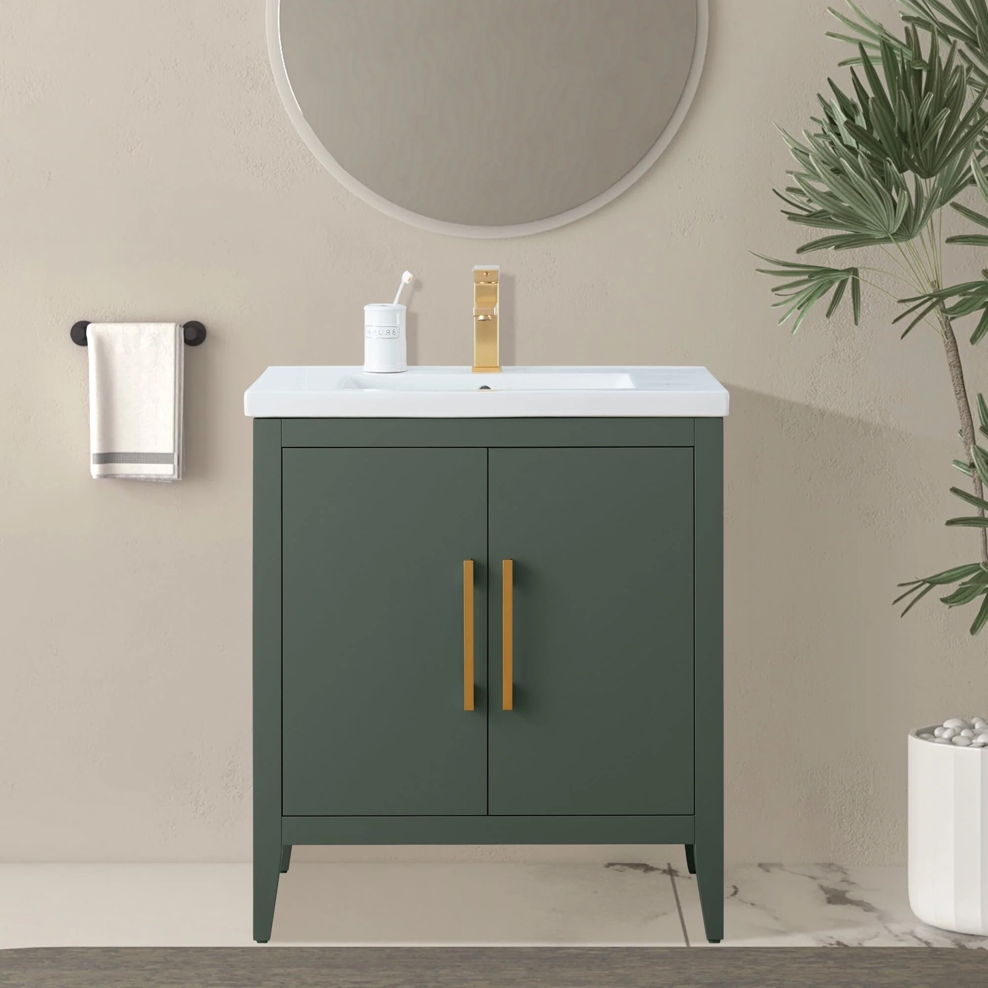 Modern 30-Inch Bathroom Vanity Cabinet with Easy-to-Clean Resin Integrated Sink