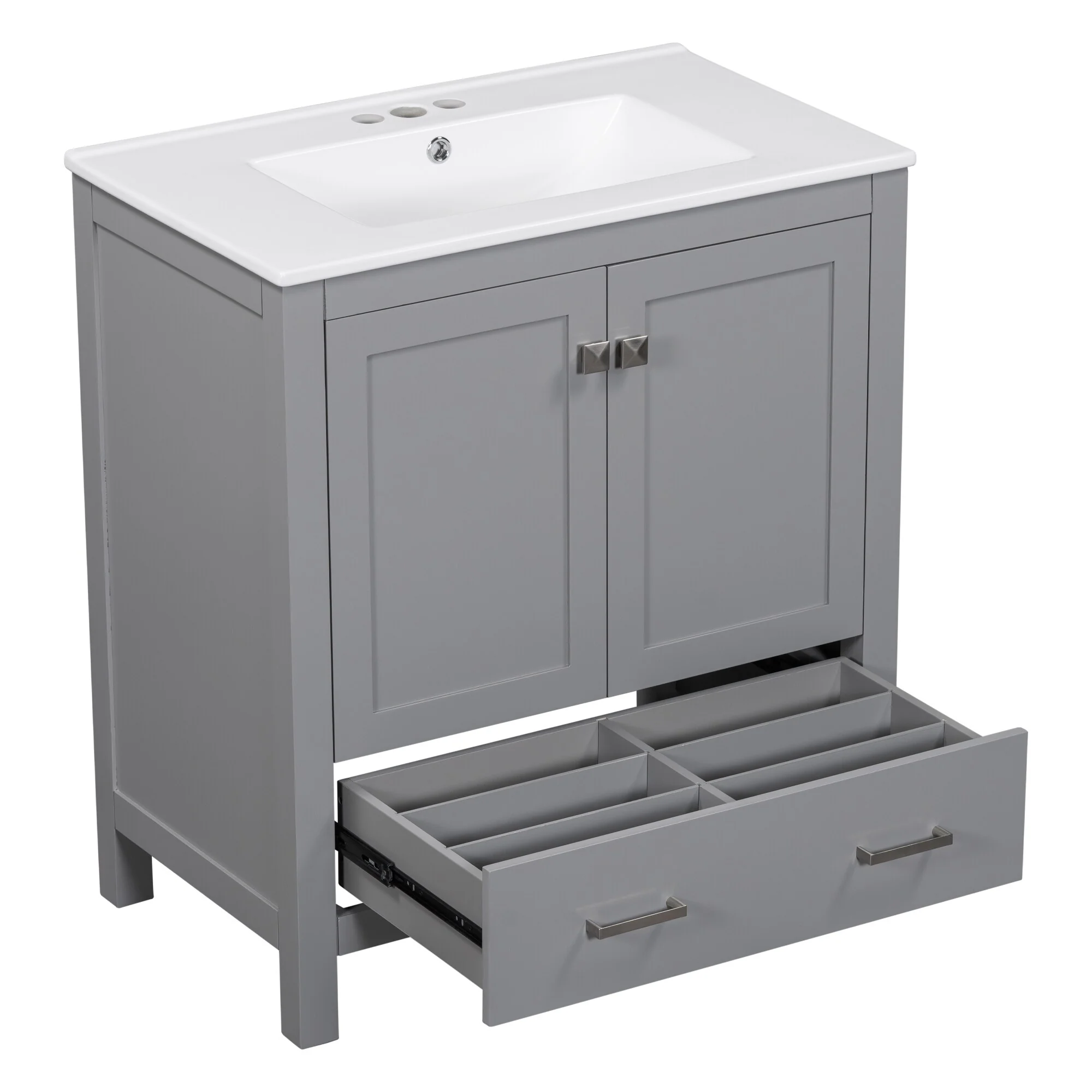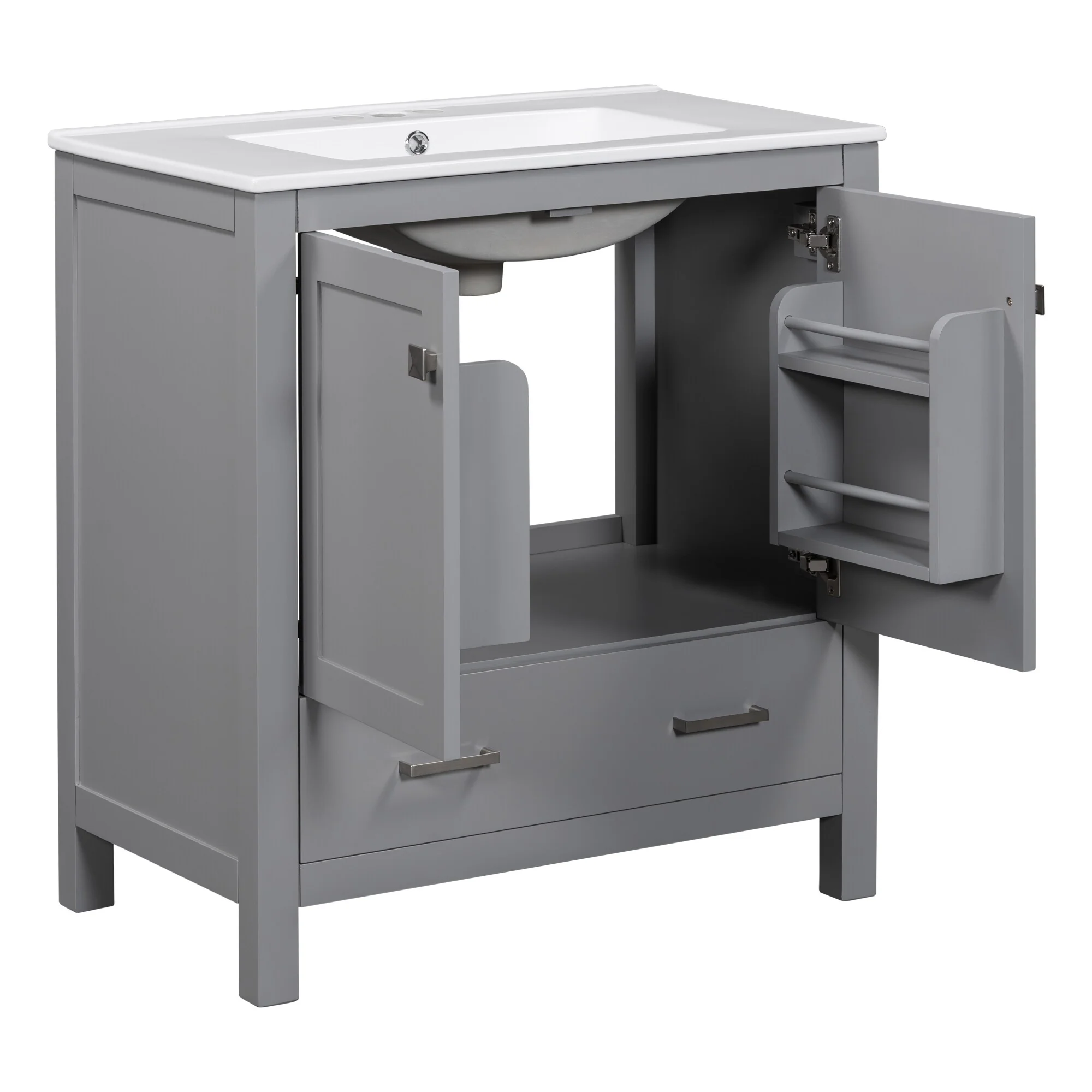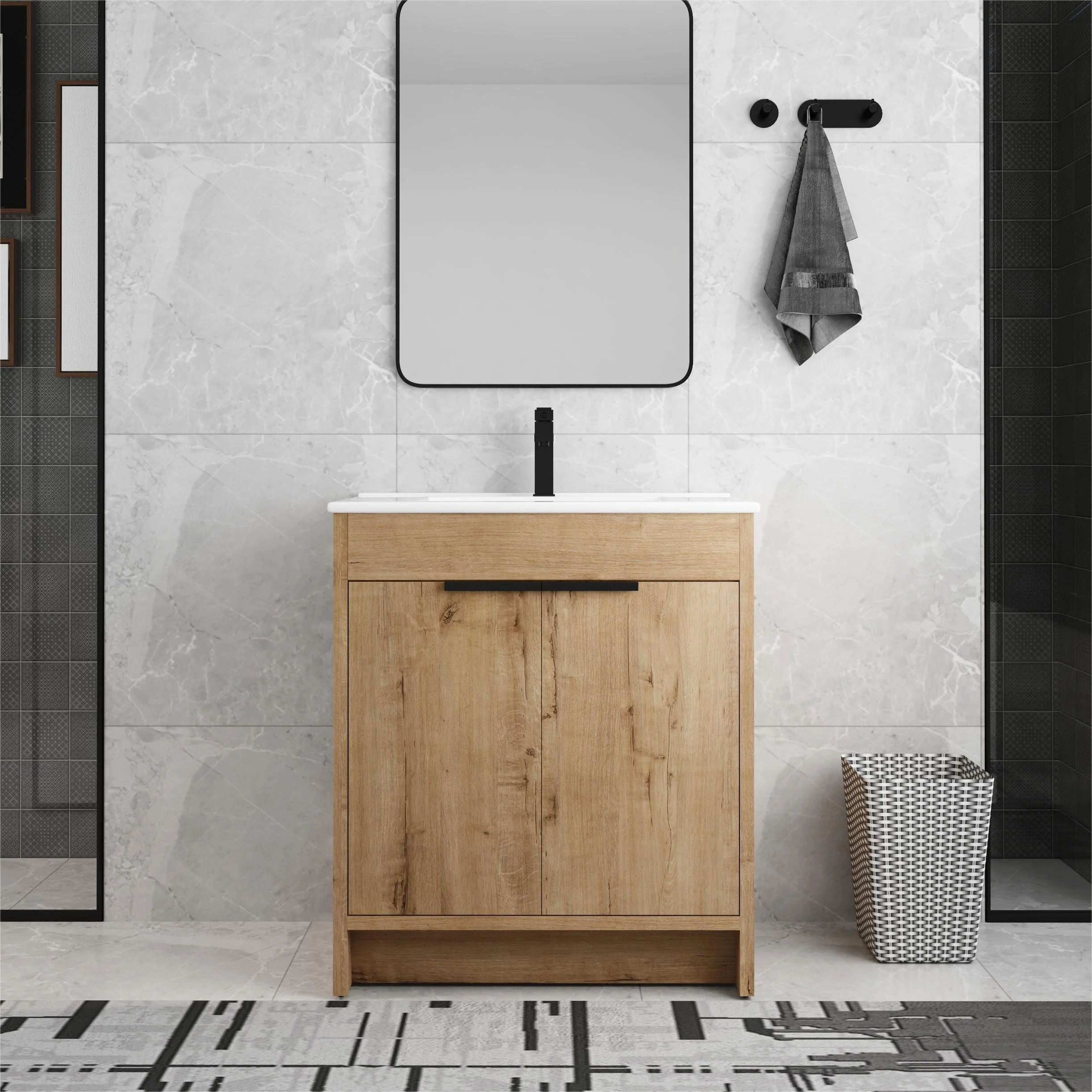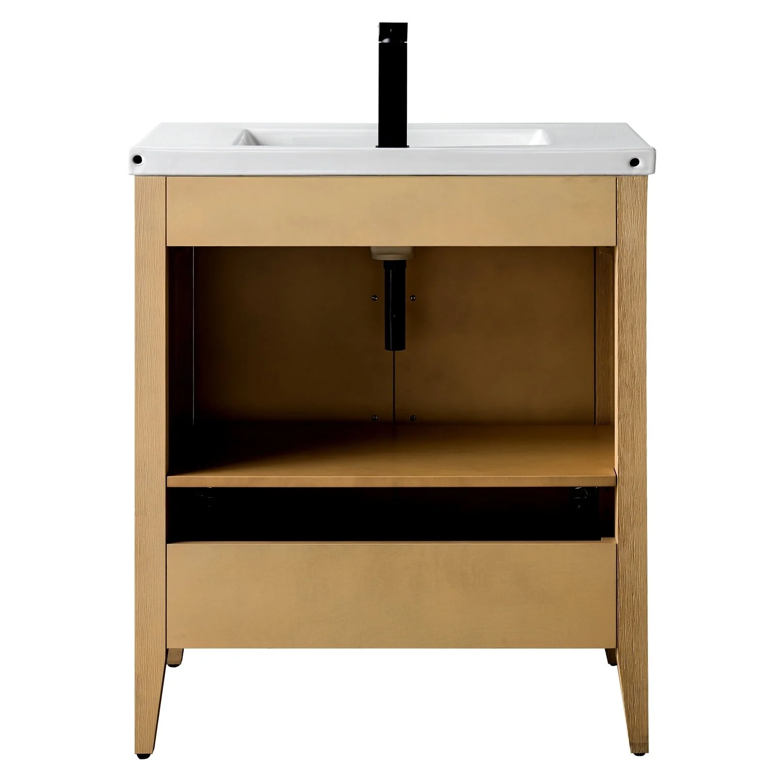 Modern 30-Inch Bathroom Vanity Cabinet with Easy-to-Clean Resin Integrated Sink