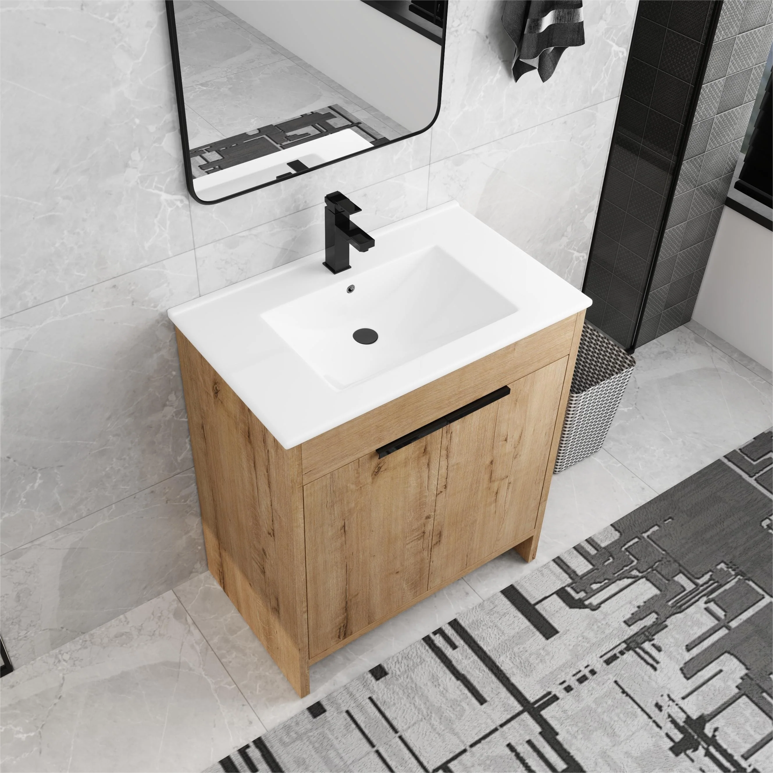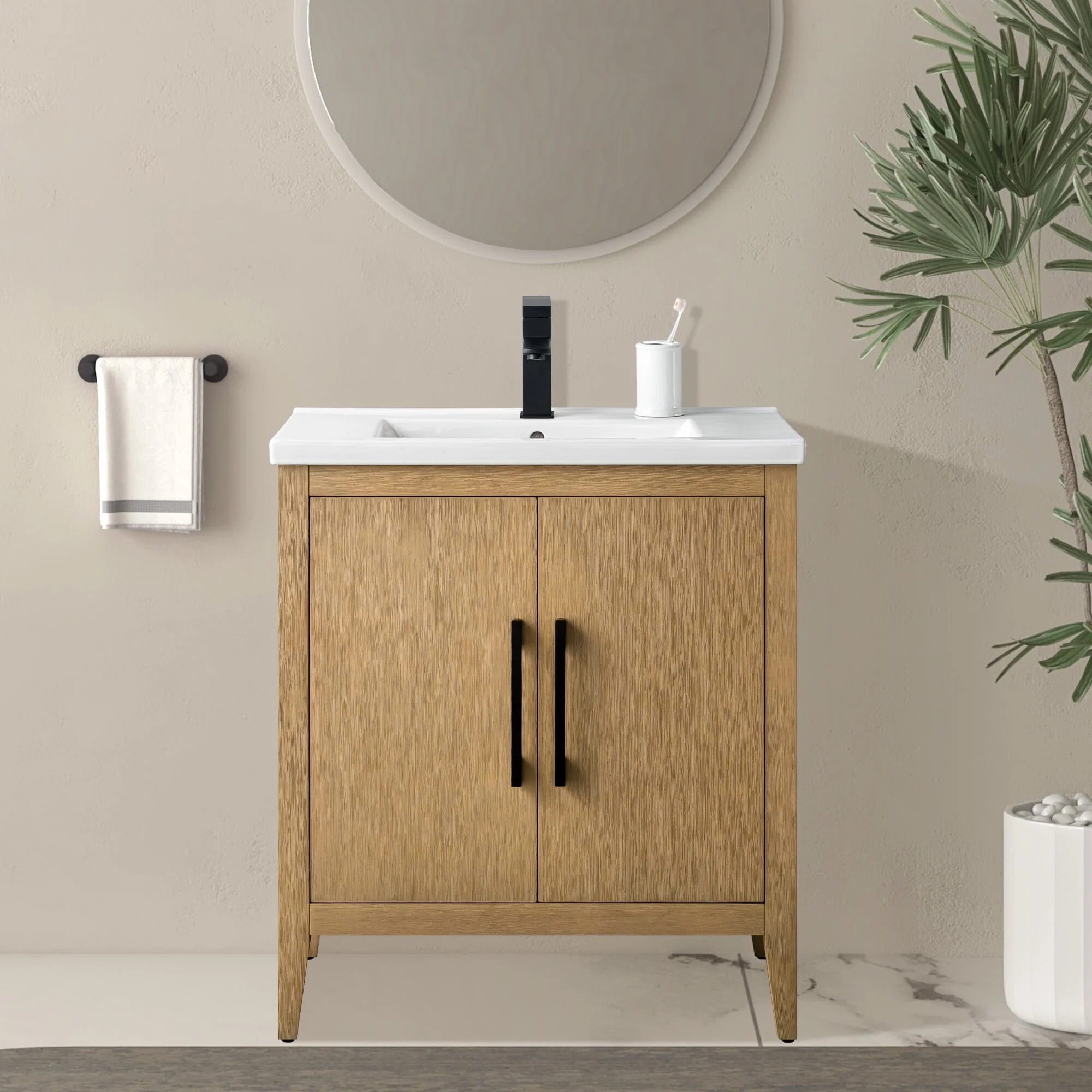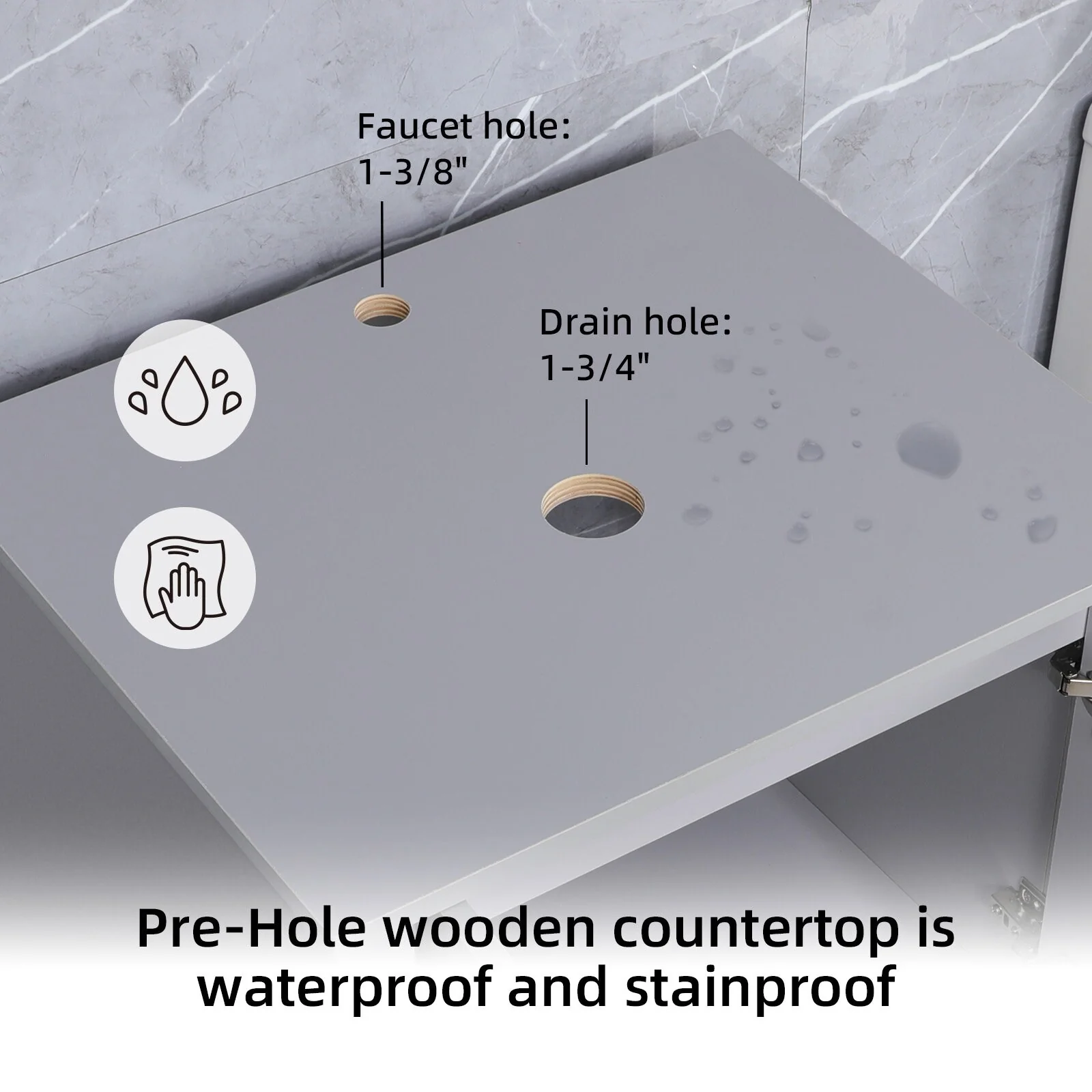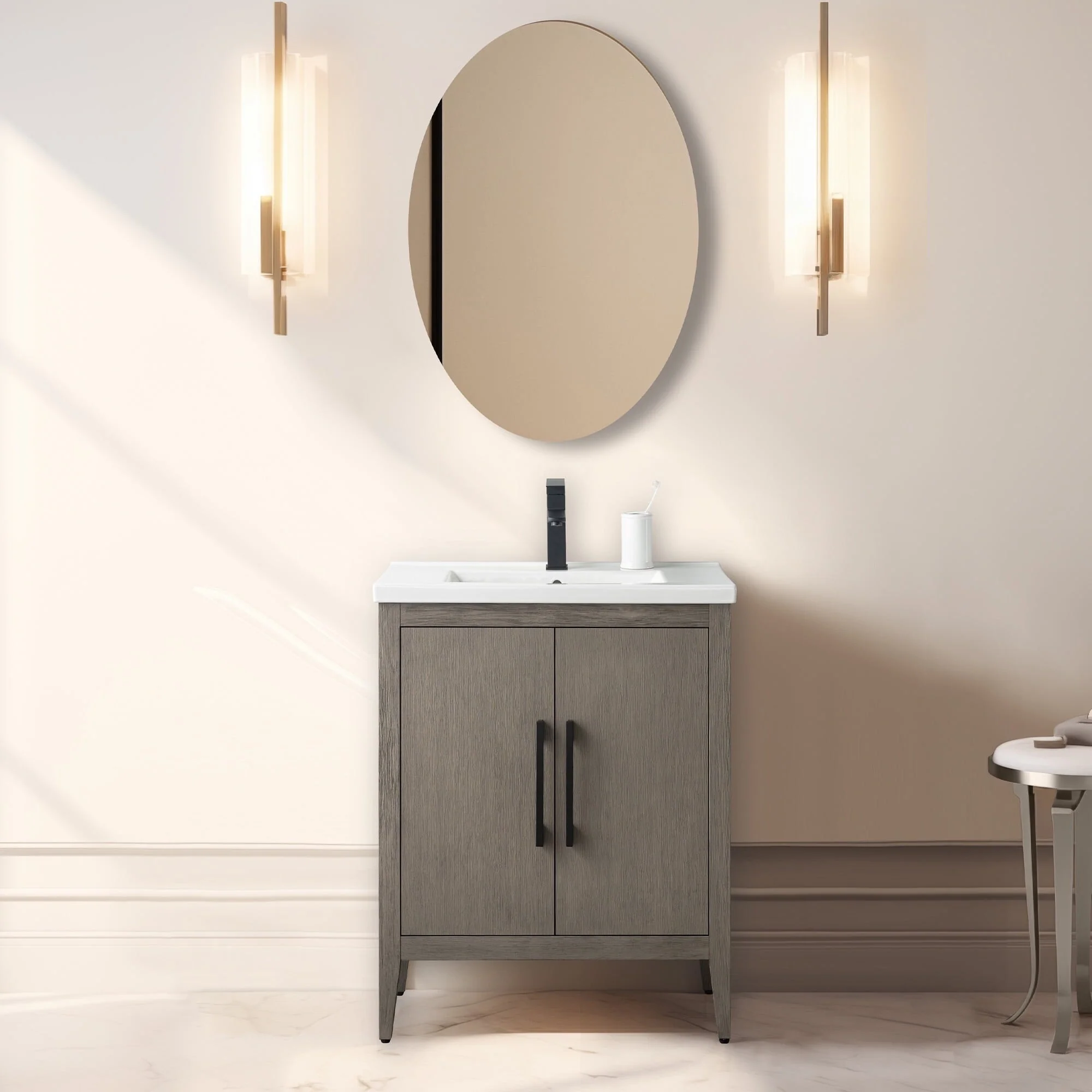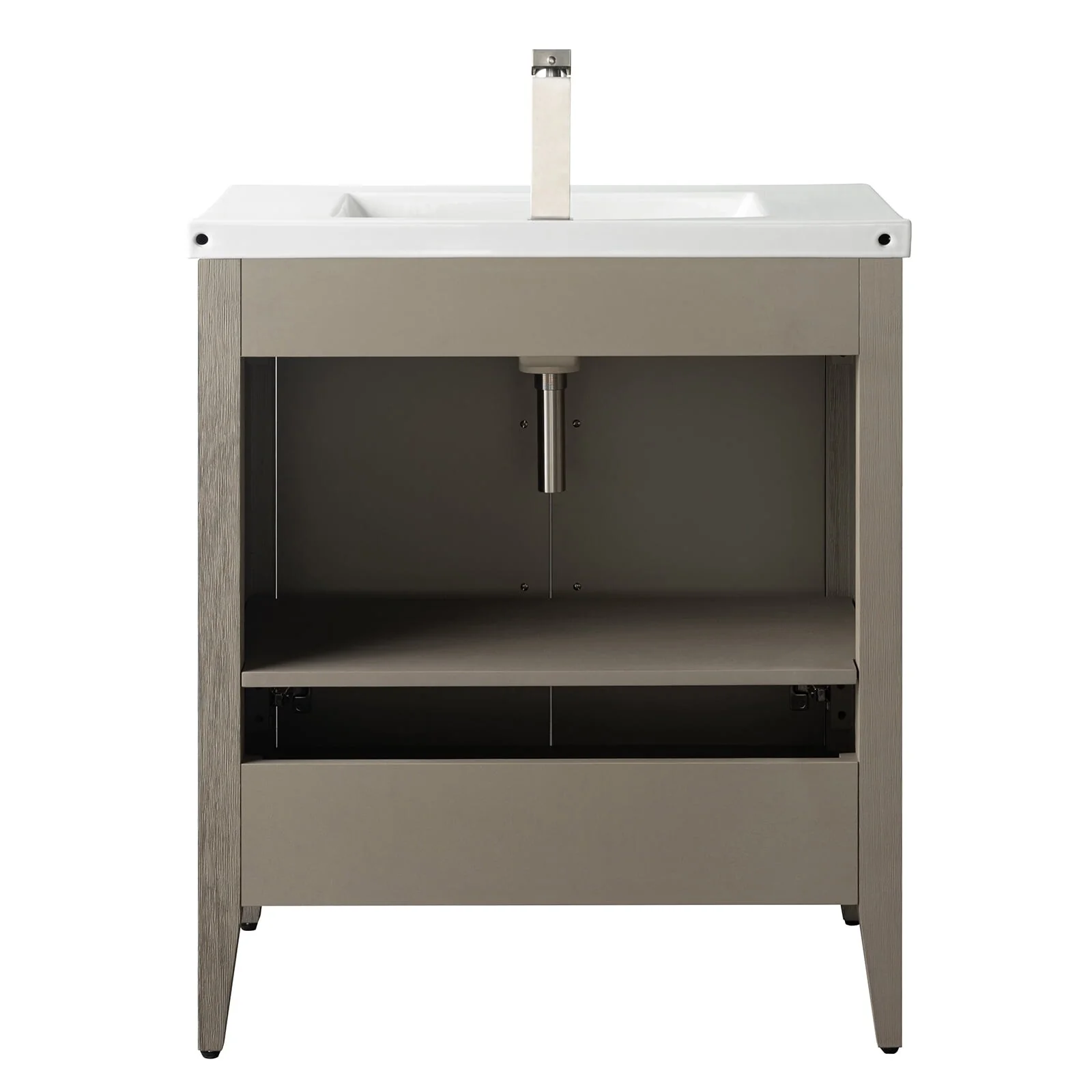 Modern 30-Inch Bathroom Vanity Cabinet with Easy-to-Clean Resin Integrated Sink