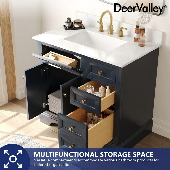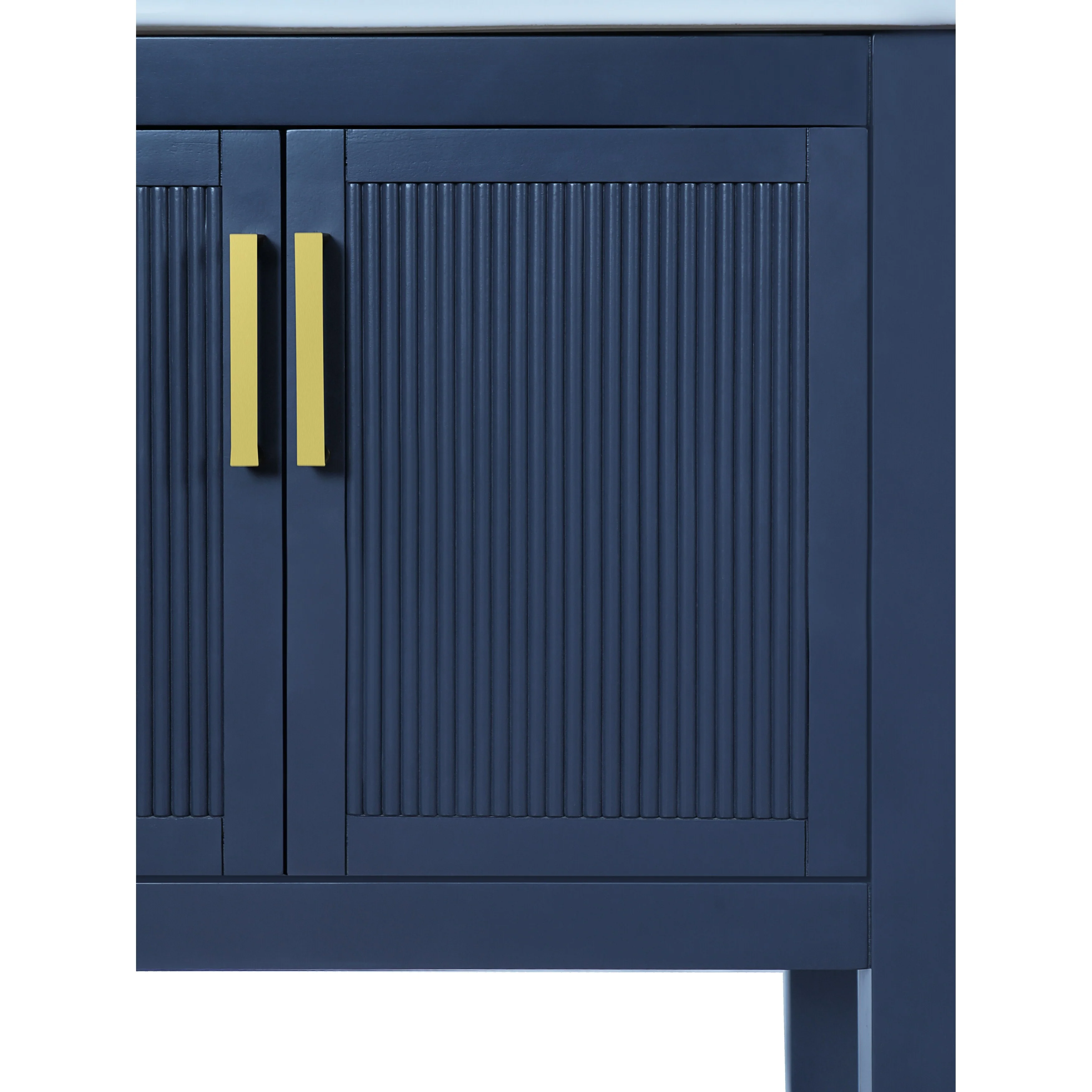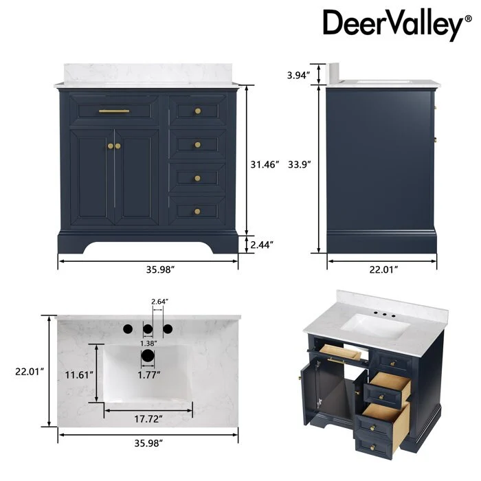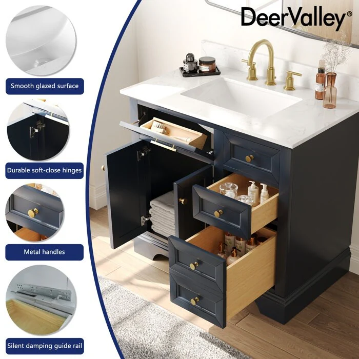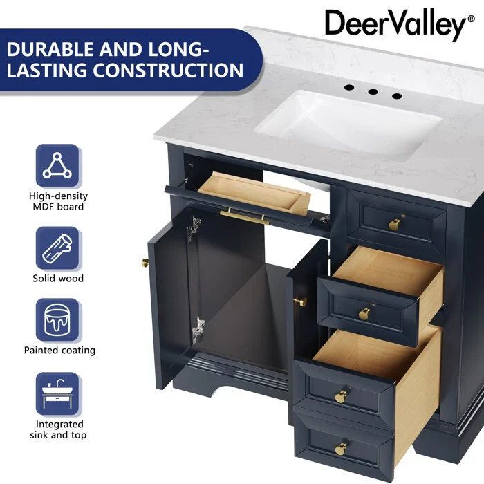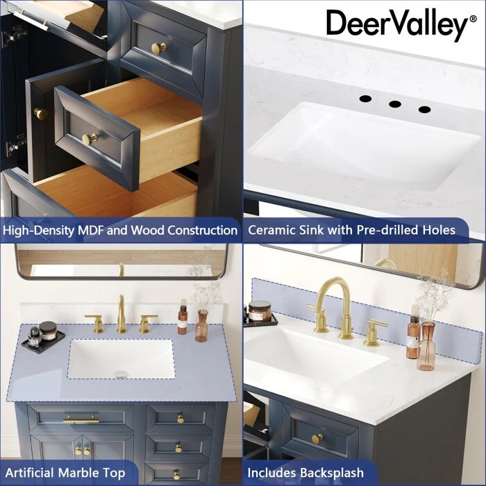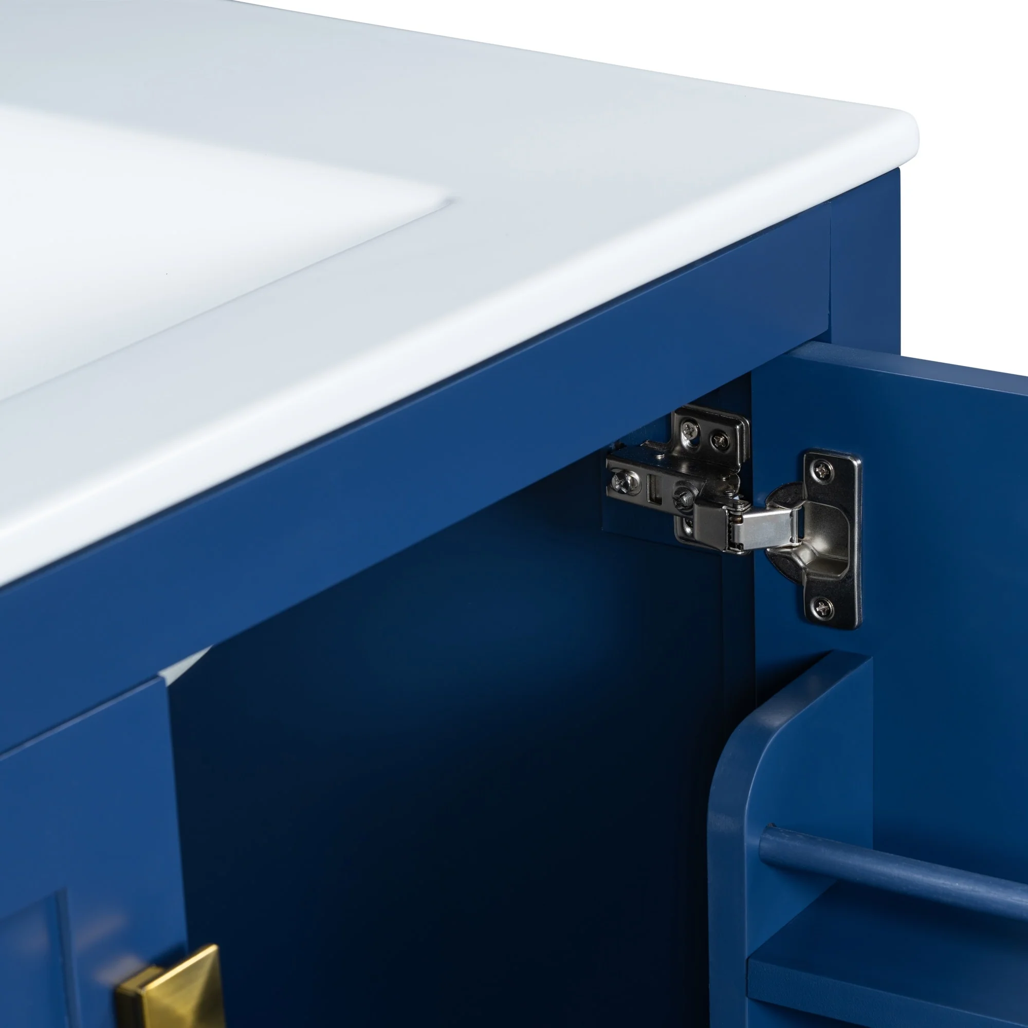 DeerValley 36'' Bathroom Vanity Ceramic Sink Top with Backsplash, Pre-assembled Bathroom Cabinet Navy Blue