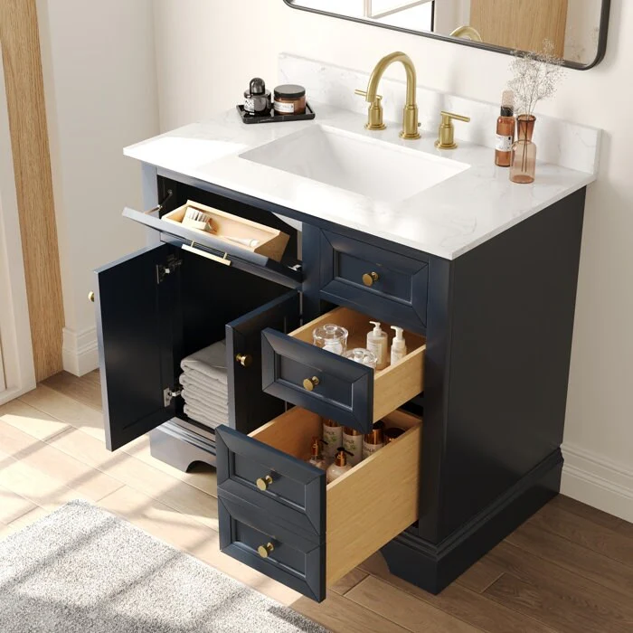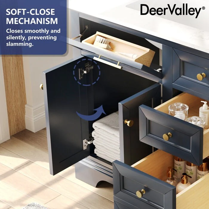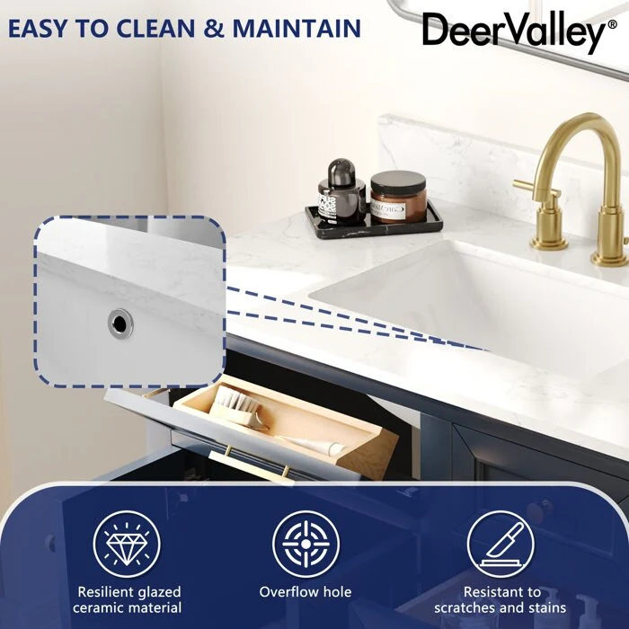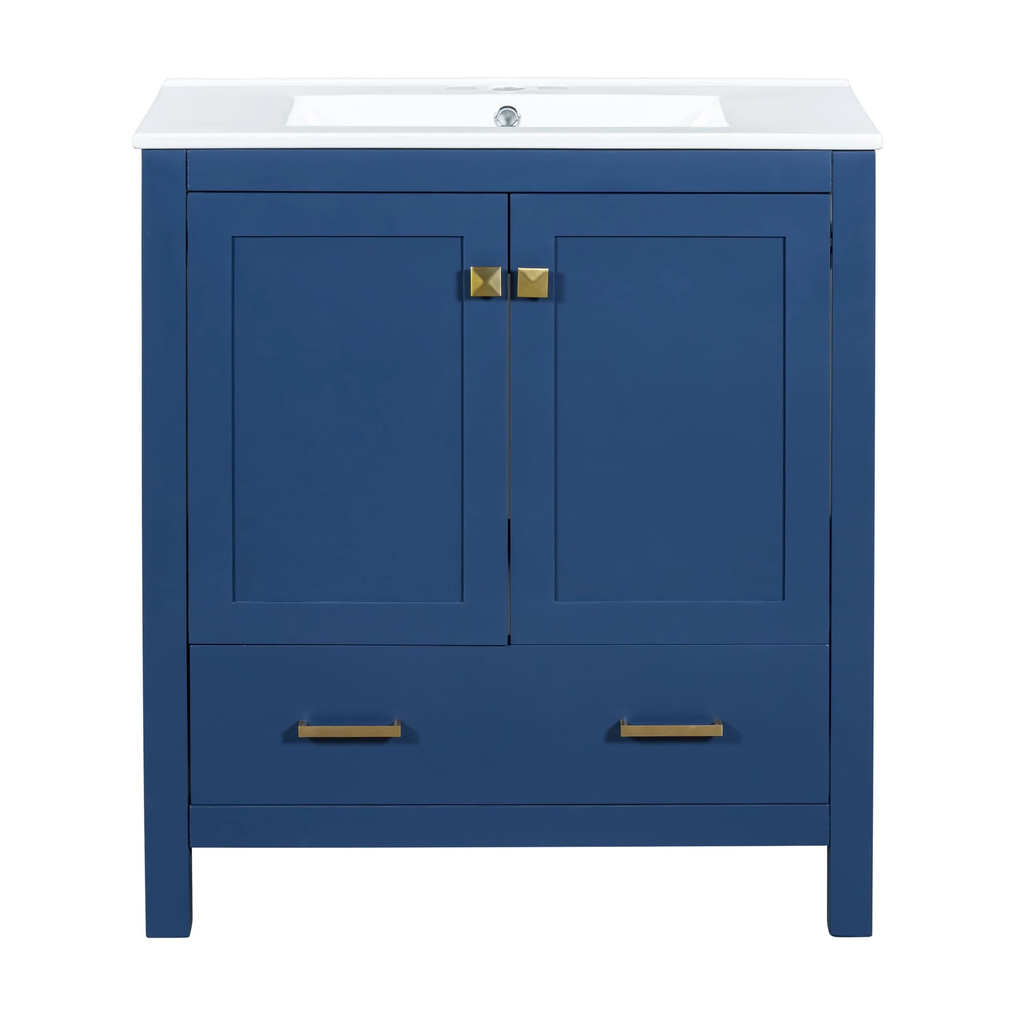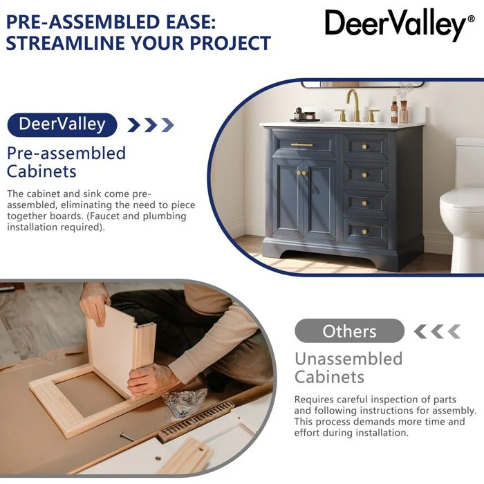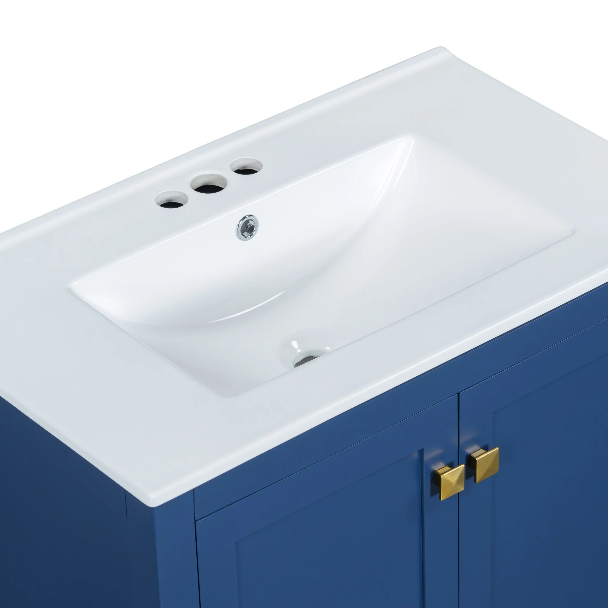 DeerValley 36'' Bathroom Vanity Ceramic Sink Top with Backsplash, Pre-assembled Bathroom Cabinet Navy Blue