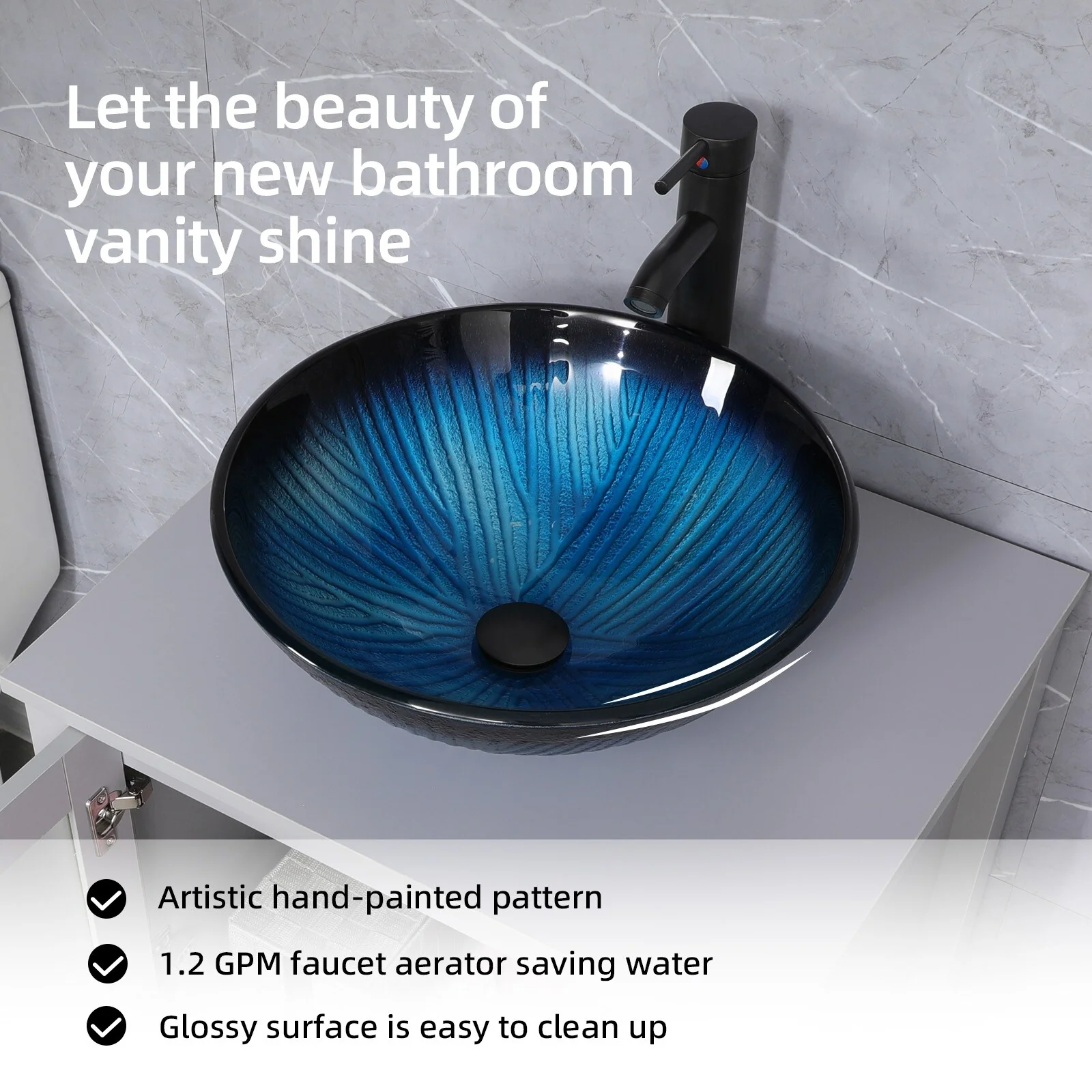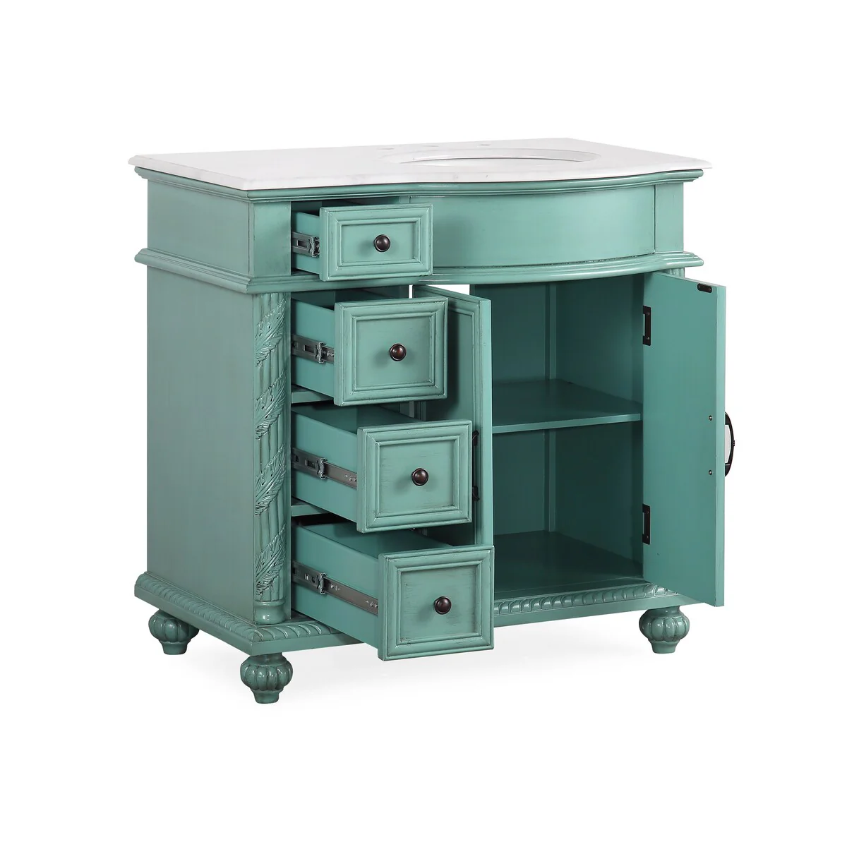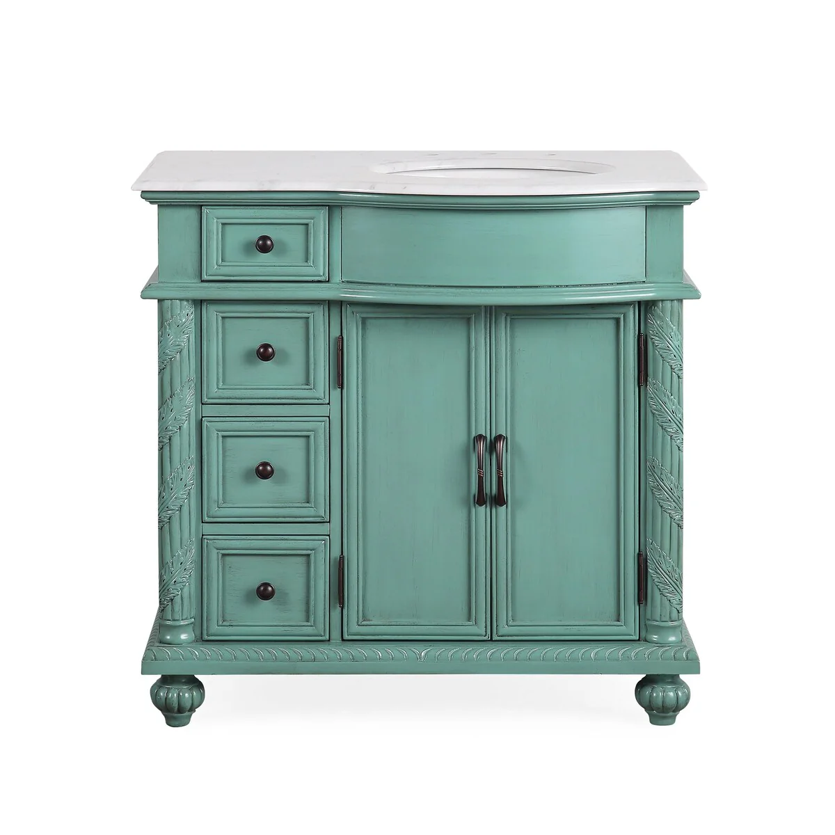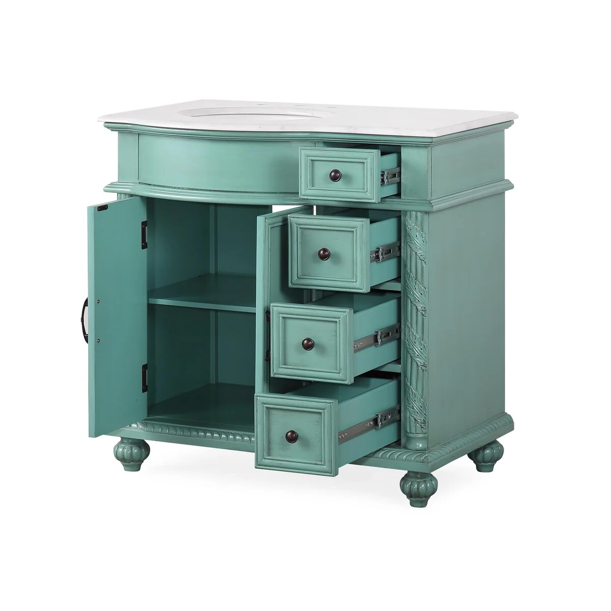 DeerValley 36'' Bathroom Vanity Ceramic Sink Top with Backsplash, Pre-assembled Bathroom Cabinet Navy Blue
