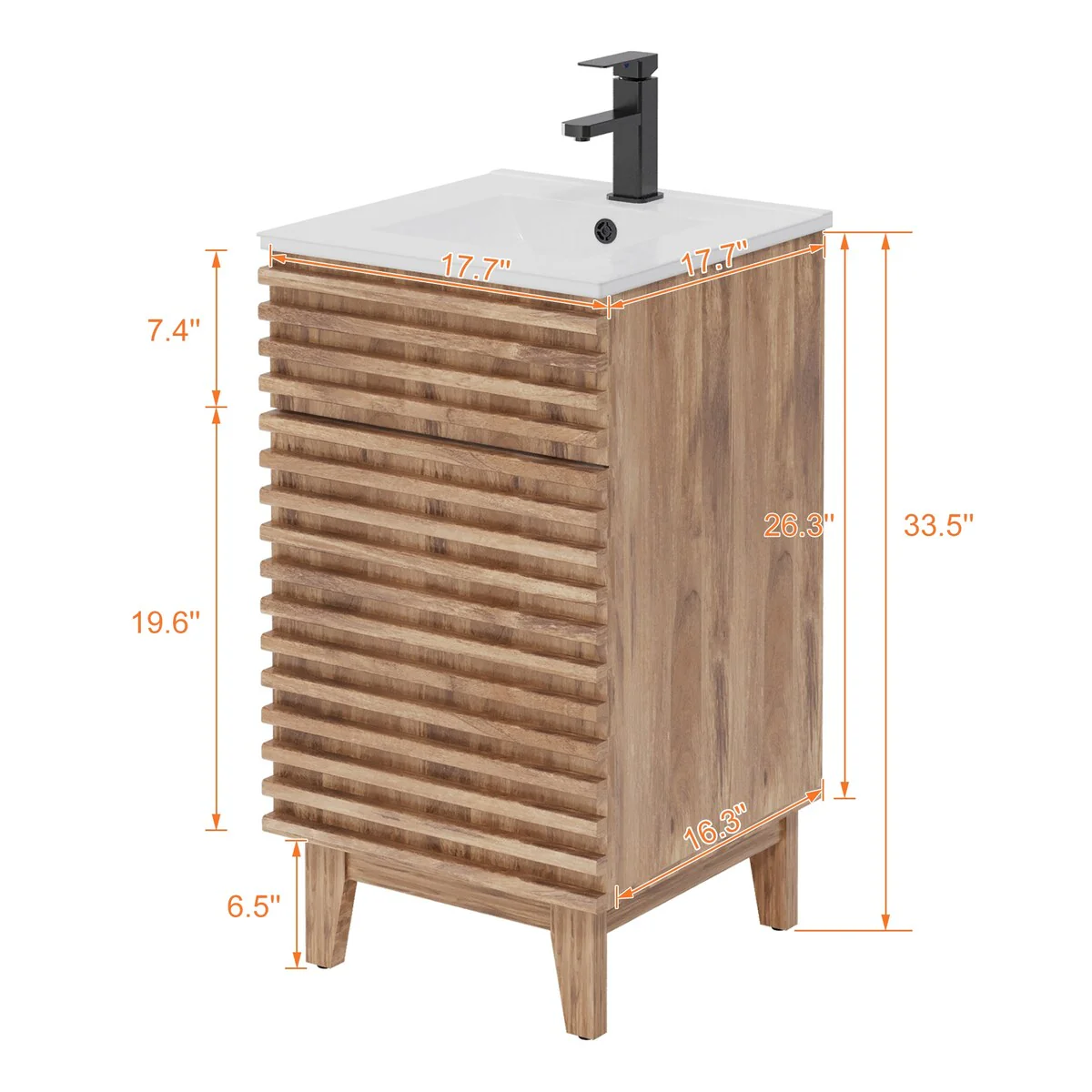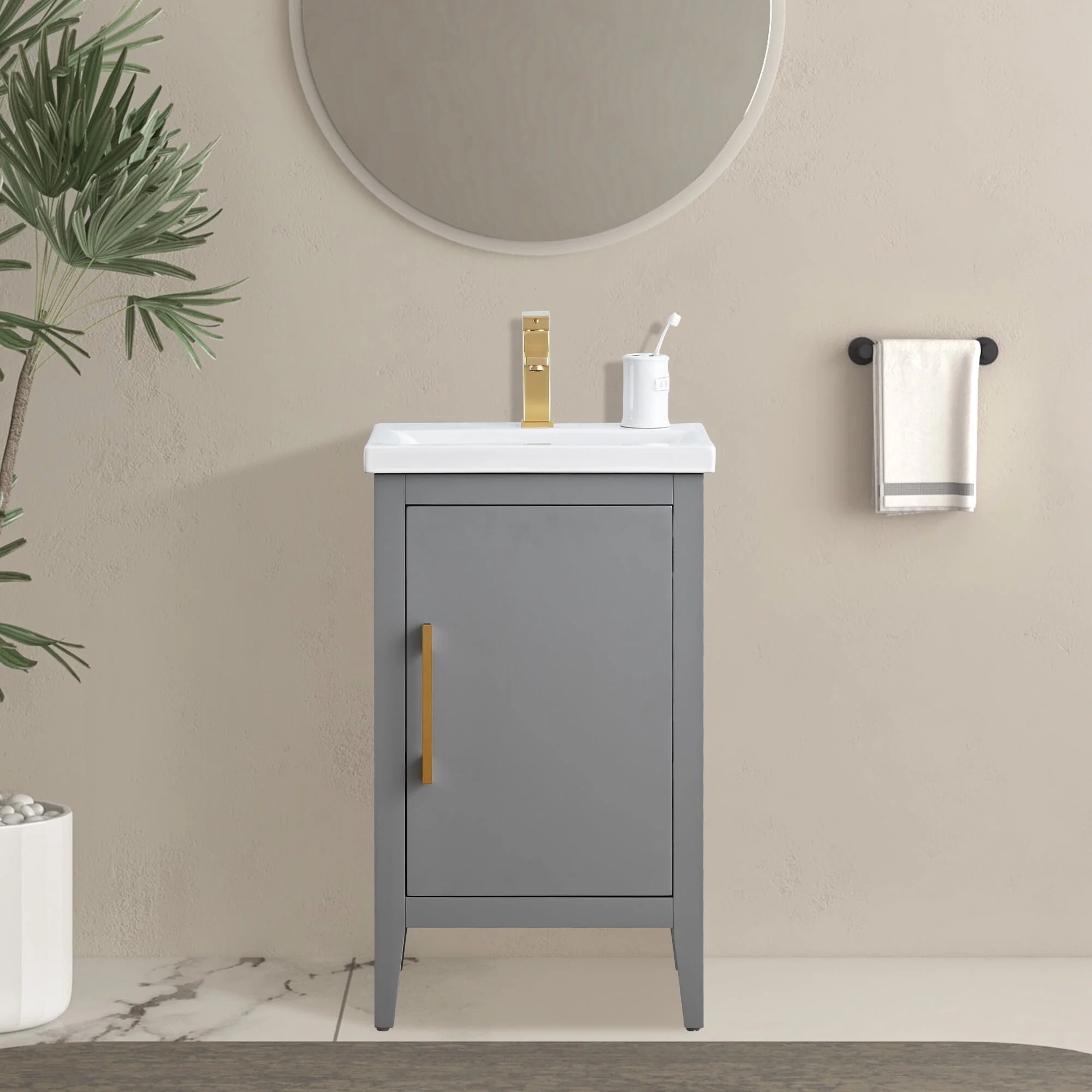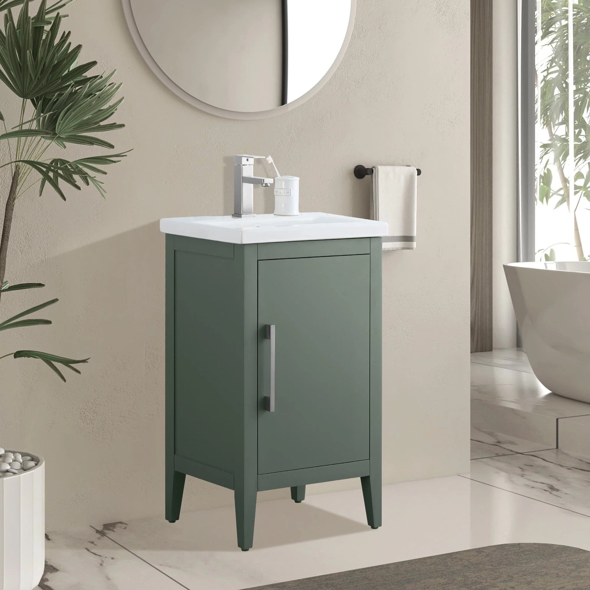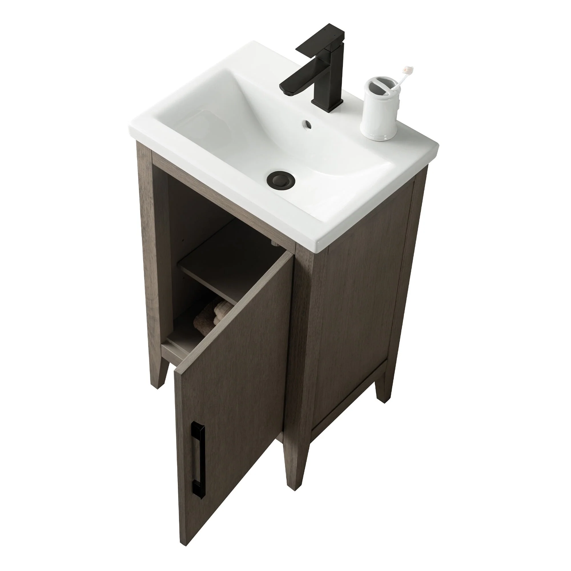 Bathroom Vanity Solid Wood MDF Cabinet With Ceramic Sink - 18"L