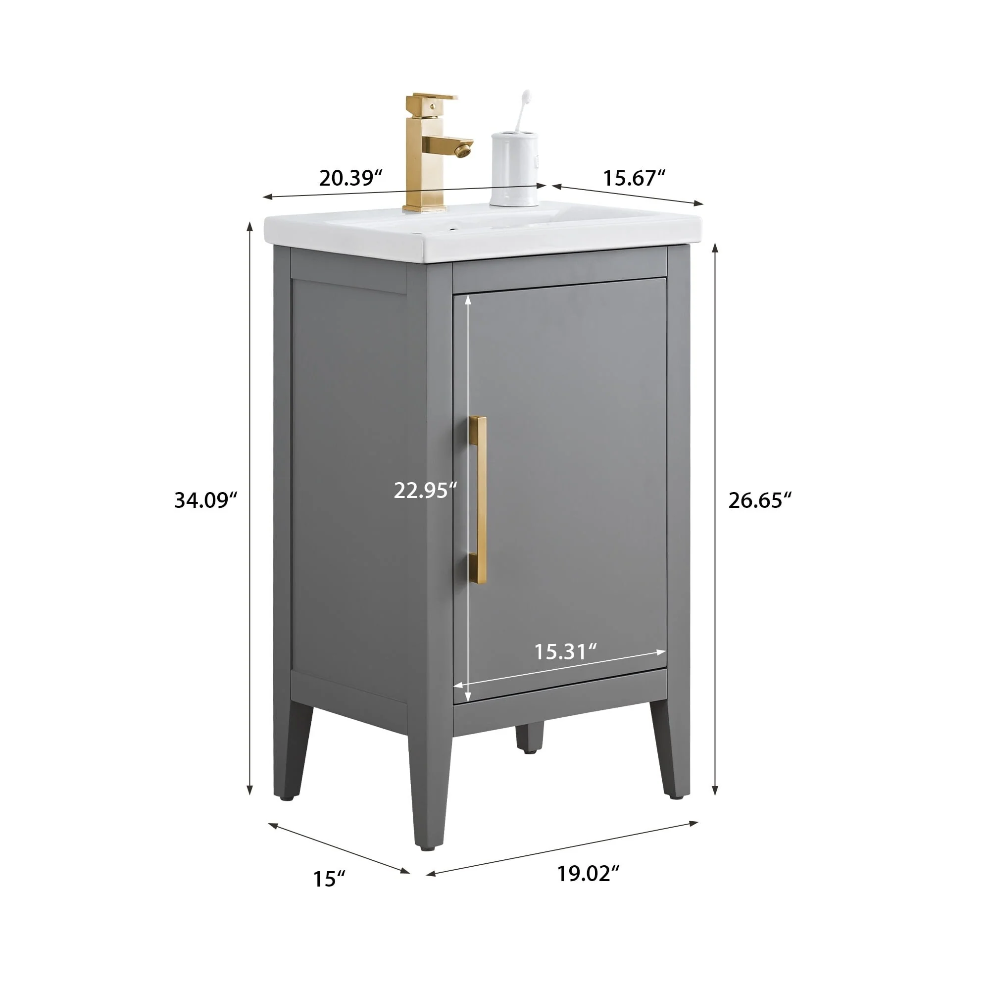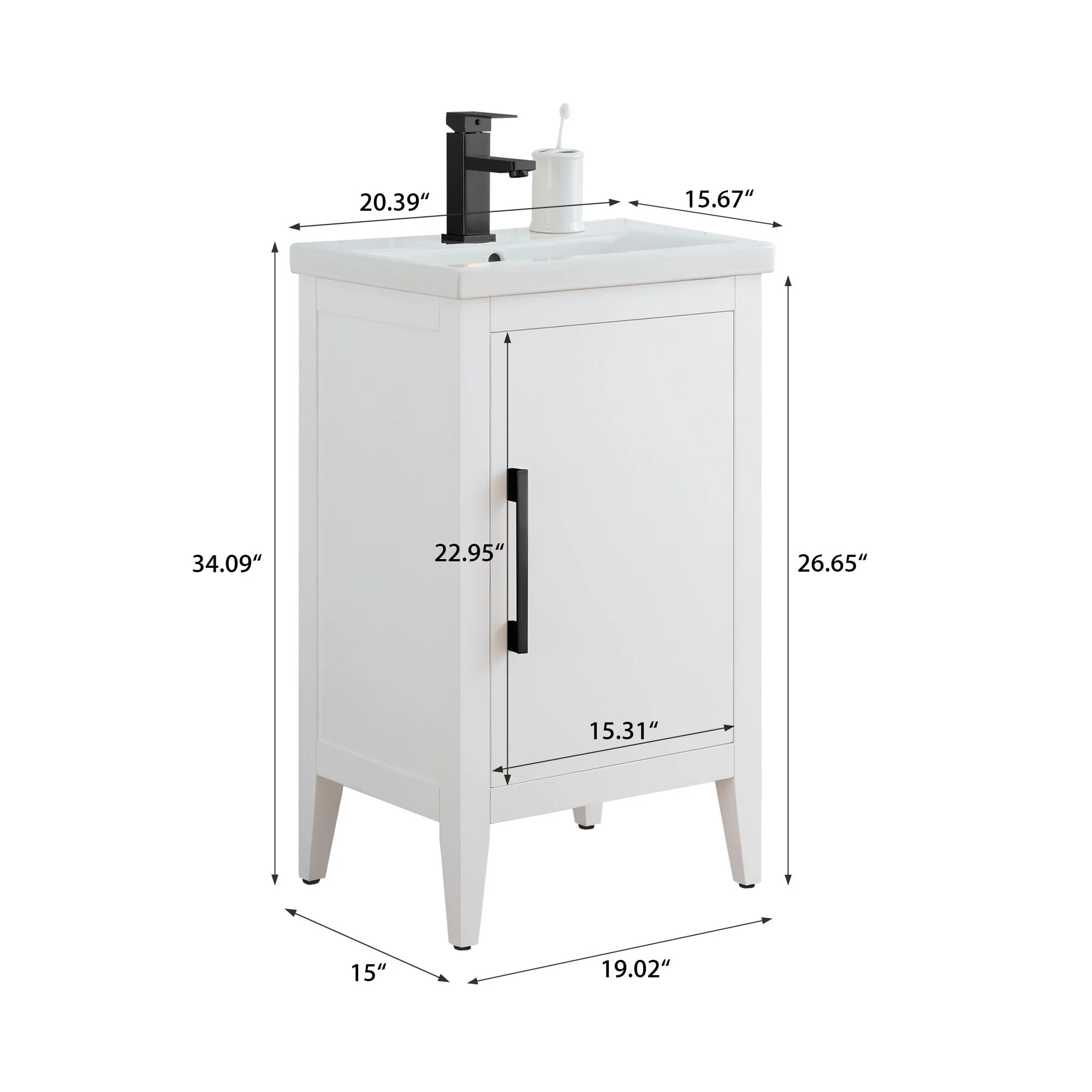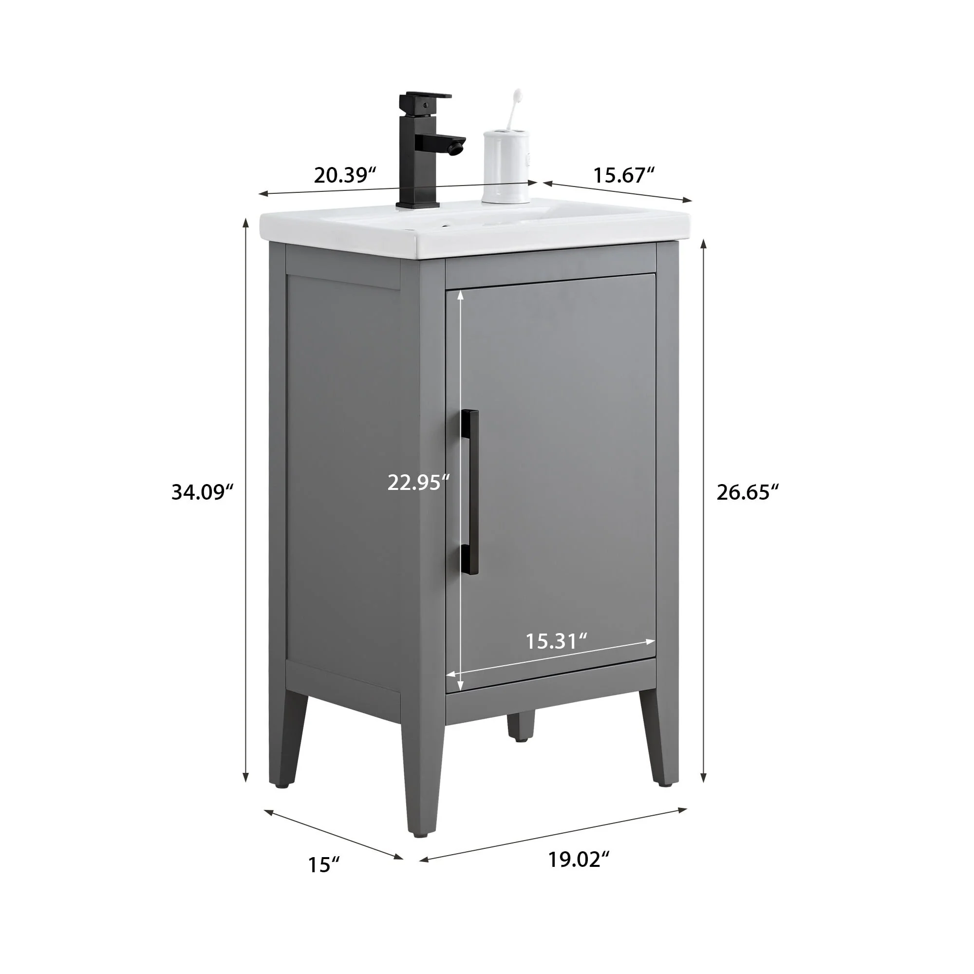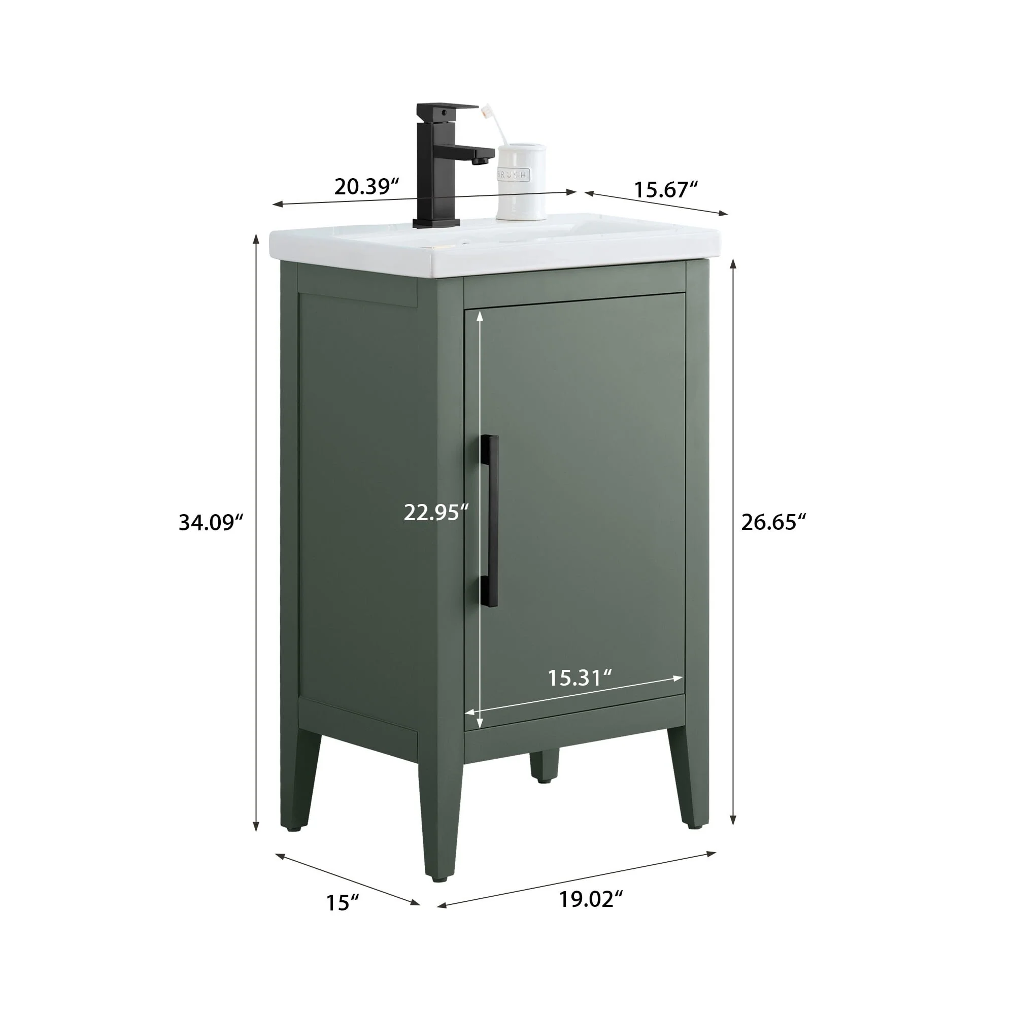 Bathroom Vanity Solid Wood MDF Cabinet With Ceramic Sink - 18"L