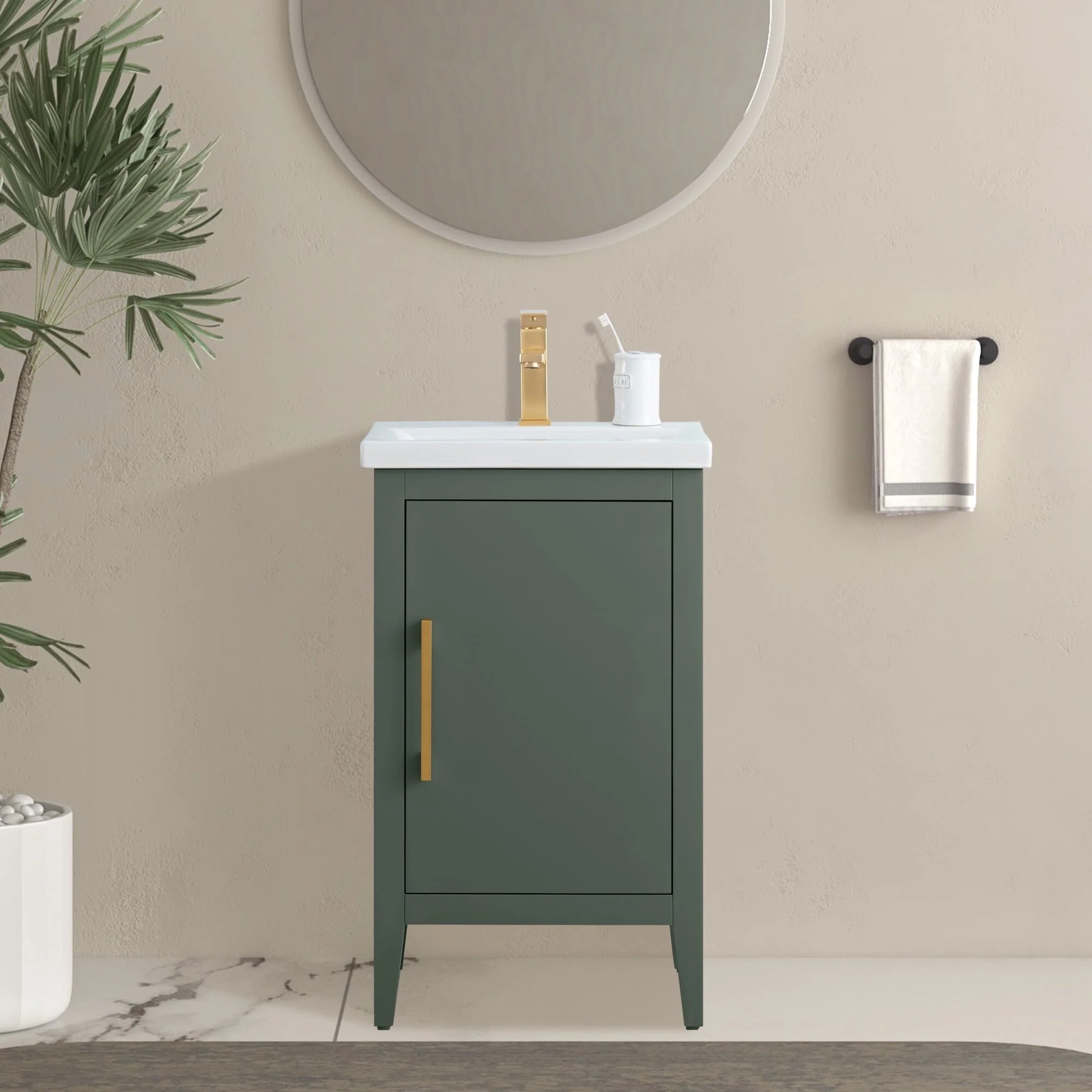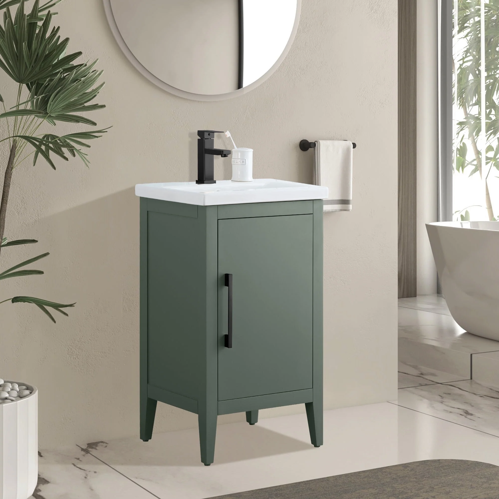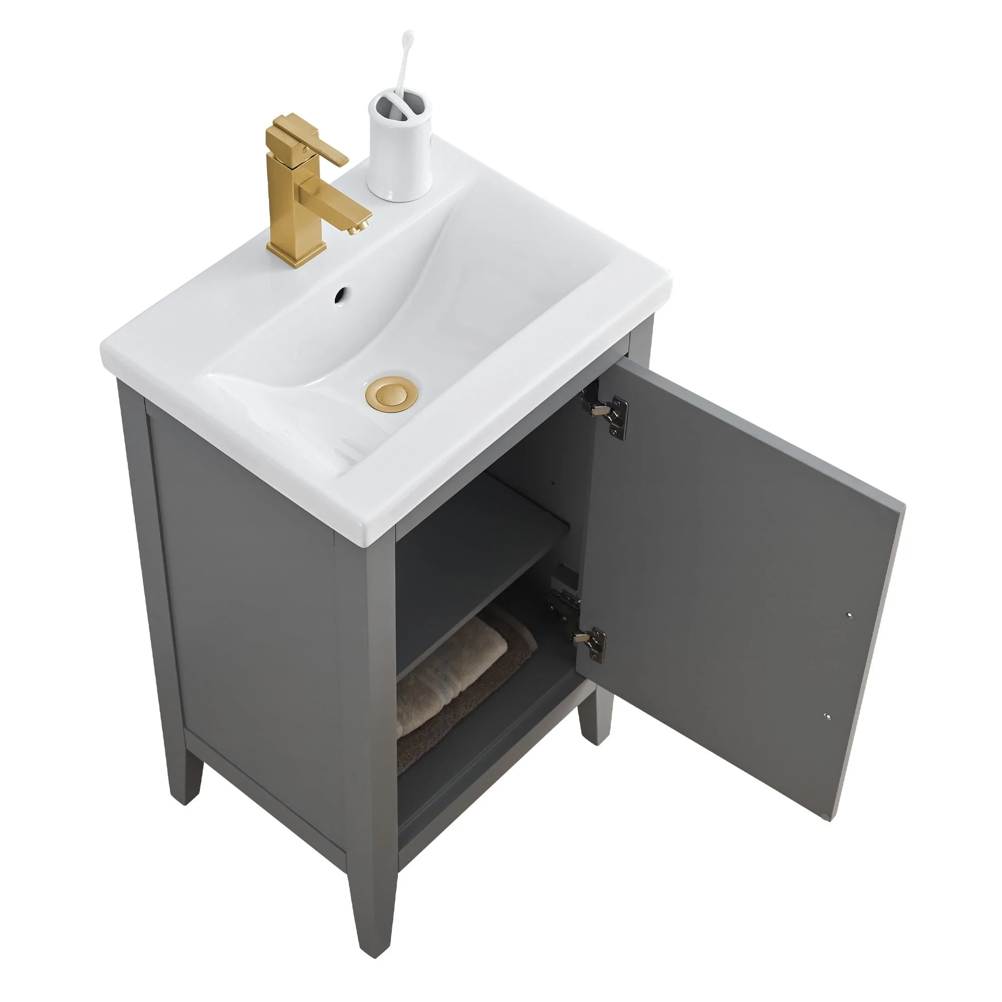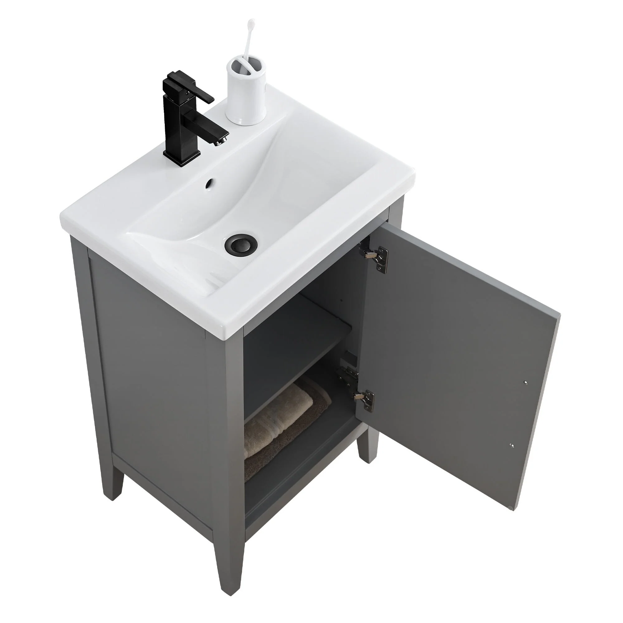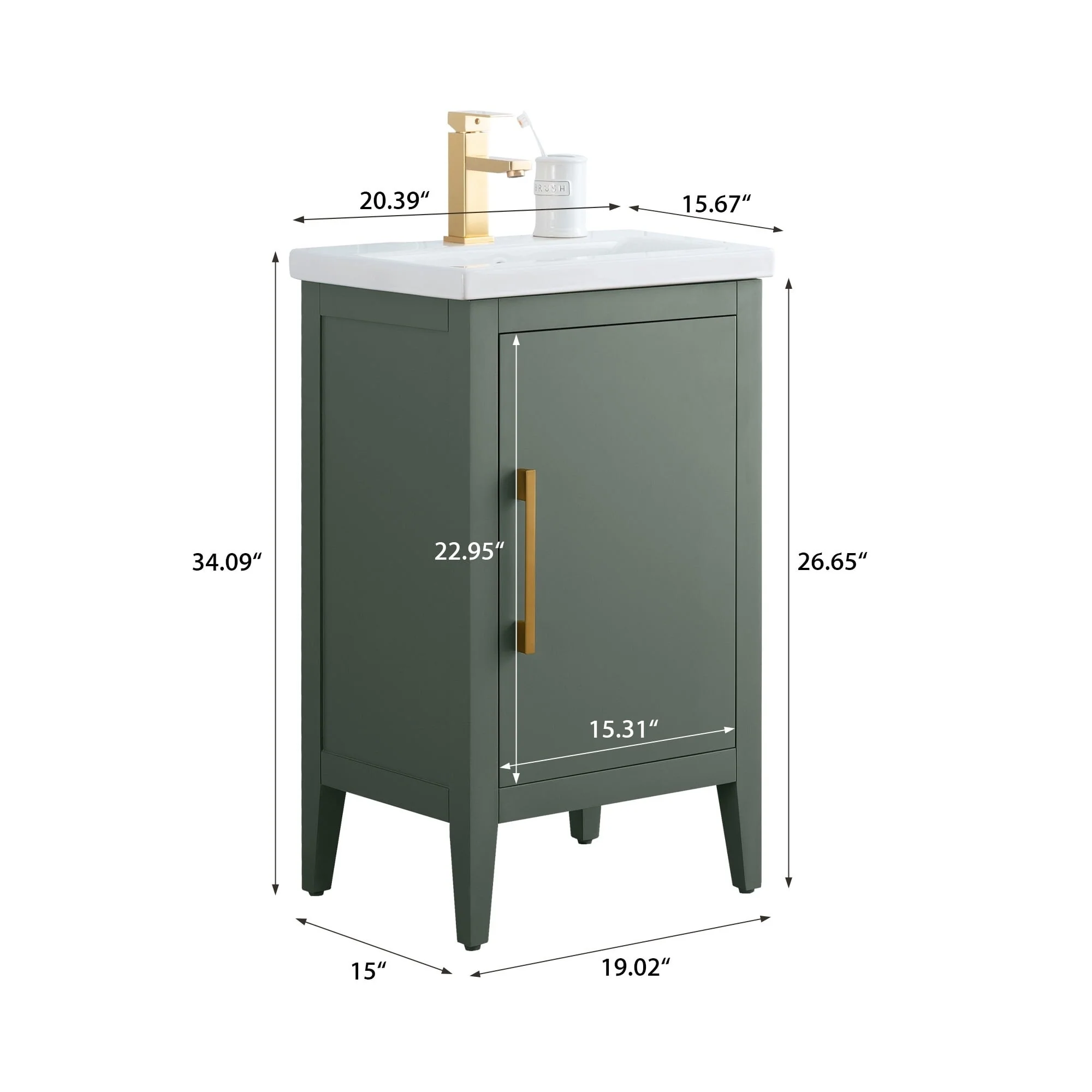 Bathroom Vanity Solid Wood MDF Cabinet With Ceramic Sink - 18"L