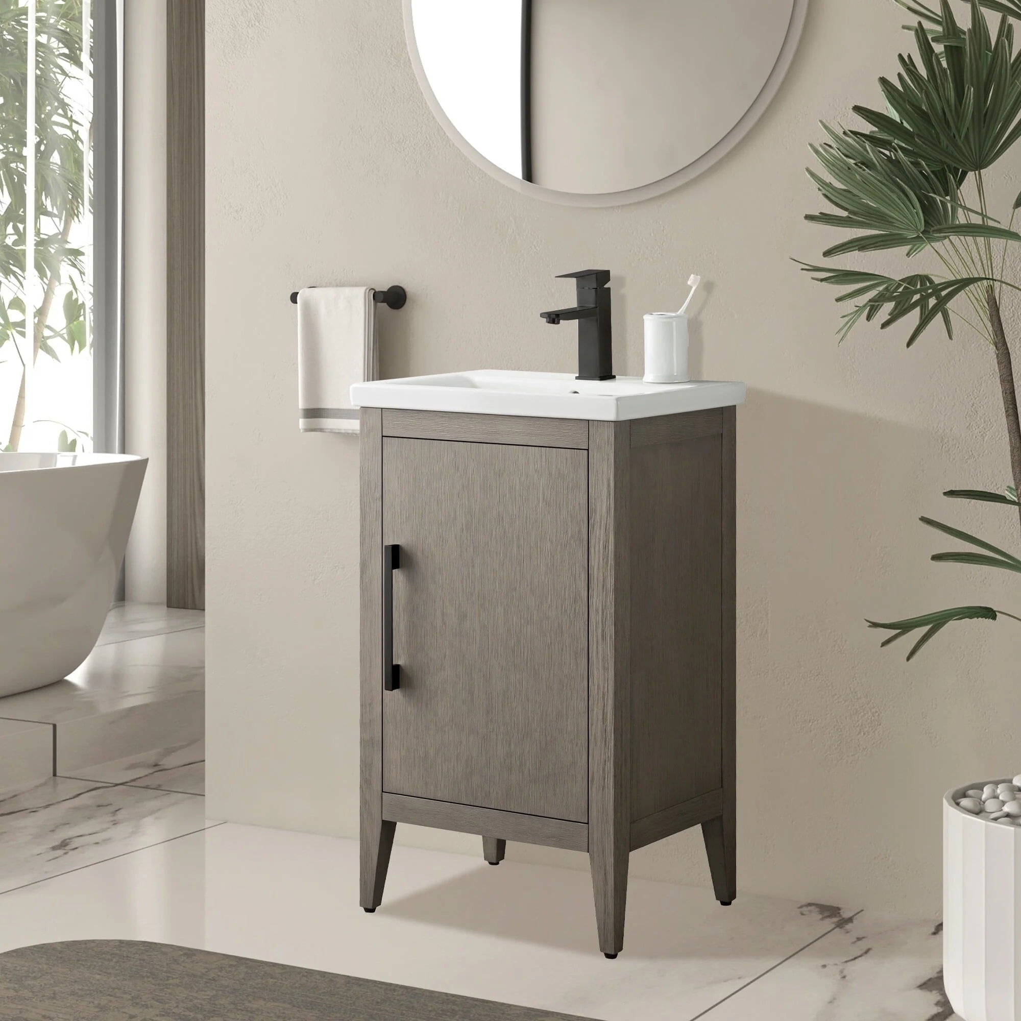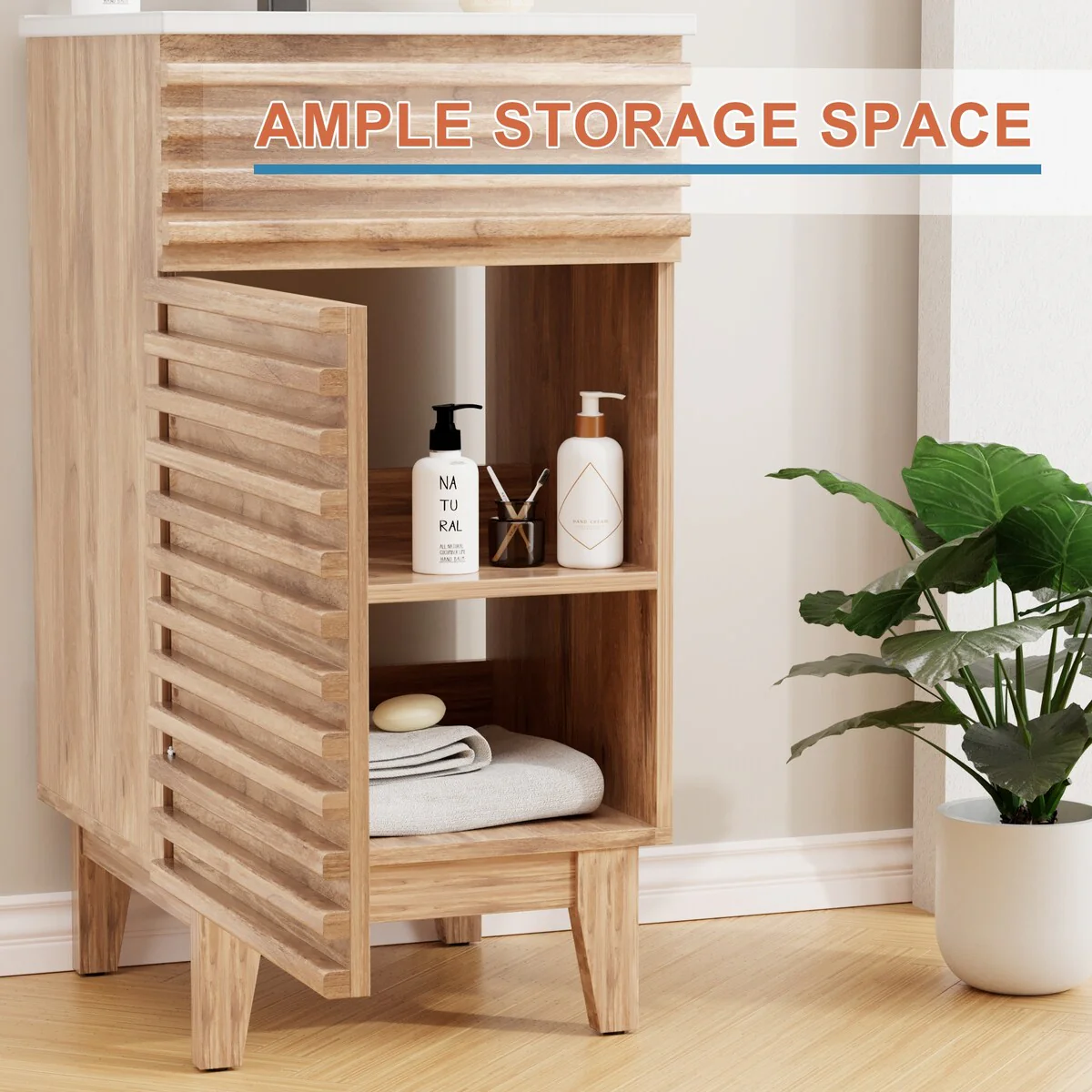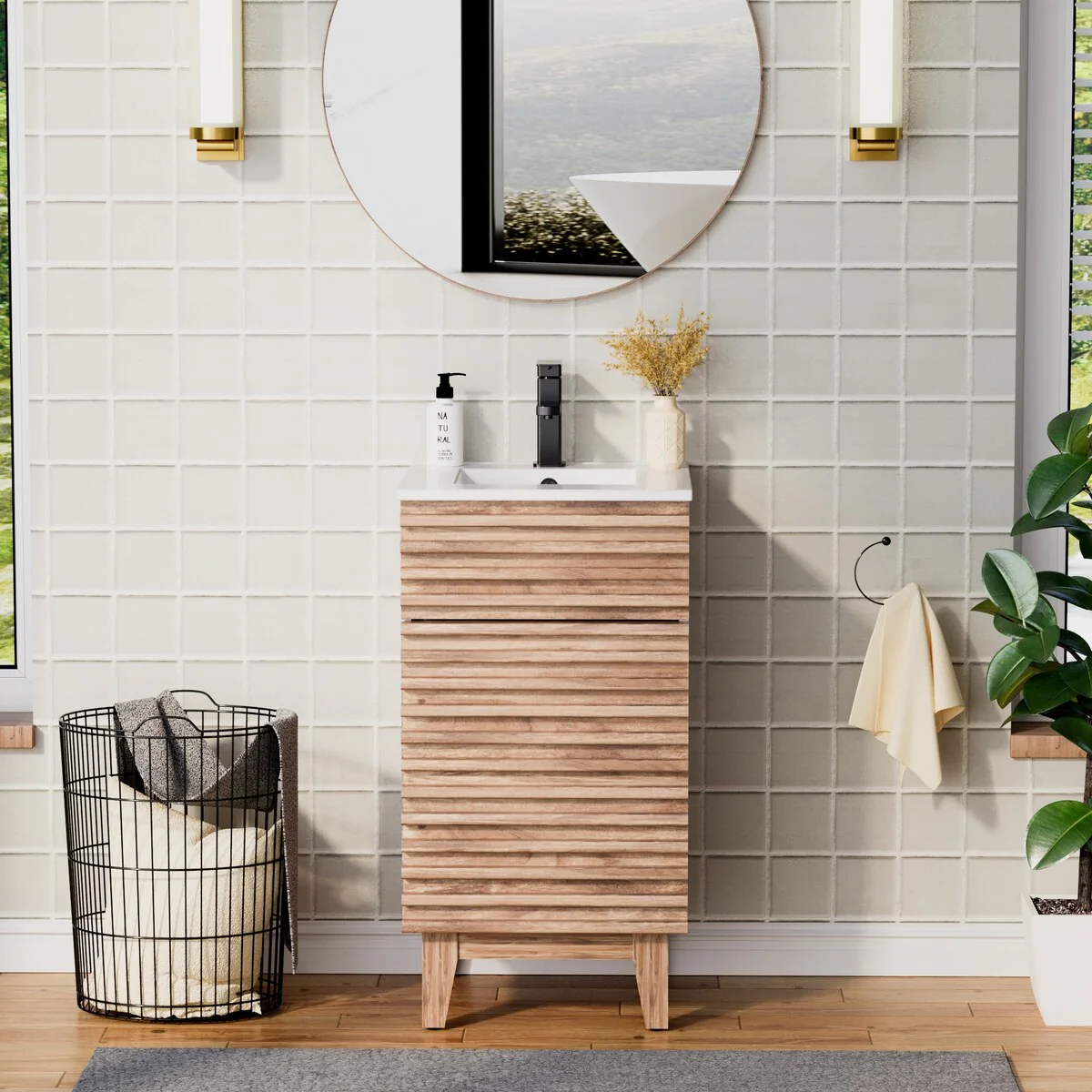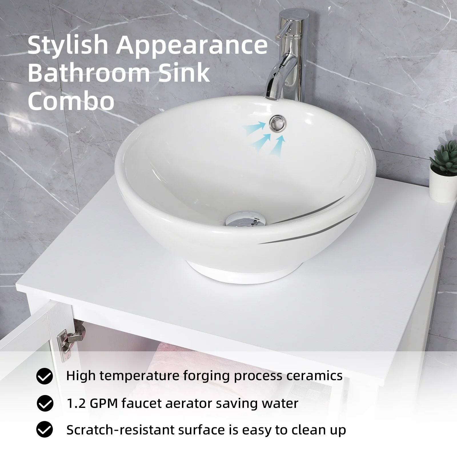 Bathroom Vanity Solid Wood MDF Cabinet With Ceramic Sink - 18"L