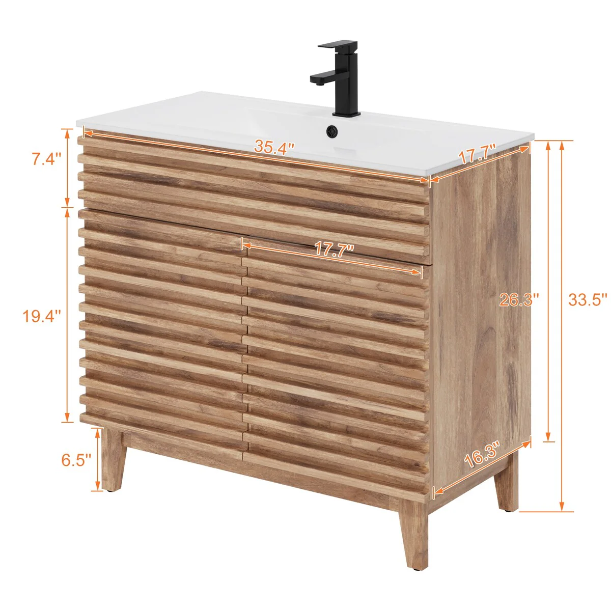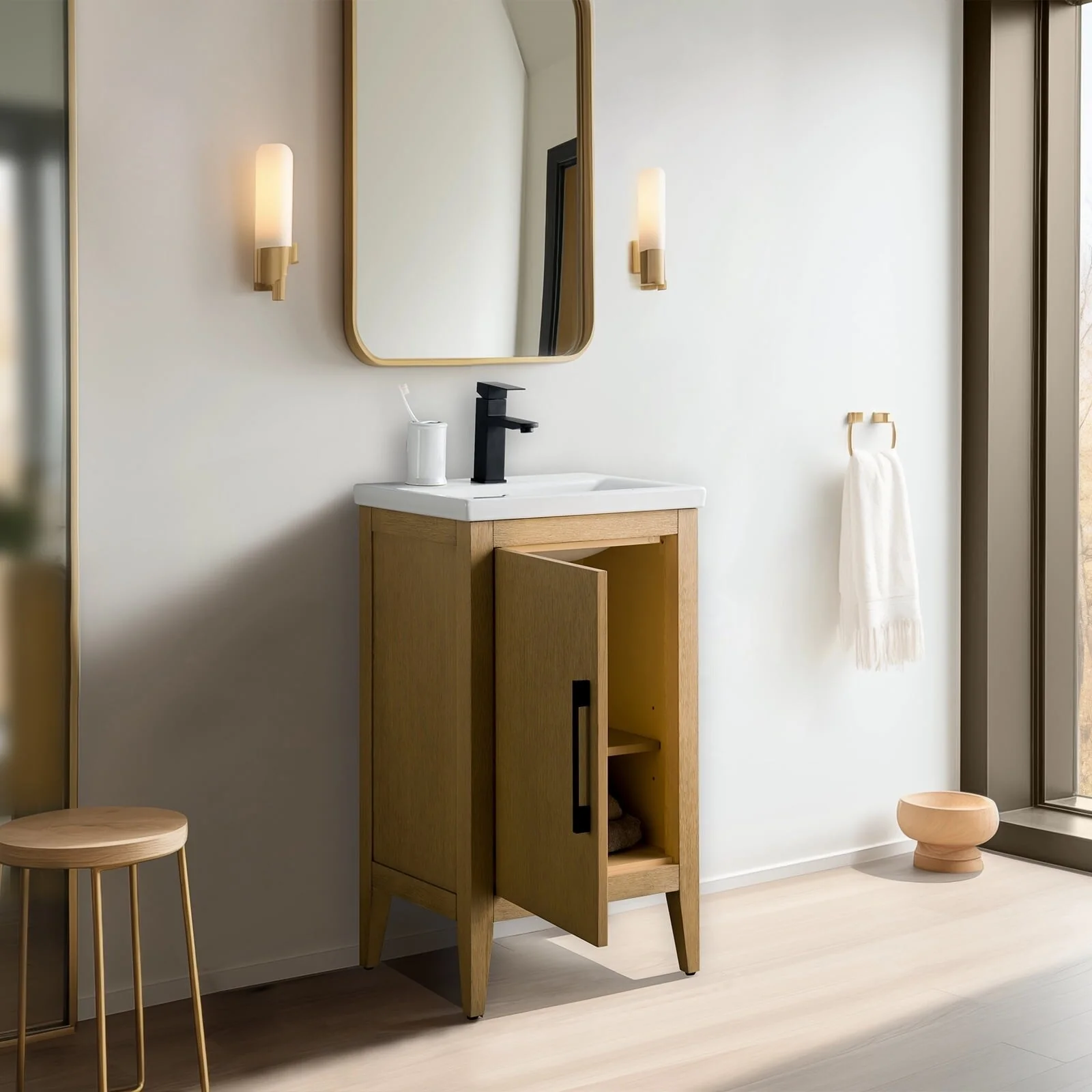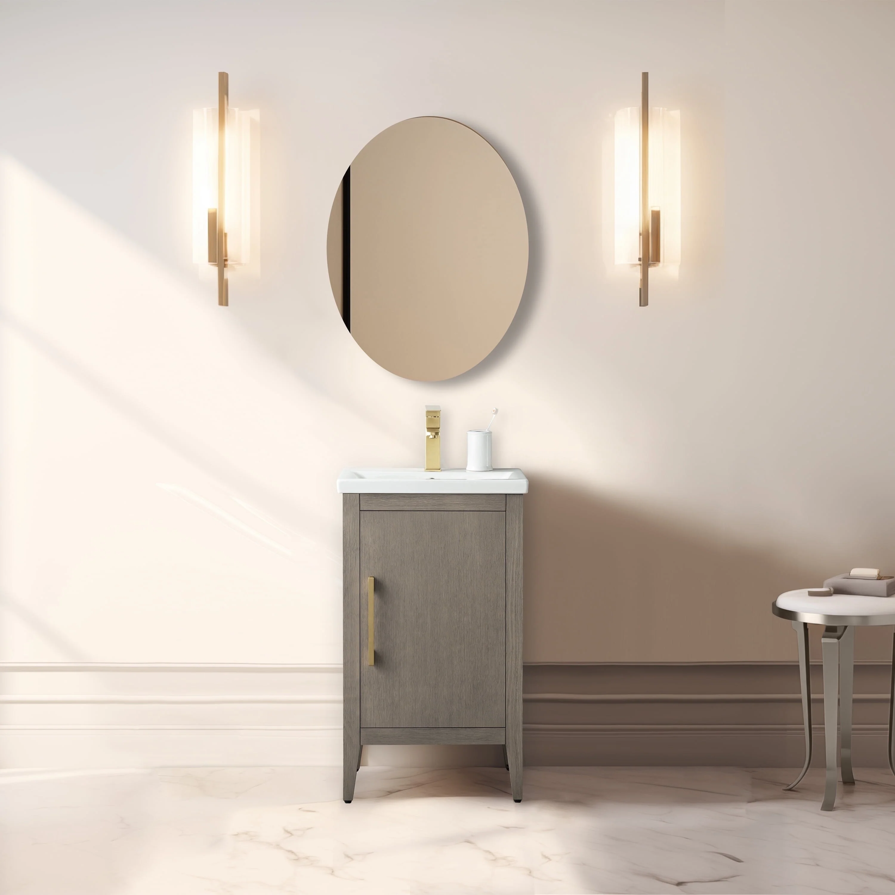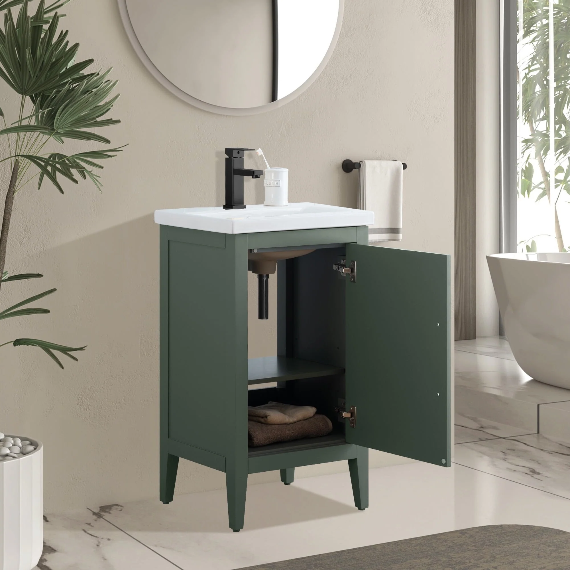 Bathroom Vanity Solid Wood MDF Cabinet With Ceramic Sink - 18"L