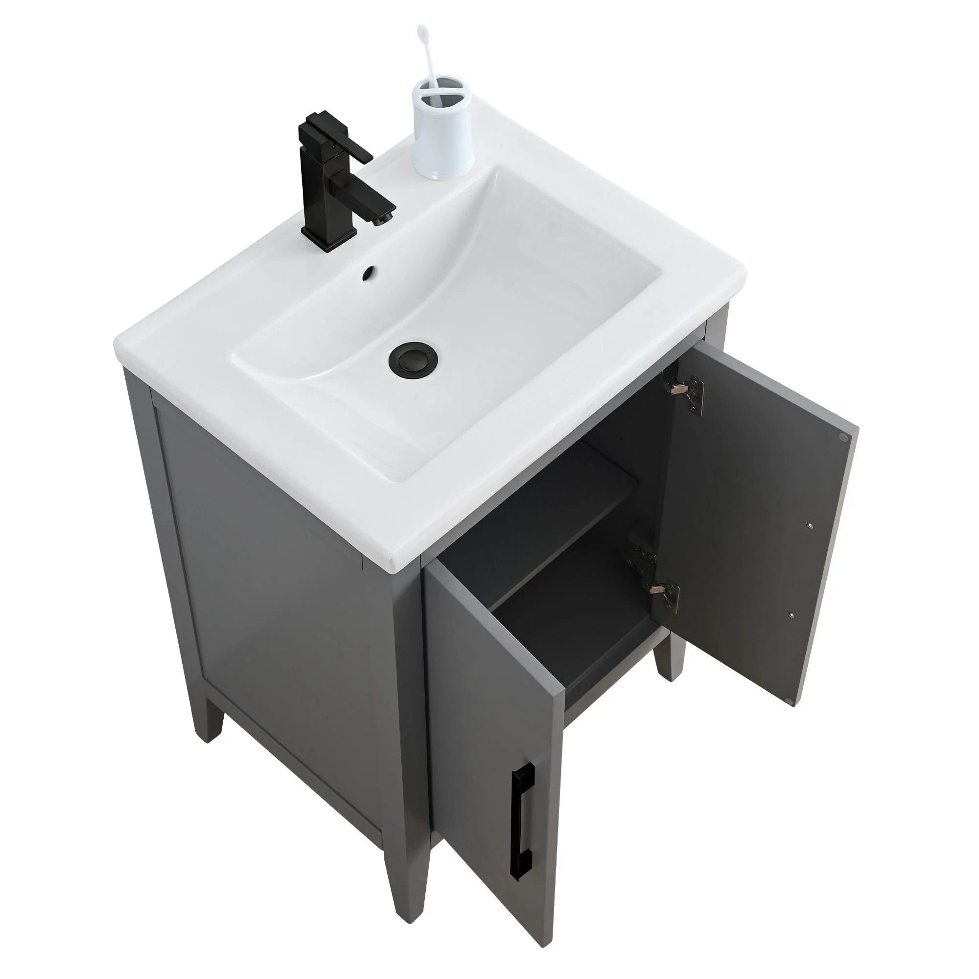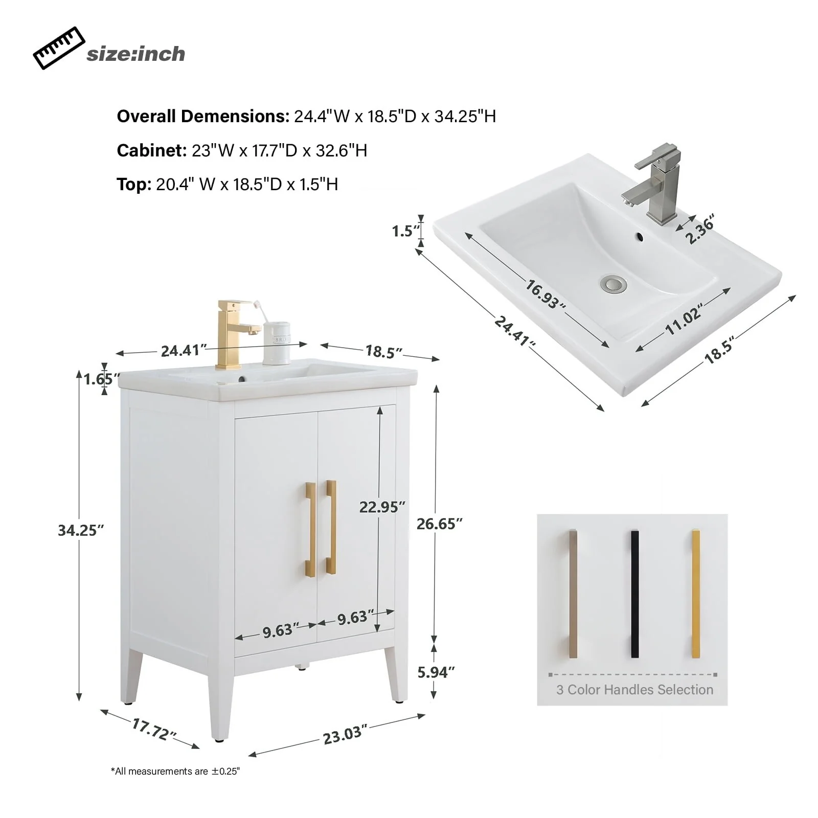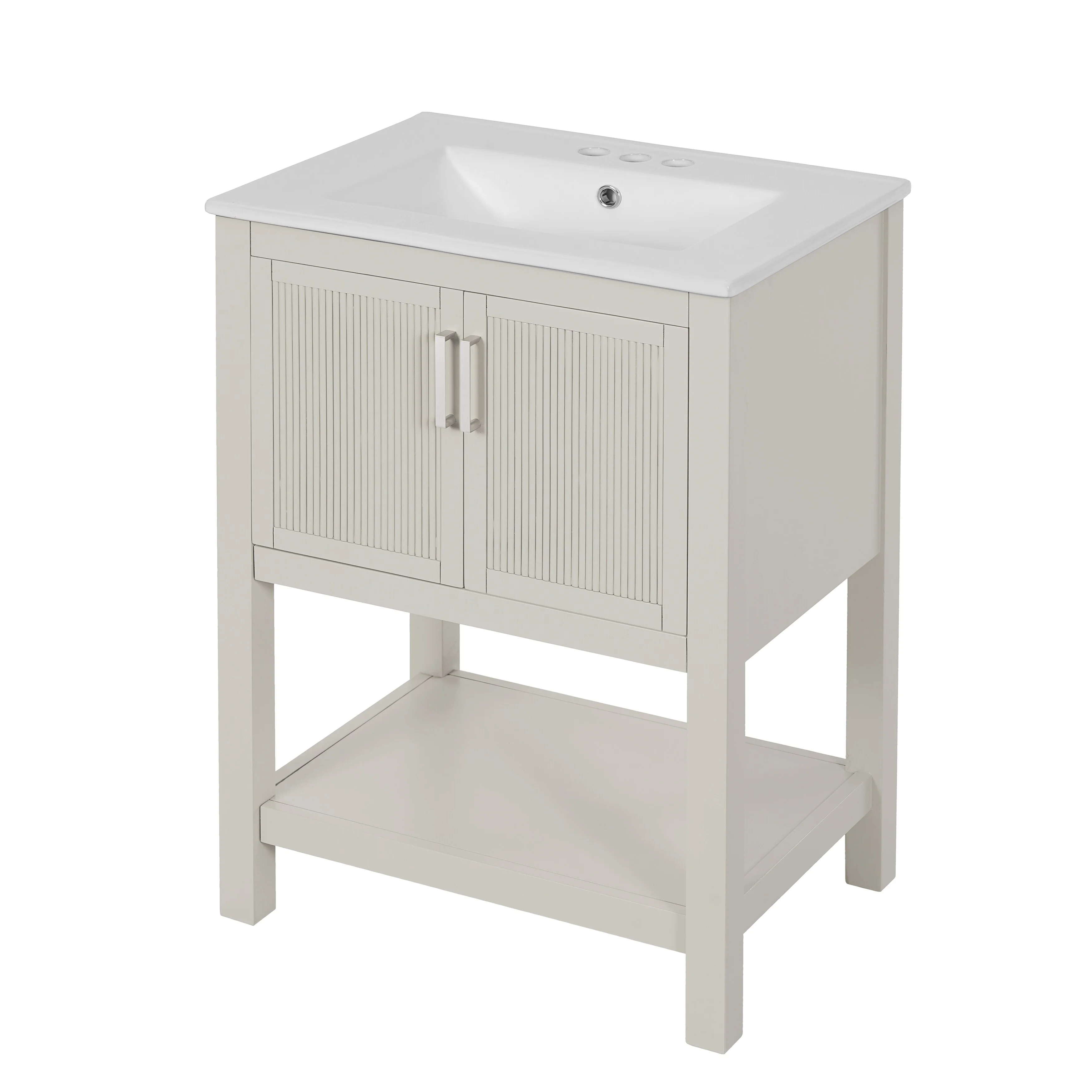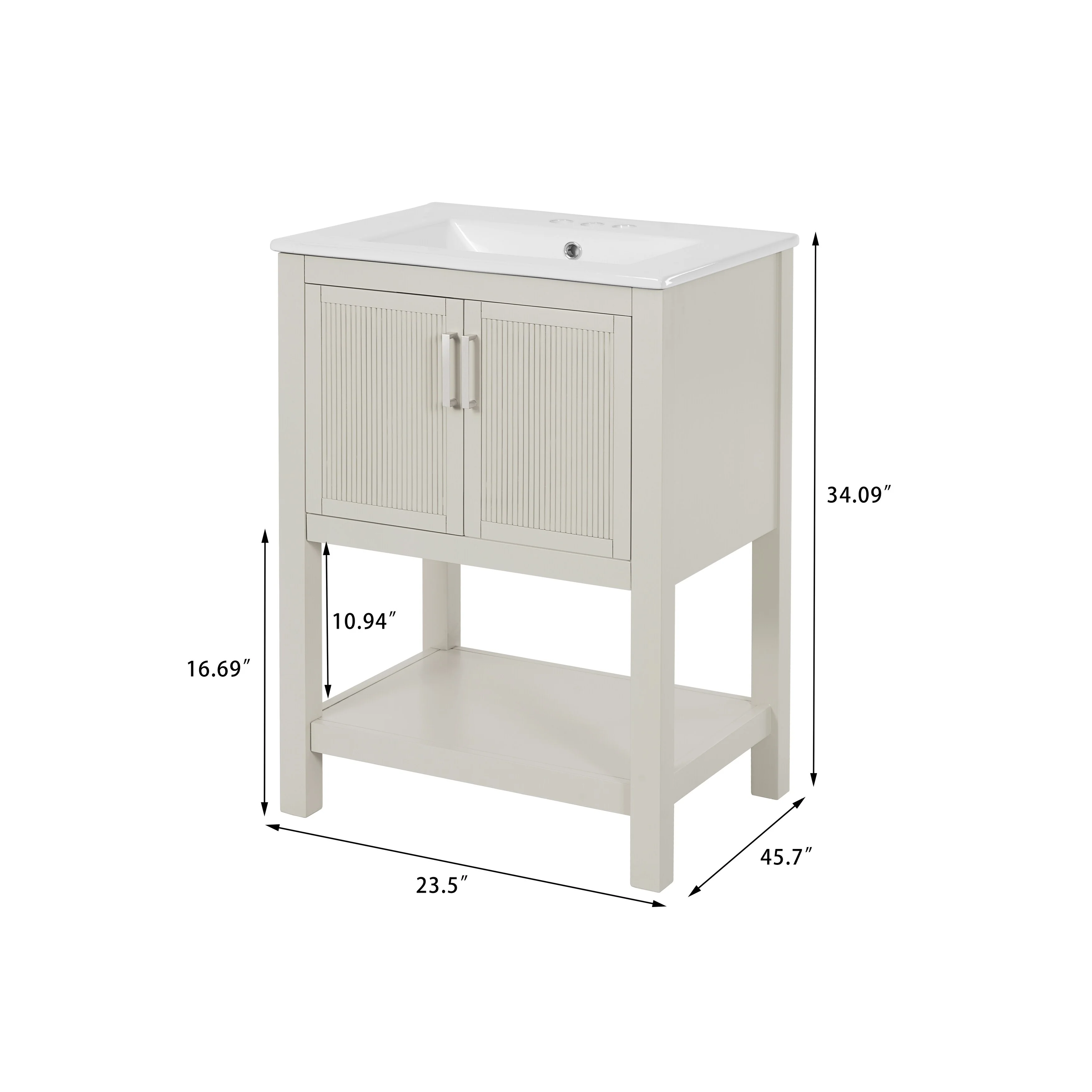 24" Bathroom Vanity with Sink, Freestanding Storage Cabinet with 2 Doors - /